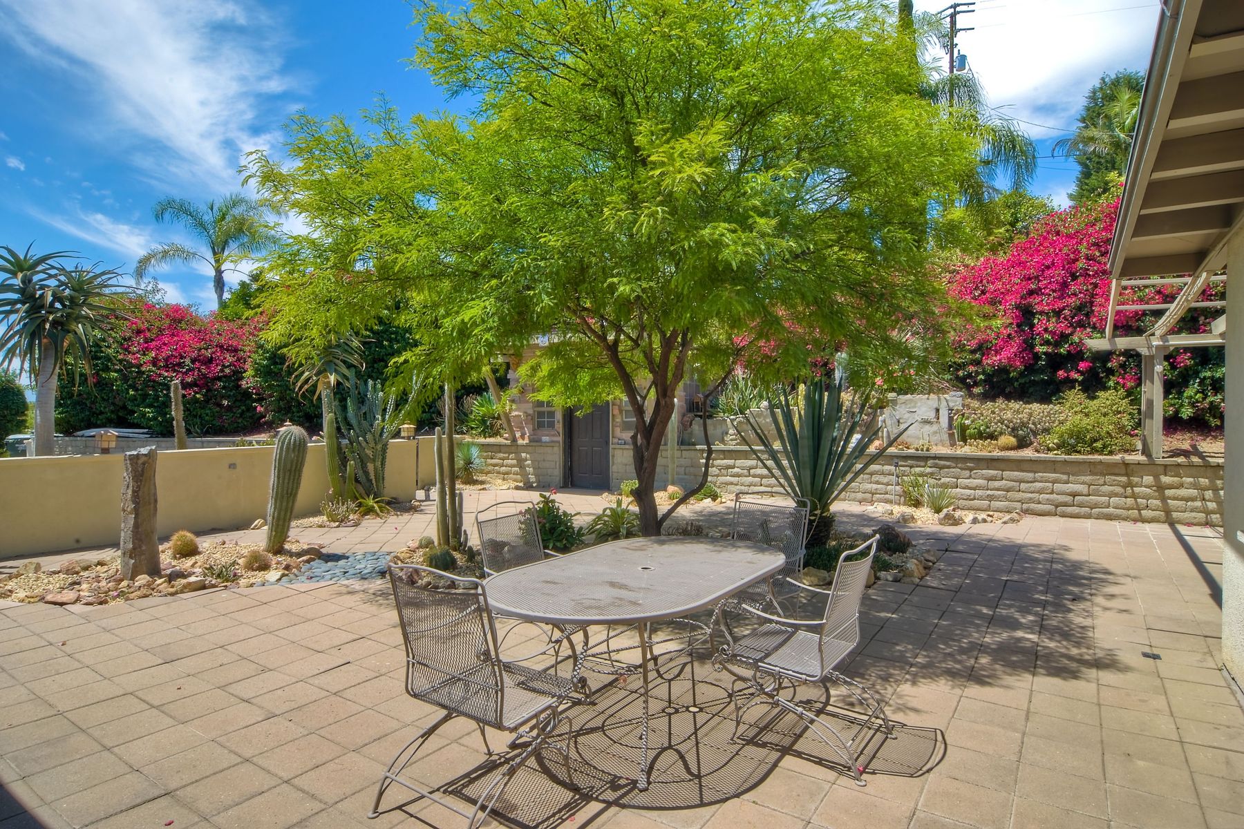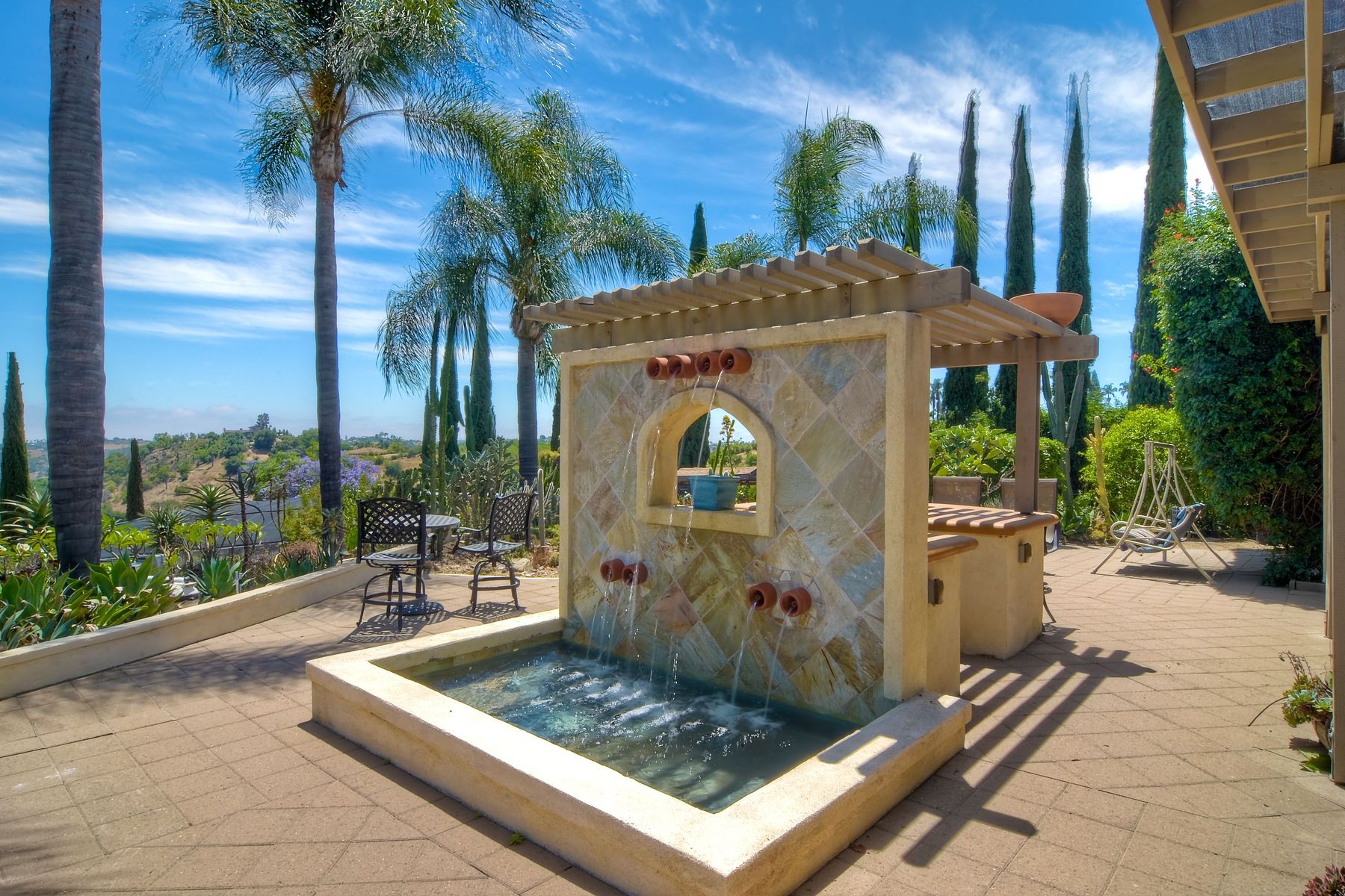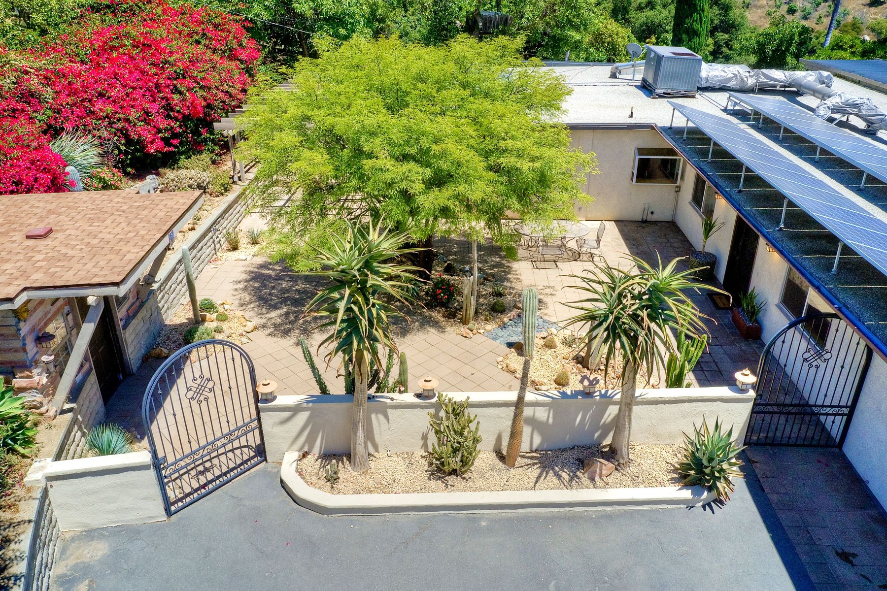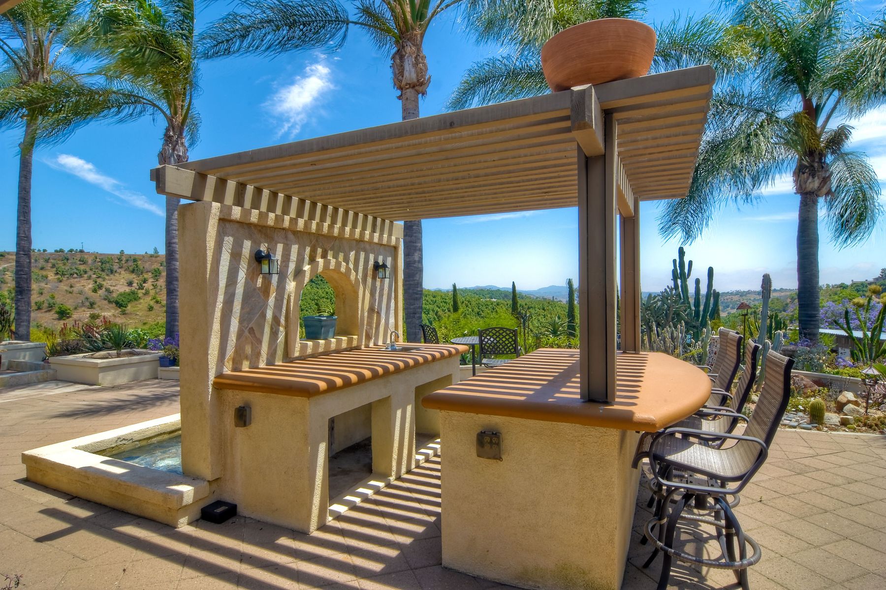 Nestled in the hills of Fallbrook is this beautiful mid-century modern home on a terraced 5 acre lot. Built in '56 w/ 4 beds & 3 full baths at 2580 square feet this place screams character. The home received an extensive remodel including a steel arched front door, colored concrete floors, Kitchen, baths and a set of La Cantina doors to bring in the breathtaking views. Take advantage of the paid for Solar & don't worry about water as you have a well w/ 3 Phase power. This property must be seen in person!! Don't let the Reche address fool you, this home sits way off the main road. This is a magical one of a kind property surrounded by groves with unreal privacy and views. Completely fenced & gated & filled w/ rare & exotic succulents (approx $35,000 worth), the grounds are amazing. 3 large greenhouses (20x100) all with tables & water supplies, a 15x20 combination greenhouse/storage house, a 20x20 shade house w/ water, one additional 60x100 greenhouse w/ tables & water. There is a great chicken coop for fresh eggs, a detached art studio (12x12 w/new roof), & other planting houses & Aviary. A 30hp Kubota Tractor and Kubota diesel utility vehicle are also available for purchase.. Neighborhoods: Reche Equipment: Dryer, Shed(s), Washer Other Fees: 0 Sewer: Septic Installed Topography: ,LL,RSLP,GSL,SSLP