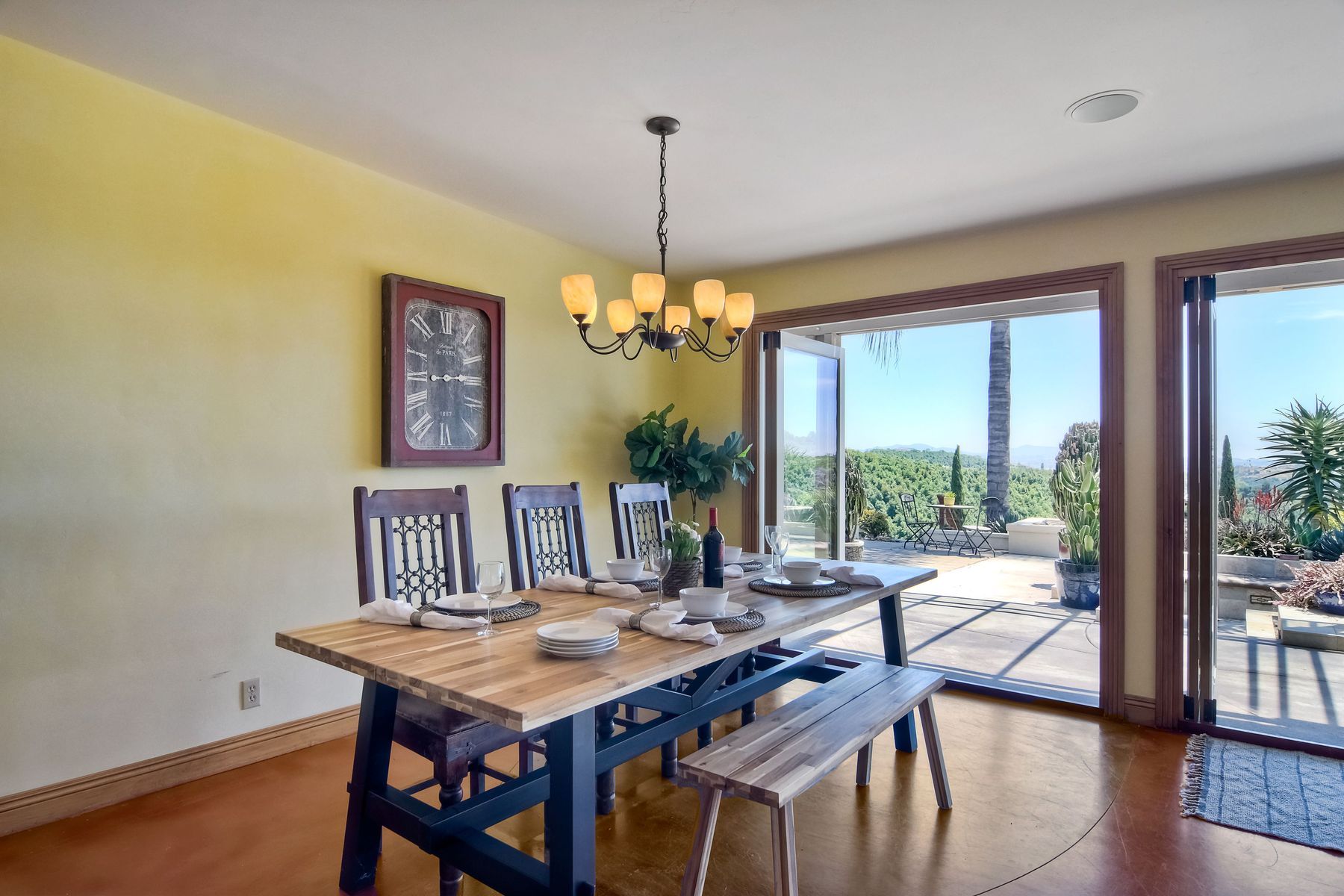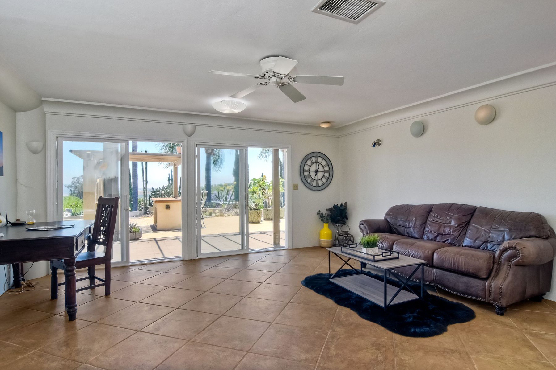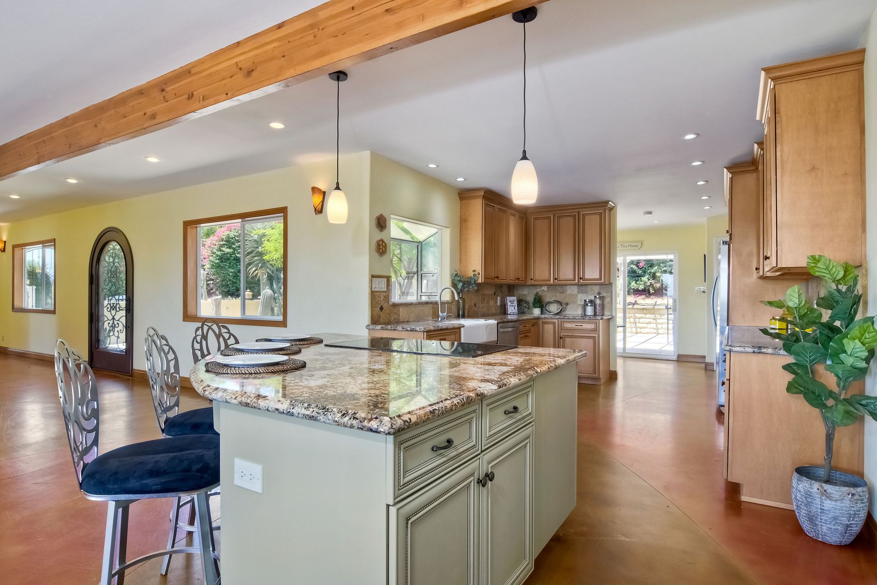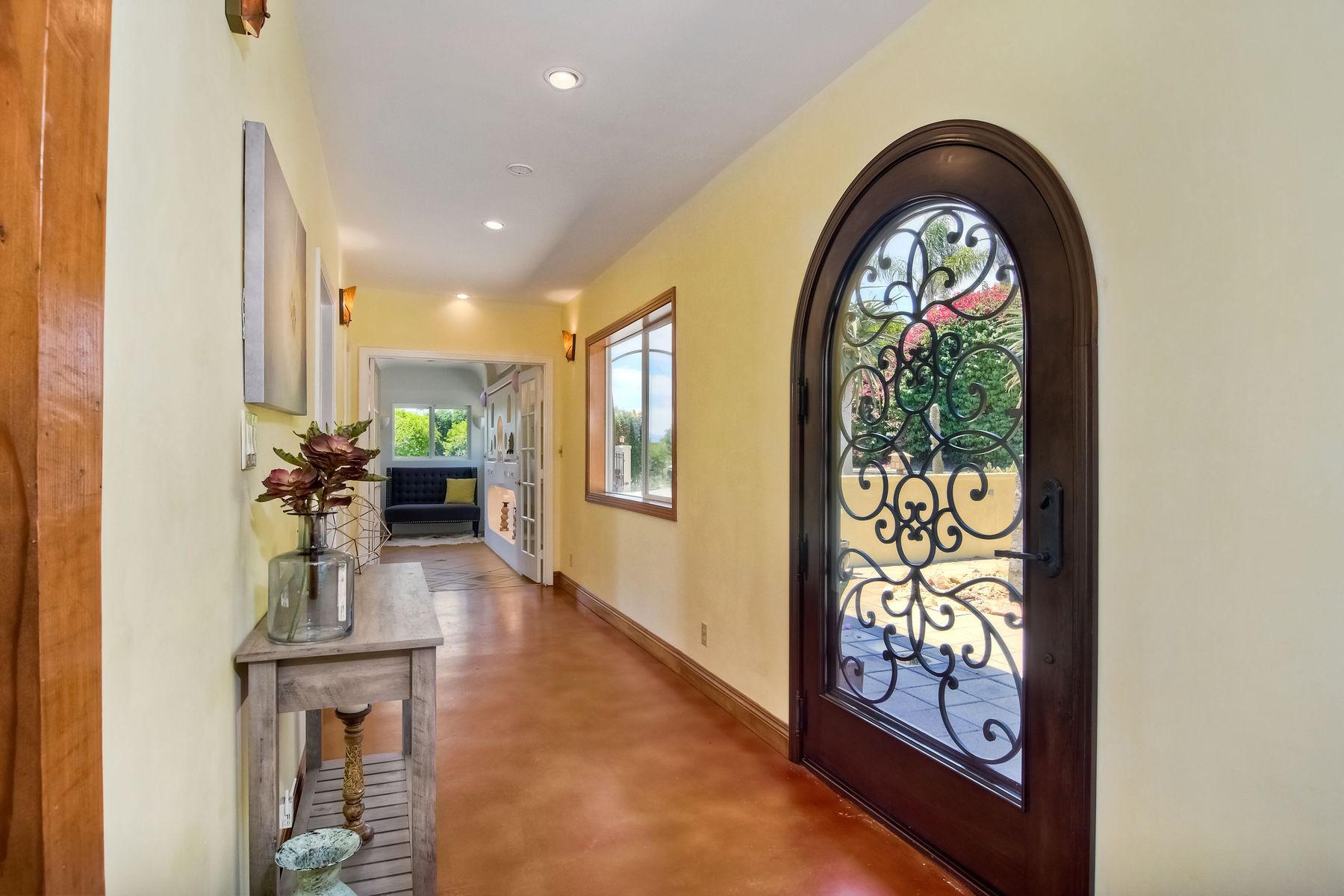 Nestled in the hills of Fallbrook is this beautiful mid-century modern home on a terraced 5 acre lot. Built in '56 w/ 4 beds & 3 full baths at 2580 square feet this place screams character. The home received an extensive remodel including a steel arched front door, colored concrete floors, Kitchen, baths and a set of La Cantina doors to bring in the breathtaking views. Take advantage of the paid for Solar & don't worry about water as you have a well w/ 3 Phase power. This property must be seen in person!! Don't let the Reche address fool you, this home sits way off the main road. This is a magical one of a kind property surrounded by groves with unreal privacy and views. Completely fenced & gated & filled w/ rare & exotic succulents (approx $35,000 worth), the grounds are amazing. 3 large greenhouses (20x100) all with tables & water supplies, a 15x20 combination greenhouse/storage house, a 20x20 shade house w/ water, one additional 60x100 greenhouse w/ tables & water. There is a great chicken coop for fresh eggs, a detached art studio (12x12 w/new roof), & other planting houses & Aviary. A 30hp Kubota Tractor and Kubota diesel utility vehicle are also available for purchase.. Neighborhoods: Reche Equipment: Dryer, Shed(s), Washer Other Fees: 0 Sewer: Septic Installed Topography: ,LL,RSLP,GSL,SSLP
