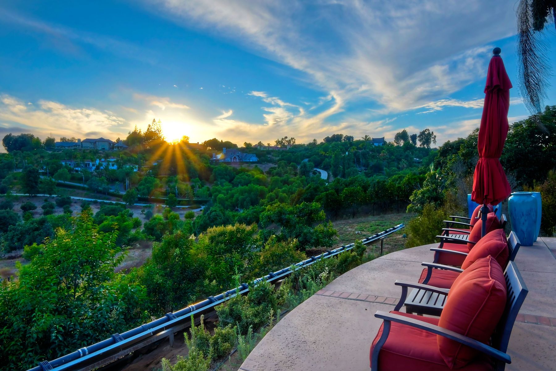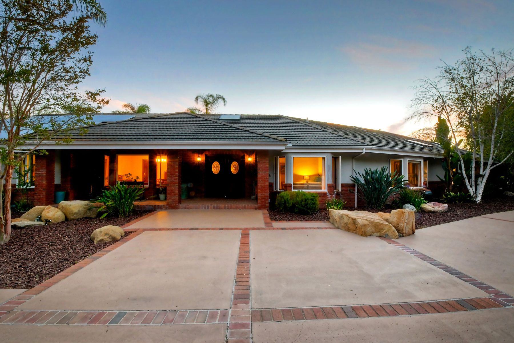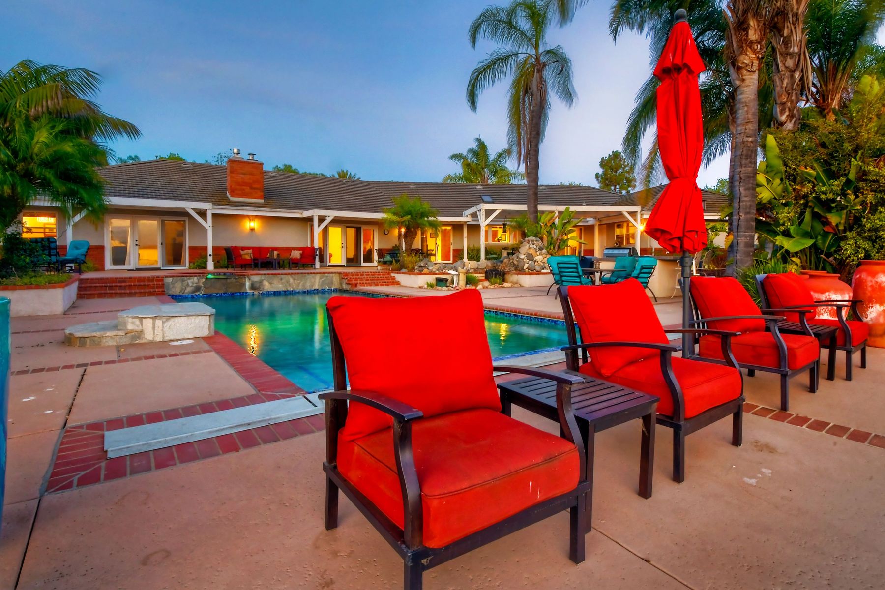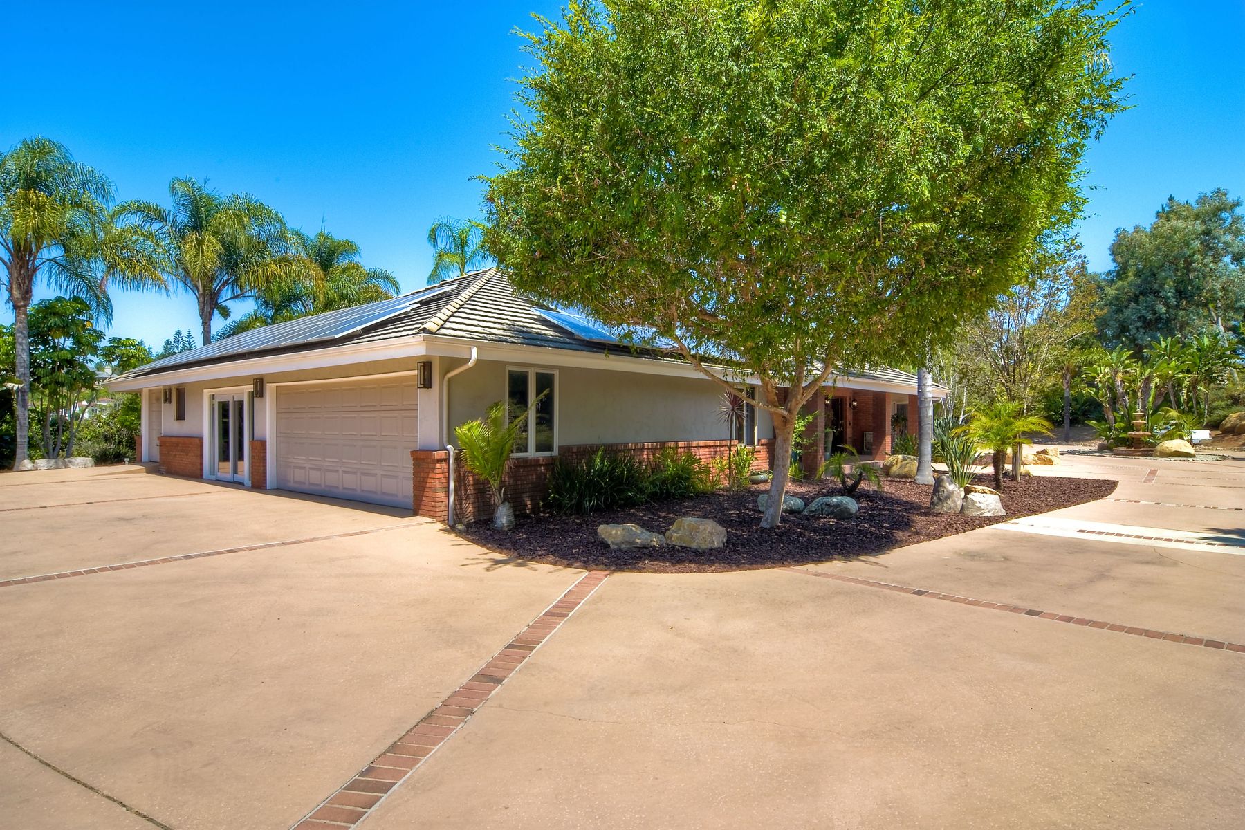 Single story panoramic view property on 2.79 in Rolling Hills Estates, Fallbrook's only 24/7 gate guarded community. Modern upgraded kitchen with sizable granite island, 5 burner gas range, chiseled travertine stone flooring, distressed alder wood cabinets and doors. All baths remodeled! Resort living w/ocean breezes/sunset views from your private patios and solar heated pool and spa. Paid solar, low maintenance landscaping = easy living! Downstairs wine cellar with storage! Extra long,private driveway. Rolling Hills features 3 lighted tennis courts, groomed walking trails throughout the neighborhood, wide streets, 24/7 gate guarded security and a clubhouse with lakes and waterfalls. RV Parking available in the neighborhood. *Large family room with fireplace *Kitchen with skylight for natural light, double ovens, double dishwashers, warming drawer, microwave and large island for entertaining. *Office/additional guest room *Master retreat area off master bedroom area *Multiple french doors and casement windows *All bathrooms remodeled with travertine stone finishes *Walk down wine cellar with refrigerated storage. *Guest Suite with full bath and separate entrance on one end of home *Extensive driveway parking spaces. Neighborhoods: Rolling Hills Architectural Style: Custom Built View: Custom Built Equipment: Pool/Spa/Equipment, Shed(s) Other Fees: 0 Sewer: Septic Installed Topography: ,LL,RSLP,GSL