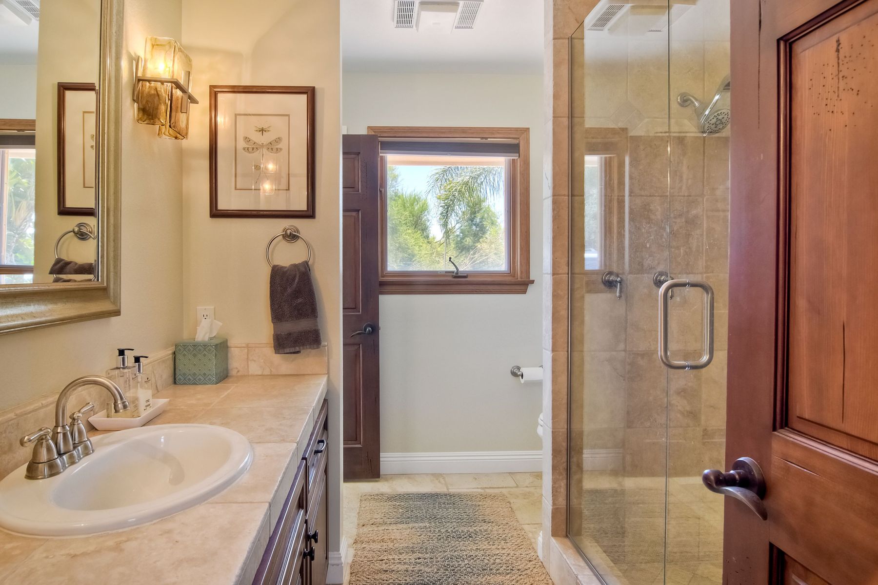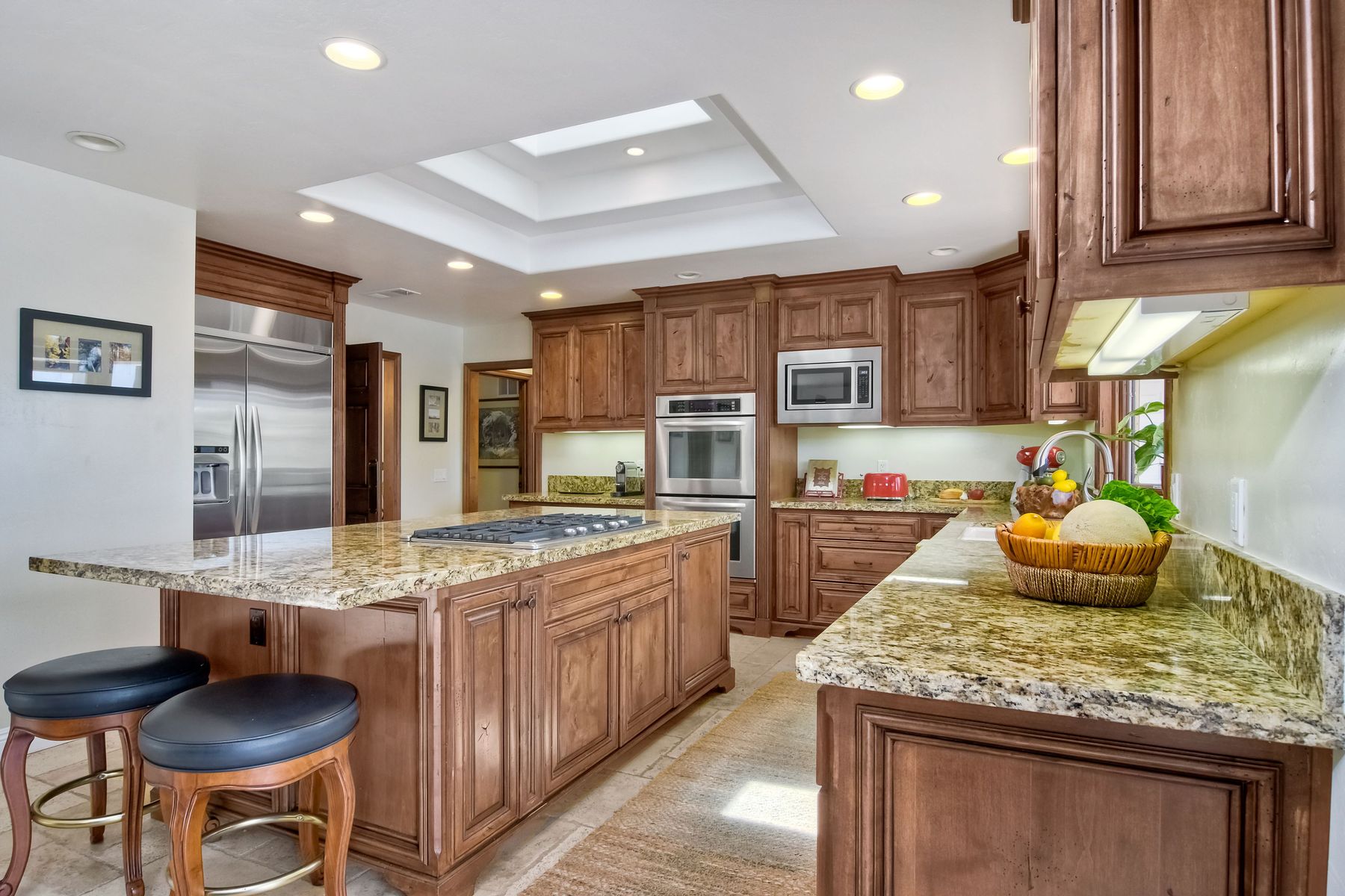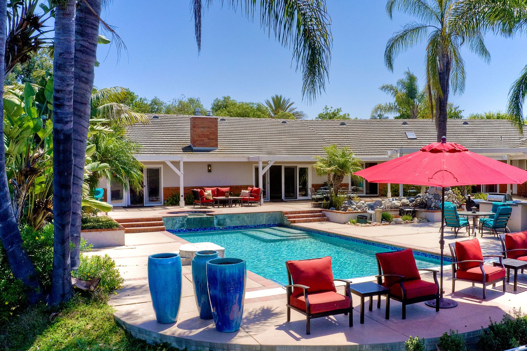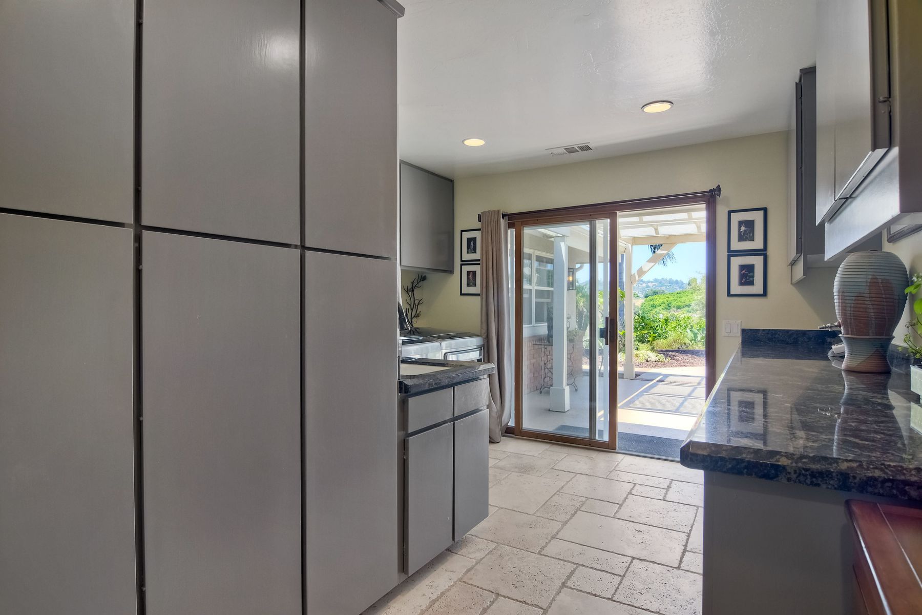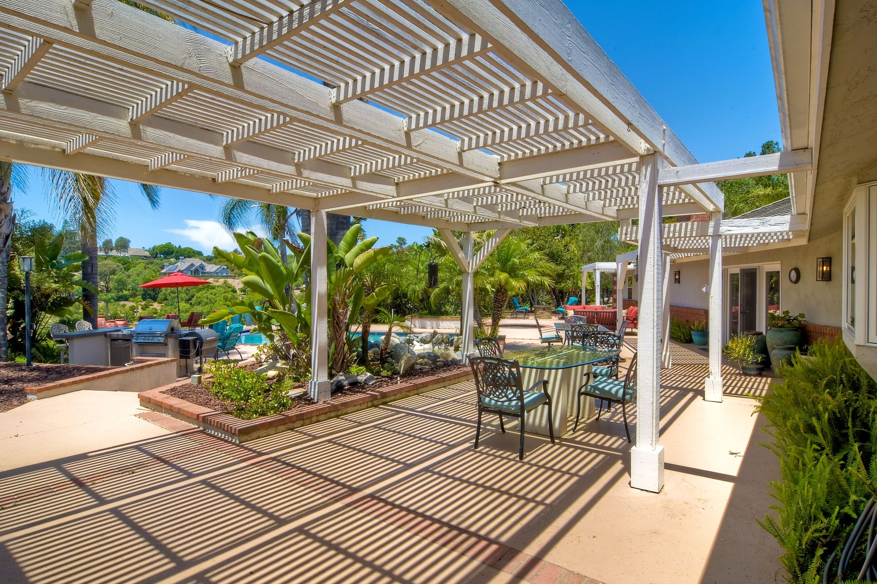 Single story panoramic view property on 2.79 in Rolling Hills Estates, Fallbrook's only 24/7 gate guarded community. Modern upgraded kitchen with sizable granite island, 5 burner gas range, chiseled travertine stone flooring, distressed alder wood cabinets and doors. All baths remodeled! Resort living w/ocean breezes/sunset views from your private patios and solar heated pool and spa. Paid solar, low maintenance landscaping = easy living! Downstairs wine cellar with storage! Extra long,private driveway. Rolling Hills features 3 lighted tennis courts, groomed walking trails throughout the neighborhood, wide streets, 24/7 gate guarded security and a clubhouse with lakes and waterfalls. RV Parking available in the neighborhood. *Large family room with fireplace *Kitchen with skylight for natural light, double ovens, double dishwashers, warming drawer, microwave and large island for entertaining. *Office/additional guest room *Master retreat area off master bedroom area *Multiple french doors and casement windows *All bathrooms remodeled with travertine stone finishes *Walk down wine cellar with refrigerated storage. *Guest Suite with full bath and separate entrance on one end of home *Extensive driveway parking spaces. Neighborhoods: Rolling Hills Architectural Style: Custom Built View: Custom Built Equipment: Pool/Spa/Equipment, Shed(s) Other Fees: 0 Sewer: Septic Installed Topography: ,LL,RSLP,GSL