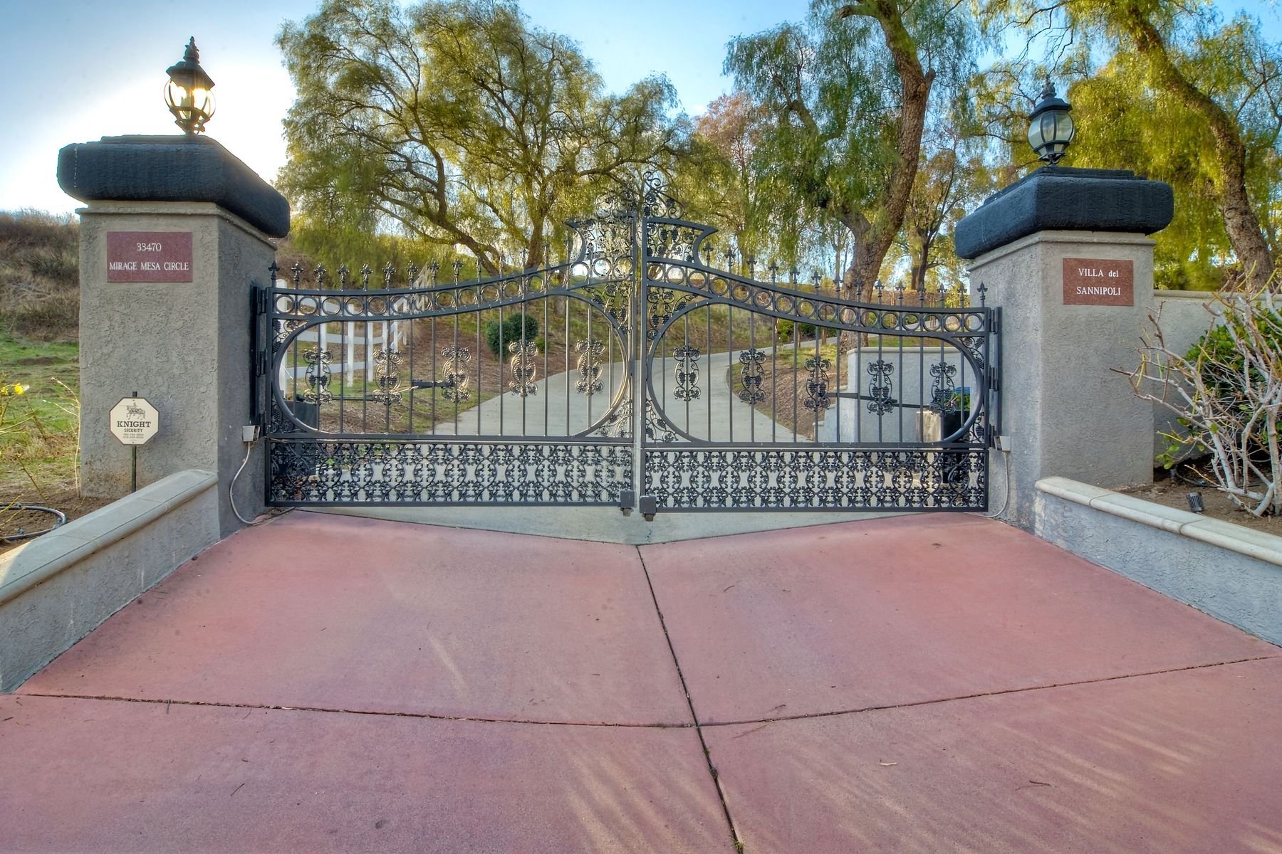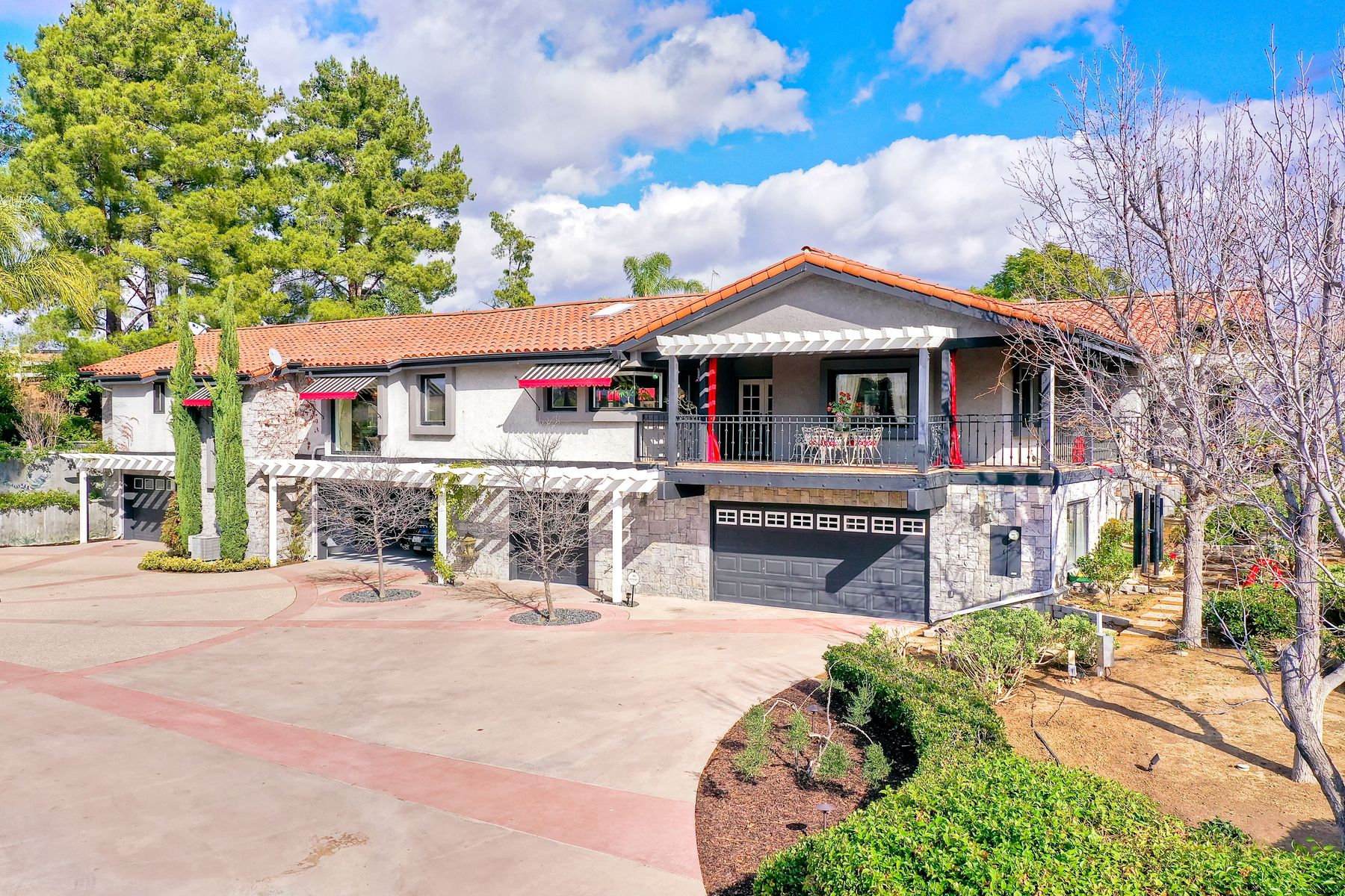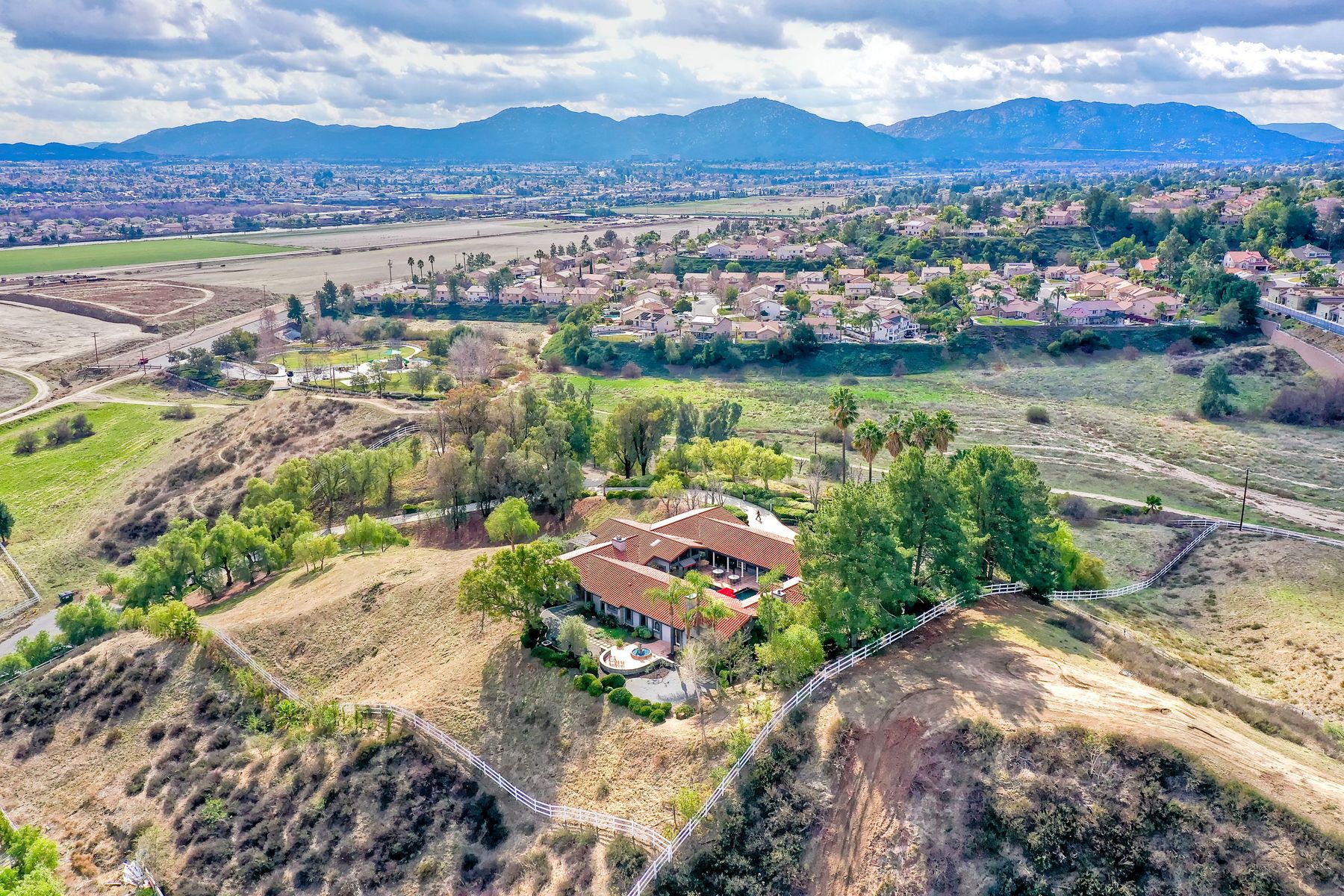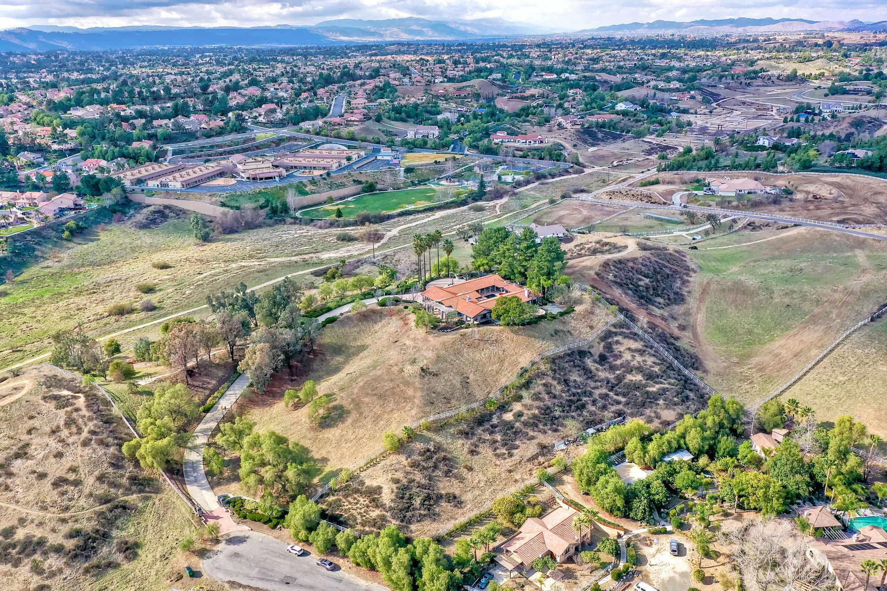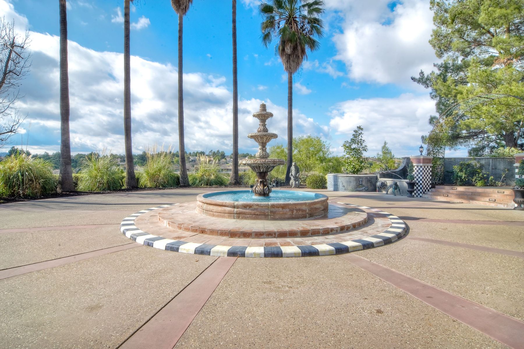 Step into another era with a side of Hollywood glam! Gated, tree-lined drive w/turnabout leads to a beautiful, Mediterranean, custom built, FULLY FENCED, 5 acre, 5,122sf, 1-level, hilltop estate in Temecula Wine Country. Located on a private cul-de-sac in Country Road Estates, this property was designed after ‘The Getty Villa’ and is FENG SHUI (including grounds) w/3 beautifully sculpted fountains & 4+ verandas to experience PANORMIC VIEWS. Perfect for LUXURY VACATION RENTAL. Lower 1+/- acre flat, useable area w/room for guest home/barn/vineyard. Natural light accentuates custom architectural features throughout. Double leaded glass doors open to Entry, Living Room w/fireplace, 18’ ceilings & Dining Room. Hallways w/French doors lead to unique Master Suite, Office w/fireplace, Studio & secondary Bedrooms surrounding courtyard SALTWATER, PEBBLE TEC POOL/SPA. Large Chef’s Kitchen w/granite island, NEW Subzero, 6-person counter seating & open to Family Room. Elevator & private back staircase to OVERSIZED 7-CAR GARAGE & Wine Room. Garage has Kitchenette, full Bath & epoxy floors. Pool/Spa accessible from almost every room. Enjoy breathtaking sunrises & sunsets in the many picturesque gardens & hilltop gazebo. Temecula Wine Country known as Napa Valley of Southern California, 40+ award-winning wineries & Top 10 wine travel destinations according to Conde Nast Traveler magazine. REALTORS – PLEASE SHARE MLS SUPPLEMENTS W/CLIENTS