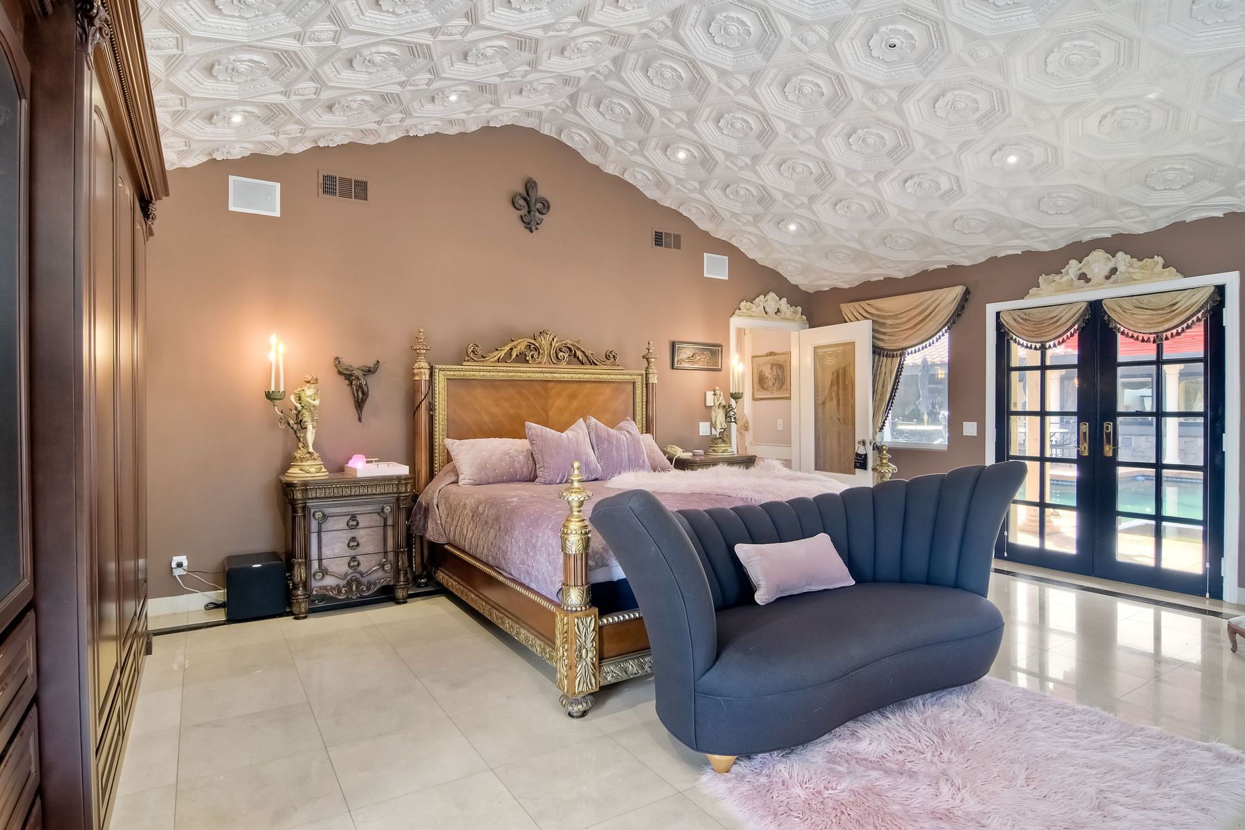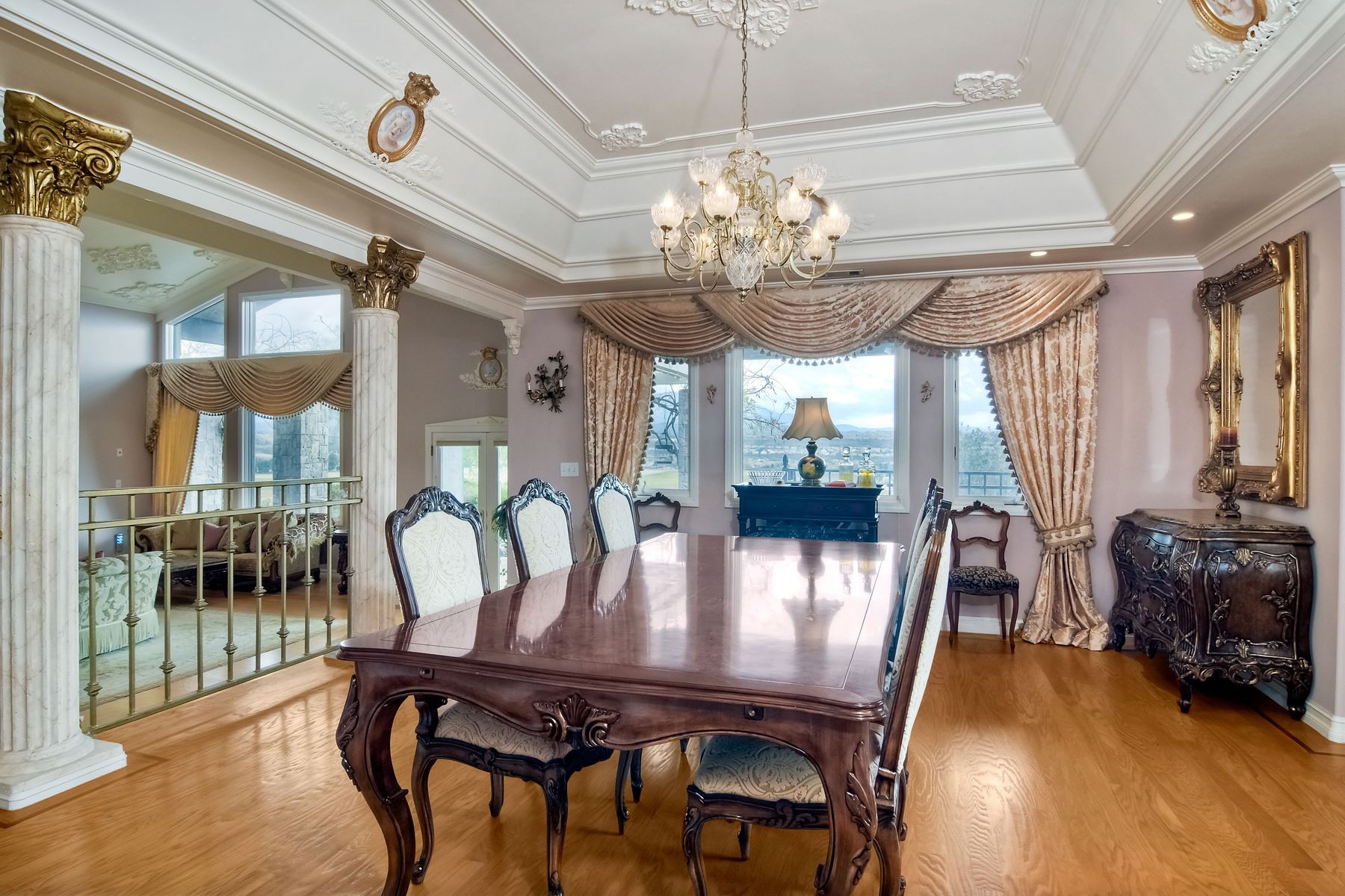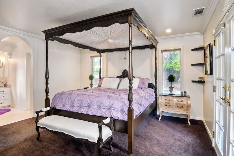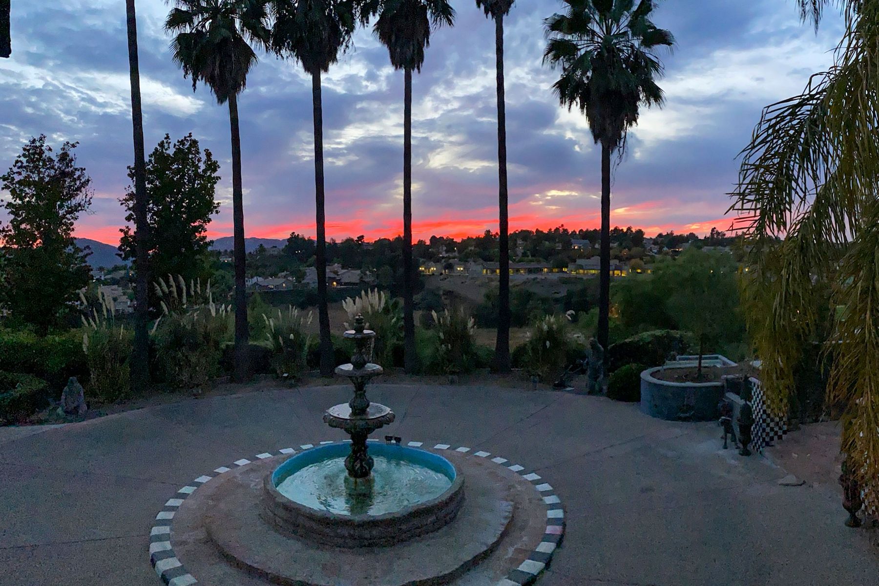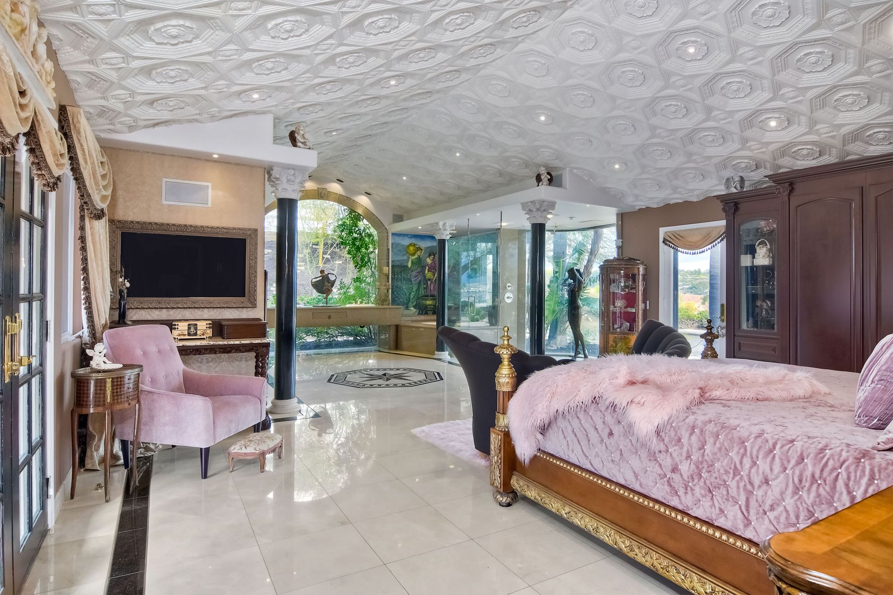 Step into another era with a side of Hollywood glam! Gated, tree-lined drive w/turnabout leads to a beautiful, Mediterranean, custom built, FULLY FENCED, 5 acre, 5,122sf, 1-level, hilltop estate in Temecula Wine Country. Located on a private cul-de-sac in Country Road Estates, this property was designed after ‘The Getty Villa’ and is FENG SHUI (including grounds) w/3 beautifully sculpted fountains & 4+ verandas to experience PANORMIC VIEWS. Perfect for LUXURY VACATION RENTAL. Lower 1+/- acre flat, useable area w/room for guest home/barn/vineyard. Natural light accentuates custom architectural features throughout. Double leaded glass doors open to Entry, Living Room w/fireplace, 18’ ceilings & Dining Room. Hallways w/French doors lead to unique Master Suite, Office w/fireplace, Studio & secondary Bedrooms surrounding courtyard SALTWATER, PEBBLE TEC POOL/SPA. Large Chef’s Kitchen w/granite island, NEW Subzero, 6-person counter seating & open to Family Room. Elevator & private back staircase to OVERSIZED 7-CAR GARAGE & Wine Room. Garage has Kitchenette, full Bath & epoxy floors. Pool/Spa accessible from almost every room. Enjoy breathtaking sunrises & sunsets in the many picturesque gardens & hilltop gazebo. Temecula Wine Country known as Napa Valley of Southern California, 40+ award-winning wineries & Top 10 wine travel destinations according to Conde Nast Traveler magazine. REALTORS – PLEASE SHARE MLS SUPPLEMENTS W/CLIENTS