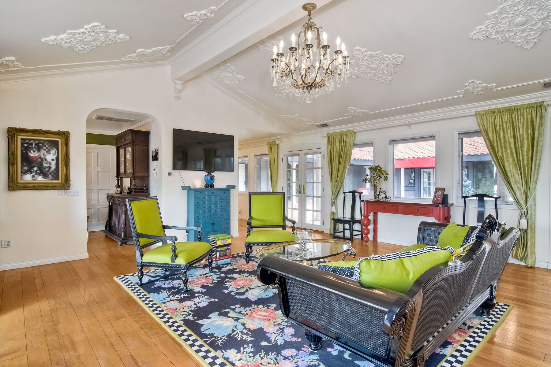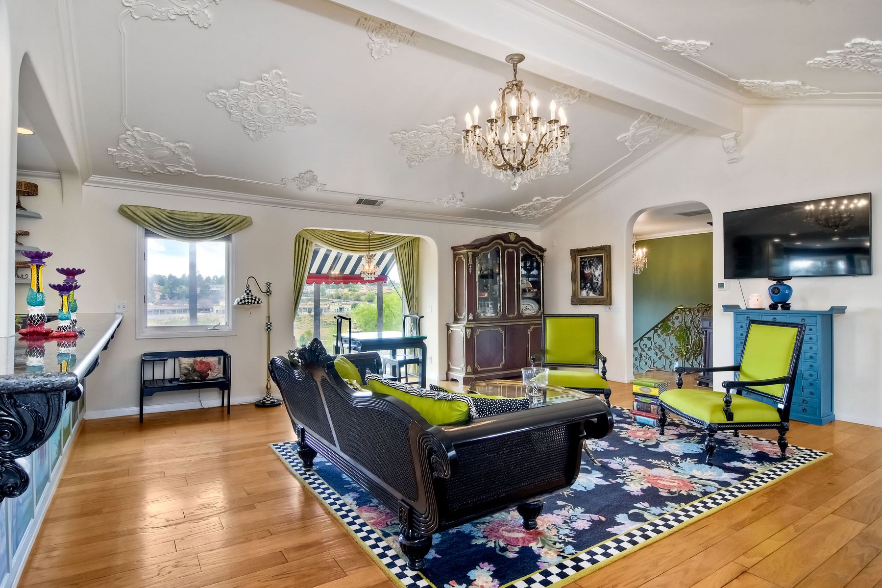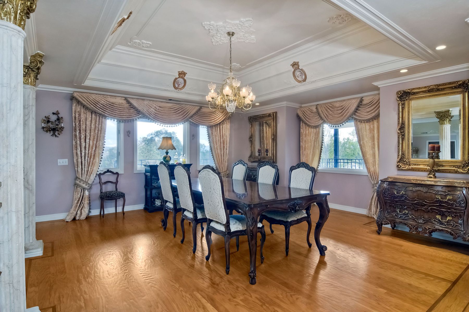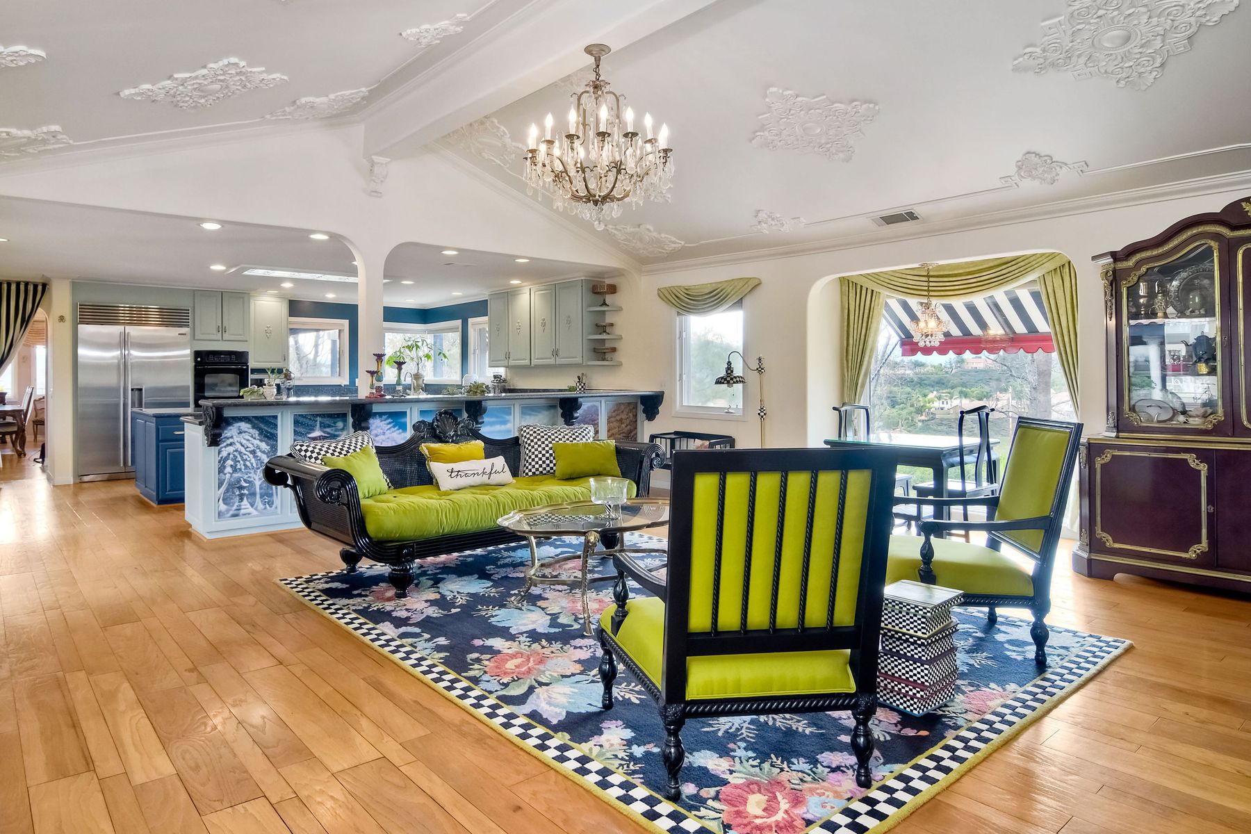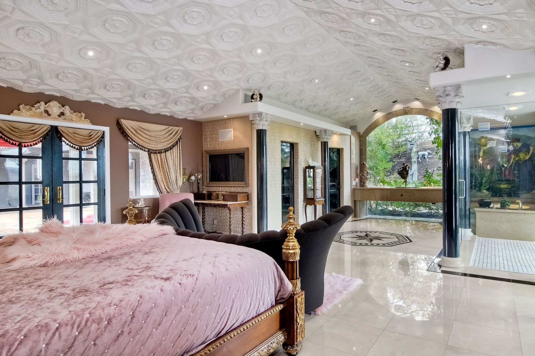 Step into another era with a side of Hollywood glam! Gated, tree-lined drive w/turnabout leads to a beautiful, Mediterranean, custom built, FULLY FENCED, 5 acre, 5,122sf, 1-level, hilltop estate in Temecula Wine Country. Located on a private cul-de-sac in Country Road Estates, this property was designed after ‘The Getty Villa’ and is FENG SHUI (including grounds) w/3 beautifully sculpted fountains & 4+ verandas to experience PANORMIC VIEWS. Perfect for LUXURY VACATION RENTAL. Lower 1+/- acre flat, useable area w/room for guest home/barn/vineyard. Natural light accentuates custom architectural features throughout. Double leaded glass doors open to Entry, Living Room w/fireplace, 18’ ceilings & Dining Room. Hallways w/French doors lead to unique Master Suite, Office w/fireplace, Studio & secondary Bedrooms surrounding courtyard SALTWATER, PEBBLE TEC POOL/SPA. Large Chef’s Kitchen w/granite island, NEW Subzero, 6-person counter seating & open to Family Room. Elevator & private back staircase to OVERSIZED 7-CAR GARAGE & Wine Room. Garage has Kitchenette, full Bath & epoxy floors. Pool/Spa accessible from almost every room. Enjoy breathtaking sunrises & sunsets in the many picturesque gardens & hilltop gazebo. Temecula Wine Country known as Napa Valley of Southern California, 40+ award-winning wineries & Top 10 wine travel destinations according to Conde Nast Traveler magazine. REALTORS – PLEASE SHARE MLS SUPPLEMENTS W/CLIENTS