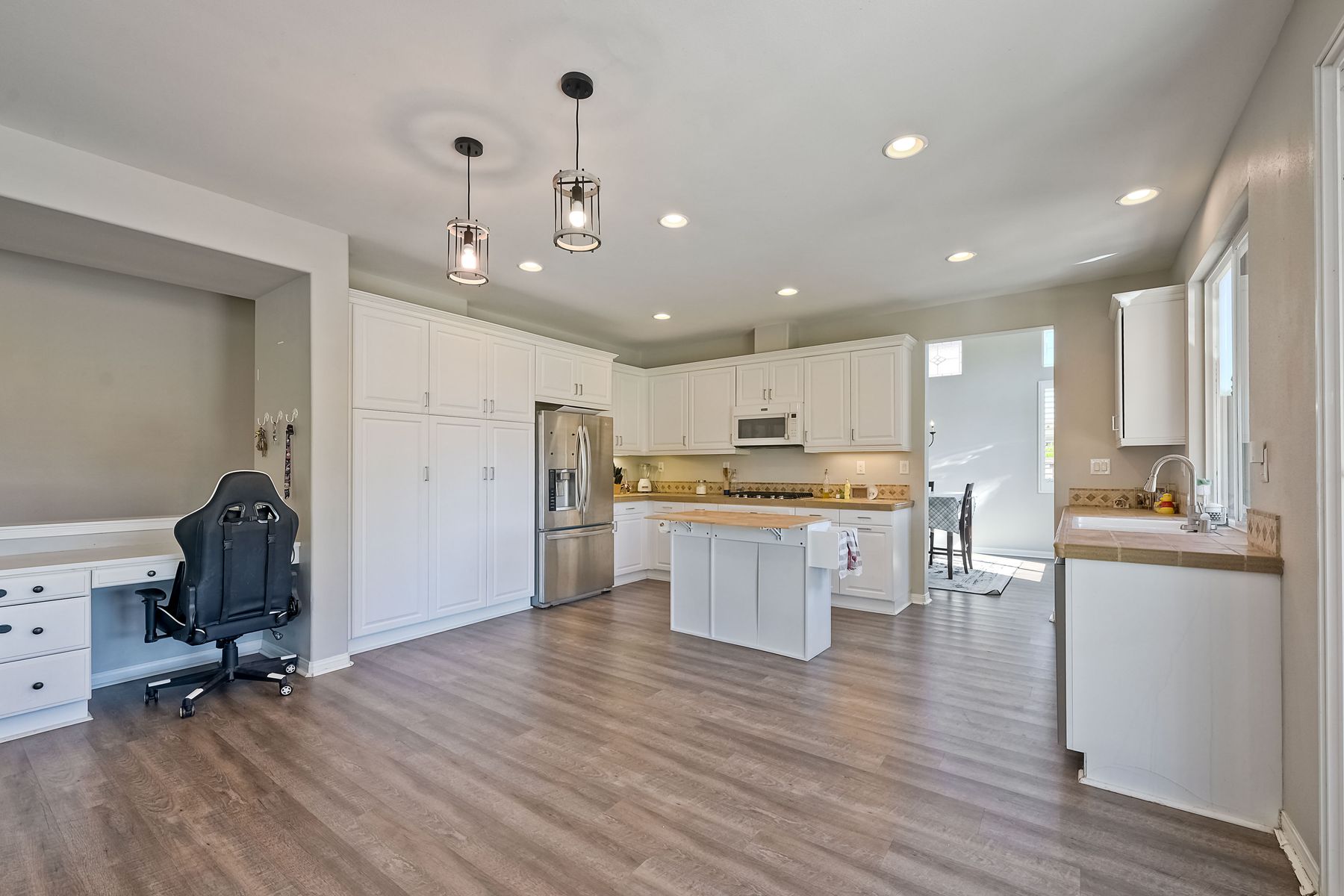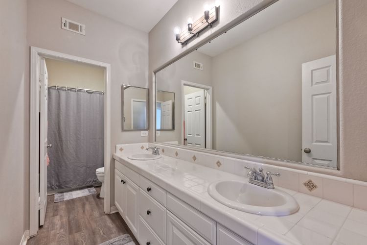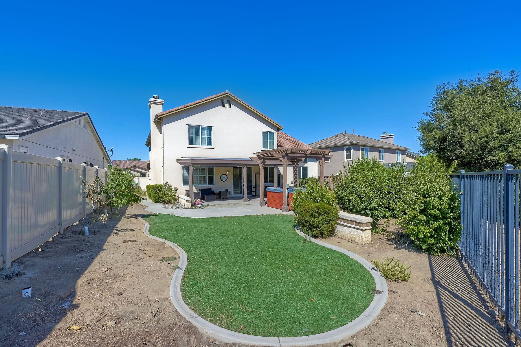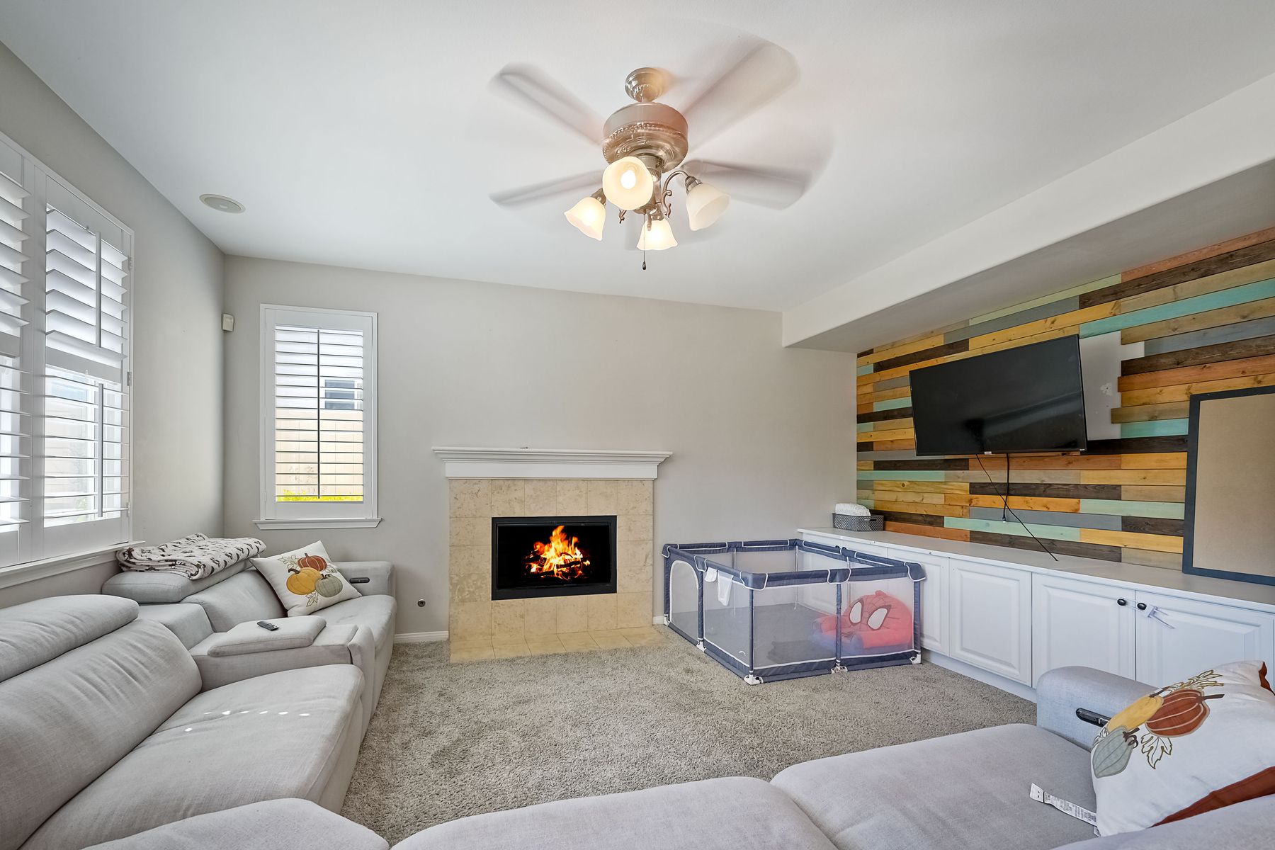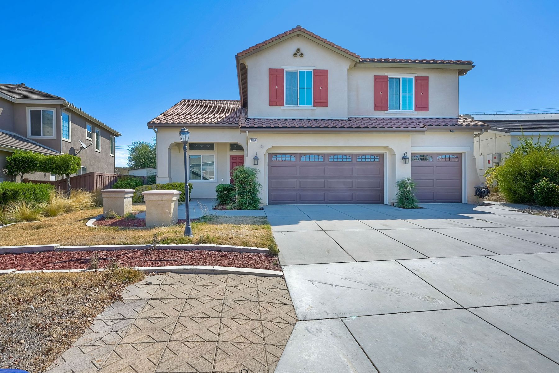 OWNED SOLAR. VIEWS! Discover your dream home in the highly sought-after community of The Farm! This spacious 4 bedroom, 2.5 bathroom home is the perfect gathering spot for friends and family. Step into an expansive great room with soaring ceilings that flows seamlessly into a separate dining area, creating an inviting atmosphere. Downstairs features an open concept family room that has built-in storage and a cozy fire place. The kitchen is equipped with newer appliances and ample cabinet space, ideal for all your culinary adventures. Upstairs, the generously sized primary bedroom includes a spa-like bathroom with a walk-in closet, dual sink vanities, a soaking tub, a separate shower, and an additional vanity area. Additionally, upstairs offers three more well-appointed bedrooms, a full bathroom, and a specially designed workspace that provides flexibility for your needs. Relax in a beautifully landscaped backyard featuring artificial turf, a covered hardscaped patio with a ceiling fan, an above-ground spa, and mature orange trees—all framed by stunning views of the surrounding hills. The home includes a spacious laundry room and a 3-car garage for all your storage needs. The community offers an array of amenities, including 3 pools, 2 spas, hiking trails, picnic areas, playgrounds, a basketball court, soccer and baseball fields, a catch-and-release fishing pond, and RV storage. Convenient access to freeways. Don’t miss out on this incredible opportunity to own a home that perfectly blends comfort, style, and community!