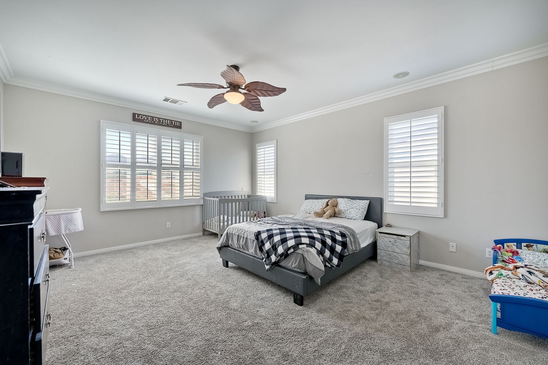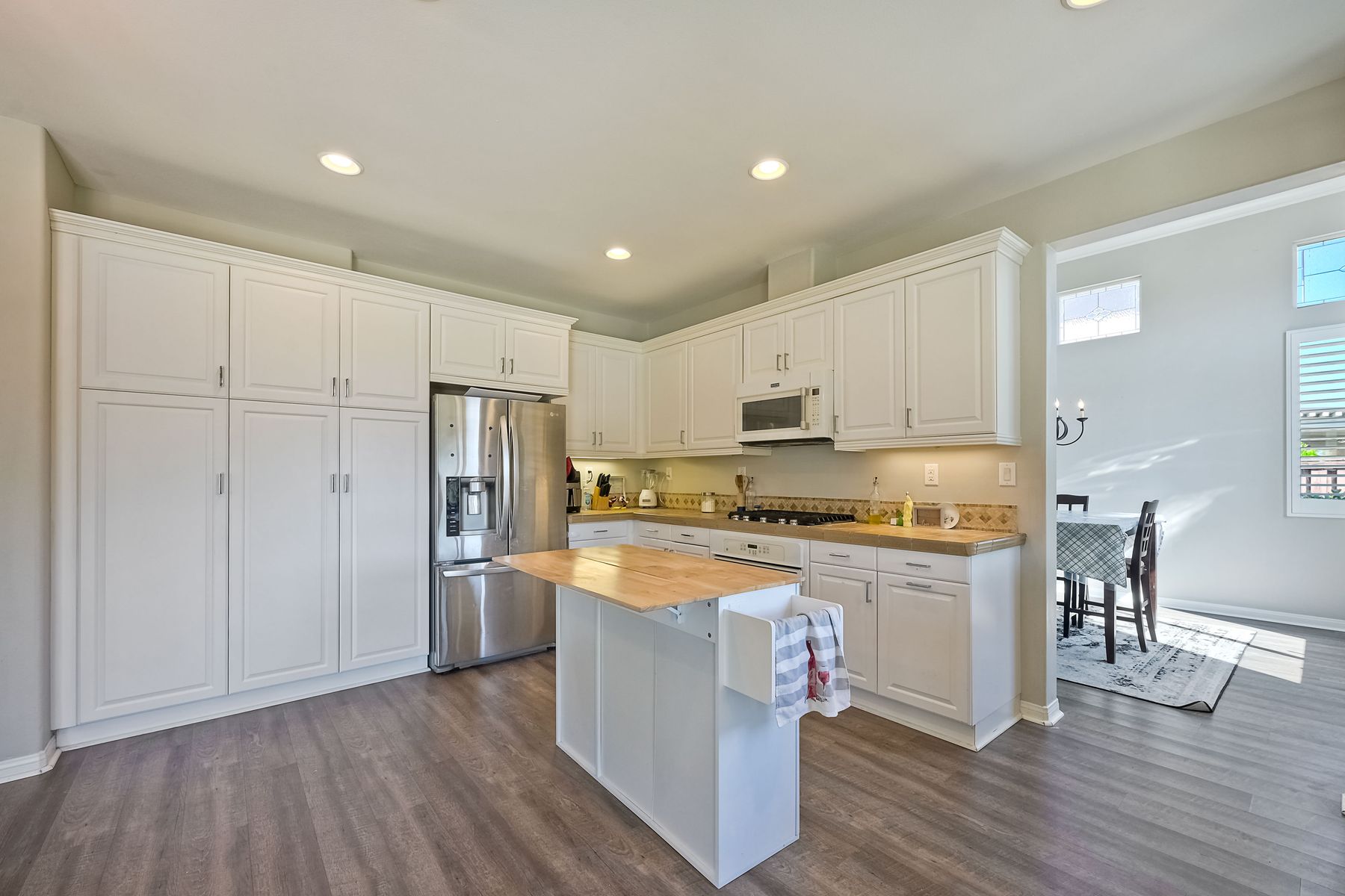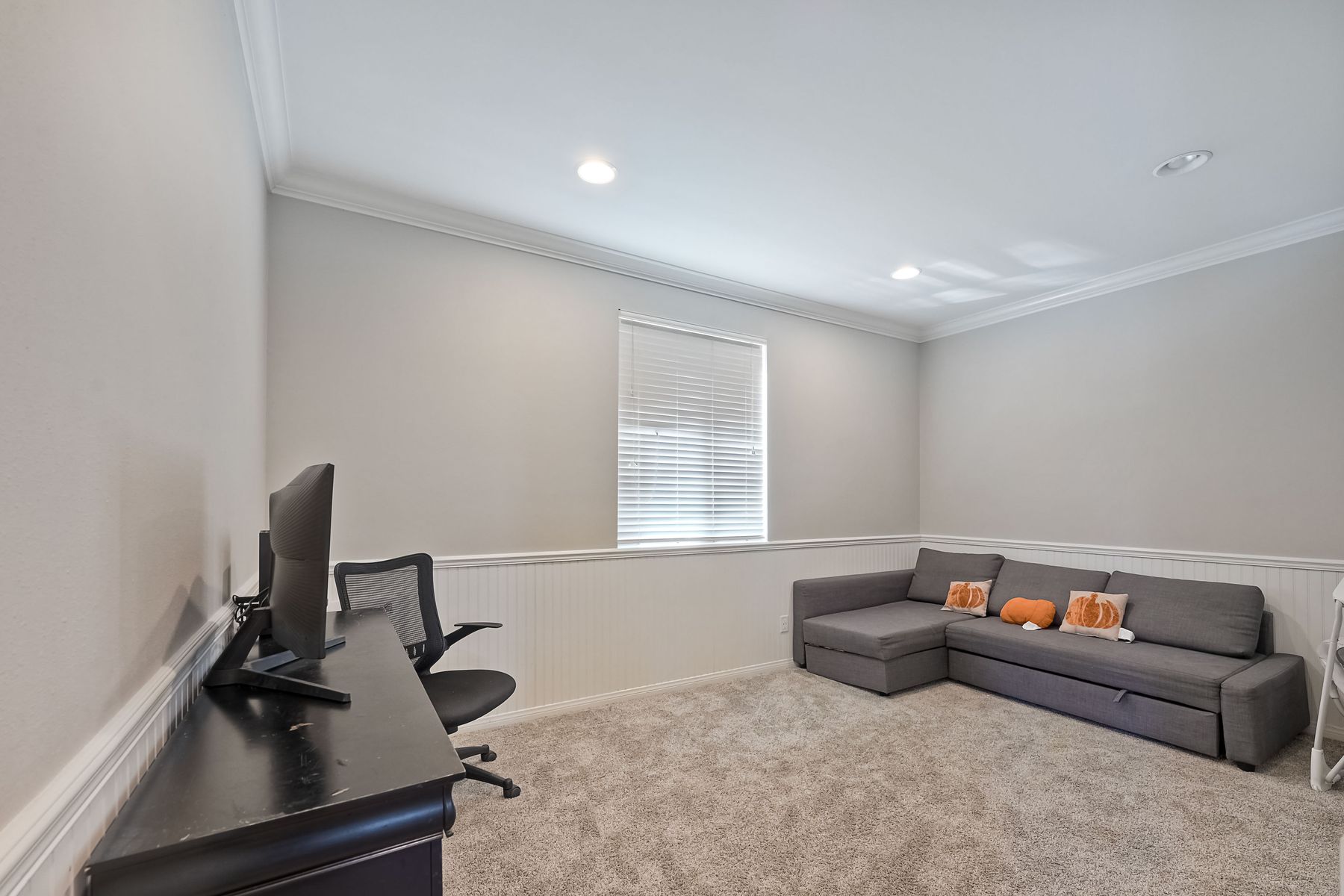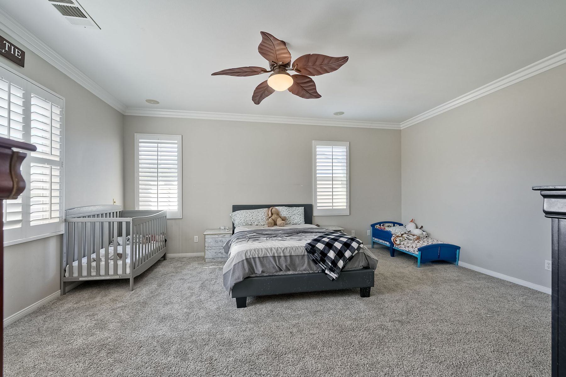 OWNED SOLAR. VIEWS! Discover your dream home in the highly sought-after community of The Farm! This spacious 4 bedroom, 2.5 bathroom home is the perfect gathering spot for friends and family. Step into an expansive great room with soaring ceilings that flows seamlessly into a separate dining area, creating an inviting atmosphere. Downstairs features an open concept family room that has built-in storage and a cozy fire place. The kitchen is equipped with newer appliances and ample cabinet space, ideal for all your culinary adventures. Upstairs, the generously sized primary bedroom includes a spa-like bathroom with a walk-in closet, dual sink vanities, a soaking tub, a separate shower, and an additional vanity area. Additionally, upstairs offers three more well-appointed bedrooms, a full bathroom, and a specially designed workspace that provides flexibility for your needs. Relax in a beautifully landscaped backyard featuring artificial turf, a covered hardscaped patio with a ceiling fan, an above-ground spa, and mature orange trees—all framed by stunning views of the surrounding hills. The home includes a spacious laundry room and a 3-car garage for all your storage needs. The community offers an array of amenities, including 3 pools, 2 spas, hiking trails, picnic areas, playgrounds, a basketball court, soccer and baseball fields, a catch-and-release fishing pond, and RV storage. Convenient access to freeways. Don’t miss out on this incredible opportunity to own a home that perfectly blends comfort, style, and community!