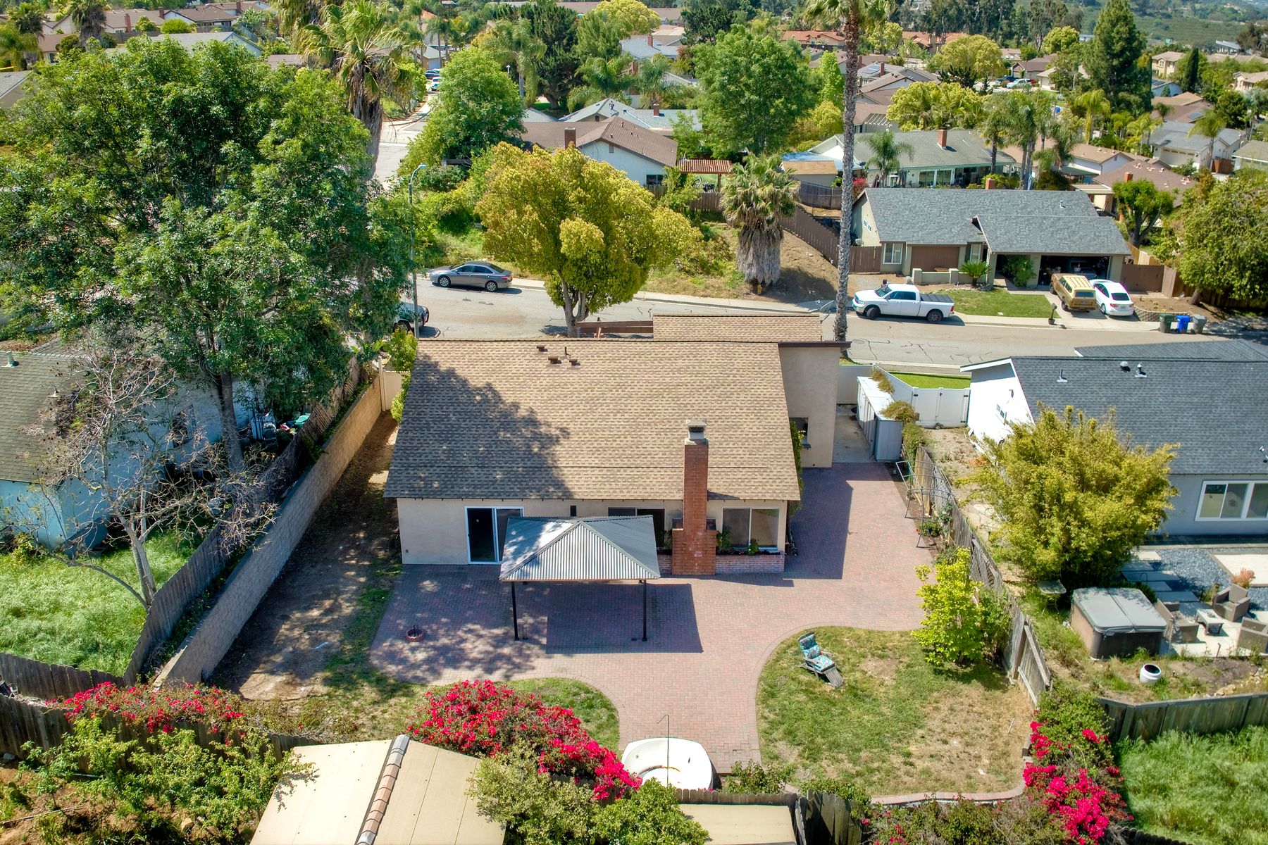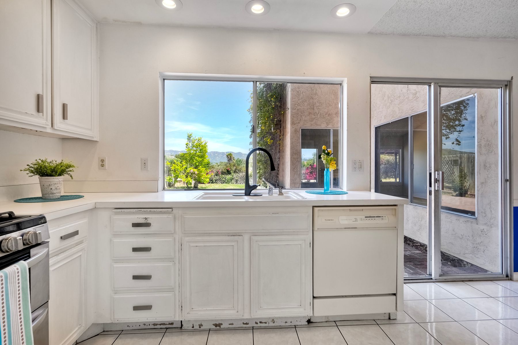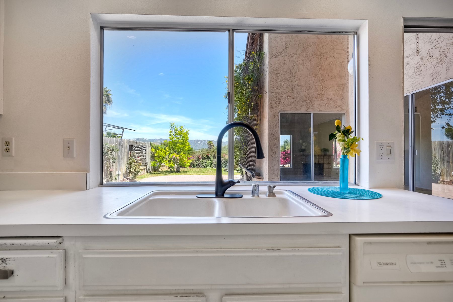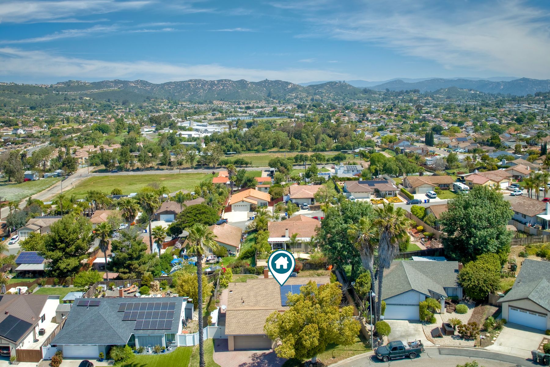 Amazing Views from this 4 Bedroom 2 Bathroom Single-level home located in the desirable San Marcos neighborhood of Grove Park! Near beautiful parks, the 78 freeway, shopping, dining, & more! Priced to sell & ready to move in as fast as you can close. Enjoy the light, bright kitchen with a view, convenient eating area with built in buffet cabinet and sliding door which allows direct access to large rear yard. Open Living & dining room with vaulted ceilings, Fireplace and more beautiful views. 3 bedrooms and 1 bathroom are located at the front of the home, while the private primary suite is tucked away in the back for added tranquility. The primary bedroom features a remodeled en-suite bathroom, a spacious walk-in closet, and its own private entrance to the backyard, where you'll wake up to views of the mountains! Additional features include Leased solar (currently $103/month), Tesla charging plug, newer roof, tile flooring in kitchen & baths, pull down attic stairs /added storage. Outside, enjoy the front walkway, driveway & backyard patio all beautifully done in pavers. Relax in the inviting rear yard as you take in amazing mountain views. Added storage with side yard sheds. This large lot also offers RV Parking! No Mello Roos & low HOA. Highly rated San Marcos schools. Absolutely do not miss!