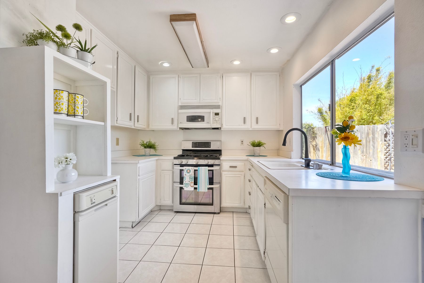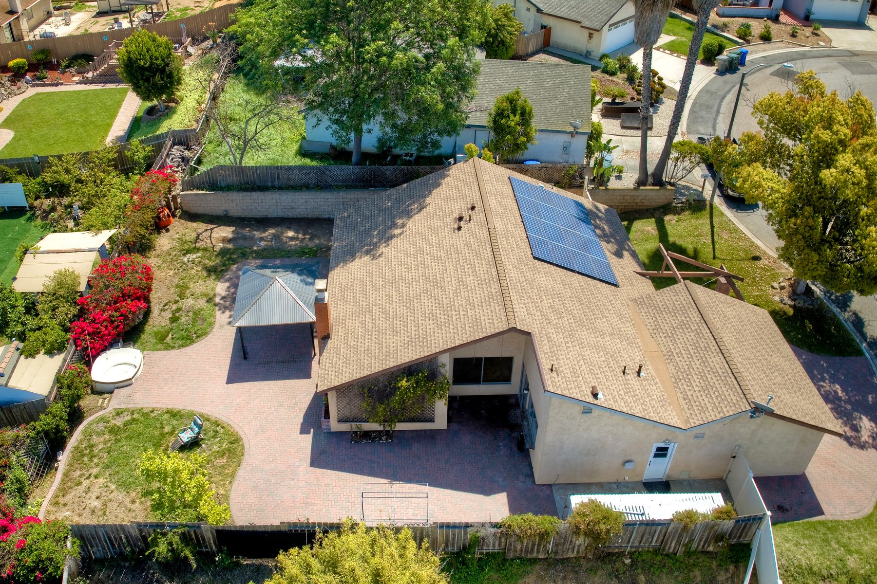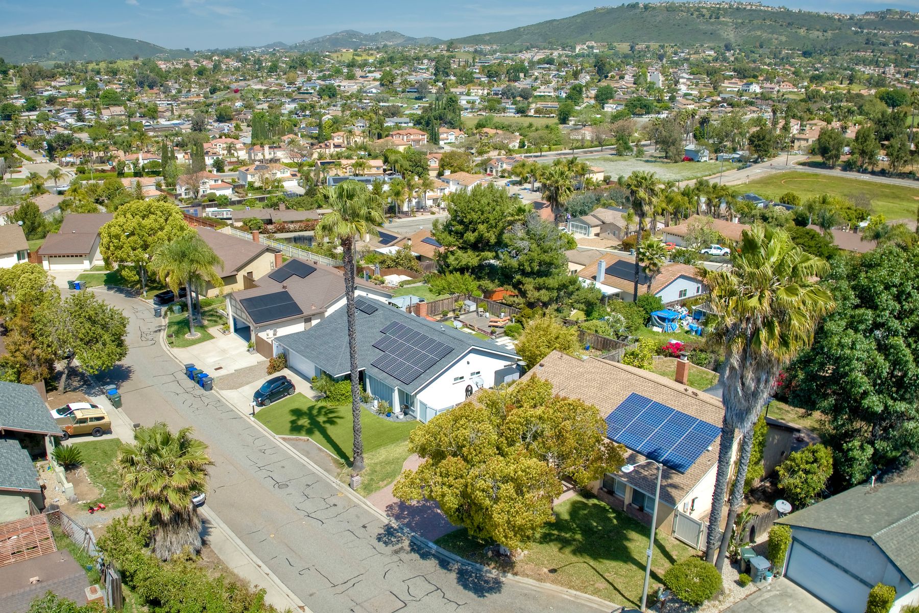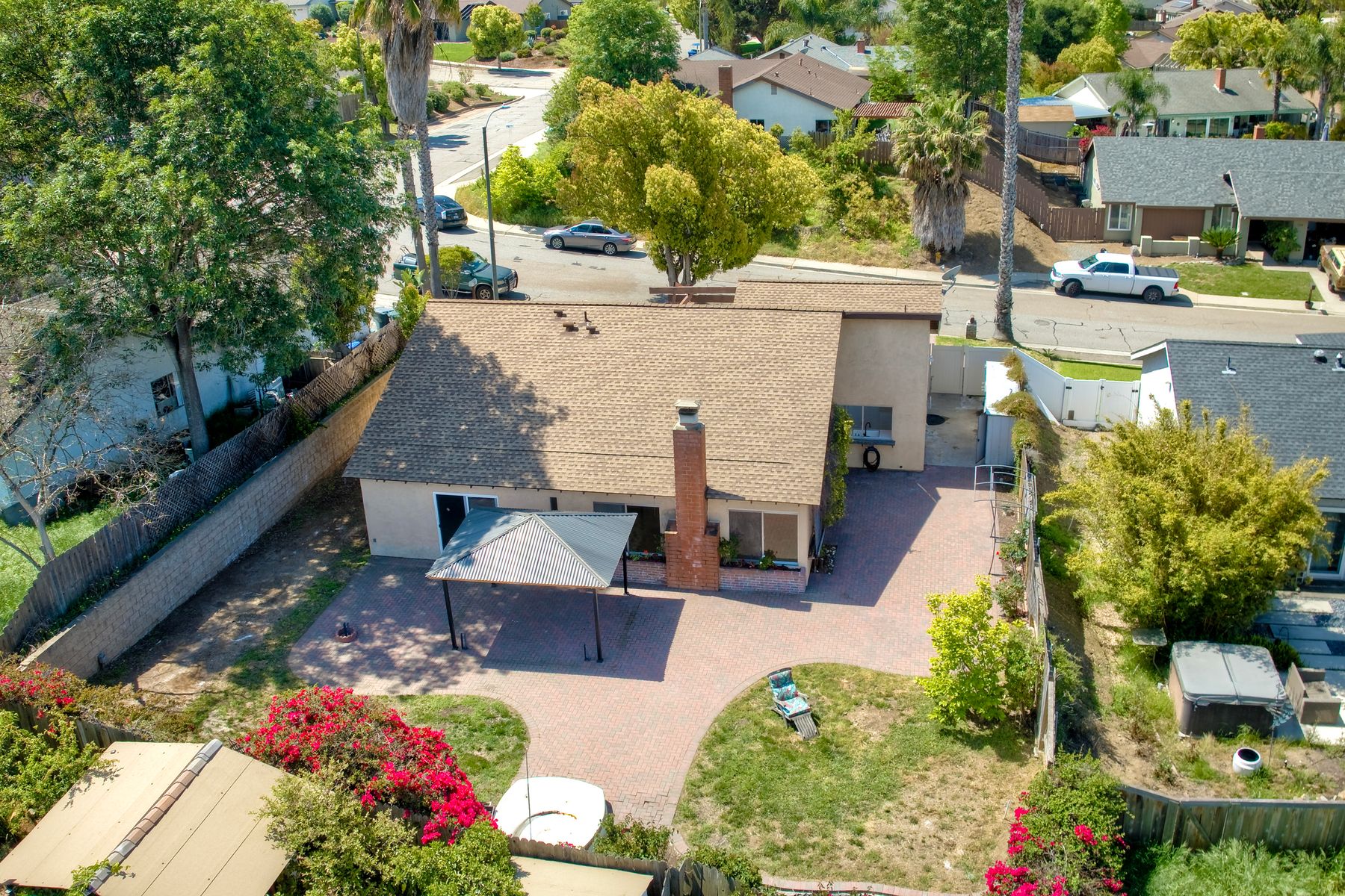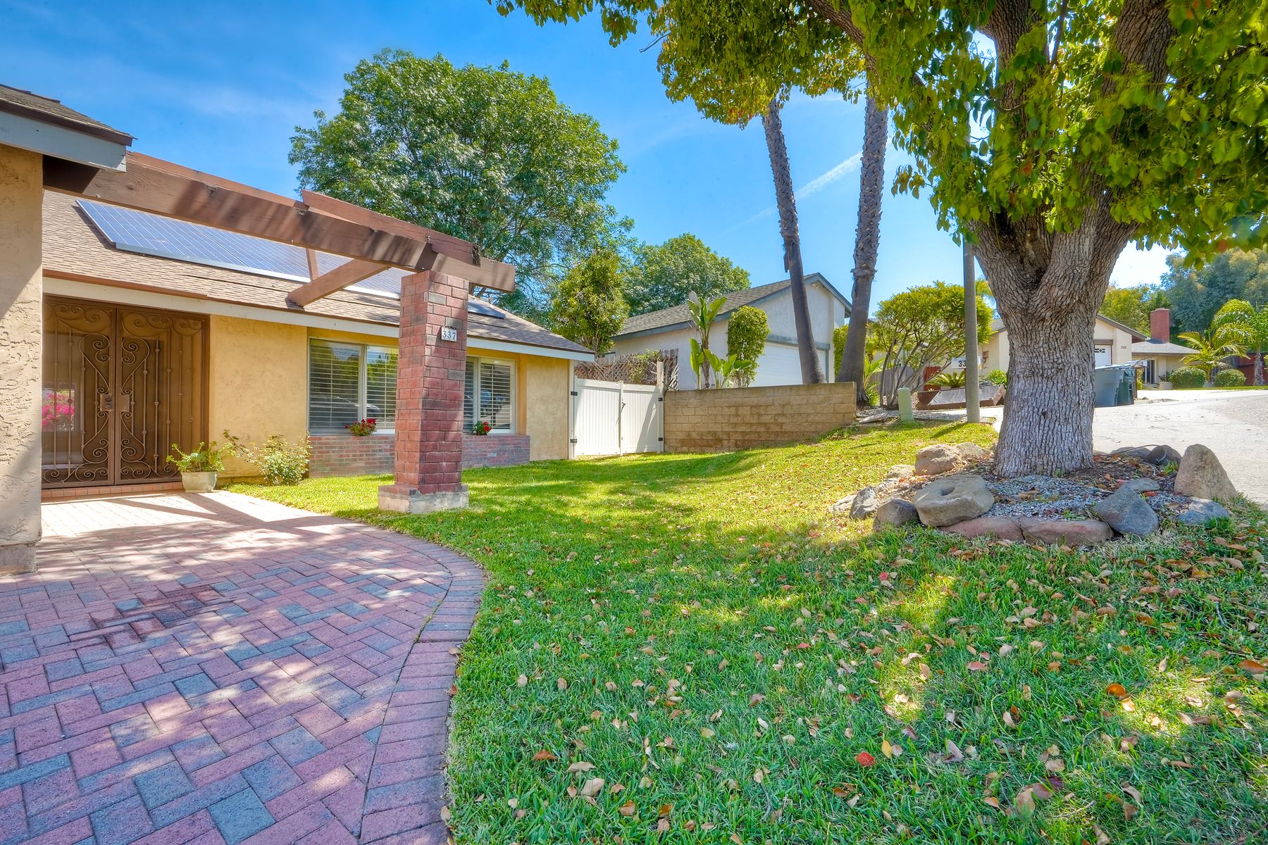 Amazing Views from this 4 Bedroom 2 Bathroom Single-level home located in the desirable San Marcos neighborhood of Grove Park! Near beautiful parks, the 78 freeway, shopping, dining, & more! Priced to sell & ready to move in as fast as you can close. Enjoy the light, bright kitchen with a view, convenient eating area with built in buffet cabinet and sliding door which allows direct access to large rear yard. Open Living & dining room with vaulted ceilings, Fireplace and more beautiful views. 3 bedrooms and 1 bathroom are located at the front of the home, while the private primary suite is tucked away in the back for added tranquility. The primary bedroom features a remodeled en-suite bathroom, a spacious walk-in closet, and its own private entrance to the backyard, where you'll wake up to views of the mountains! Additional features include Leased solar (currently $103/month), Tesla charging plug, newer roof, tile flooring in kitchen & baths, pull down attic stairs /added storage. Outside, enjoy the front walkway, driveway & backyard patio all beautifully done in pavers. Relax in the inviting rear yard as you take in amazing mountain views. Added storage with side yard sheds. This large lot also offers RV Parking! No Mello Roos & low HOA. Highly rated San Marcos schools. Absolutely do not miss!