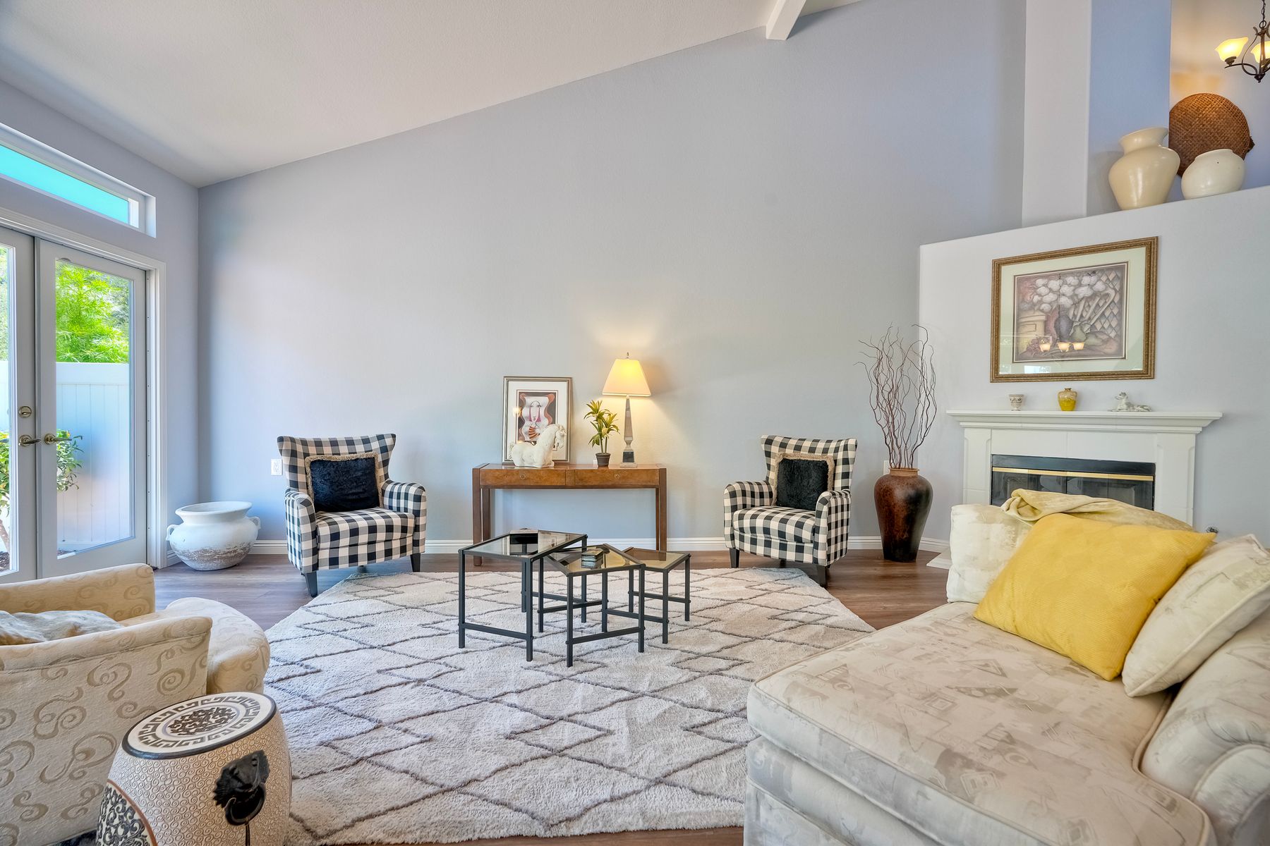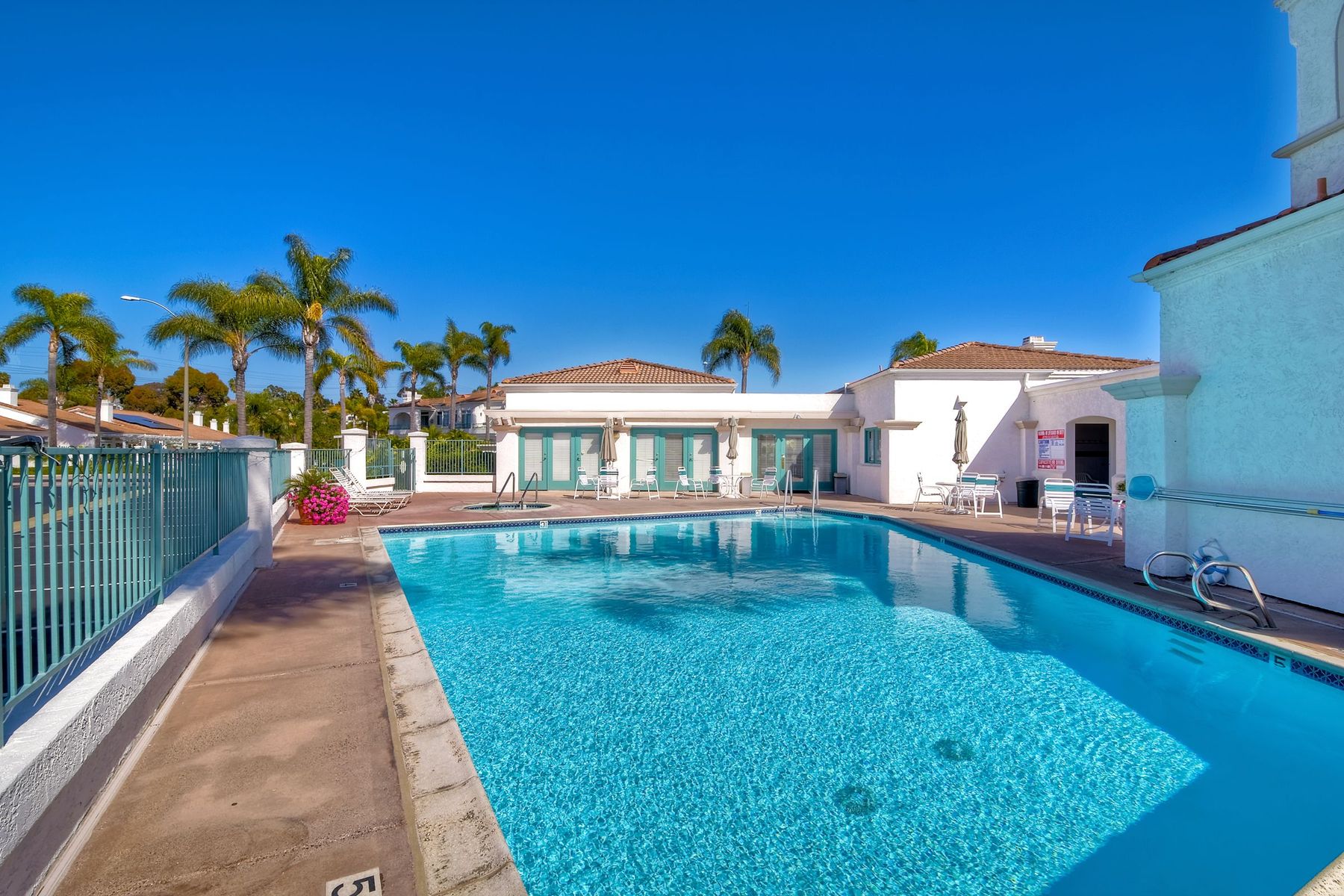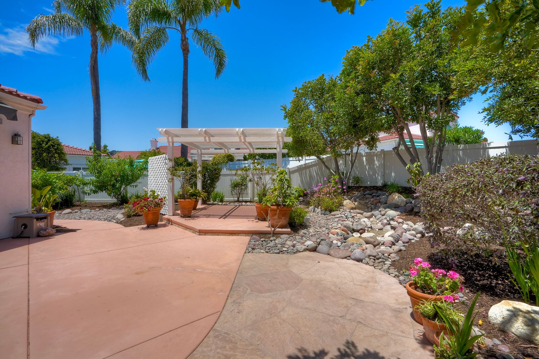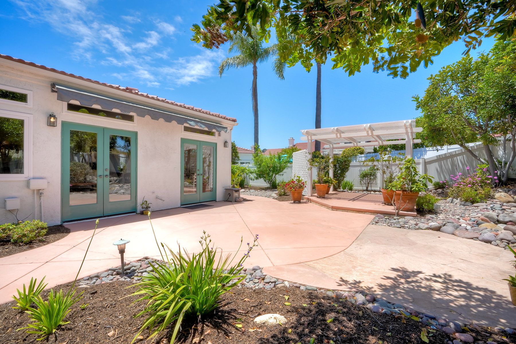 Welcome to refreshing ocean breezes and resort style living at Villa Trieste! This very special home, is the largest floor plan on the largest lot in the community. Step inside to vaulted beamed ceilings in the great room which features a gas fireplace and 2 sets of French doors that lead to the private back yard with mature shade trees, a freshly painted pergola, and no neighbors behind you! In the kitchen you’ll find granite counters, a breakfast nook and another set of French doors that open out to the back patio to make entertaining and alfresco dining so much more convenient. Under the stairs that lead to the loft you will find large storage space. The loft is a great open space; it could be whatever you imagine whether it be a billiard room or extra guest space. We have a well-appointed laundry room with cabinets with a laundry sink. All bedrooms are on the first floor. The primary bedroom is spacious with high ceilings, a huge closet, and a beautiful ensuite bathroom with a walk-in shower and large vanity with 2 sinks! This patio home lives like a detached single-family house. Enjoy the sparkling pool and spa at the club house and game room. Throw a round of bocce ball or take an easy hike up the community trail to catch a sunset! There is plenty of guest parking. Located close to shopping, golf, El Camino Country Club, restaurants and transit. This is coastal living at its best