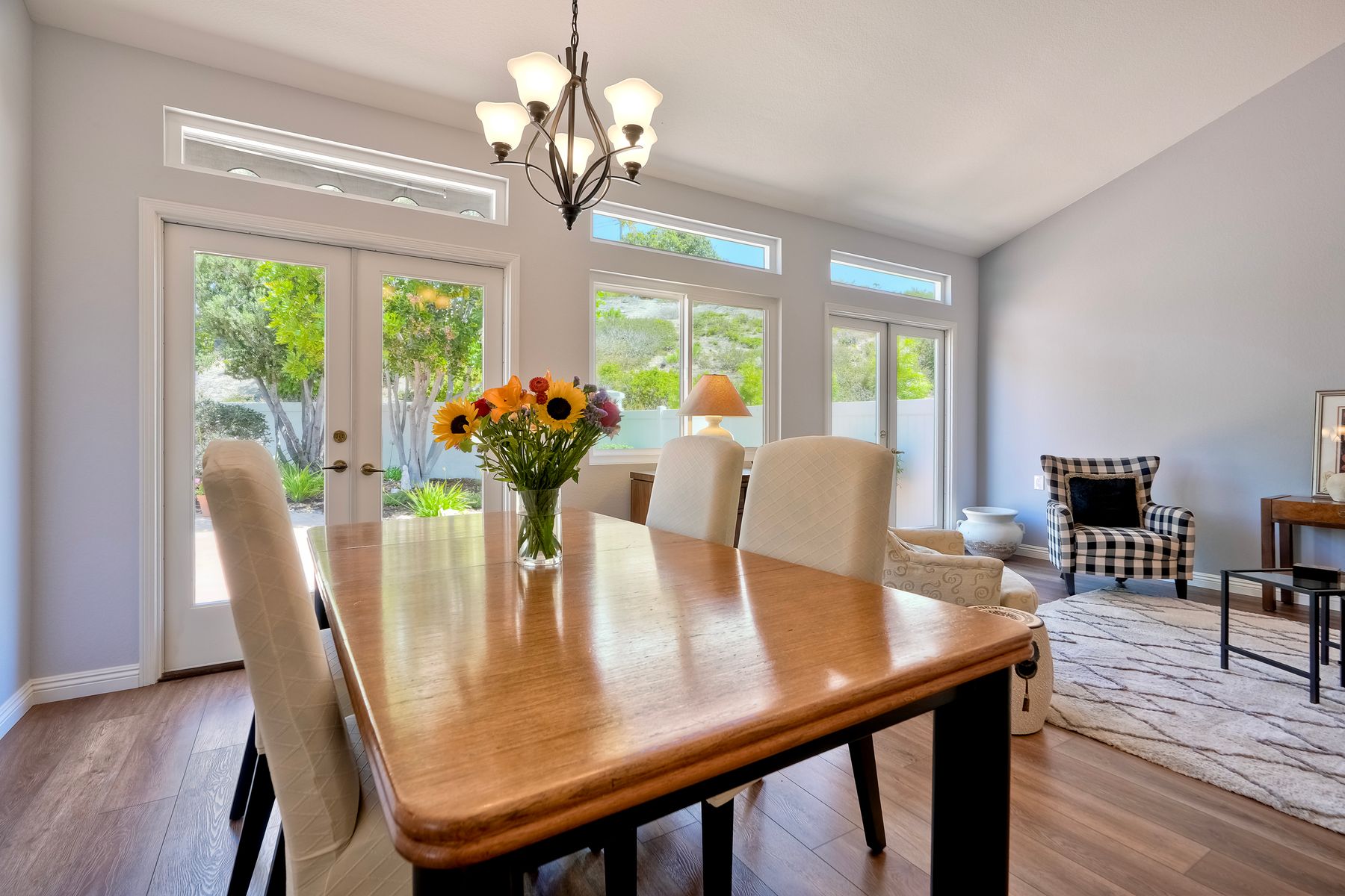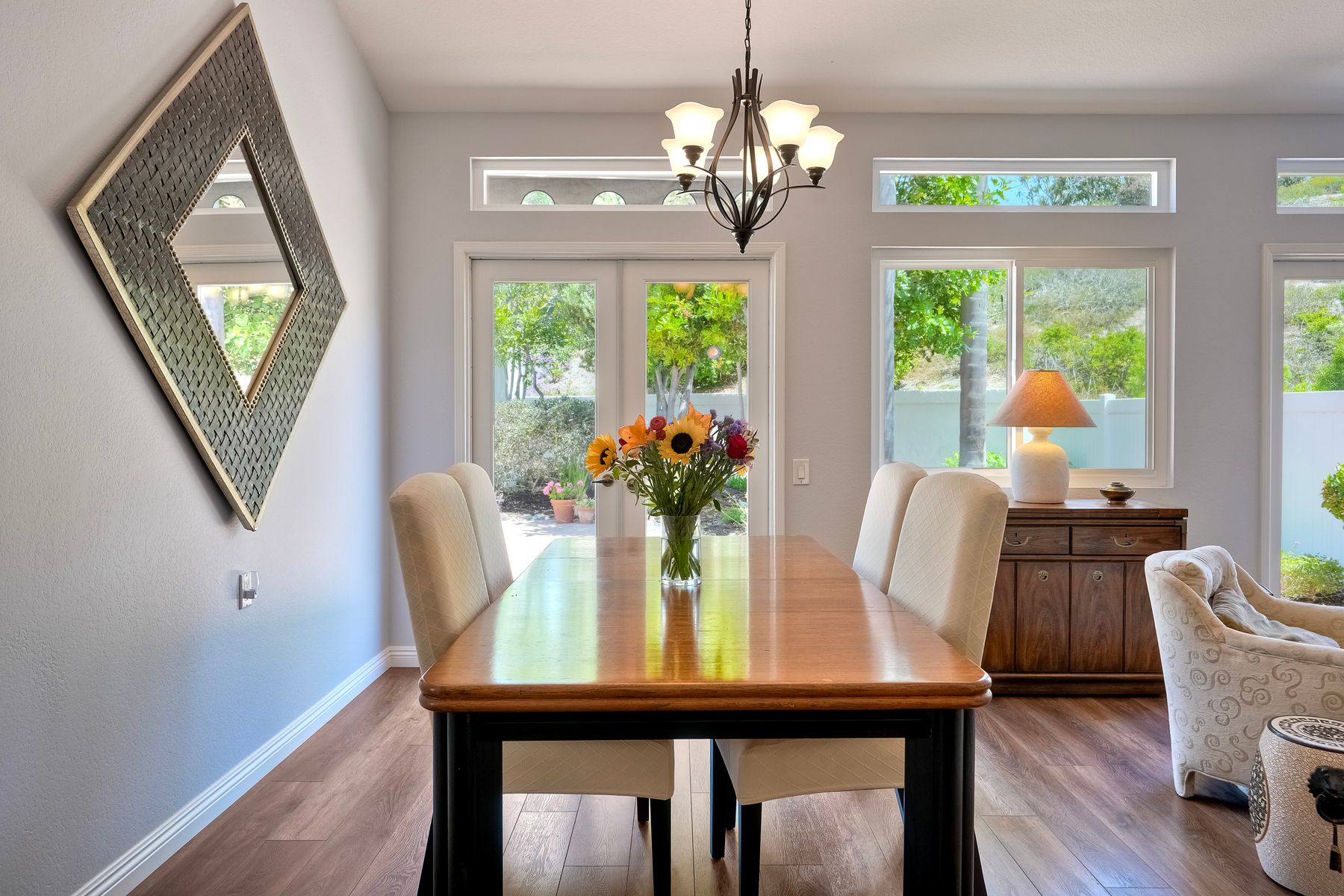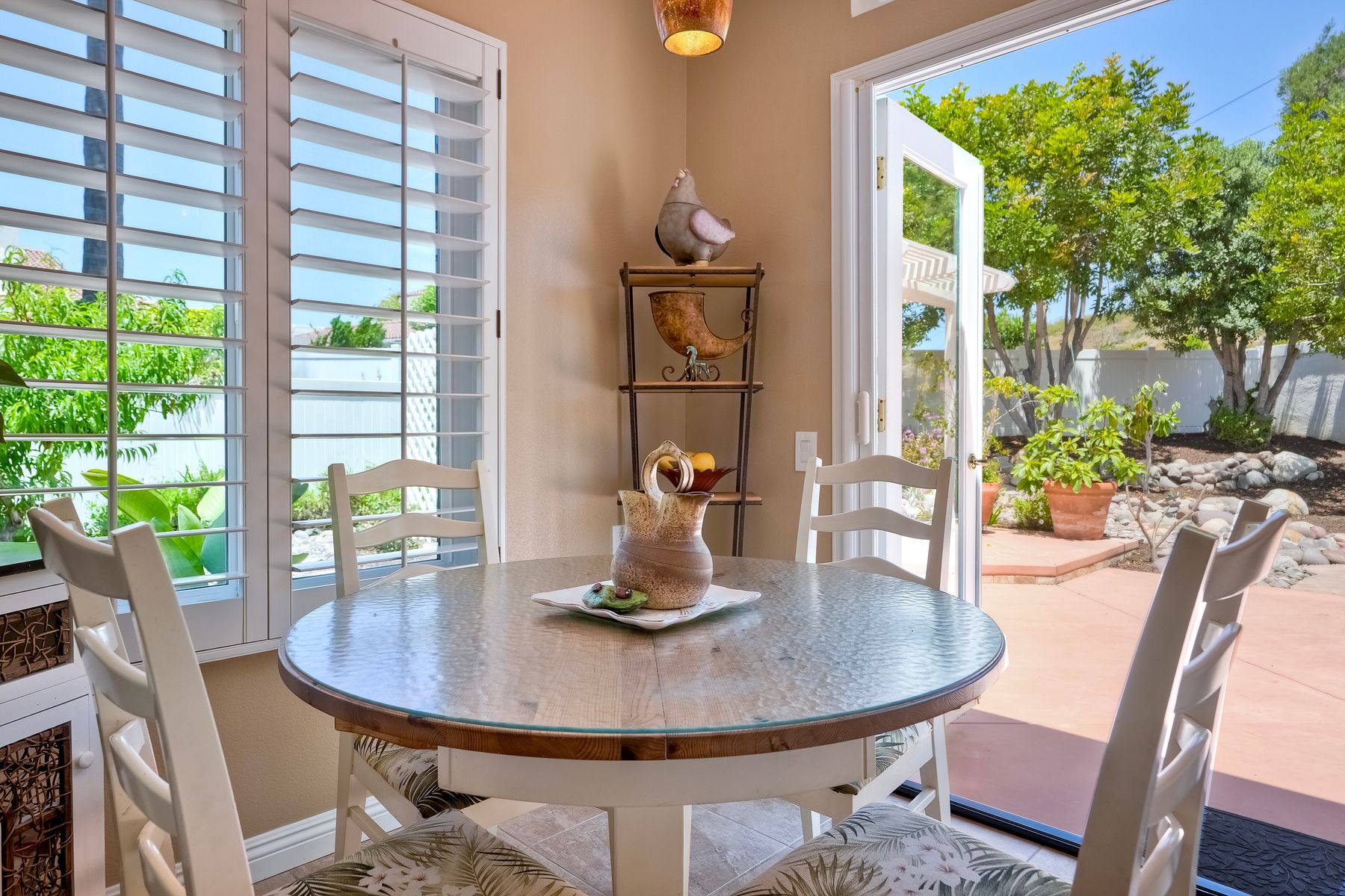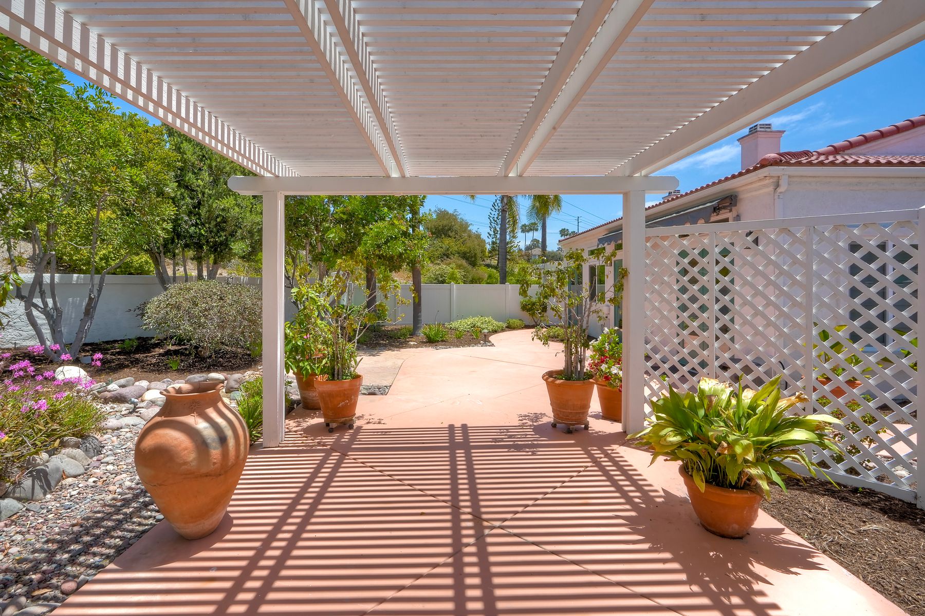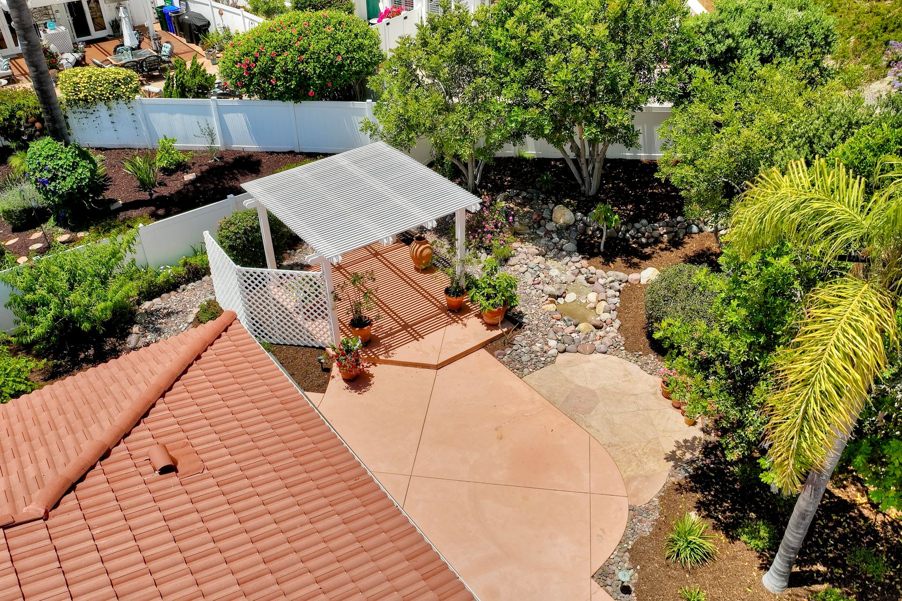 Welcome to refreshing ocean breezes and resort style living at Villa Trieste! This very special home, is the largest floor plan on the largest lot in the community. Step inside to vaulted beamed ceilings in the great room which features a gas fireplace and 2 sets of French doors that lead to the private back yard with mature shade trees, a freshly painted pergola, and no neighbors behind you! In the kitchen you’ll find granite counters, a breakfast nook and another set of French doors that open out to the back patio to make entertaining and alfresco dining so much more convenient. Under the stairs that lead to the loft you will find large storage space. The loft is a great open space; it could be whatever you imagine whether it be a billiard room or extra guest space. We have a well-appointed laundry room with cabinets with a laundry sink. All bedrooms are on the first floor. The primary bedroom is spacious with high ceilings, a huge closet, and a beautiful ensuite bathroom with a walk-in shower and large vanity with 2 sinks! This patio home lives like a detached single-family house. Enjoy the sparkling pool and spa at the club house and game room. Throw a round of bocce ball or take an easy hike up the community trail to catch a sunset! There is plenty of guest parking. Located close to shopping, golf, El Camino Country Club, restaurants and transit. This is coastal living at its best