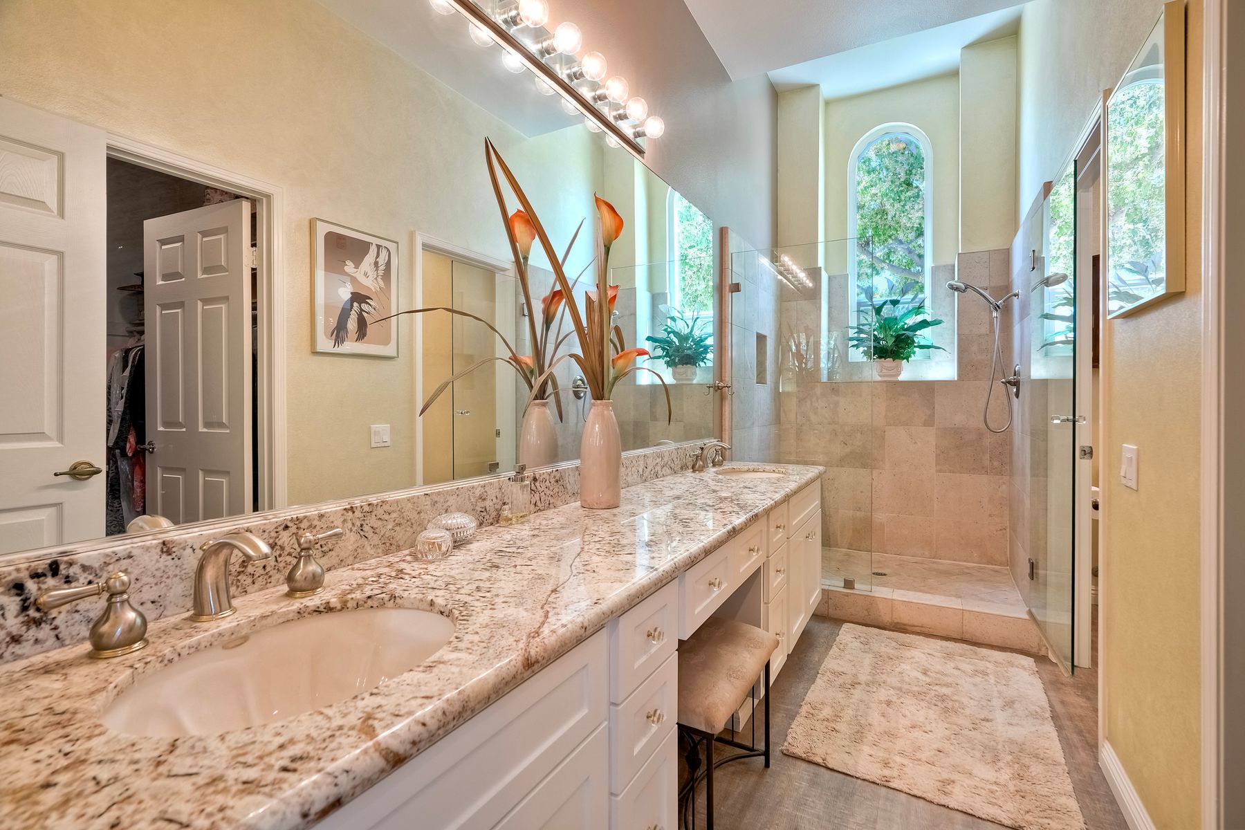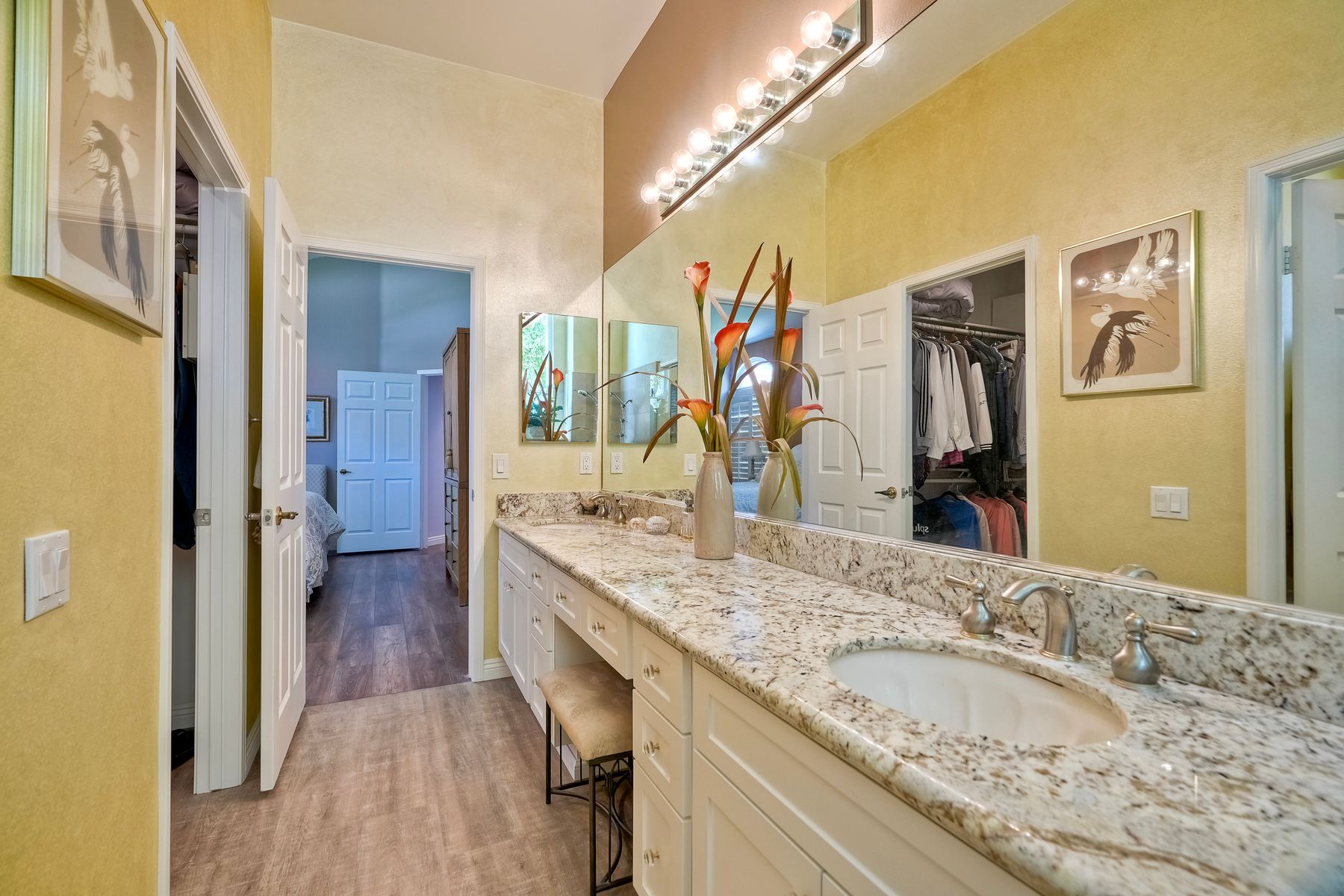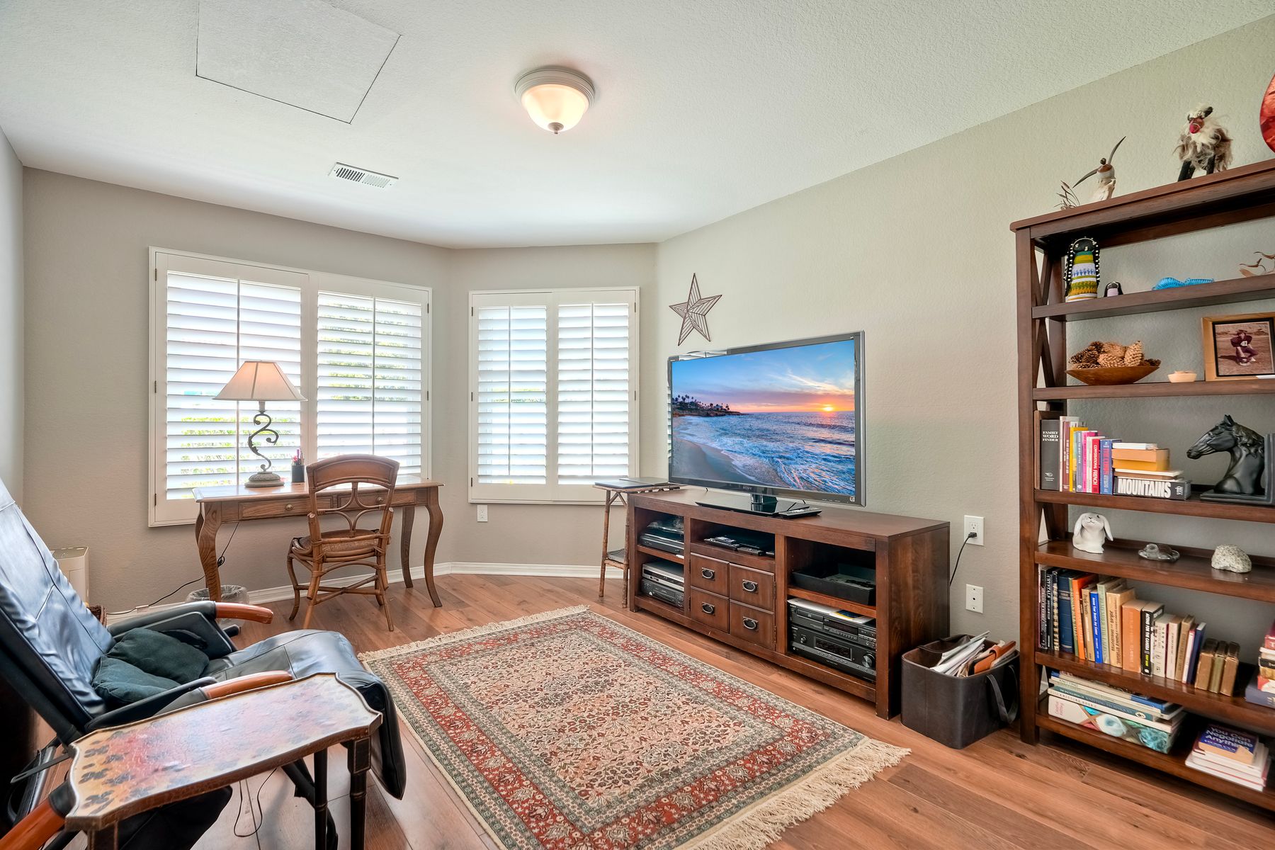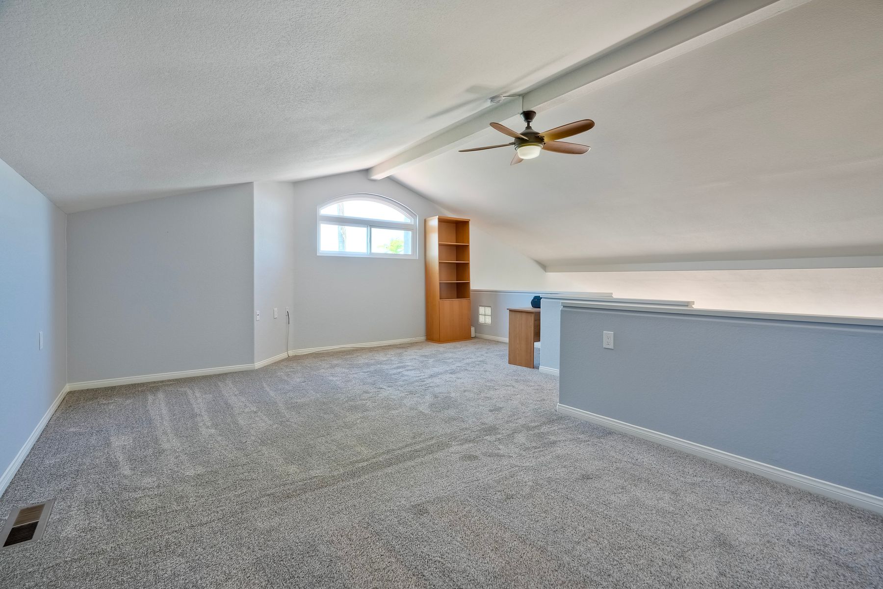 Welcome to refreshing ocean breezes and resort style living at Villa Trieste! This very special home, is the largest floor plan on the largest lot in the community. Step inside to vaulted beamed ceilings in the great room which features a gas fireplace and 2 sets of French doors that lead to the private back yard with mature shade trees, a freshly painted pergola, and no neighbors behind you! In the kitchen you’ll find granite counters, a breakfast nook and another set of French doors that open out to the back patio to make entertaining and alfresco dining so much more convenient. Under the stairs that lead to the loft you will find large storage space. The loft is a great open space; it could be whatever you imagine whether it be a billiard room or extra guest space. We have a well-appointed laundry room with cabinets with a laundry sink. All bedrooms are on the first floor. The primary bedroom is spacious with high ceilings, a huge closet, and a beautiful ensuite bathroom with a walk-in shower and large vanity with 2 sinks! This patio home lives like a detached single-family house. Enjoy the sparkling pool and spa at the club house and game room. Throw a round of bocce ball or take an easy hike up the community trail to catch a sunset! There is plenty of guest parking. Located close to shopping, golf, El Camino Country Club, restaurants and transit. This is coastal living at its best