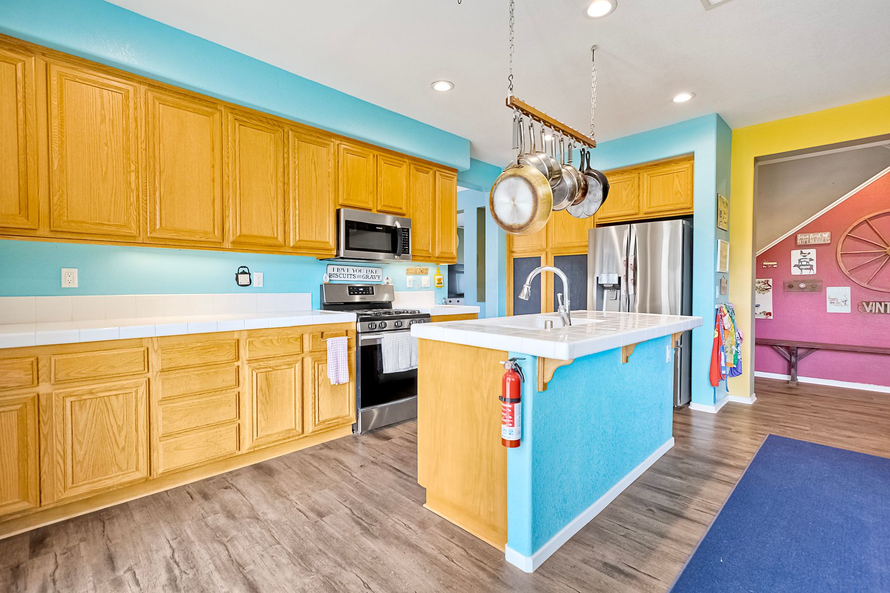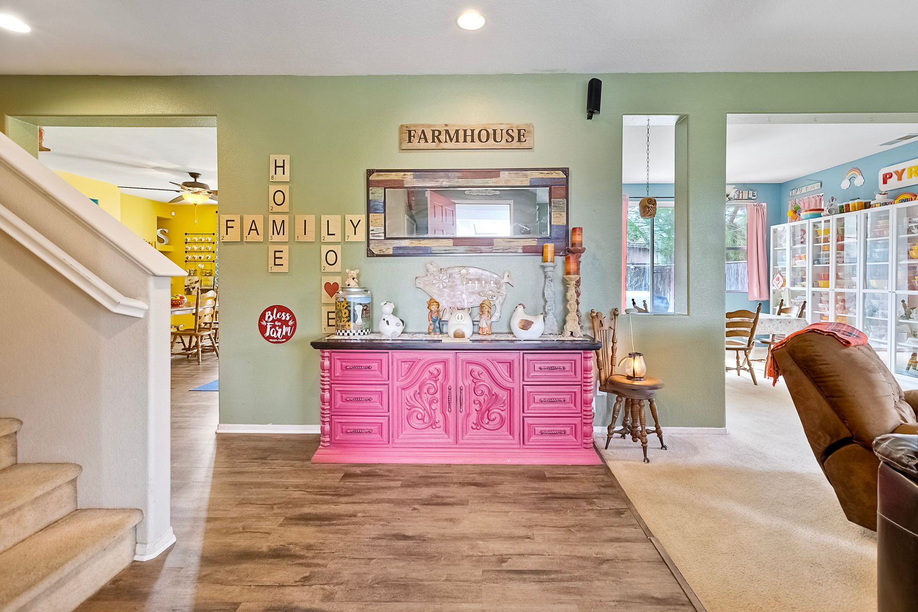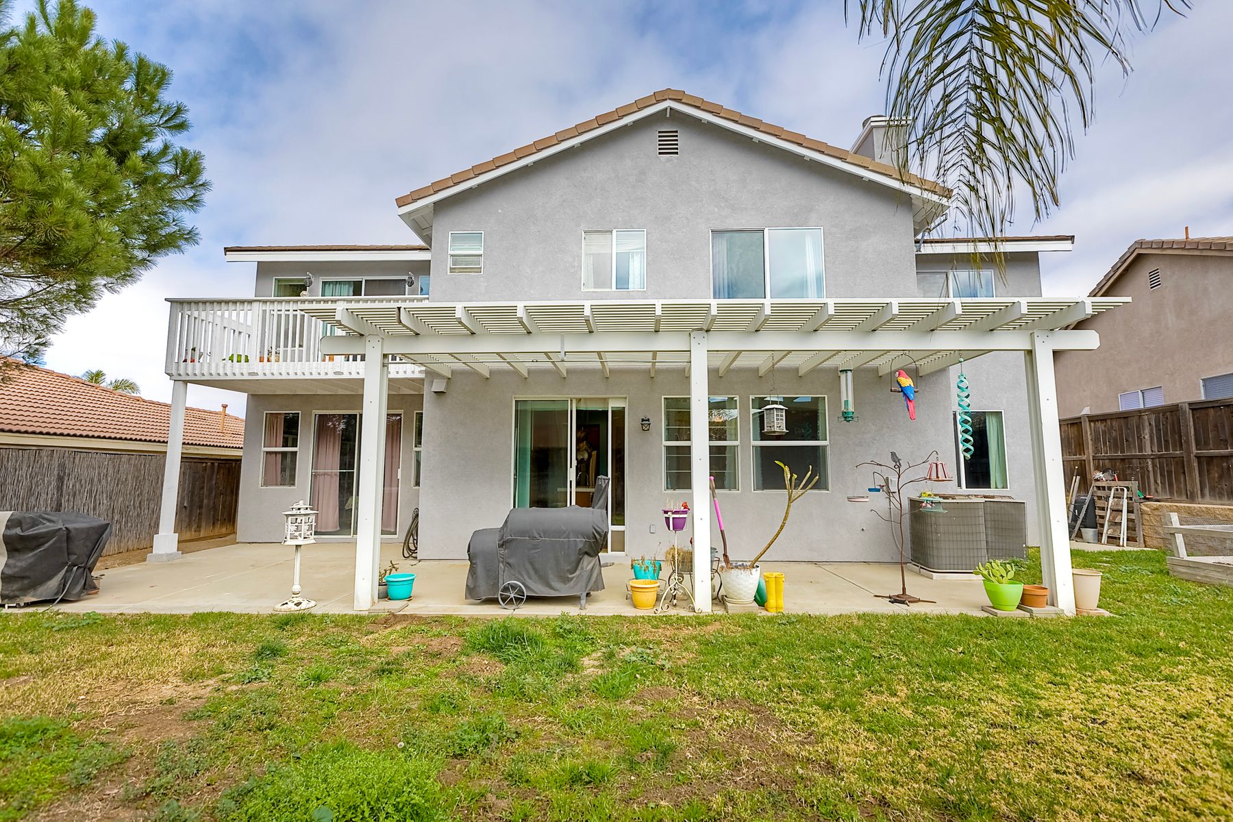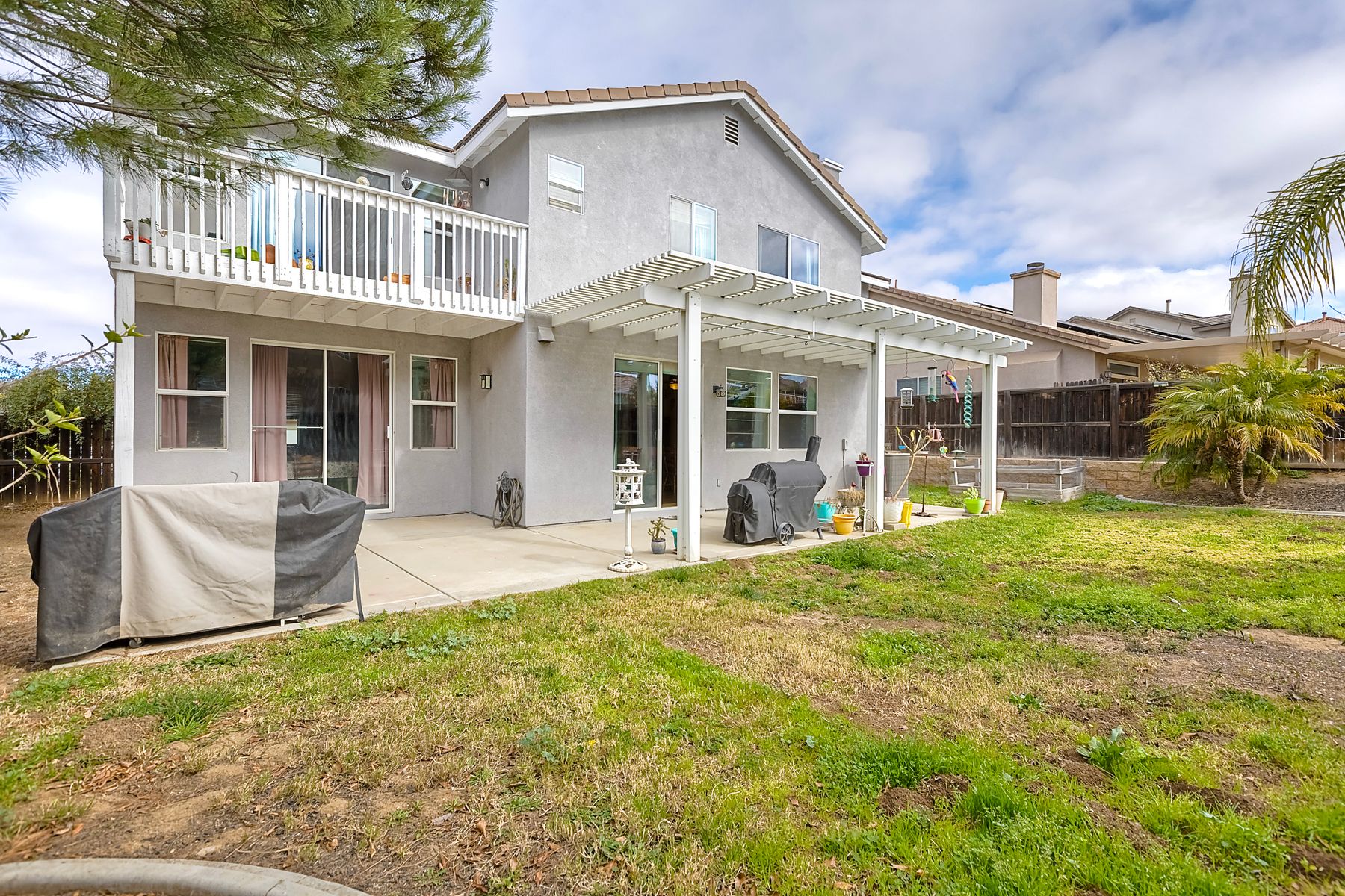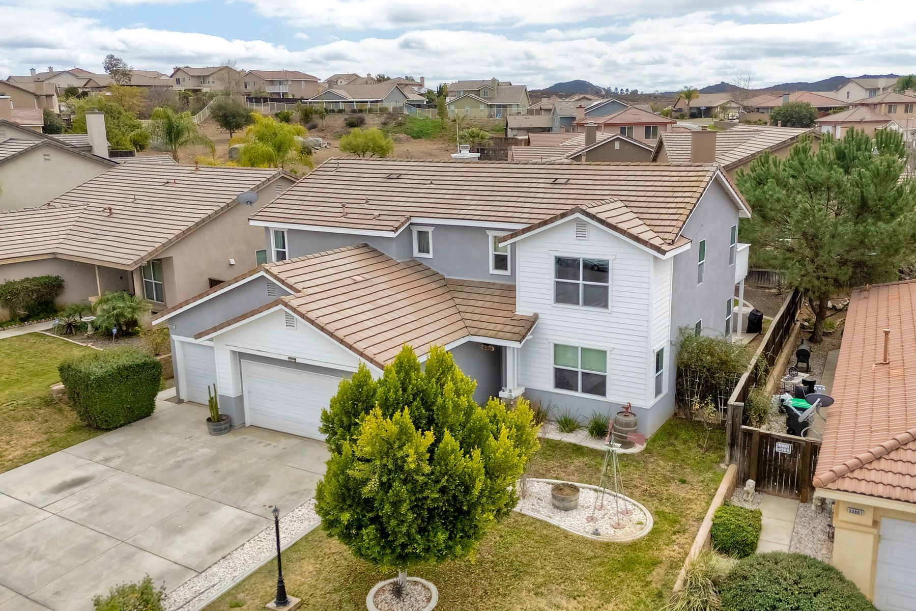 Nestled in the highly sought-after community of The Farm, this delightful 5-bedroom home boasts ample living space. The main floor includes a bedroom and full bathroom, as well as a downstairs laundry room for added convenience. The open-concept family room seamlessly flows into the kitchen, featuring a cozy fireplace. The spacious master suite includes a bonus room and a private balcony overlooking the backyard. The expansive backyard is perfect for entertaining, with a covered patio and plenty of room for outdoor activities. Residents of The Farm enjoy a vibrant lifestyle with access to three pools, two spas, a catch-and-release pond, baseball and soccer fields, a basketball court, tennis courts, hiking trails, and RV storage. Ideally located near both the 15 and 215 freeways for easy commuting.