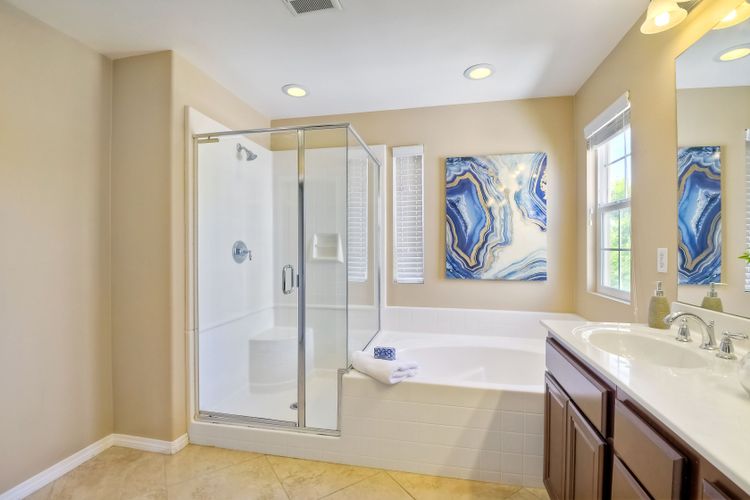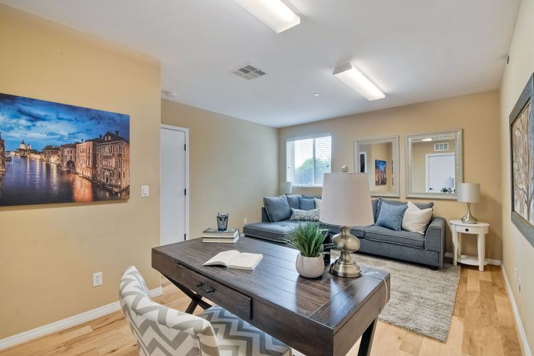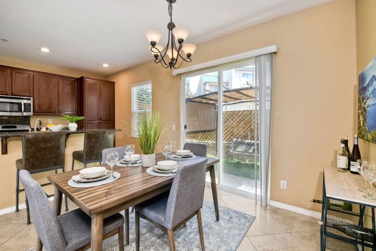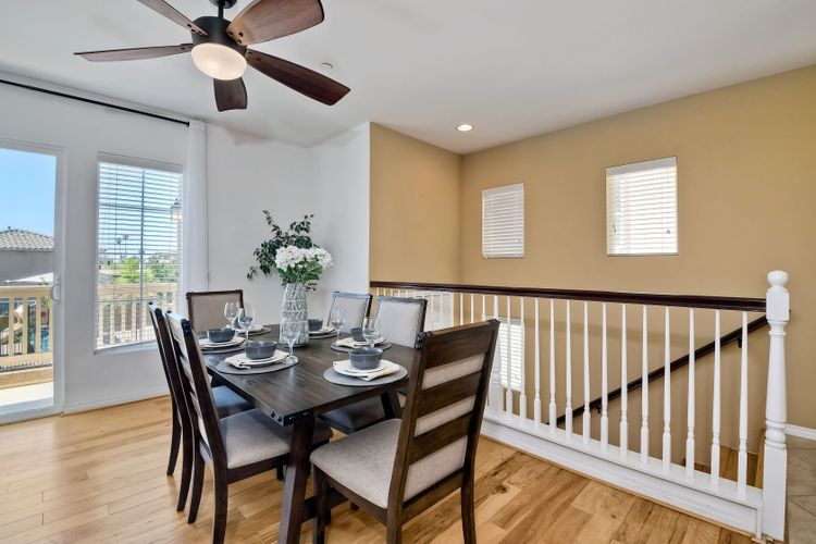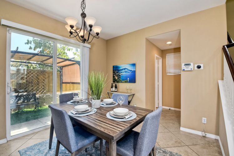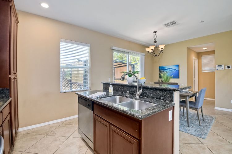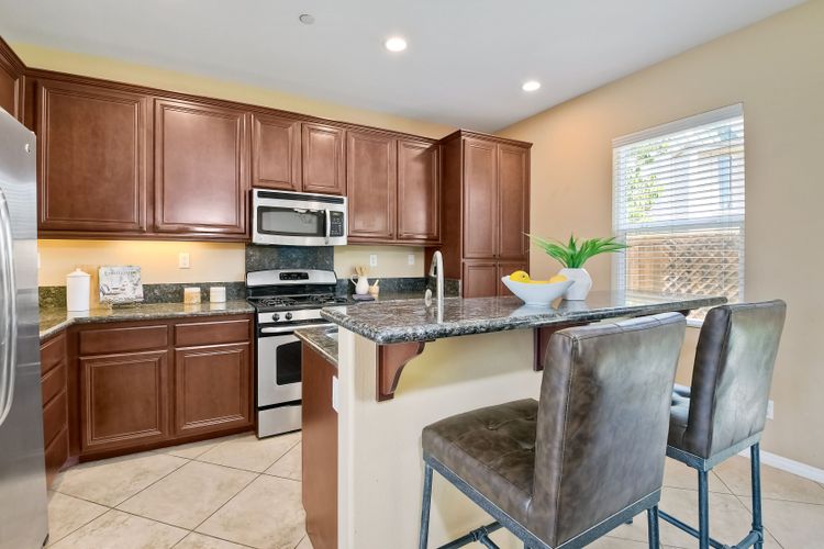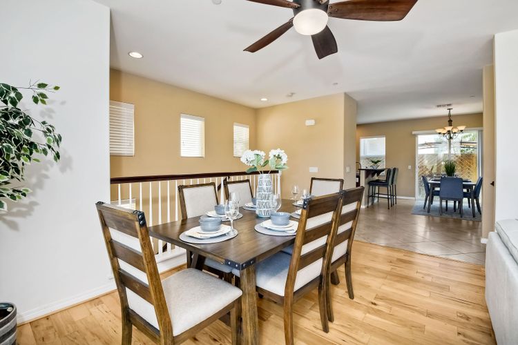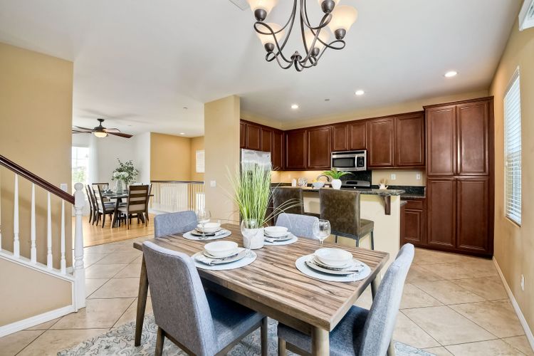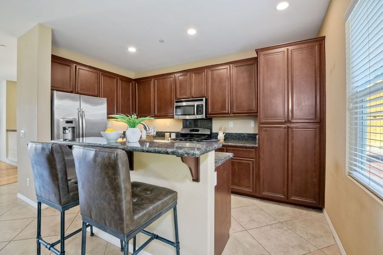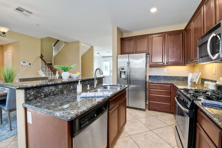 This beautiful and well maintained single detached home sits directly across from a family/kid friendly playground. It comes with 3-bed, 2.5-bath, attached 2-car garage, and an optional 4th room/den on the bottom floor that can be used as an office or a guest bedroom. All 3 bedrooms are located upstairs. Open floor plan kitchen with granite counter tops, breakfast bar, and stainless steel appliances. Hardwood flooring in the living room & entrance staircase, and tiled flooring in the kitchen and dining room. Master bedroom has dual vanities, deep bathtub, separate shower, and a large walk-in closet. A Large laundry room with cabinets and sink, located next to the optional room. Garage has epoxy flooring and lots of built-in cabinets for storage.