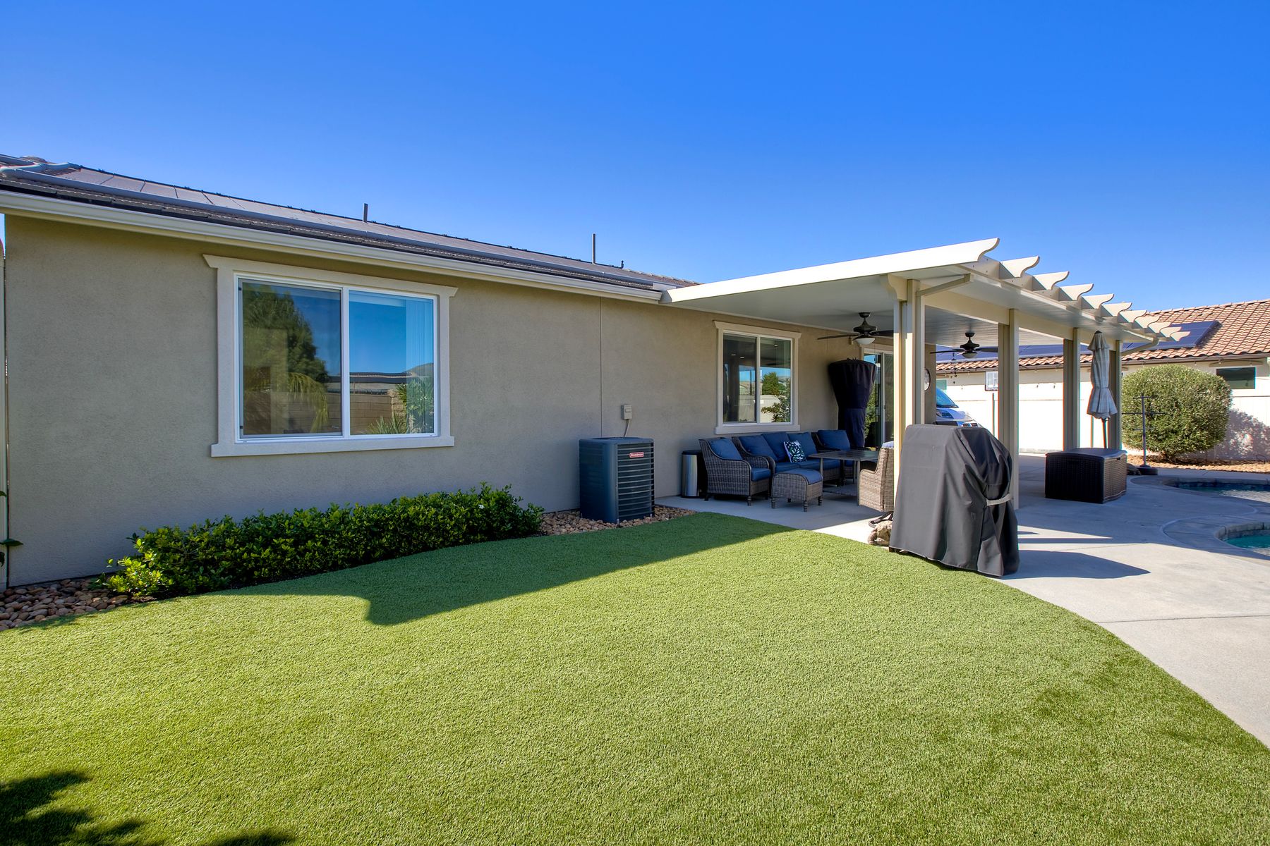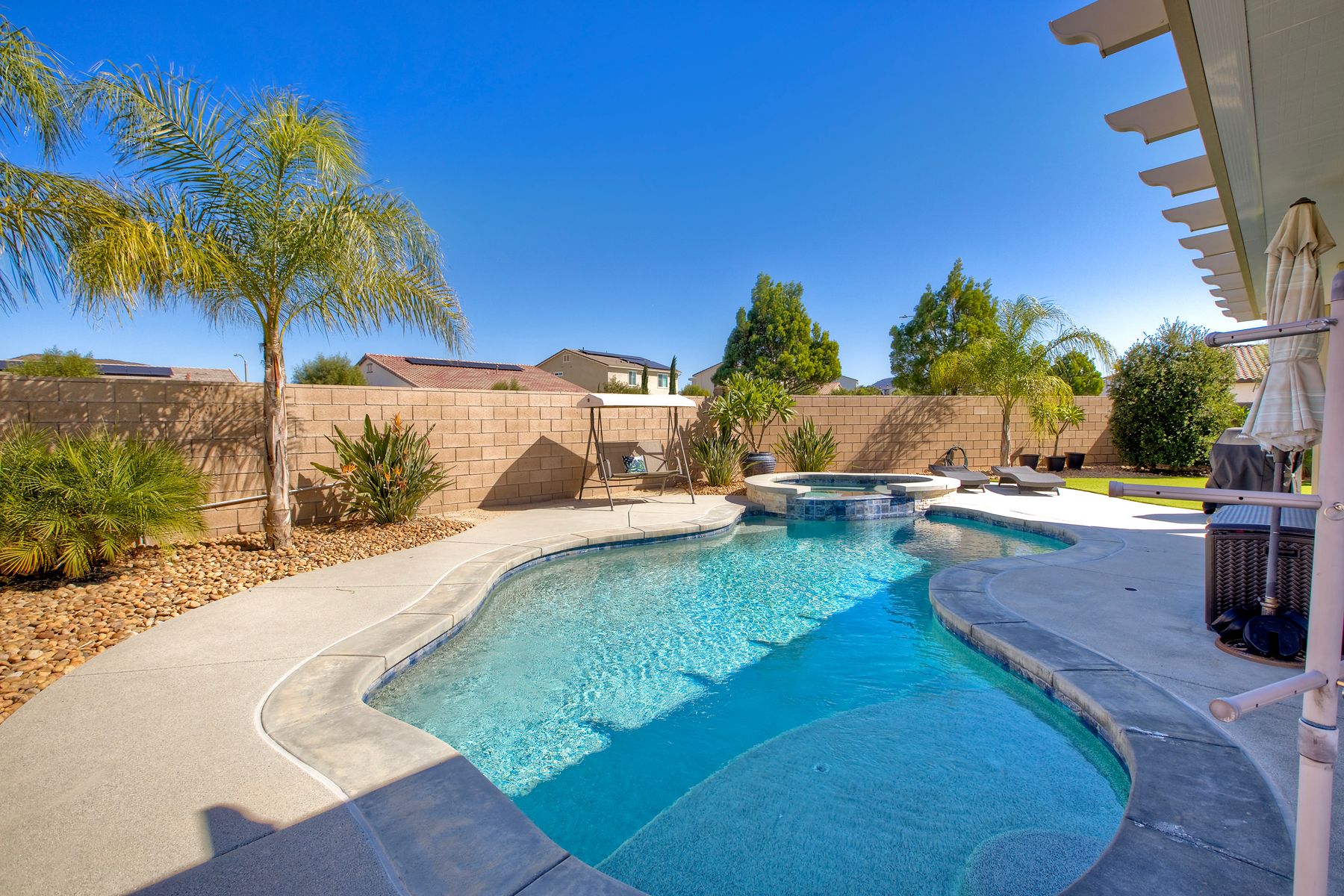 Welcome home to 34502 Silky Dogwood Drive, situated on a beautifully maintained spacious corner lot in the highly desirable Heritage Ranch neighborhood. Step inside this single level, open floor plan with abundant natural light and laid back lifestyle. This turn-key home flows effortlessly blending interior comforts with exterior lifestyle, featuring granite countertops and Energy Efficient stainless appliances, luxury vinyl plank flooring and owned solar as well as very low HOA! Additional highlights include a spacious primary bedroom and bathroom with separate oversized tub, large walk-in closet, whole house fan as well as a separate laundry room and attached garage with gated RV parking including hook up. Step outside to unwind and relax in your private retreat, this spacious low maintenance landscaped backyard features a sparkling pebble bottom pool and spa providing plenty of room to entertain and play! Whether you’re hosting a weekend barbecue or lounging poolside on a lazy afternoon, this home has it all! Close to beautifully maintained parks, scenic trails, walking paths, shopping and more!