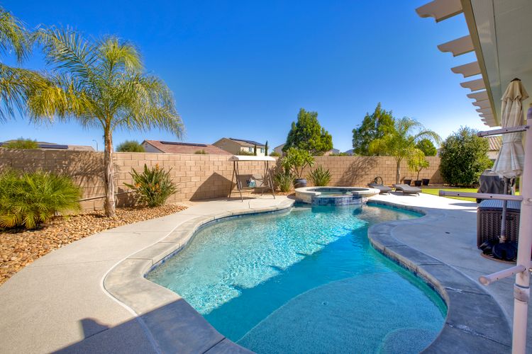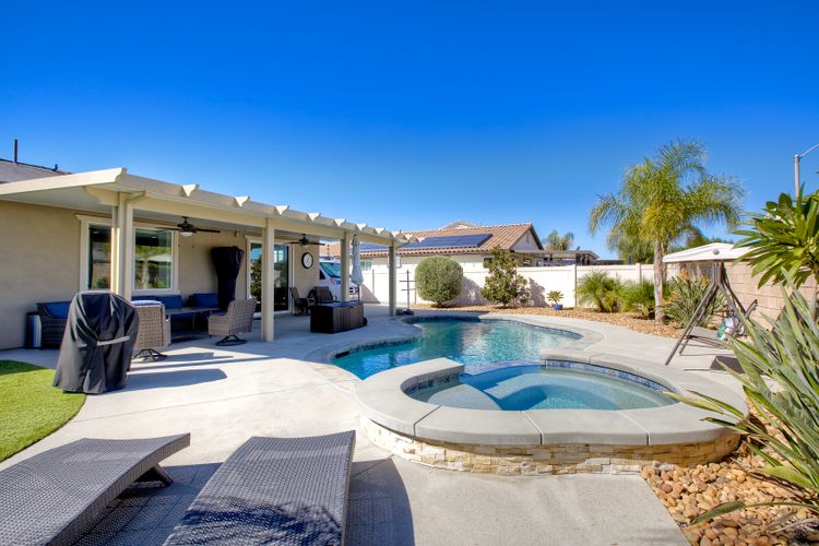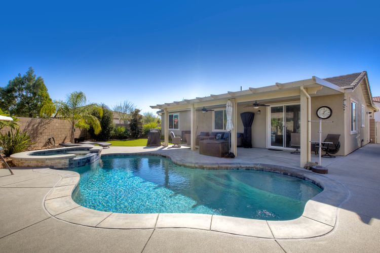 Welcome home to 34502 Silky Dogwood Drive, situated on a beautifully maintained spacious corner lot in the highly desirable Heritage Ranch neighborhood. Step inside this single level, open floor plan with abundant natural light and laid back lifestyle. This turn-key home flows effortlessly blending interior comforts with exterior lifestyle, featuring granite countertops and Energy Efficient stainless appliances, luxury vinyl plank flooring and owned solar as well as very low HOA! Additional highlights include a spacious primary bedroom and bathroom with separate oversized tub, large walk-in closet, whole house fan as well as a separate laundry room and attached garage with gated RV parking including hook up. Step outside to unwind and relax in your private retreat, this spacious low maintenance landscaped backyard features a sparkling pebble bottom pool and spa providing plenty of room to entertain and play! Whether you’re hosting a weekend barbecue or lounging poolside on a lazy afternoon, this home has it all! Close to beautifully maintained parks, scenic trails, walking paths, shopping and more!