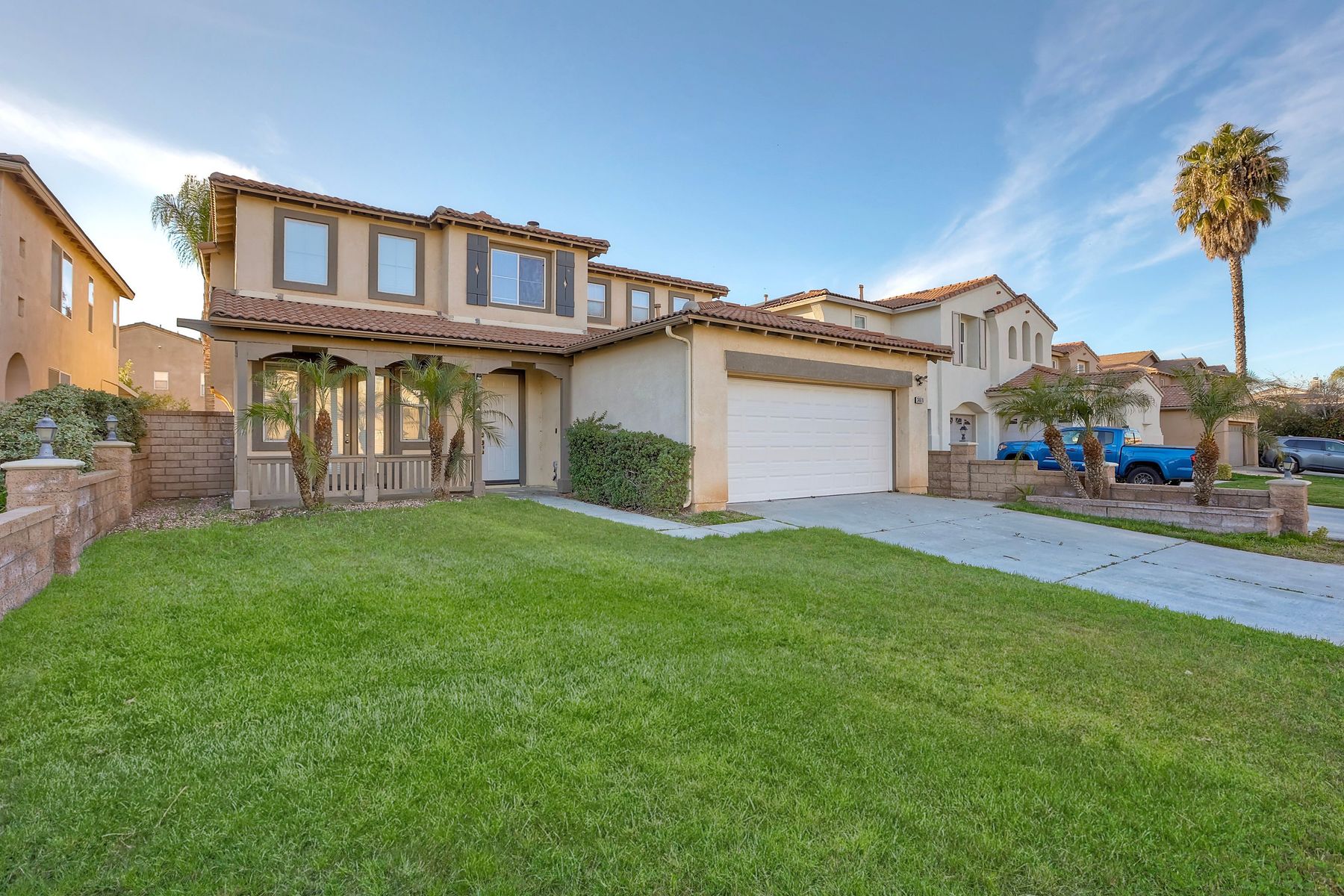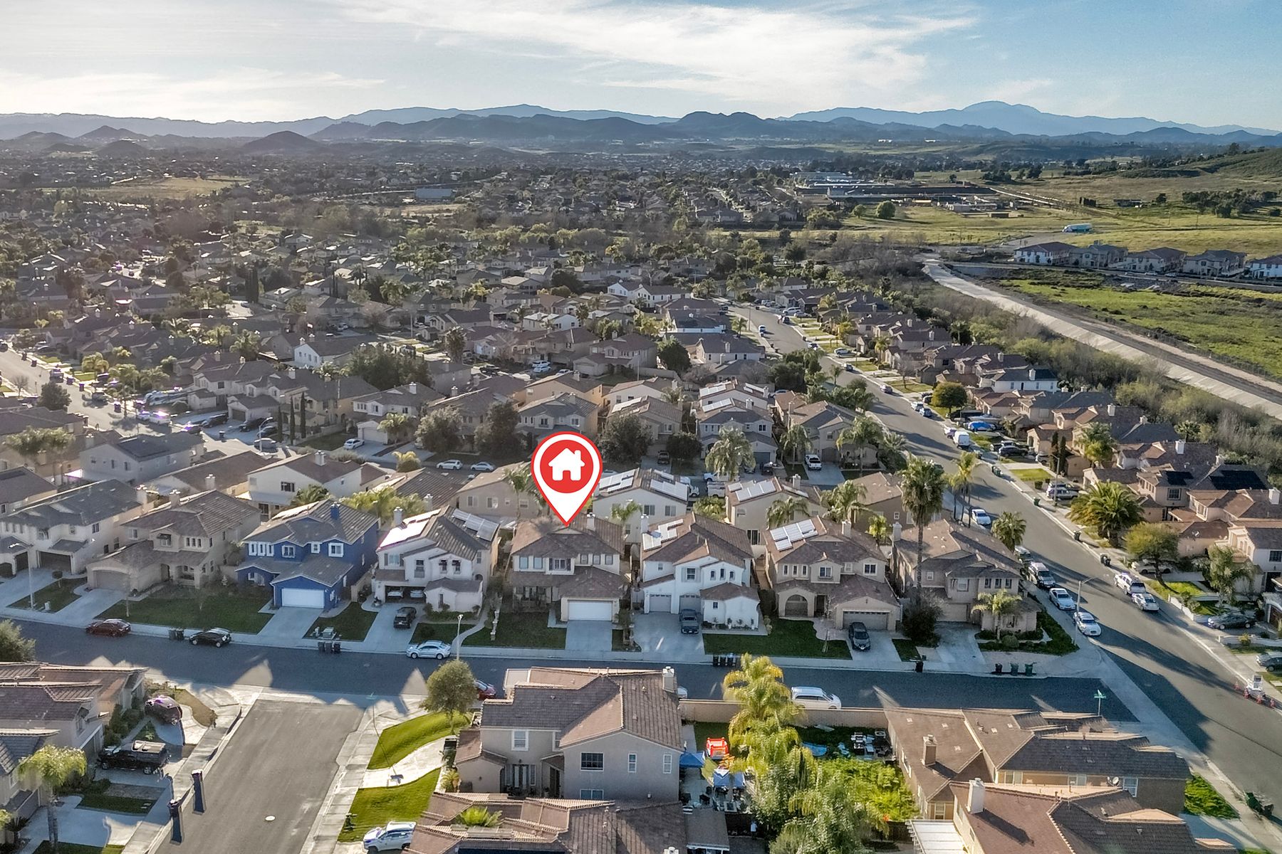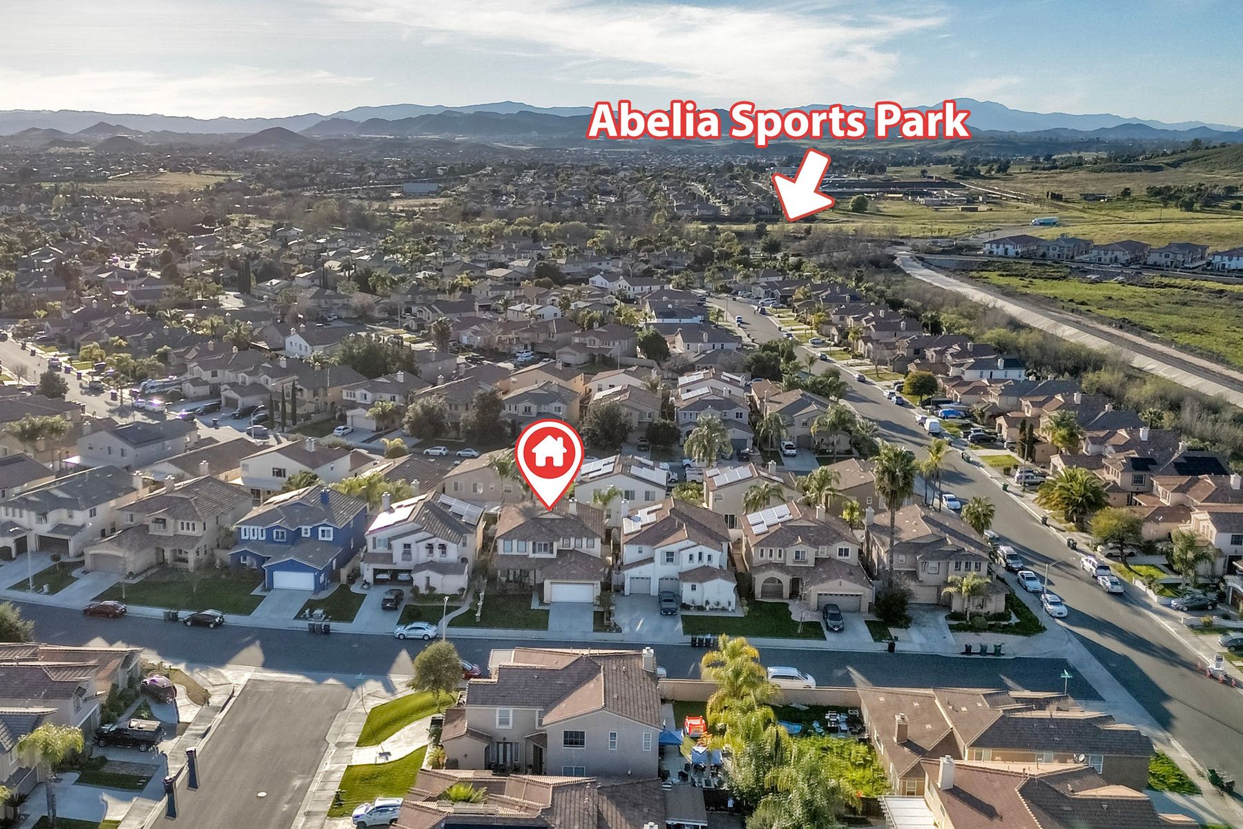 Move-in ready home ready for new owners. New two-tone neutral paint throughout complemented with new, warm, wood-looking waterproof Luxury Vinyl Plank flooring. Upon entry, you are greeted with a bright formal living room with two-story ceilings. A dedicated formal dining room is situated in the middle of the first level next to both the living and family rooms. The kitchen offers a large footprint with ample counter space, storage, a walk-in pantry, center island with sink and breakfast bar, and floor space for a kitchen table. The family room, placed next to the kitchen is placed at the back of the home and has the fireplace as the focal point. There are two bedrooms that share a bath on the main level. Upstairs the open loft offers an additional living space for a game room, study area, workout area, tv room, craft room, the choices are endless. The primary suite is large enough to have a King-sized bedroom set with end tables and dressers. Two closets provide more privacy for dual occupants who get ready at the same time. Beyond is the primary bathroom with soaking tub, separate shower, dual vanities and private water closet. There are two additional upstairs bedrooms that share a bathroom with two sinks, shower/tub combo and toilet. Additional storage cabinets are installed in the hallway so everything has a place. The low maintenance backyard offers a full-width patio and palm trees. Conveniently located within walking distance to Abelia Sports Park. Easy access to both I-15 and I-215, located close to grocery stores and restaurants, and a few minutes to the mall. You can get to Temecula, Murrieta, Menifee, Wildomar and Hemet all within 30 minutes. Call today for your personal tour.