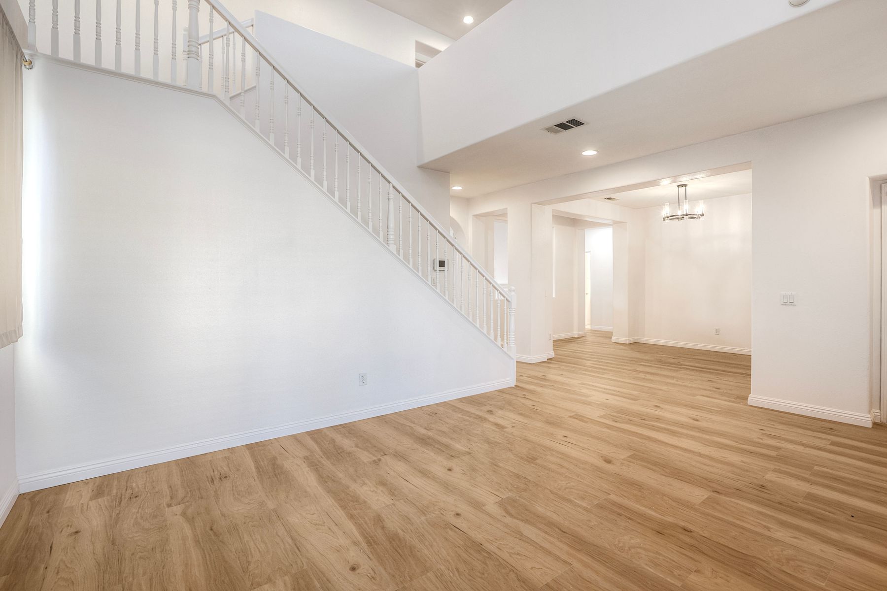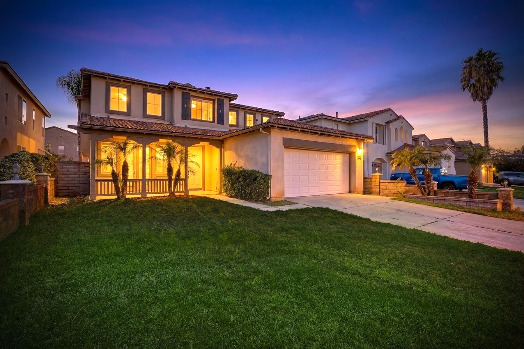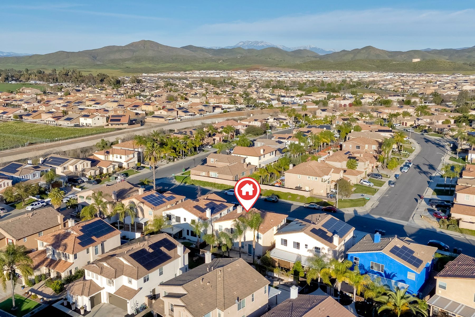 Move-in ready home ready for new owners. New two-tone neutral paint throughout complemented with new, warm, wood-looking waterproof Luxury Vinyl Plank flooring. Upon entry, you are greeted with a bright formal living room with two-story ceilings. A dedicated formal dining room is situated in the middle of the first level next to both the living and family rooms. The kitchen offers a large footprint with ample counter space, storage, a walk-in pantry, center island with sink and breakfast bar, and floor space for a kitchen table. The family room, placed next to the kitchen is placed at the back of the home and has the fireplace as the focal point. There are two bedrooms that share a bath on the main level. Upstairs the open loft offers an additional living space for a game room, study area, workout area, tv room, craft room, the choices are endless. The primary suite is large enough to have a King-sized bedroom set with end tables and dressers. Two closets provide more privacy for dual occupants who get ready at the same time. Beyond is the primary bathroom with soaking tub, separate shower, dual vanities and private water closet. There are two additional upstairs bedrooms that share a bathroom with two sinks, shower/tub combo and toilet. Additional storage cabinets are installed in the hallway so everything has a place. The low maintenance backyard offers a full-width patio and palm trees. Conveniently located within walking distance to Abelia Sports Park. Easy access to both I-15 and I-215, located close to grocery stores and restaurants, and a few minutes to the mall. You can get to Temecula, Murrieta, Menifee, Wildomar and Hemet all within 30 minutes. Call today for your personal tour.