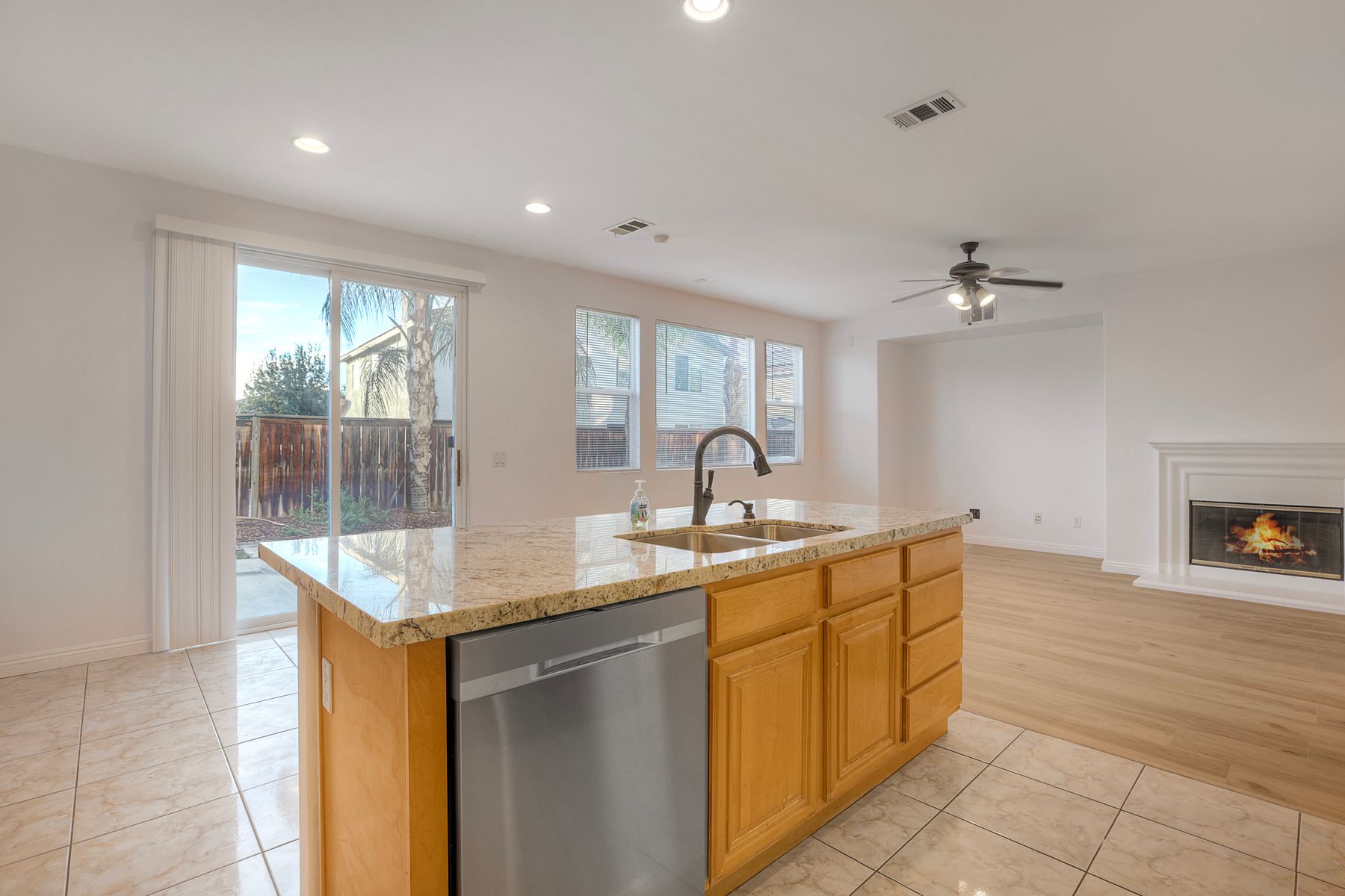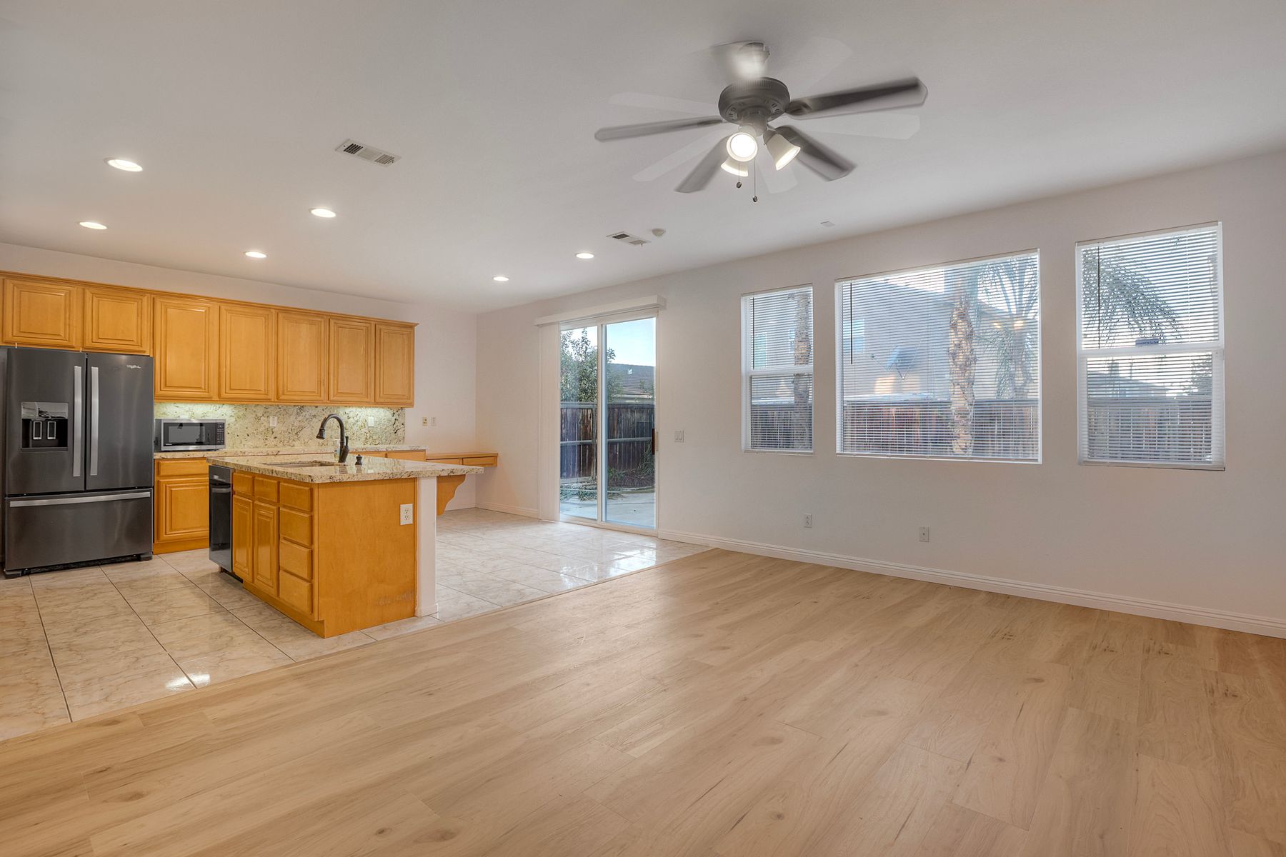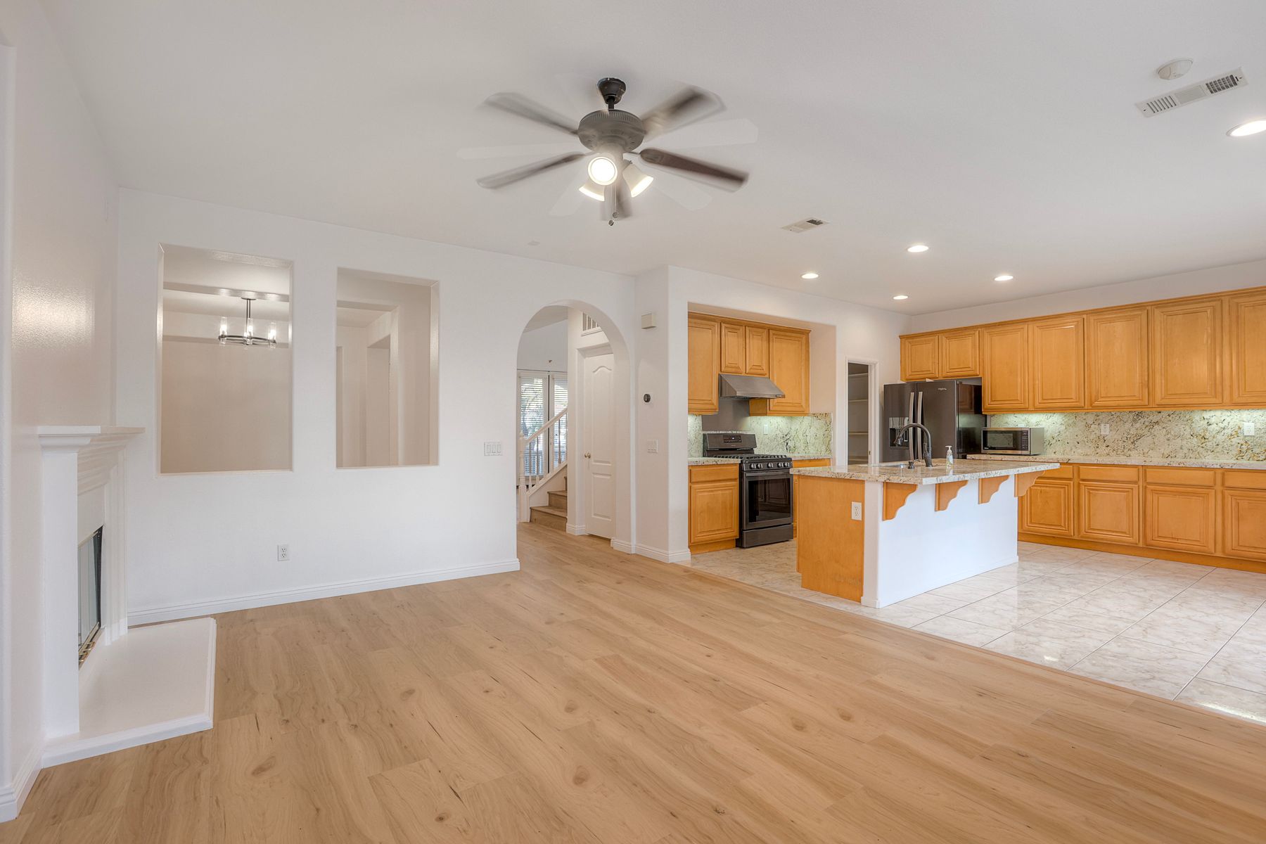 Unfurnished, High Ceilings, Ceiling Fan(s), Pantry, Recessed Lighting, Open Floorplan, Storage, Granite Counters