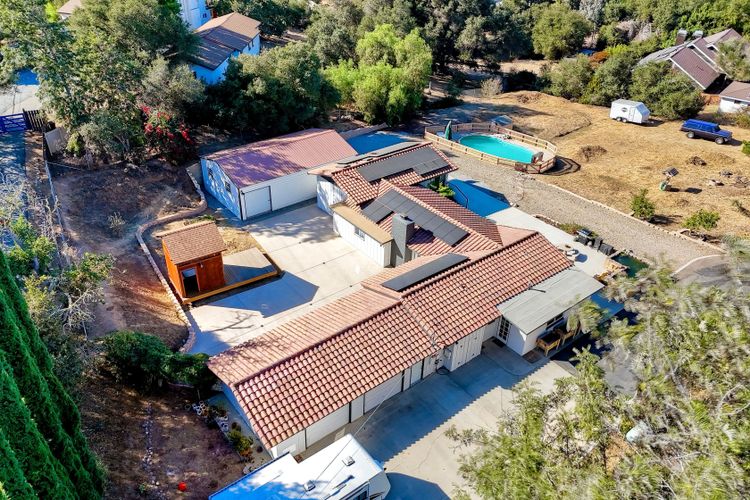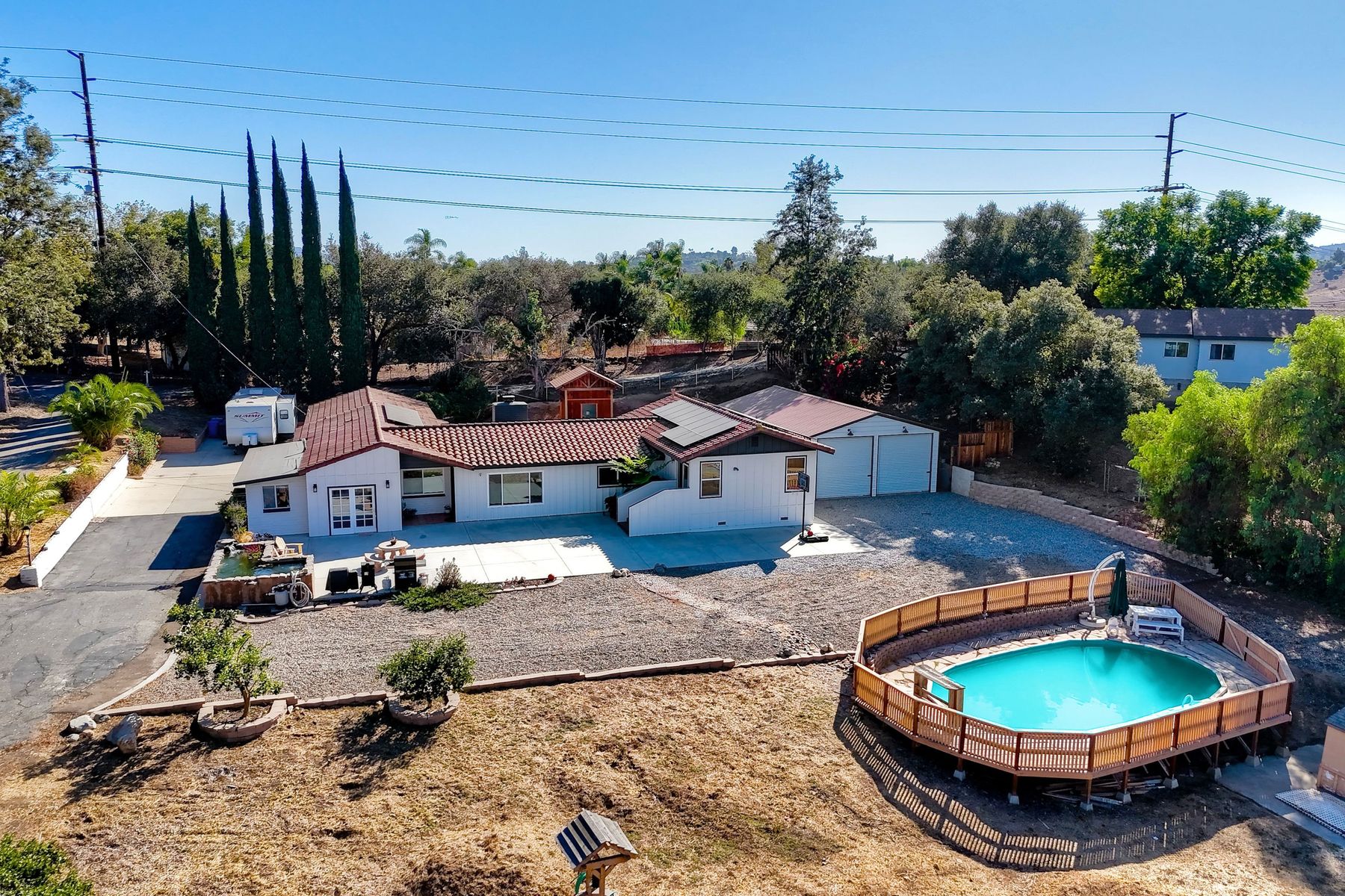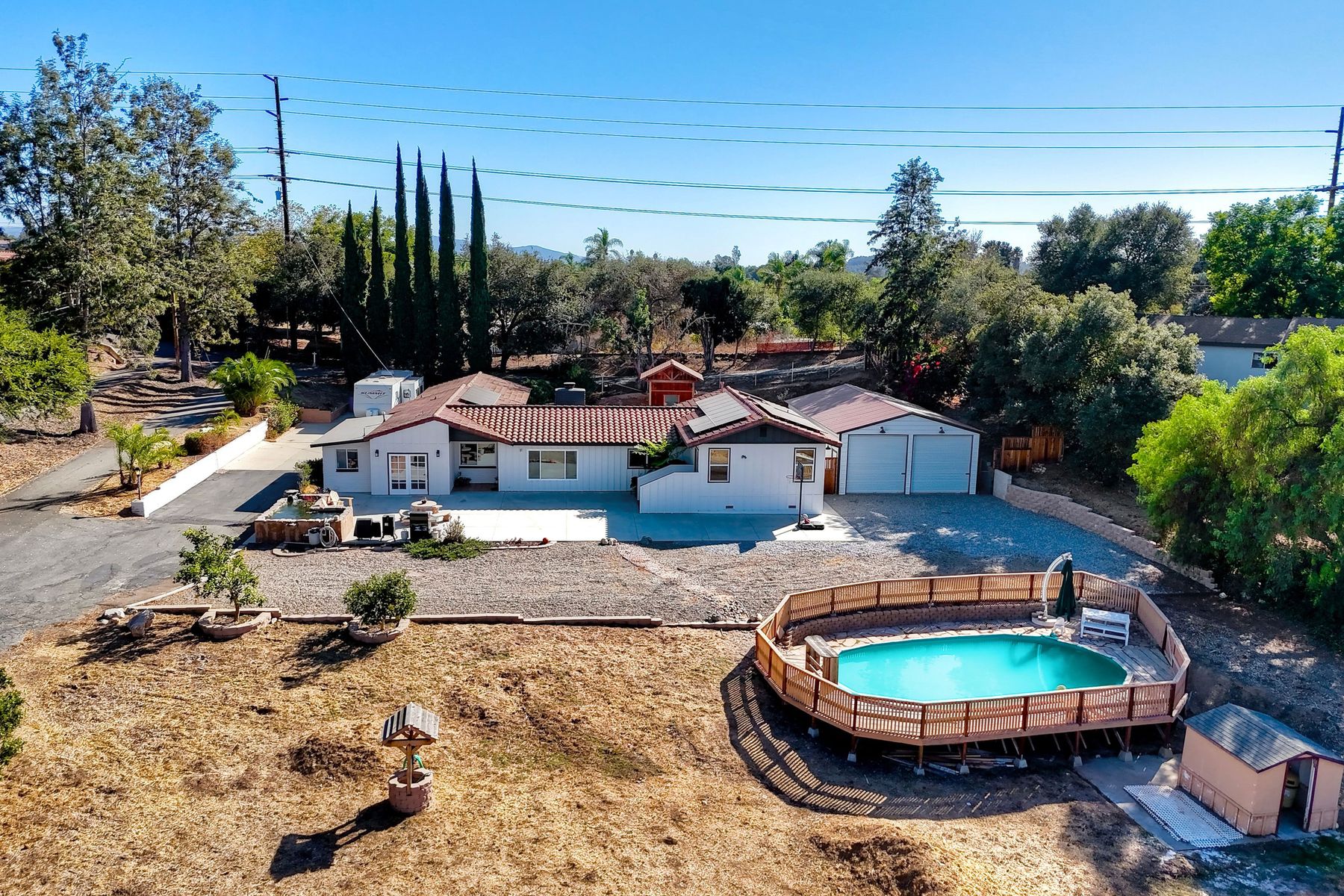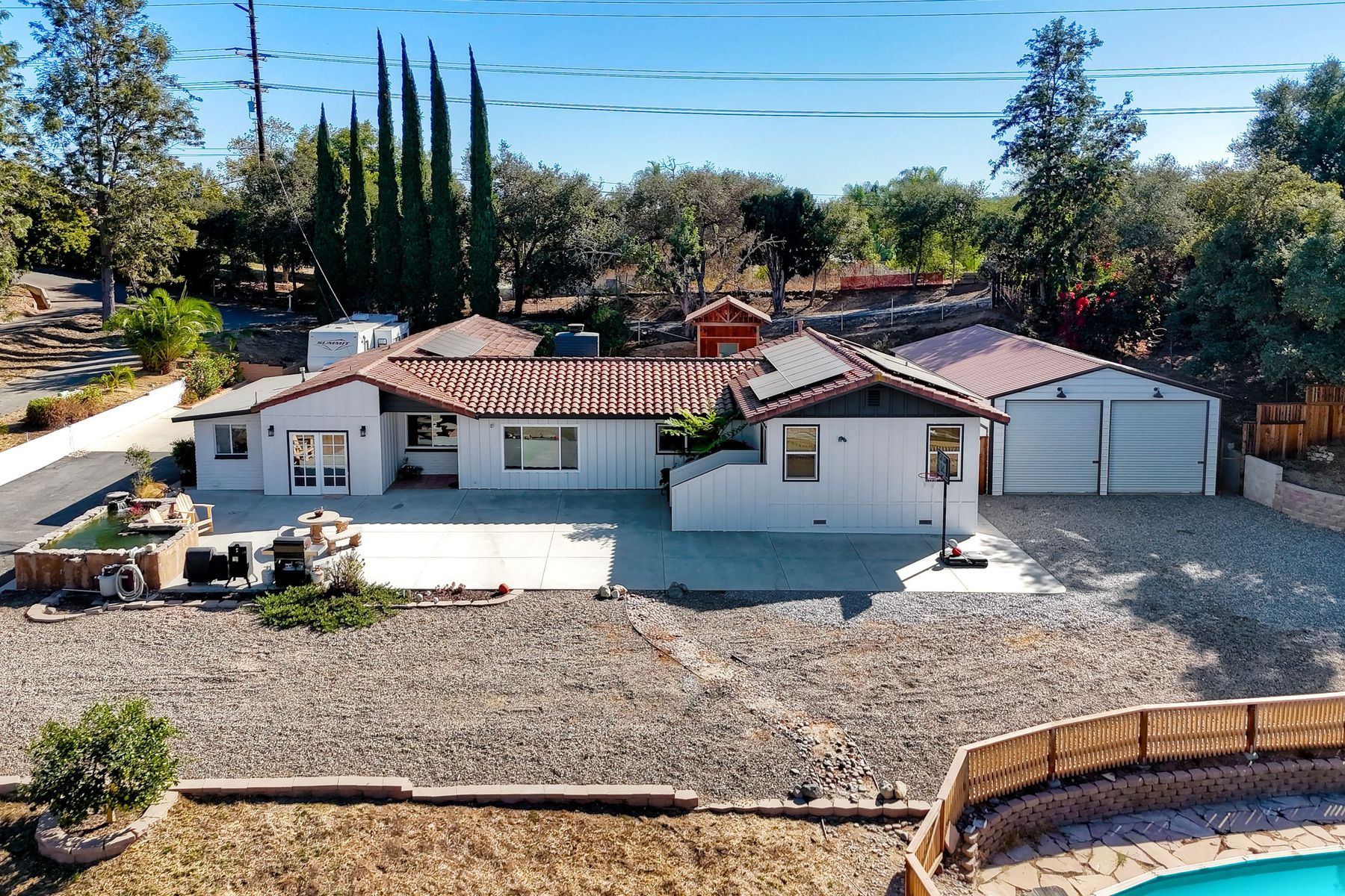 This one checks all the boxes! Your unique compound in South Fallbrook awaits! Spanish style 3 bedroom 2 bath home on a secluded street. Quiet and peaceful 1 acre lot with Koi Pond, drip irrigation for 10 mature fruit trees, 2000sf of stamped concrete in back. Got Horses? Lower lot has room for horse barn and arena. Or build an ADU? Plenty of room to expand. Owner just invested $ building a huge 24x40 permitted workshop with upgraded electrical and lighting for all your hobbies, toys, tools or classic cars. Relax in the soaker tub in the redwood beamed bath house surrounded by Mangaris Red hardwood deck. Owned solar system, upgraded electrical panels and smart EV charger. Central A/C, new windows and front doors. Remodeled bathrooms and kitchen with upgraded appliances, island, farmhouse sink and granite counters. Bonus rooms include small office, mud room, laundry room and walk in closet in primary bedroom suite. Plenty of parking with oversized 2 car garage, RV parking area and long driveway. Easy access to 76 & 15 freeways.