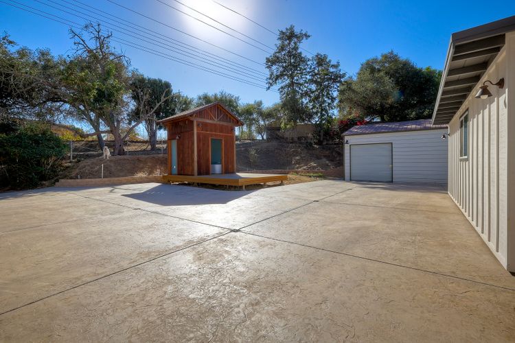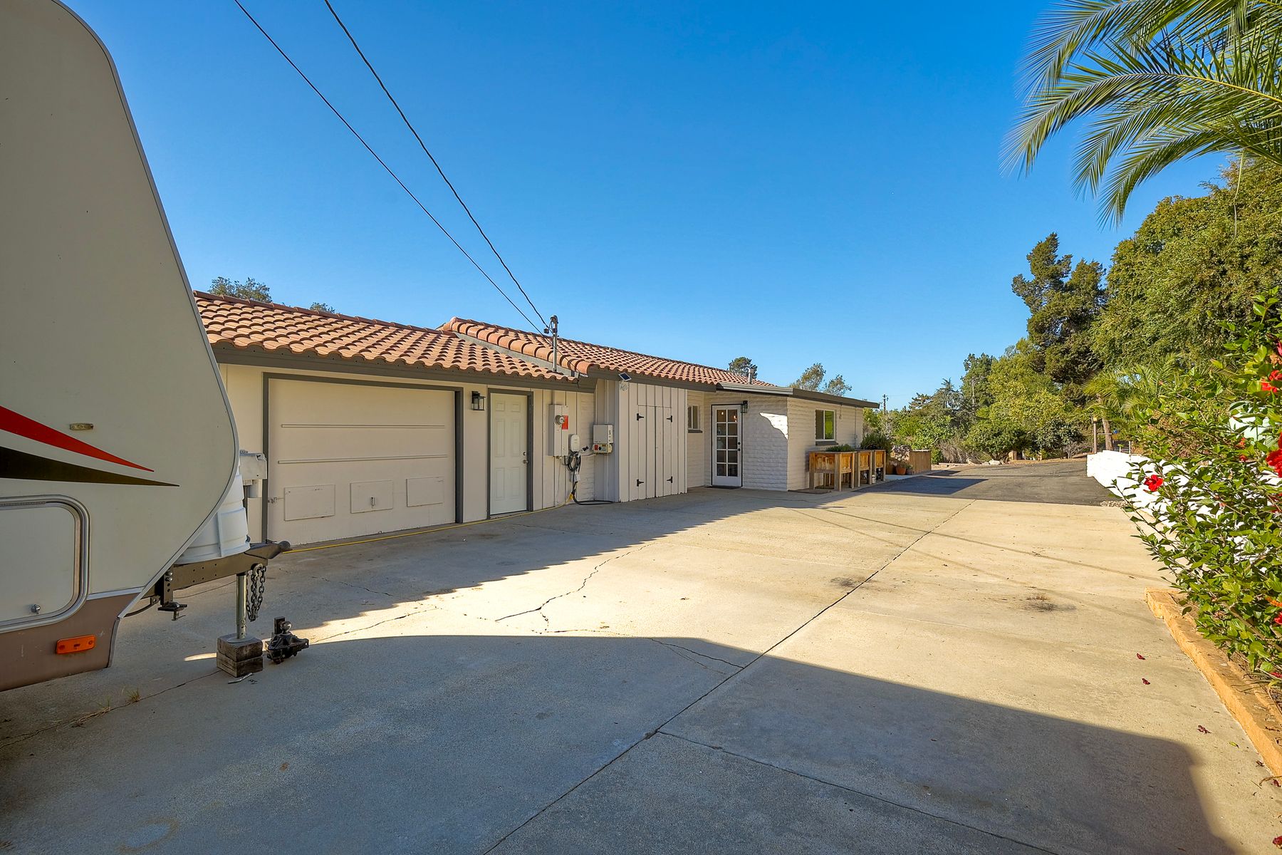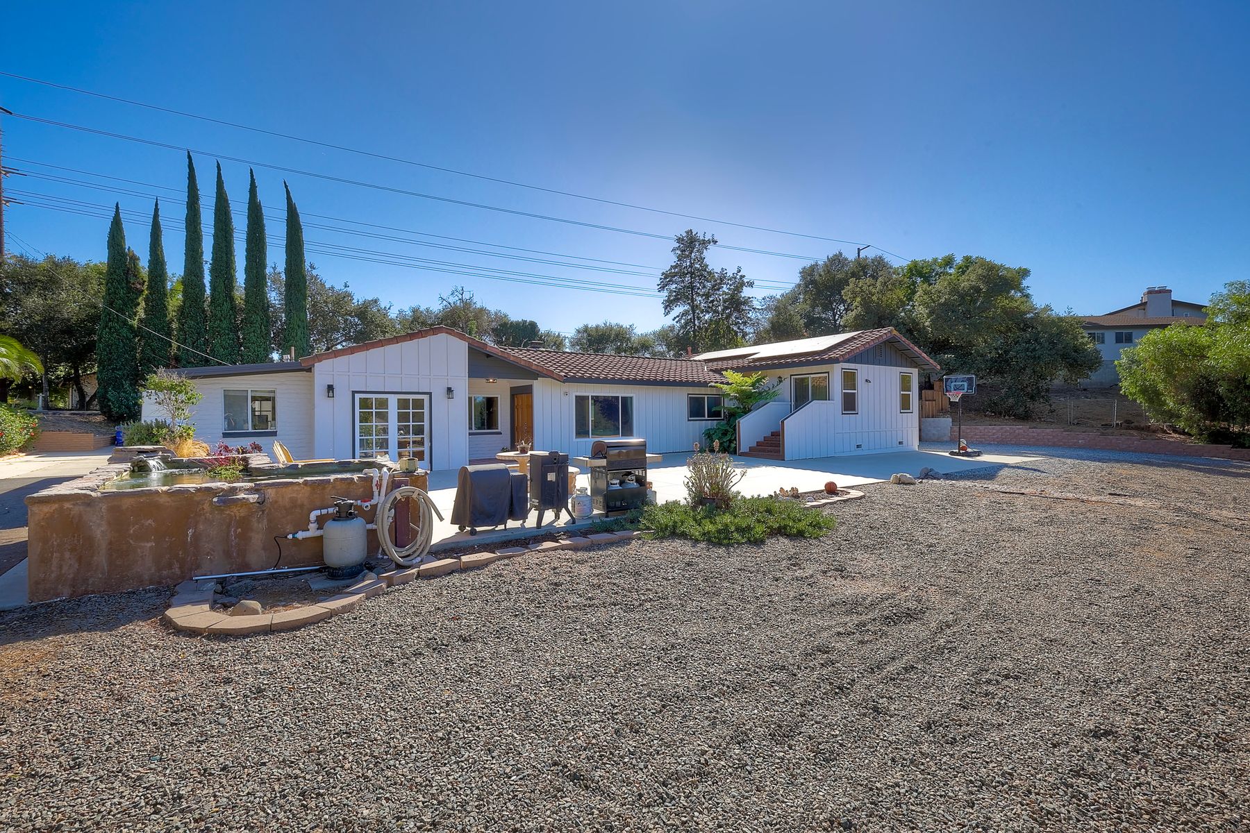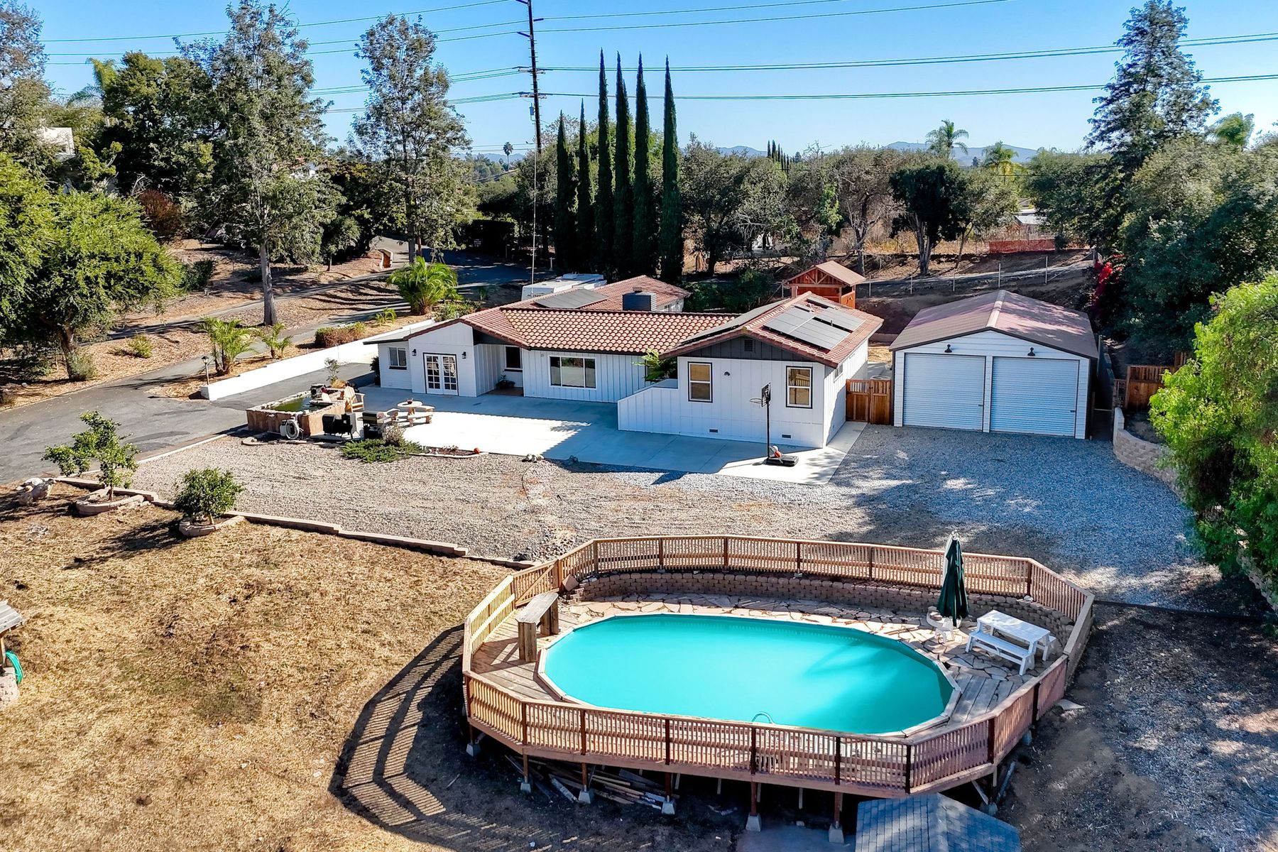 This one checks all the boxes! Your unique compound in South Fallbrook awaits! Spanish style 3 bedroom 2 bath home on a secluded street. Quiet and peaceful 1 acre lot with Koi Pond, drip irrigation for 10 mature fruit trees, 2000sf of stamped concrete in back. Got Horses? Lower lot has room for horse barn and arena. Or build an ADU? Plenty of room to expand. Owner just invested $ building a huge 24x40 permitted workshop with upgraded electrical and lighting for all your hobbies, toys, tools or classic cars. Relax in the soaker tub in the redwood beamed bath house surrounded by Mangaris Red hardwood deck. Owned solar system, upgraded electrical panels and smart EV charger. Central A/C, new windows and front doors. Remodeled bathrooms and kitchen with upgraded appliances, island, farmhouse sink and granite counters. Bonus rooms include small office, mud room, laundry room and walk in closet in primary bedroom suite. Plenty of parking with oversized 2 car garage, RV parking area and long driveway. Easy access to 76 & 15 freeways.