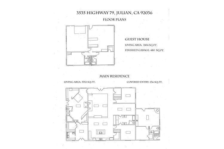 Two single story homes on a 4.39 Ac Lot: Scenic, Serene and Picturesque only minutes from Julian's downtown. This Estate’s main house includes a huge great room with vaulted ceiling & amazing views, 4 bdrms, 3 baths and a connected in-law unit with a pvt entrance. In-law includes 1 bdrm, full bath, kitchen, & living room w/fireplace. The estate also includes a separate Guest House with a kitchen, living room, 2 bedrooms and finished 2-car garage. See Supplement. Neighborhoods: Julian Architectural Style: Custom Built View: Custom Built Equipment: Fire Sprinklers, Satellite Dish Other Fees: 0 Sewer: Septic Installed, Perc Test Completed Topography: LL,GSL Guest House Est. SQFT: 1584