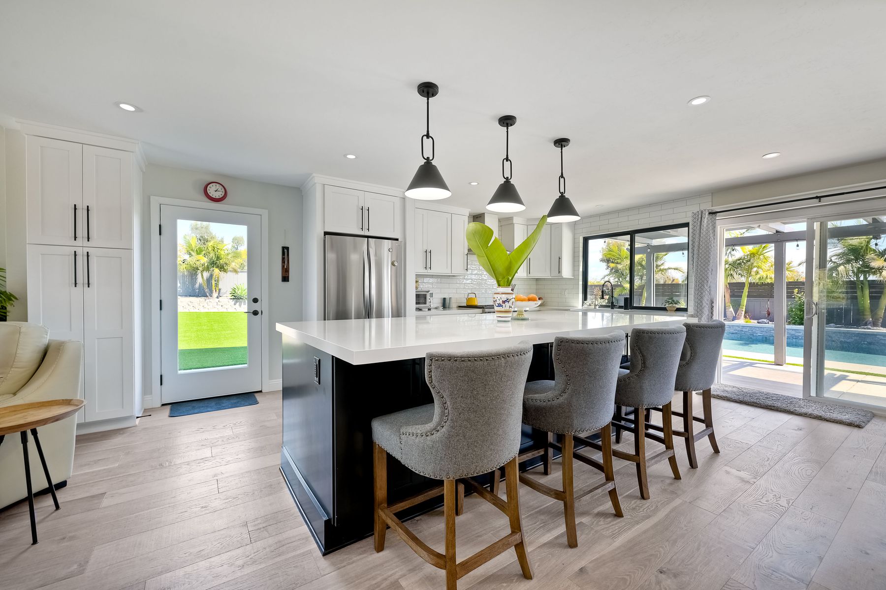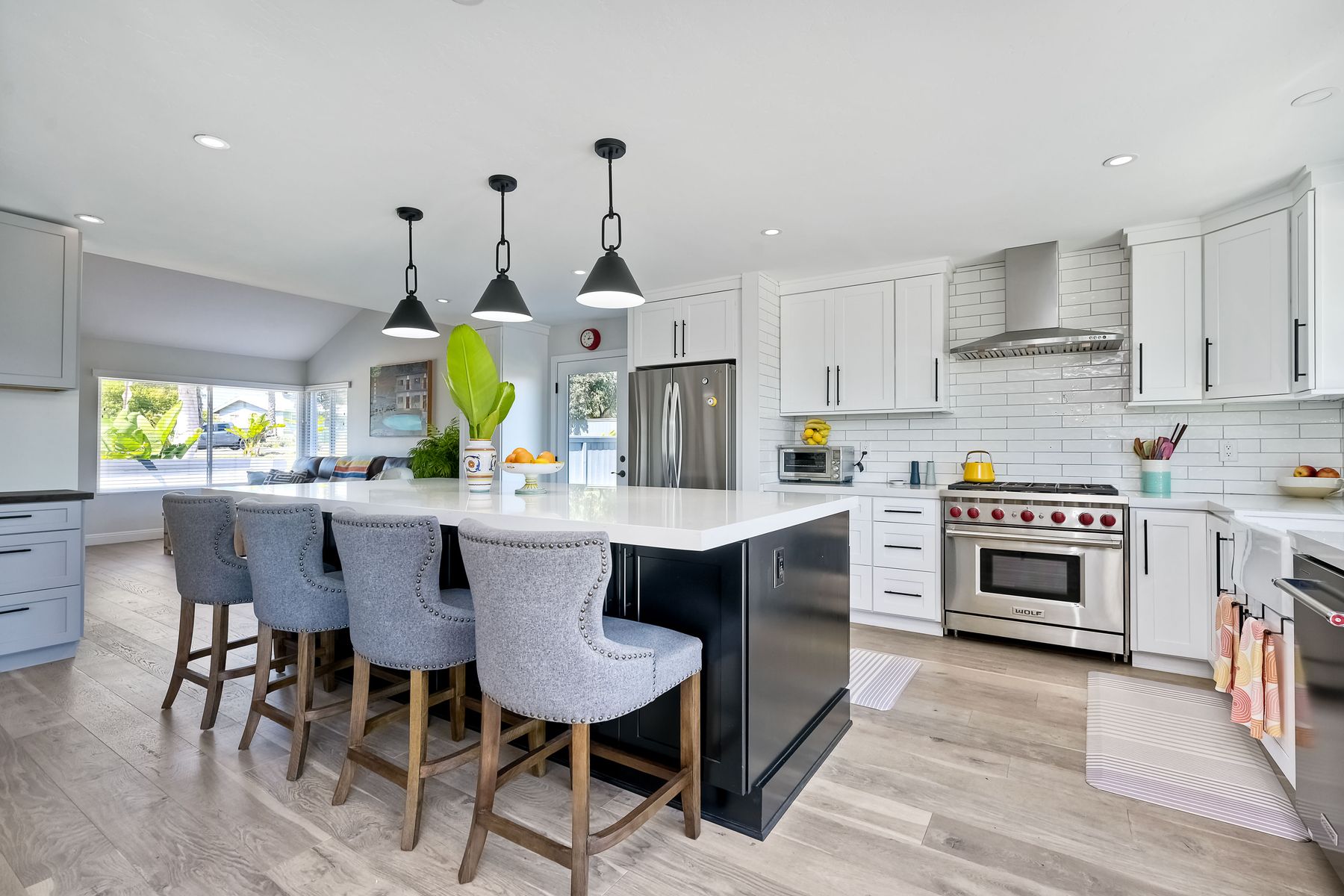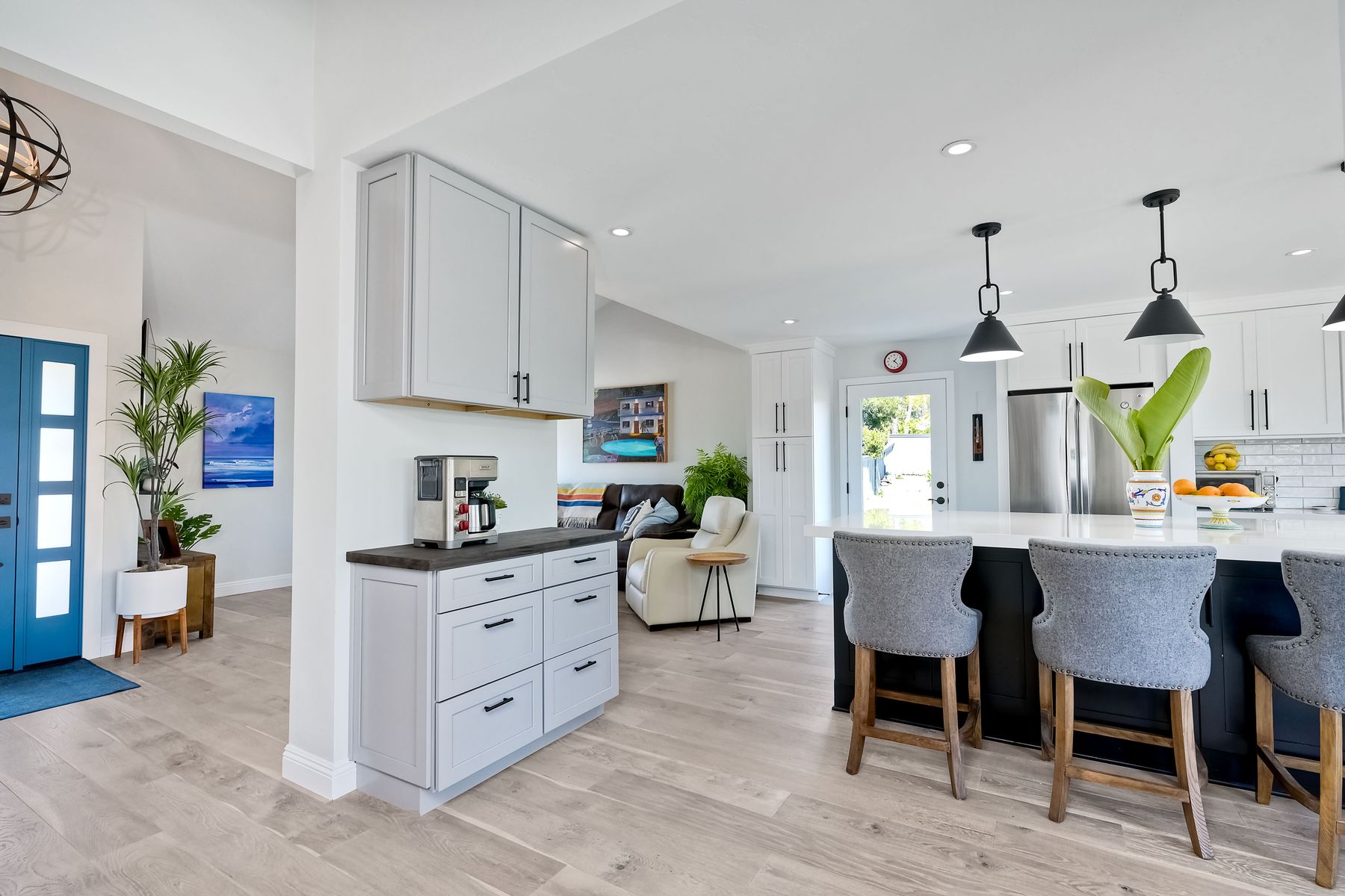Built-in Trash/Recycling, Kitchen Island, Kitchen Open to Family Room, Pots & Pan Drawers, Quartz Counters, Remodeled Kitchen, Self-closing drawers