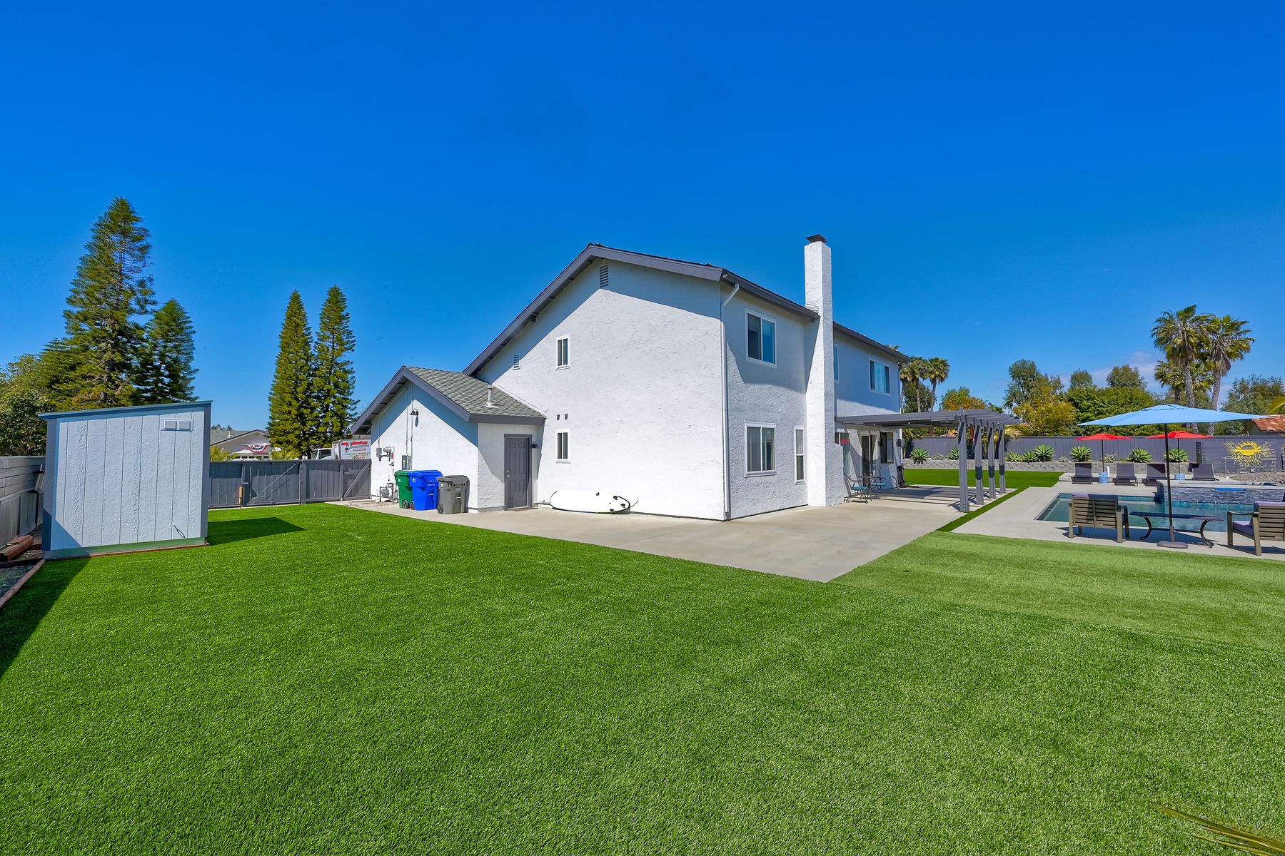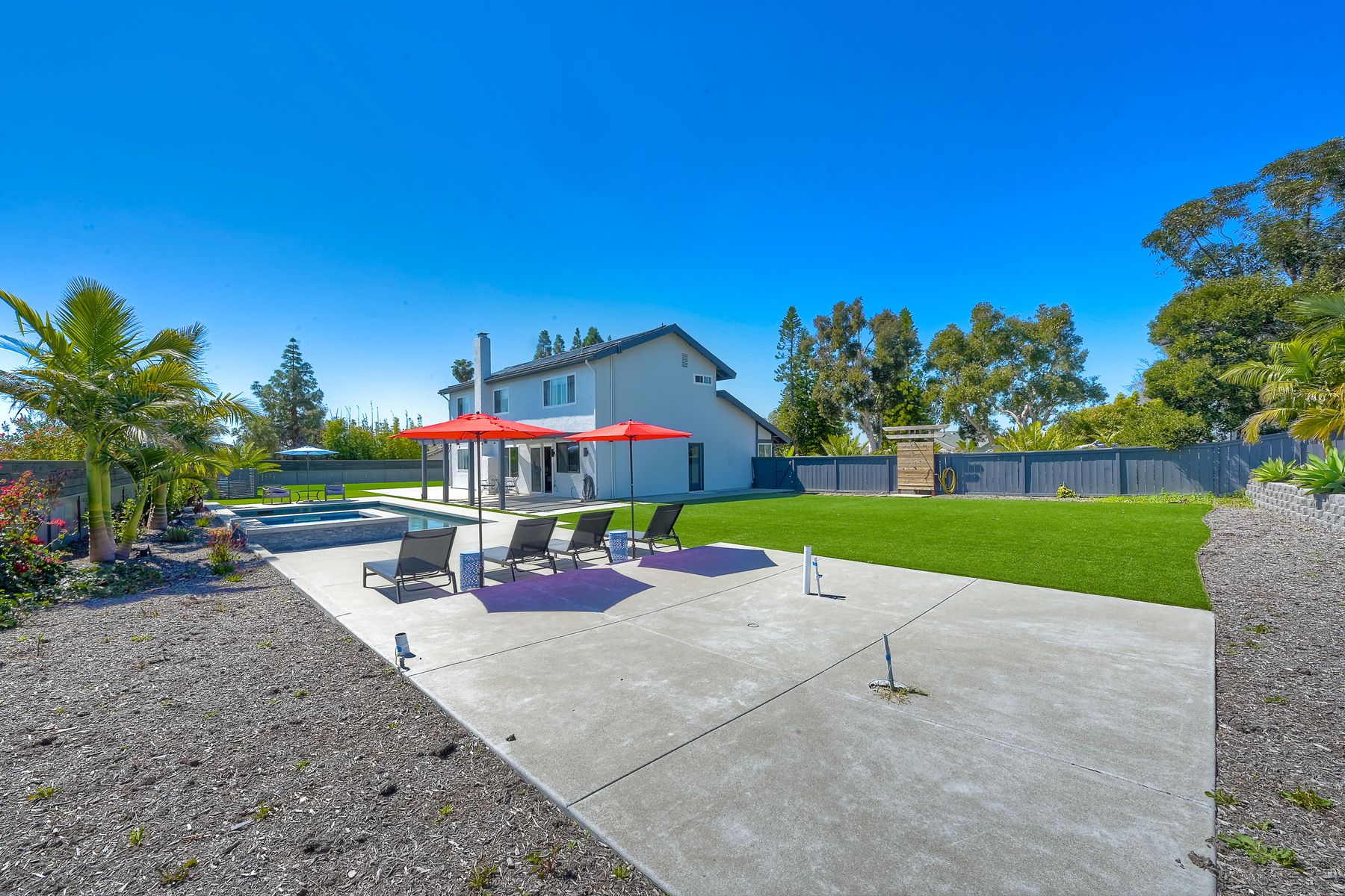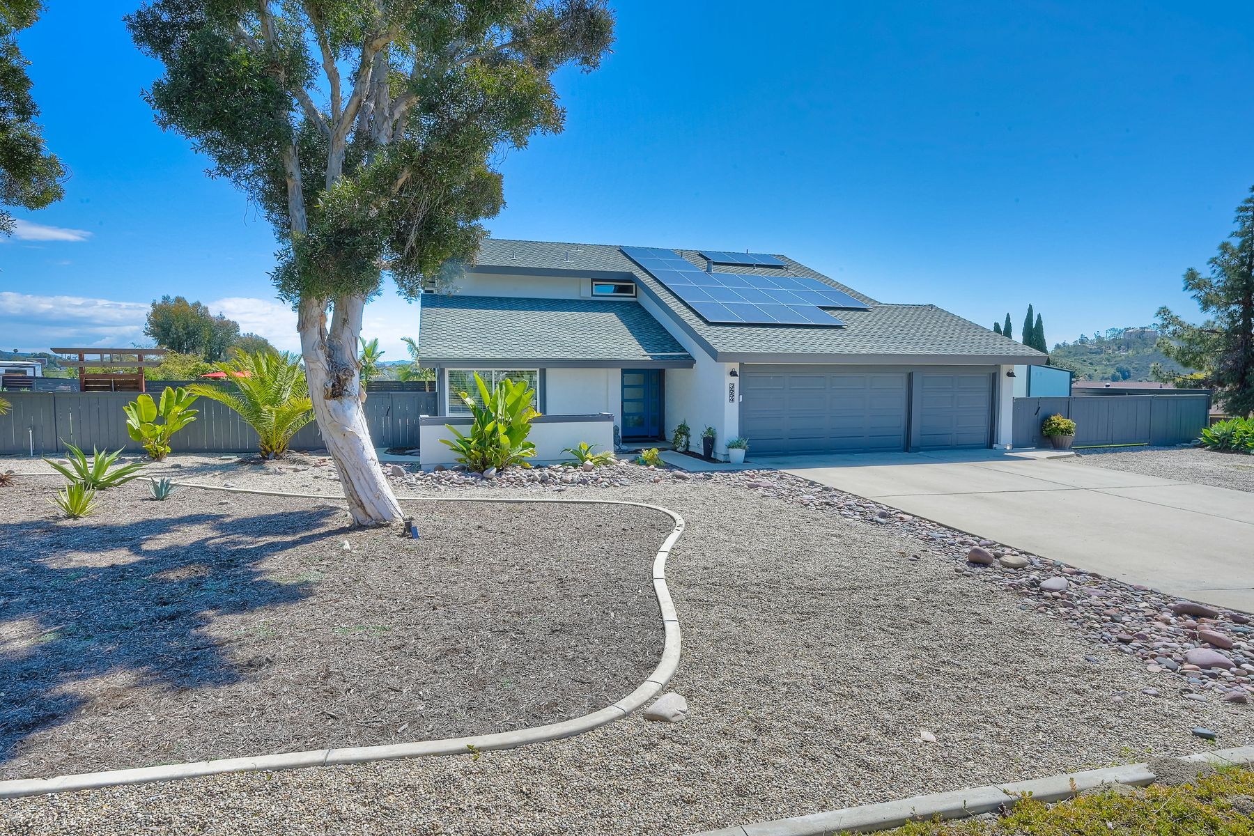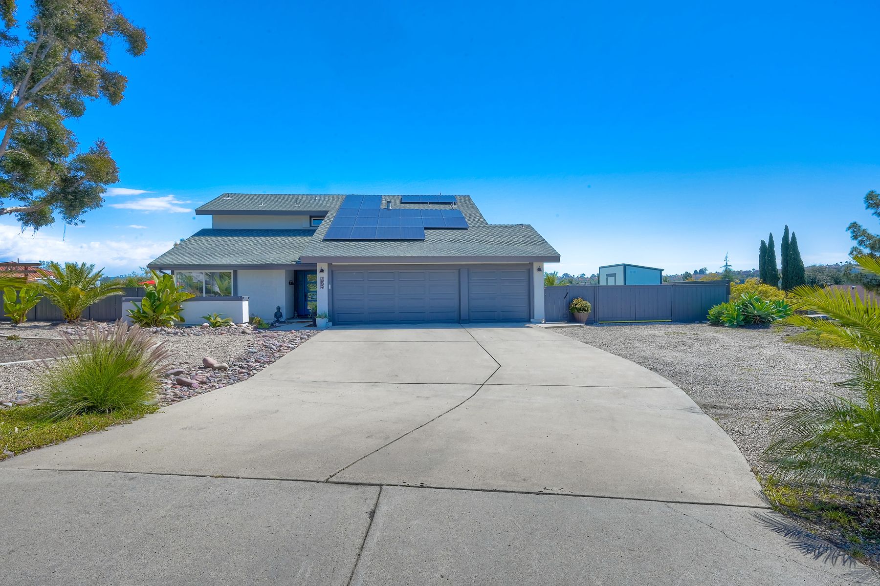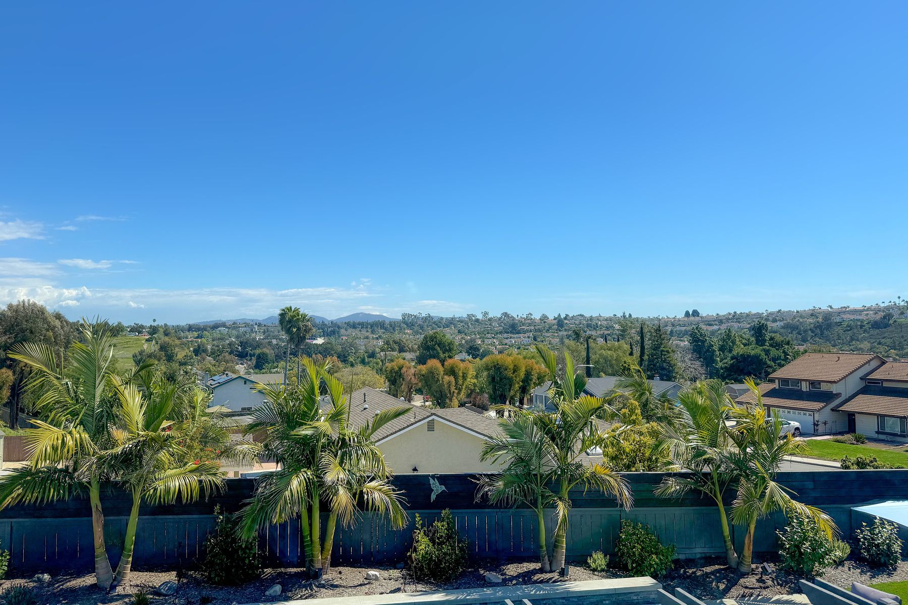 Relocation forces sale & quick $40,000 drop-RV parking or space for an ADU with this highly sought-after Sunset Hills home on a private .47-acre corner lot with stunning hilltop views. No HOA or mello roos. Completely remodeled open floor plan featuring a new kitchen with a gas Wolf stove, stainless steel appliances, and a spacious quartz island. New wood floors & stairs, baseboards, and gas hook up fireplace. Upgraded roof, and a new pebble tech saltwater pool (37 x 17) with spa and swim jet controlled with pentair app. Low-maintenance artificial turf in the backyard & an enormous front yard plus RV parking on the left side behind the fence. The owners planned ahead with a ready-to-use cement pad wired & plumbed for future outdoor kitchen installation or ADU. Outdoor shower and lush landscaping create a resort-like atmosphere. Solar panels added in 2022, including pool heating .Freshly professionally painted interior and exterior. RV or boat parking and ample space for an ADU or house addition. 3-car garage plus 5 + driveway parking. Convenient location near freeway access, Costco, restaurants, and just minutes from the beach. A unique property in the neighborhood. Enjoy the distant mountain views & a country feel minutes from all conveniences. Enjoy this showstopper with a massive statement tree in front with mature bird of paradise plants - Welcome to paradise 5 miles to the beach ! This home borders Vista & Carlsbad with good schools nearby ! Recently new Artificial turf on RV side, new tough shed , coffee bar, garage drywall & new closet doors finished this month but seller was relocated now.. Had accepted offer this last weekend but buyer couldn't do a bridge loan so canceled...seller may owner finance short term with a large down in leau of cont offers.