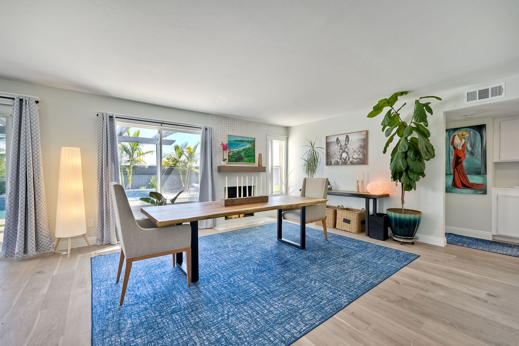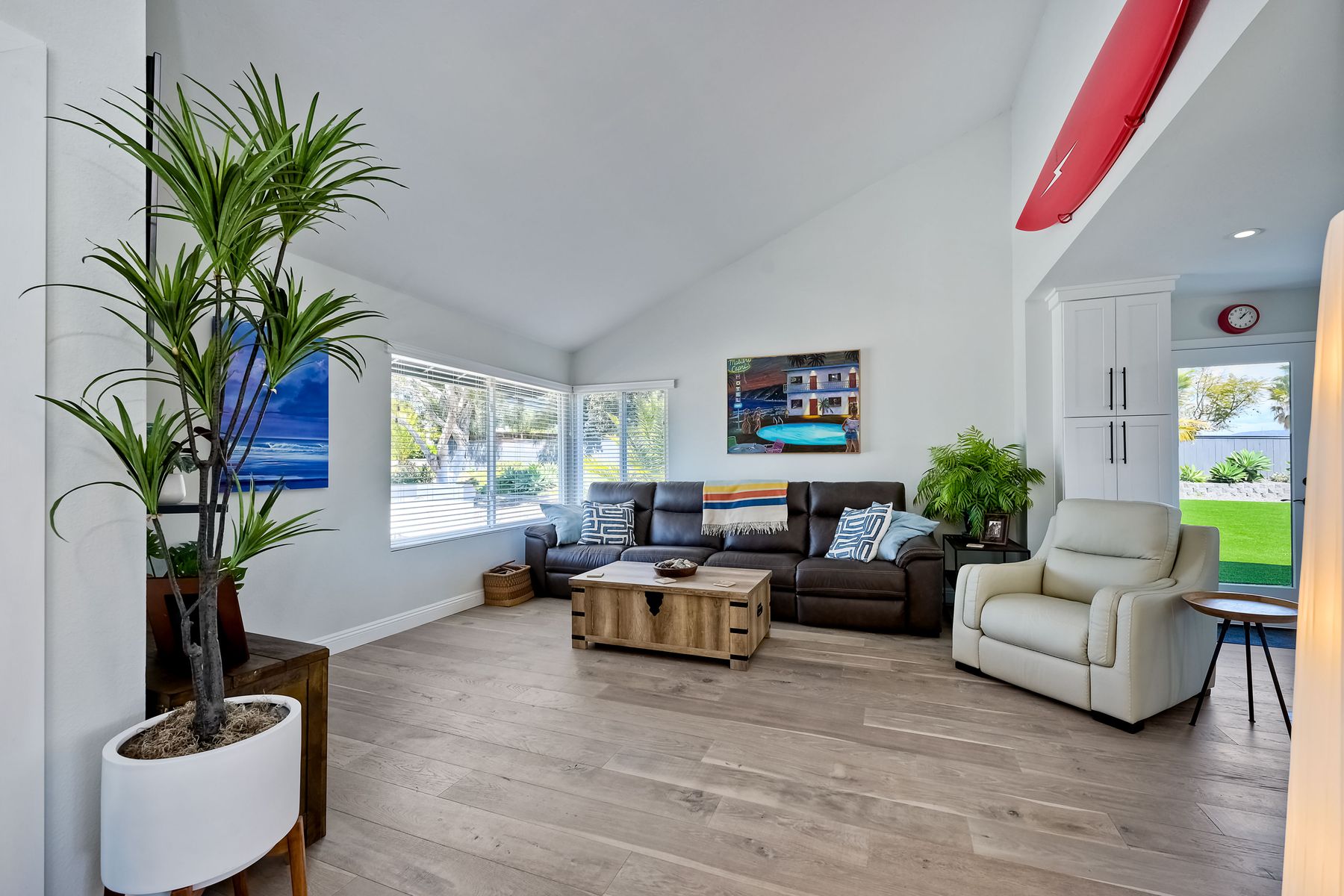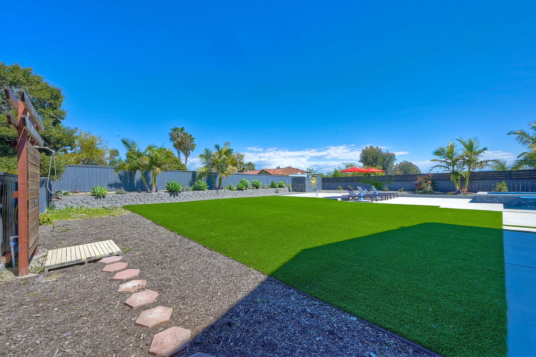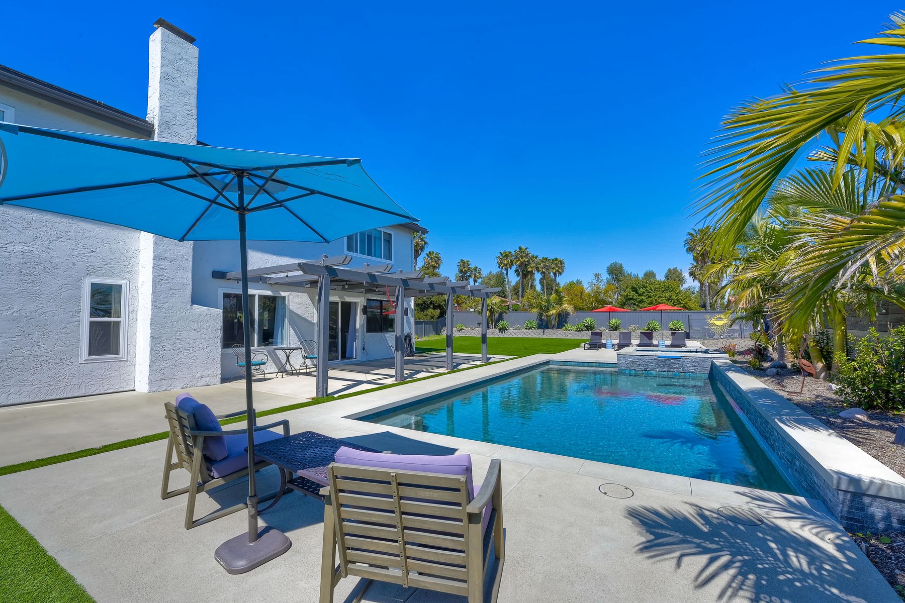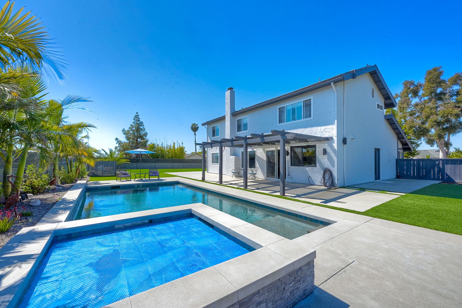 Relocation forces sale & quick $40,000 drop-RV parking or space for an ADU with this highly sought-after Sunset Hills home on a private .47-acre corner lot with stunning hilltop views. No HOA or mello roos. Completely remodeled open floor plan featuring a new kitchen with a gas Wolf stove, stainless steel appliances, and a spacious quartz island. New wood floors & stairs, baseboards, and gas hook up fireplace. Upgraded roof, and a new pebble tech saltwater pool (37 x 17) with spa and swim jet controlled with pentair app. Low-maintenance artificial turf in the backyard & an enormous front yard plus RV parking on the left side behind the fence. The owners planned ahead with a ready-to-use cement pad wired & plumbed for future outdoor kitchen installation or ADU. Outdoor shower and lush landscaping create a resort-like atmosphere. Solar panels added in 2022, including pool heating .Freshly professionally painted interior and exterior. RV or boat parking and ample space for an ADU or house addition. 3-car garage plus 5 + driveway parking. Convenient location near freeway access, Costco, restaurants, and just minutes from the beach. A unique property in the neighborhood. Enjoy the distant mountain views & a country feel minutes from all conveniences. Enjoy this showstopper with a massive statement tree in front with mature bird of paradise plants - Welcome to paradise 5 miles to the beach ! This home borders Vista & Carlsbad with good schools nearby ! Recently new Artificial turf on RV side, new tough shed , coffee bar, garage drywall & new closet doors finished this month but seller was relocated now.. Had accepted offer this last weekend but buyer couldn't do a bridge loan so canceled...seller may owner finance short term with a large down in leau of cont offers.