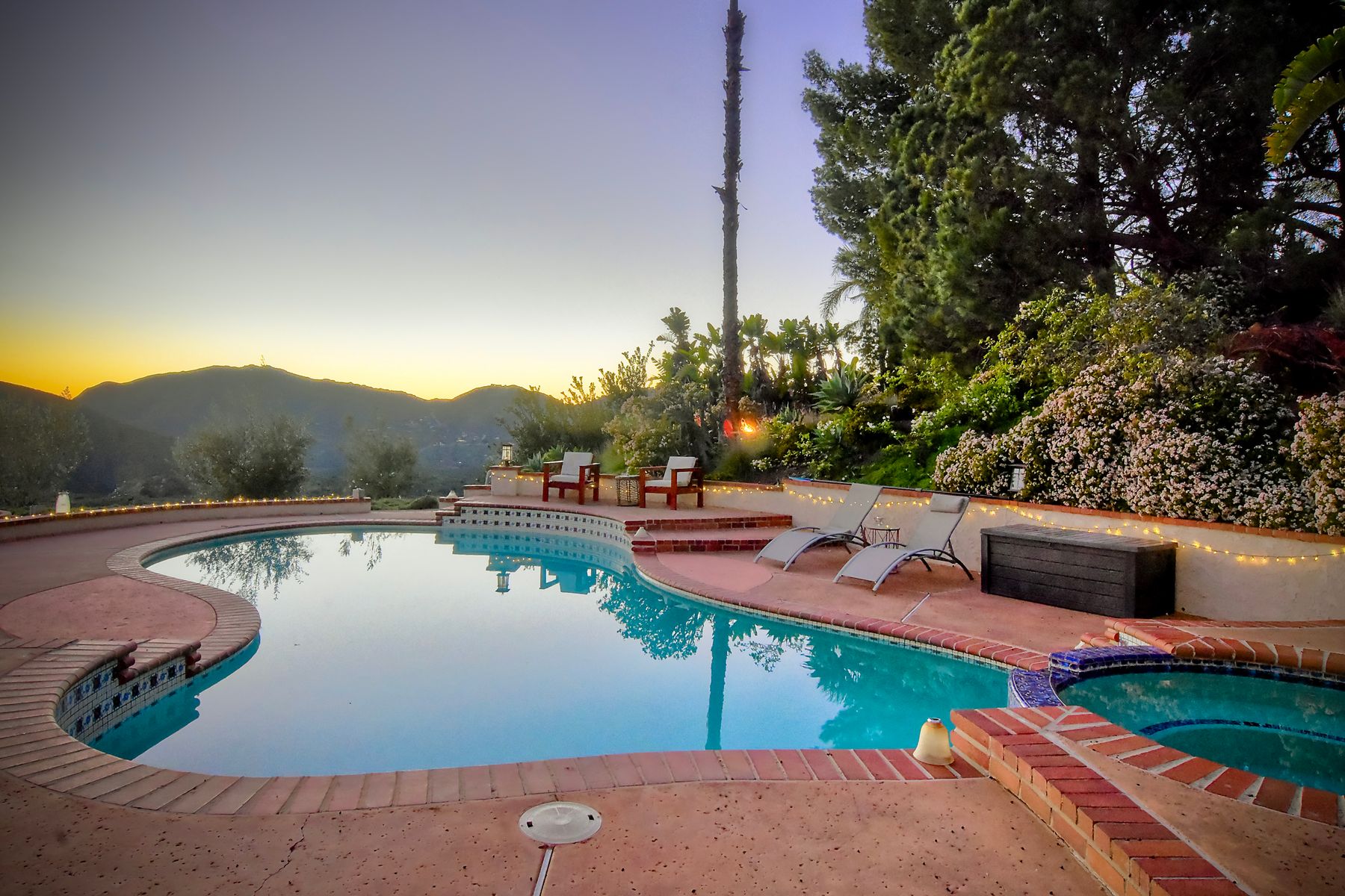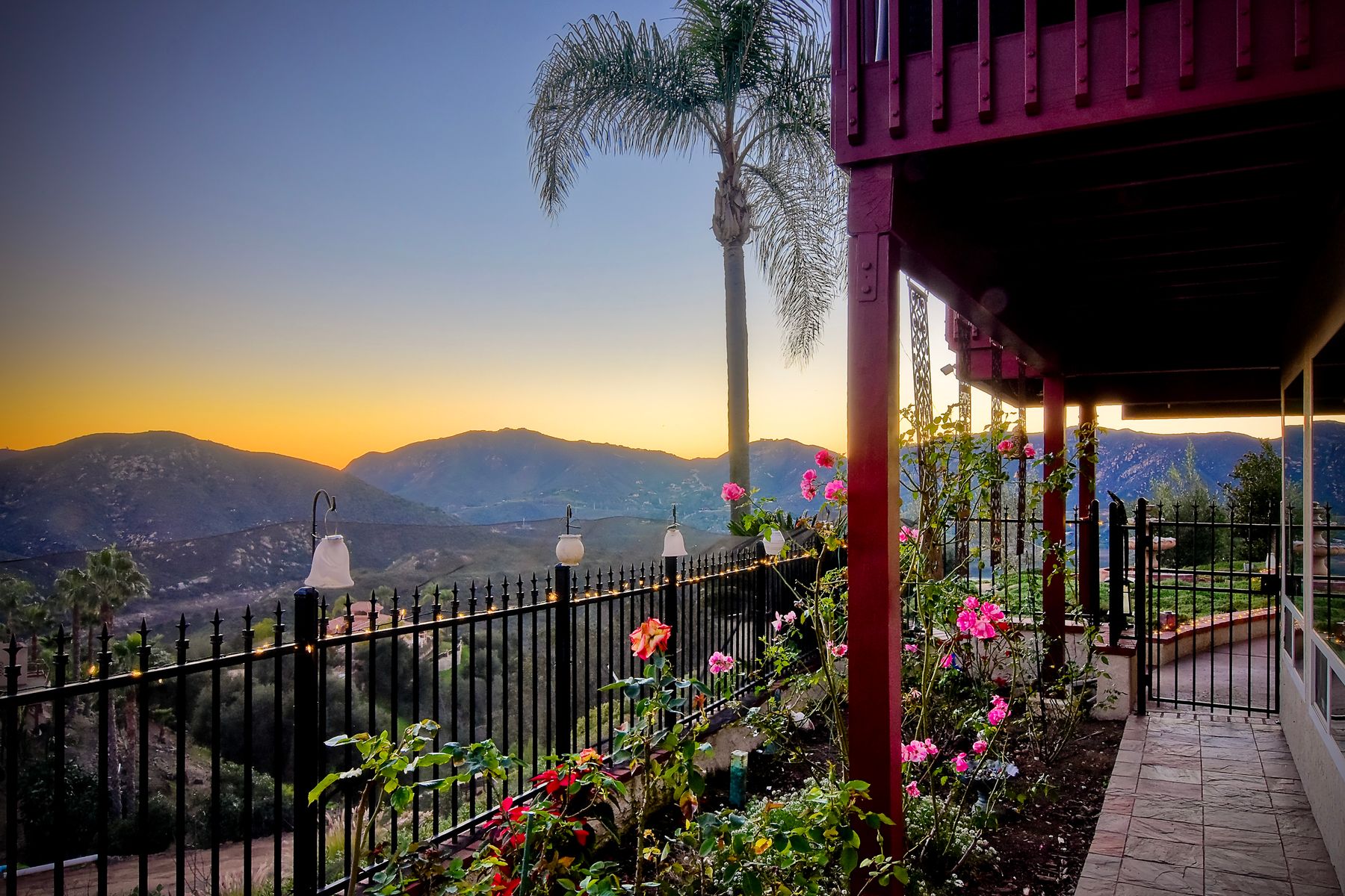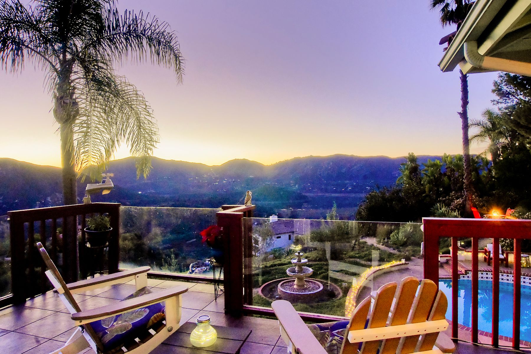 If growing your own food is on your bucket list, this home is for you. Is planting a vineyard something you've always dreamed of? There's room for that! The amazing green house and multiple fruits trees, are there for you to enjoy all year long. Featuring views of both Lake Hodges and Rancho Bernardo, this home offers privacy, quiet and room to roam. Large and spacious, with views from almost any room you're enter, you'll love the beautiful sunsets and sunrises. The Primary has a deck to enjoy coffee in the morning and wine at night. The other bedrooms feature Juliette balconies overlooking the beautiful yard. Swim in your solar heated pool all year long.