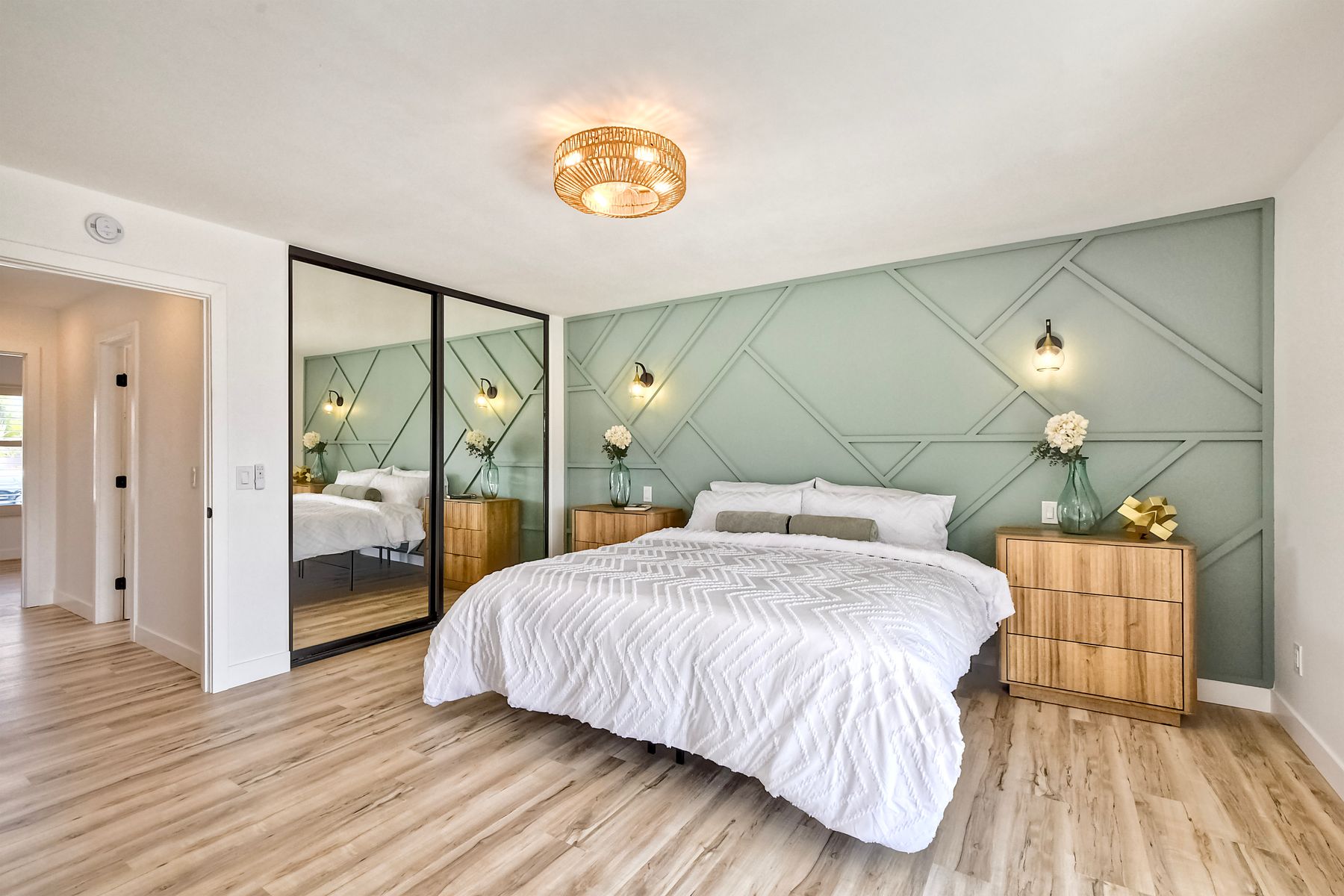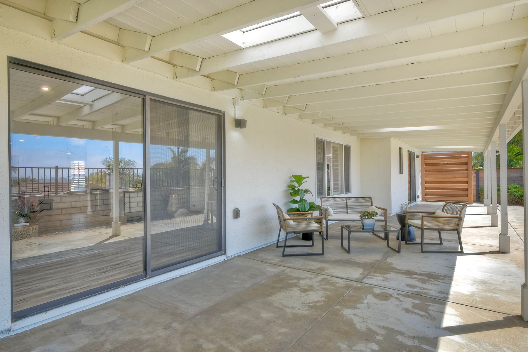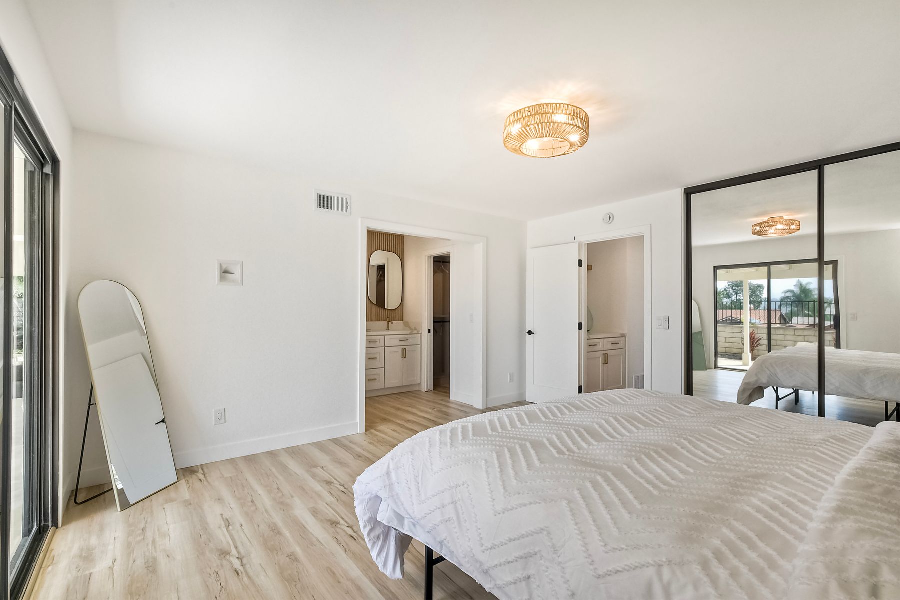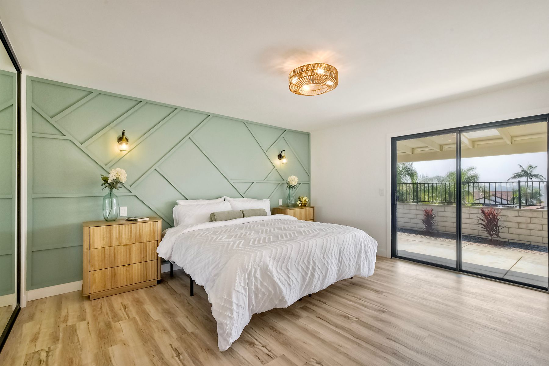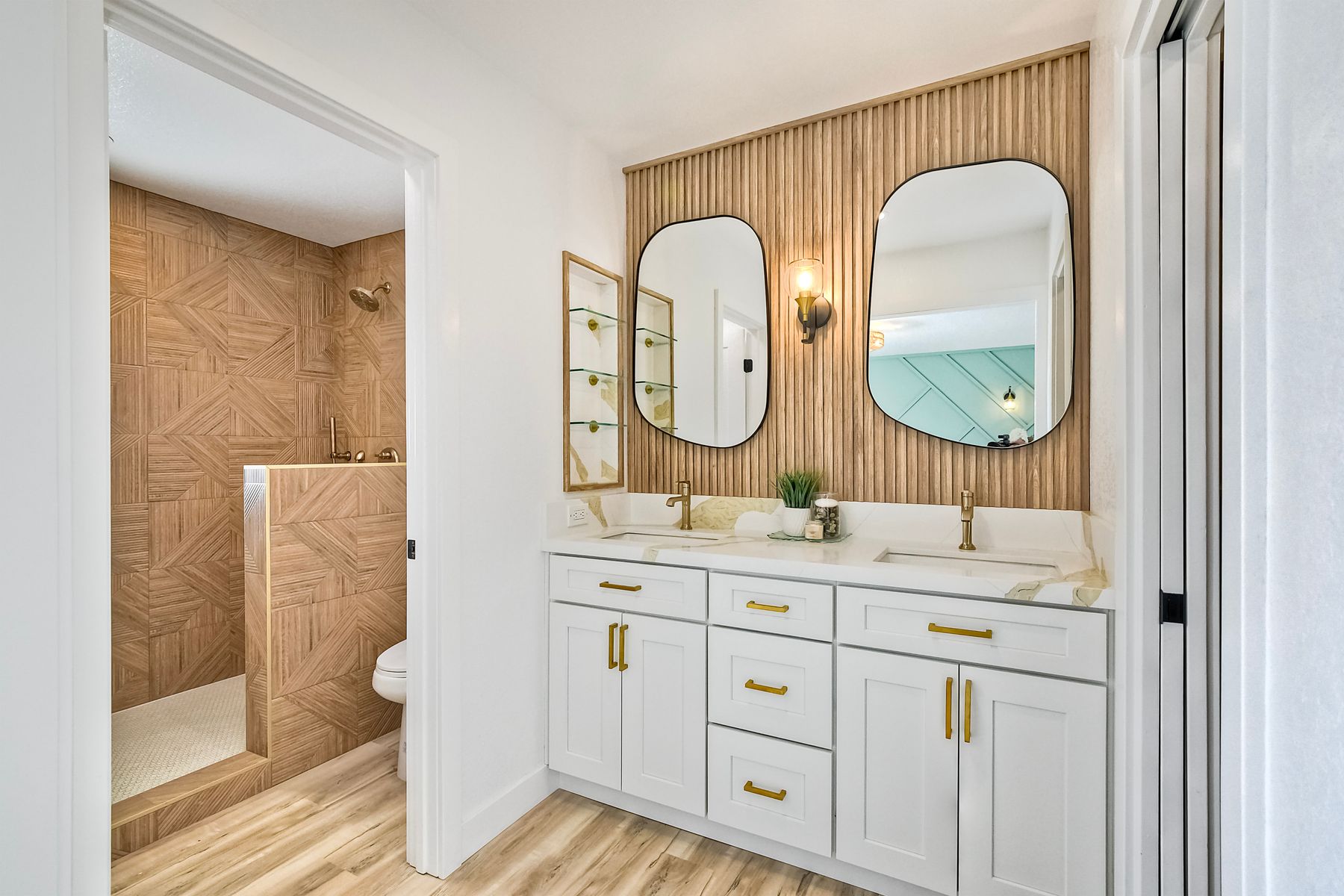 Beautifully modernized single story home with interior that blends elegance with comfort. The open floor plan features high ceilings, luxury vinyl floors, and plantation shutters, all bathed in natural light, creating a bright and airy atmosphere. The gourmet kitchen is a chef’s dream, boasting brand new cabinets, beverage center, Zline appliances, custom lighting fixtures, beverage center, pantry, and a stunning island with waterfall stone countertops. The attention to detail continues with cozy fireplaces in both the family and dining rooms. Both bathrooms have been fully remodeled with designer touches including new cabinets, countertops, custom tile, and upgraded fixtures. The master suite is a serene retreat with a large walk-in closet, custom organizers, an accent wall, and an en-suite bath featuring double sinks and luxurious finishes.Step outside into your own west-facing outdoor oasis, perfect for entertaining or simply relaxing. With low maintenance manicured landscaping, you’ll feel like you’ve entered your personal paradise. Plus, the coastal breeze keeps the home cool all year round. This is more than just a home—it’s a rare opportunity to experience luxury living in one of Carlsbad’s most sought-after neighborhoods. Meticulously designed home sits on a spacious 7,443 sq ft flat lot, with no HOA fees, Mello Roos, no powerlines or road noise. Beautifully modernized interior that blends elegance with comfort.
