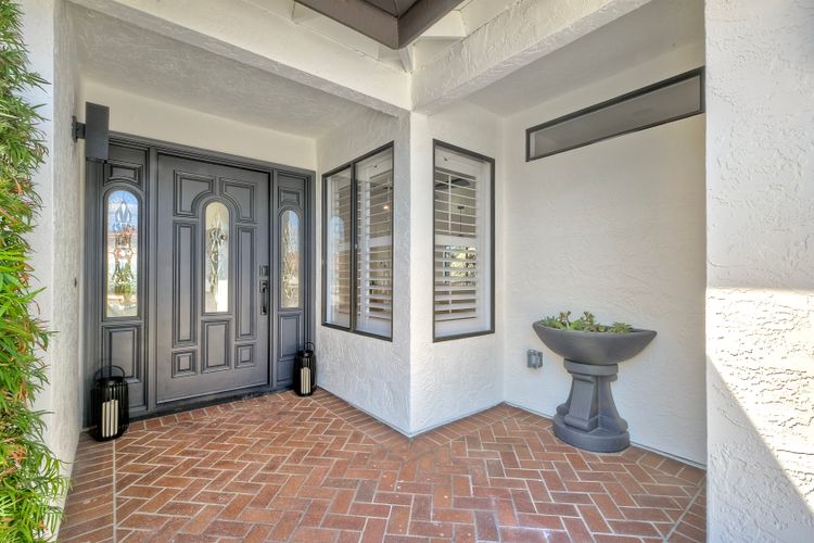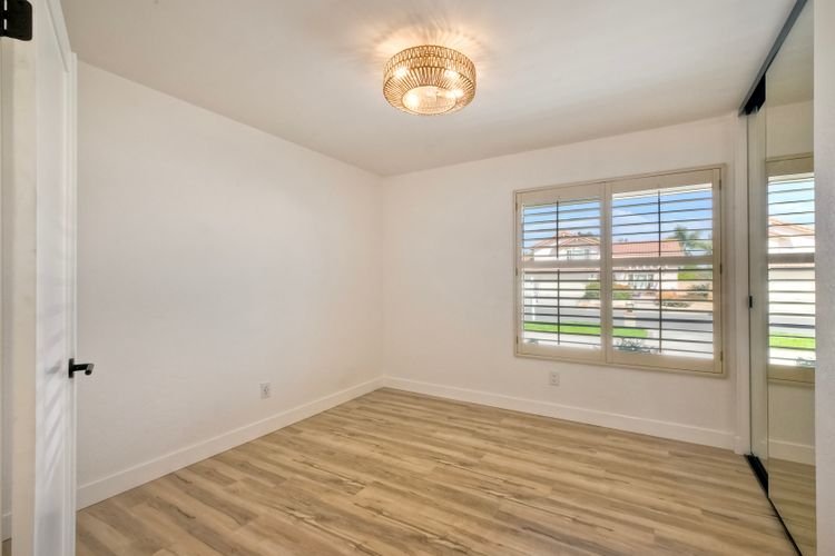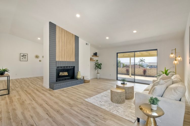 Beautifully modernized single story home with interior that blends elegance with comfort. The open floor plan features high ceilings, luxury vinyl floors, and plantation shutters, all bathed in natural light, creating a bright and airy atmosphere. The gourmet kitchen is a chef’s dream, boasting brand new cabinets, beverage center, Zline appliances, custom lighting fixtures, beverage center, pantry, and a stunning island with waterfall stone countertops. The attention to detail continues with cozy fireplaces in both the family and dining rooms. Both bathrooms have been fully remodeled with designer touches including new cabinets, countertops, custom tile, and upgraded fixtures. The master suite is a serene retreat with a large walk-in closet, custom organizers, an accent wall, and an en-suite bath featuring double sinks and luxurious finishes.Step outside into your own west-facing outdoor oasis, perfect for entertaining or simply relaxing. With low maintenance manicured landscaping, you’ll feel like you’ve entered your personal paradise. Plus, the coastal breeze keeps the home cool all year round. This is more than just a home—it’s a rare opportunity to experience luxury living in one of Carlsbad’s most sought-after neighborhoods. Meticulously designed home sits on a spacious 7,443 sq ft flat lot, with no HOA fees, Mello Roos, no powerlines or road noise. Beautifully modernized interior that blends elegance with comfort.
