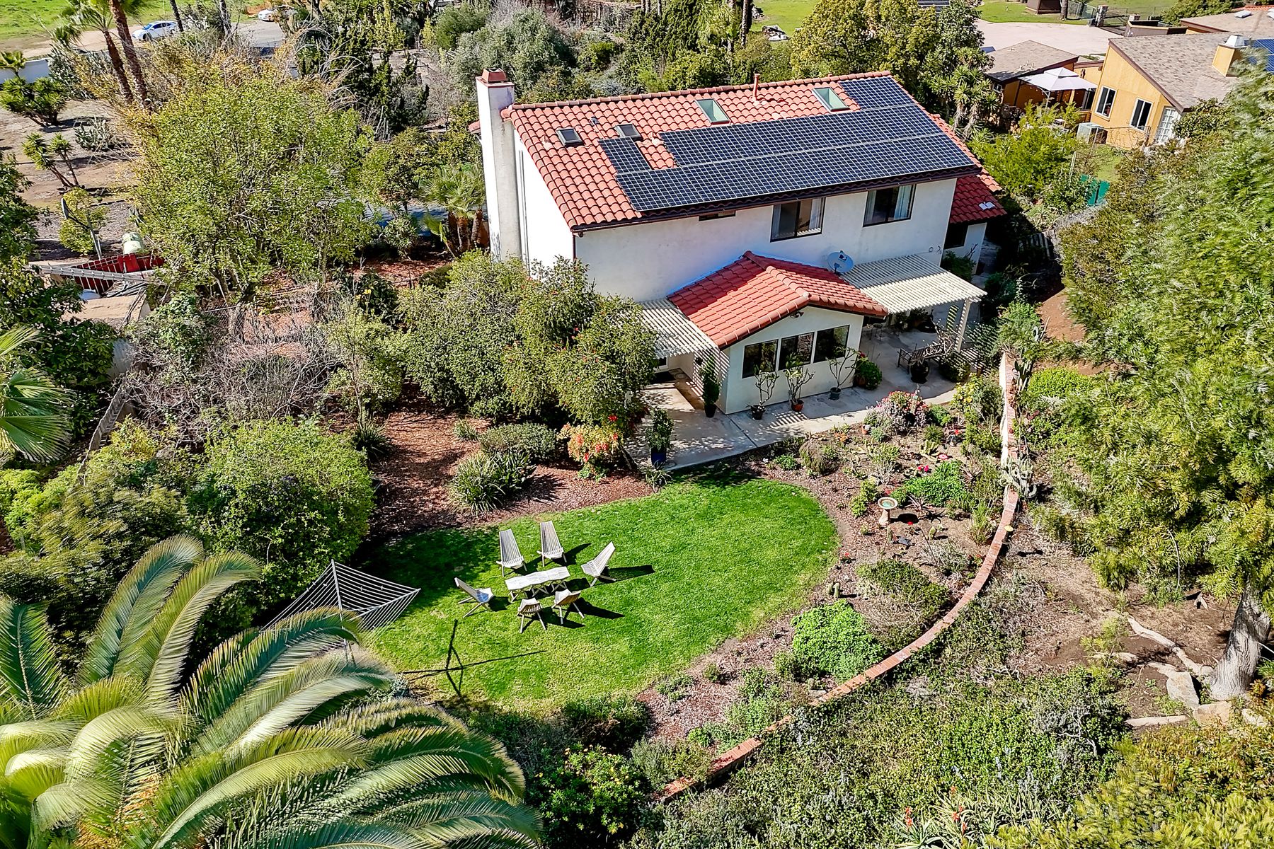MAJOR PRICE IMPROVEMENT. YES the chickens are included. With the price of eggs these days this is a definite plus. Nestled on a usable 1.27 acre lot, this exquisite property offers the perfect blend of tranquility, space,and convenience. The Solar is owned and paid. Located at the end of a private cul-d-sac, this home is a haven where you can spend your days wandering through your own Garden of Eden. This fully landscaped property with mature fruit trees and vegetable beds, is a rare find. There are endless possibilities for outdoor enthusiasts. Ample space for RV parking, horse friendly zone, possible ADU.Once inside you will be charmed by the timeless beauty of cherry wood floors and the modern design of an open concept interior. This home is as functional as it is beautiful. Conveniently located 30 minutes from downtown San Diego and beaches. Short drive to the famous Safari Park and within walking distance to Kit Carson park,Orfila Winery and Westfields Shopping Mall. Enjoy downtown Escondido with many shops, restaurants, Cruising Grand. Whether you're looking for serene privacy or a centrally located base for exploring the best of Southern California, this home has it all. Don't miss your chance to own this incredible property.