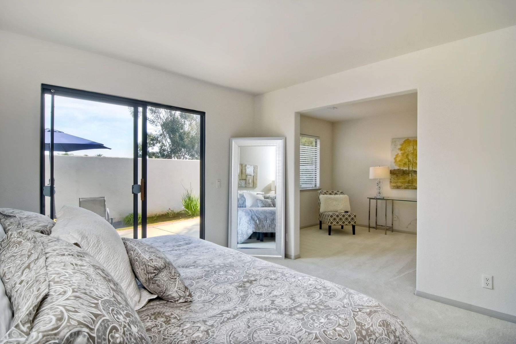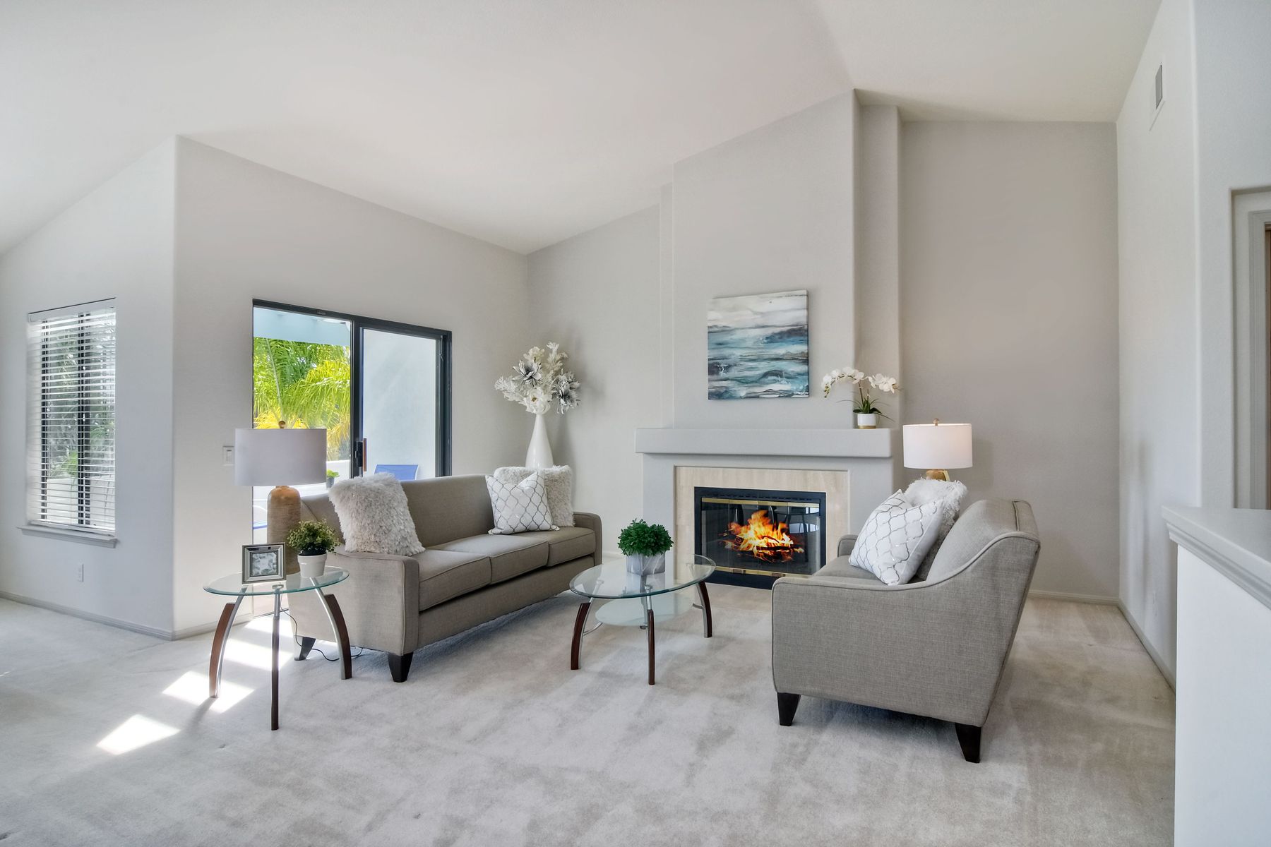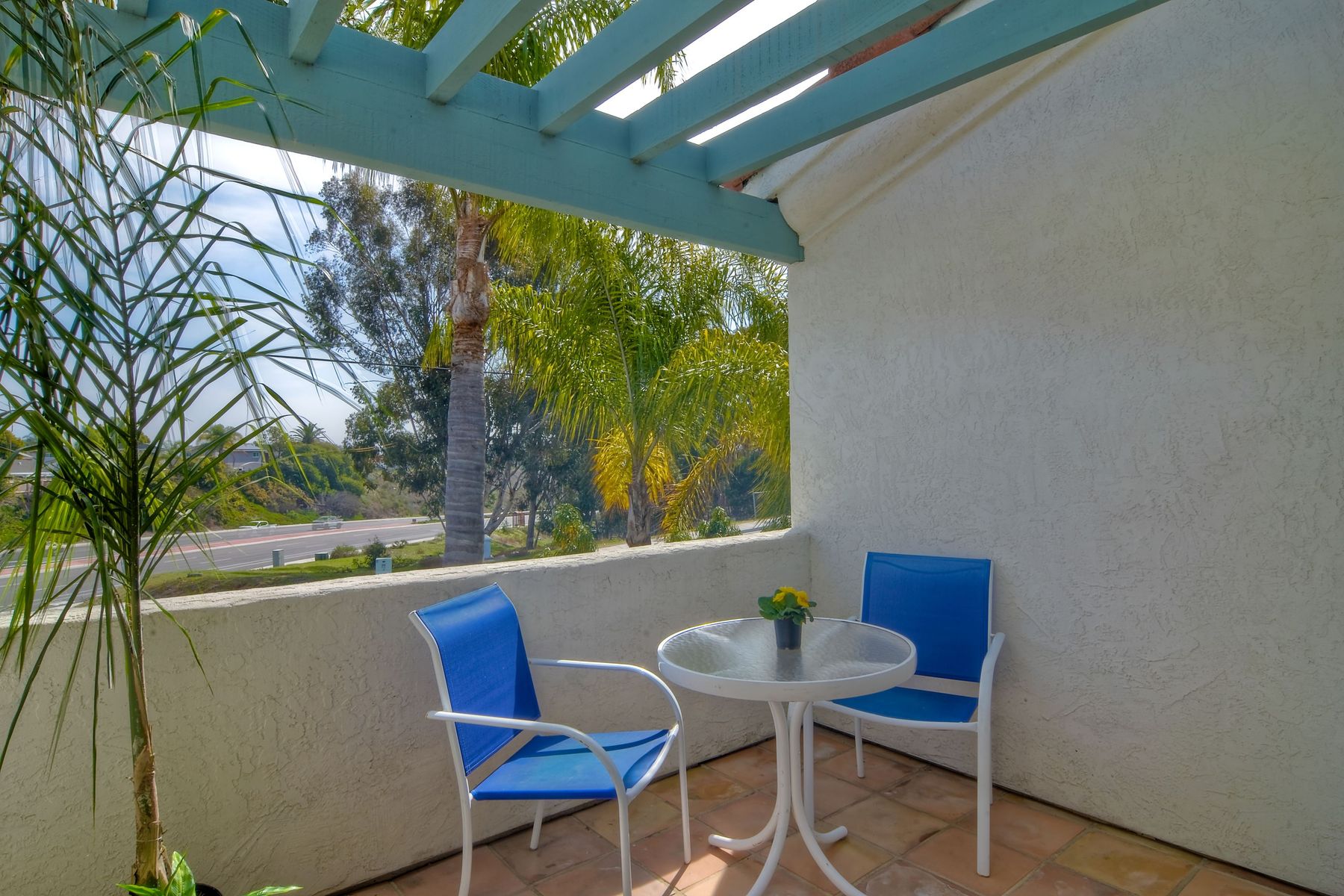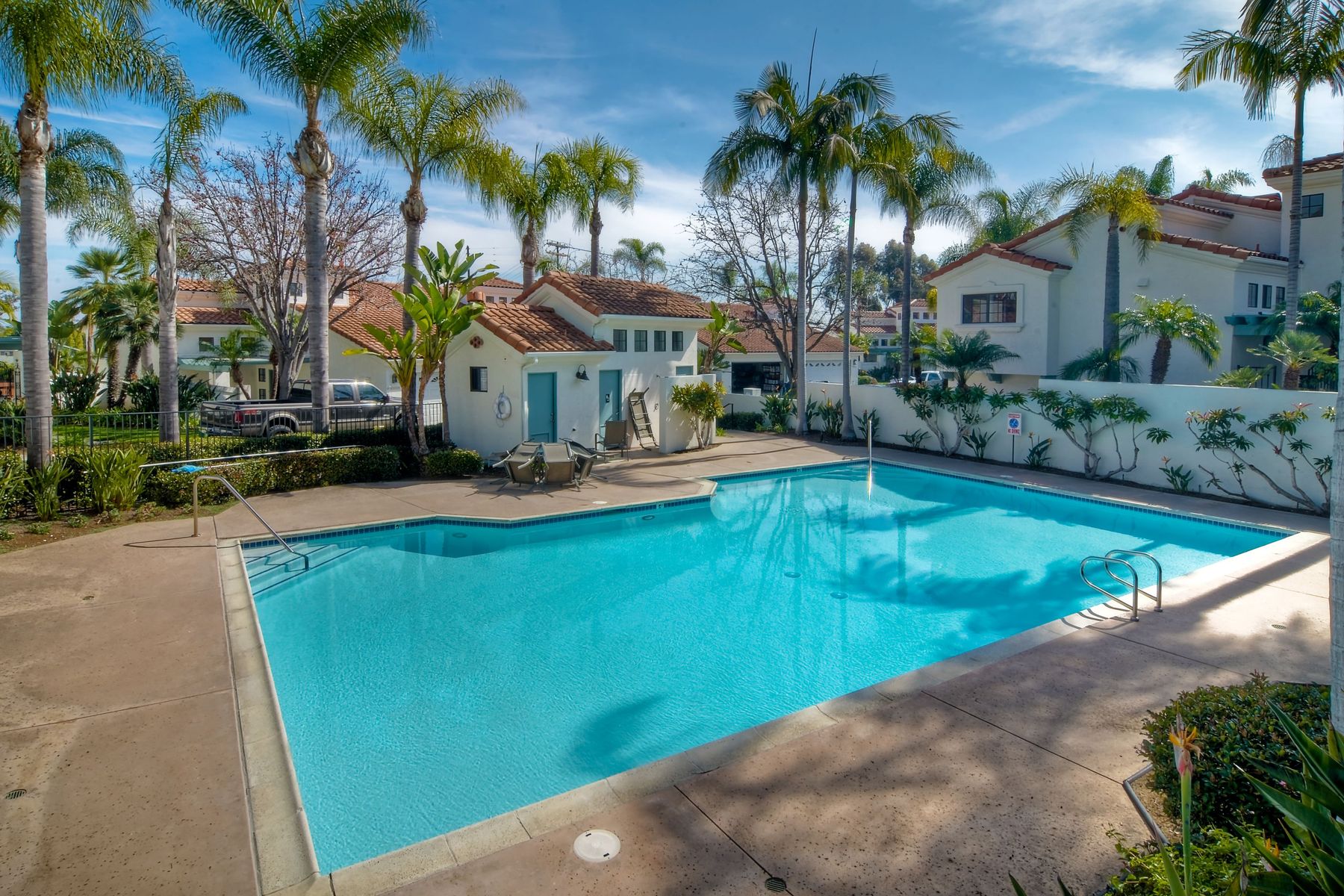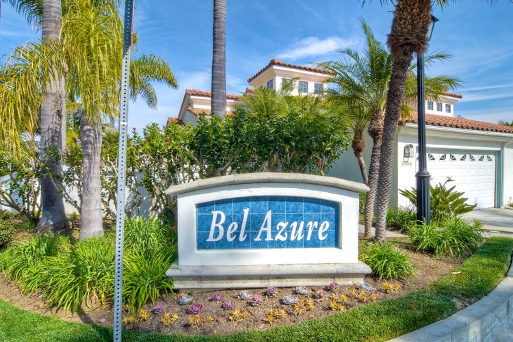 Beautiful 2+1 Bedrooms, 2-1/2 Baths, 1,867 Sq. Ft., in the community of Bel Azure’s an enclave of 30 homes located in NW Carlsbad. This home features a Master Suite with en-suite Bath, walk-in closet and an additional Optional Room (Sitting, Office or possible 3rd small bedroom). Second Bedroom is a Jr. Suite with attached bathroom and step in closet. All bedrooms open to back garden patio w/storage closet. This freshly painted home has been recently updated with A/C unit, heat, water heater, toilets also home has soft water service. The home feels like a detached home with its open airy floor plan, vaulted ceilings and a large fireplace. The light & bright large kitchen with vaulted ceilings offers ample countertops and cabinets. Separate Laundry room includes newer Washer and Dryer. Enjoy views of hills and mountains in the distance, from the common living area and balcony. An attached oversized 2 car garage features a large loft storage overhead as well as built in storage area. The HOA covers building exterior, roof, termite work, front and community landscaping, roads, and the community pool.
