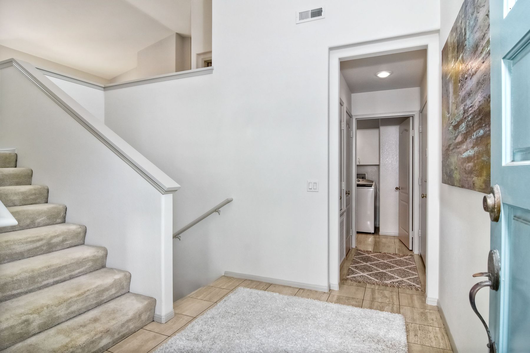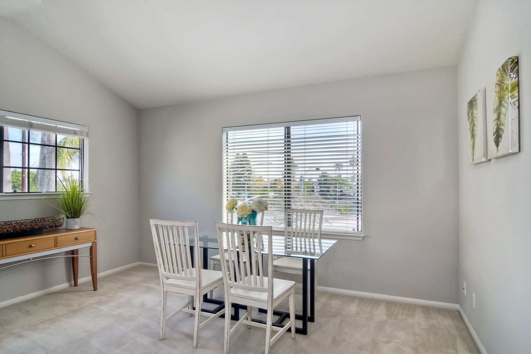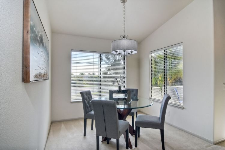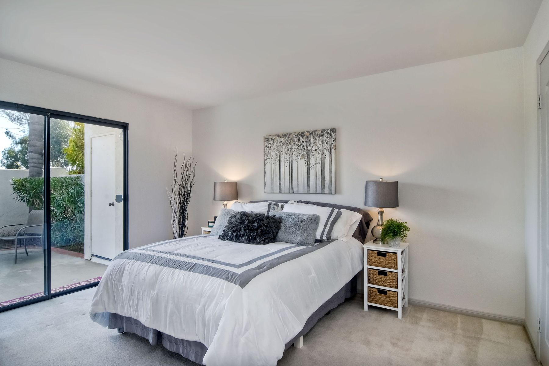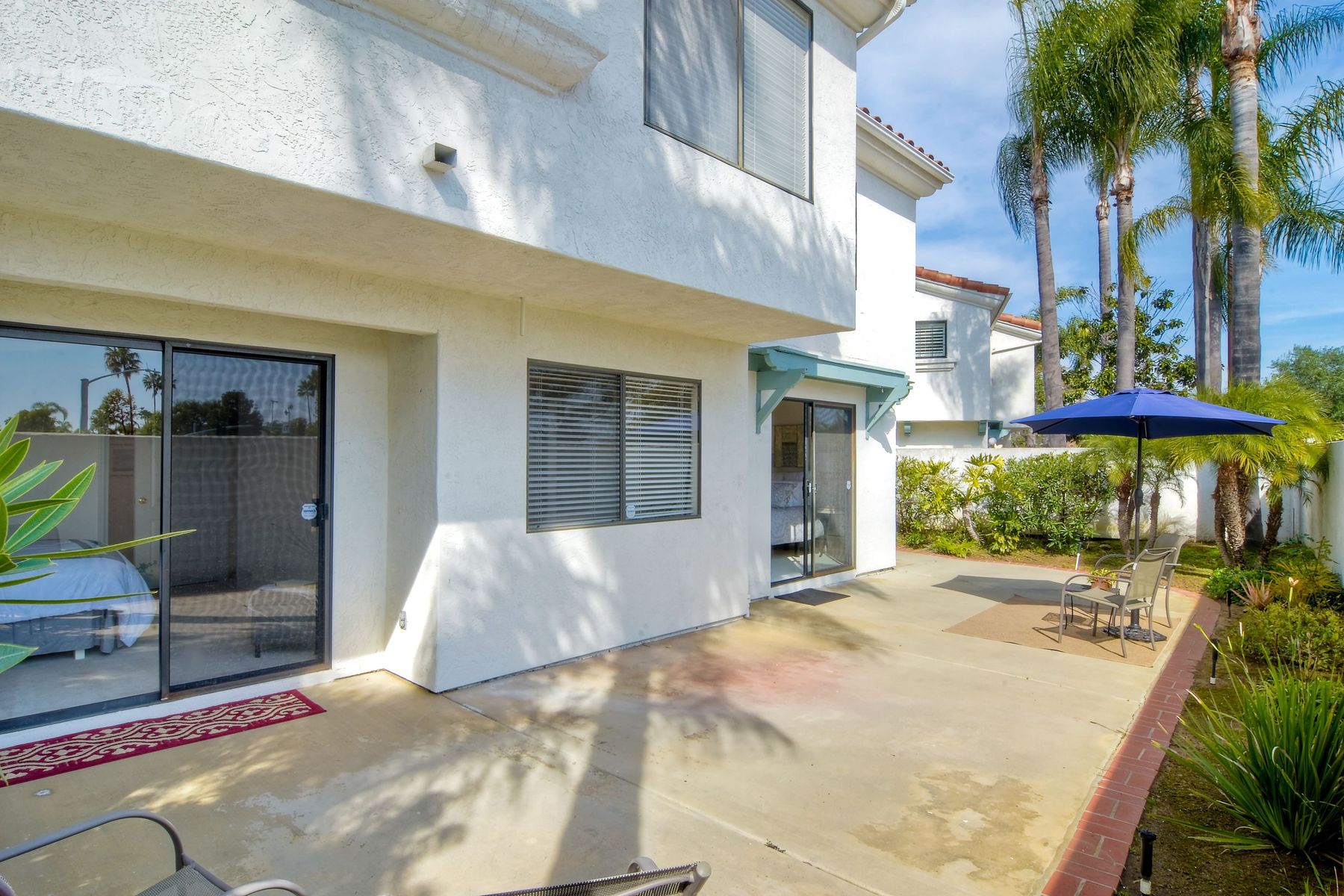 Beautiful 2+1 Bedrooms, 2-1/2 Baths, 1,867 Sq. Ft., in the community of Bel Azure’s an enclave of 30 homes located in NW Carlsbad. This home features a Master Suite with en-suite Bath, walk-in closet and an additional Optional Room (Sitting, Office or possible 3rd small bedroom). Second Bedroom is a Jr. Suite with attached bathroom and step in closet. All bedrooms open to back garden patio w/storage closet. This freshly painted home has been recently updated with A/C unit, heat, water heater, toilets also home has soft water service. The home feels like a detached home with its open airy floor plan, vaulted ceilings and a large fireplace. The light & bright large kitchen with vaulted ceilings offers ample countertops and cabinets. Separate Laundry room includes newer Washer and Dryer. Enjoy views of hills and mountains in the distance, from the common living area and balcony. An attached oversized 2 car garage features a large loft storage overhead as well as built in storage area. The HOA covers building exterior, roof, termite work, front and community landscaping, roads, and the community pool.