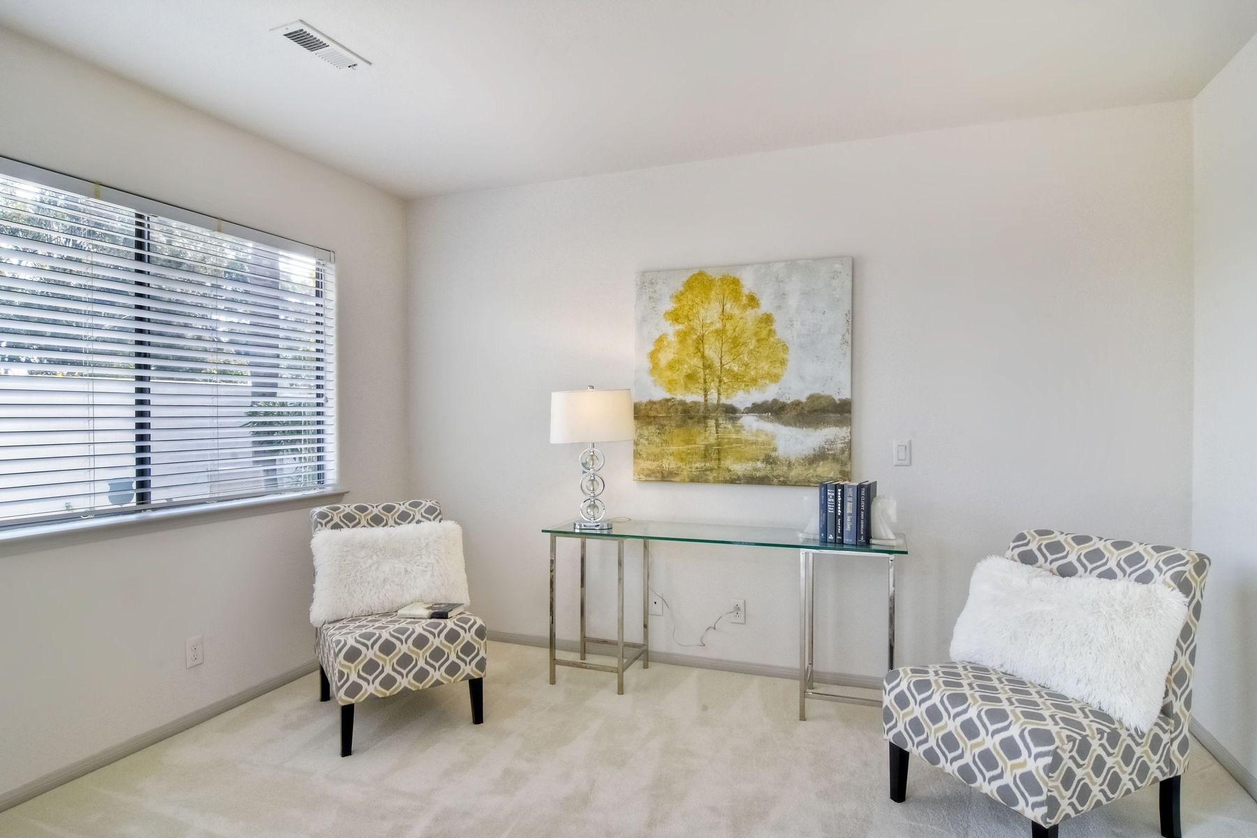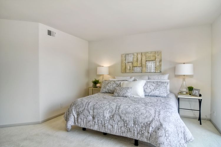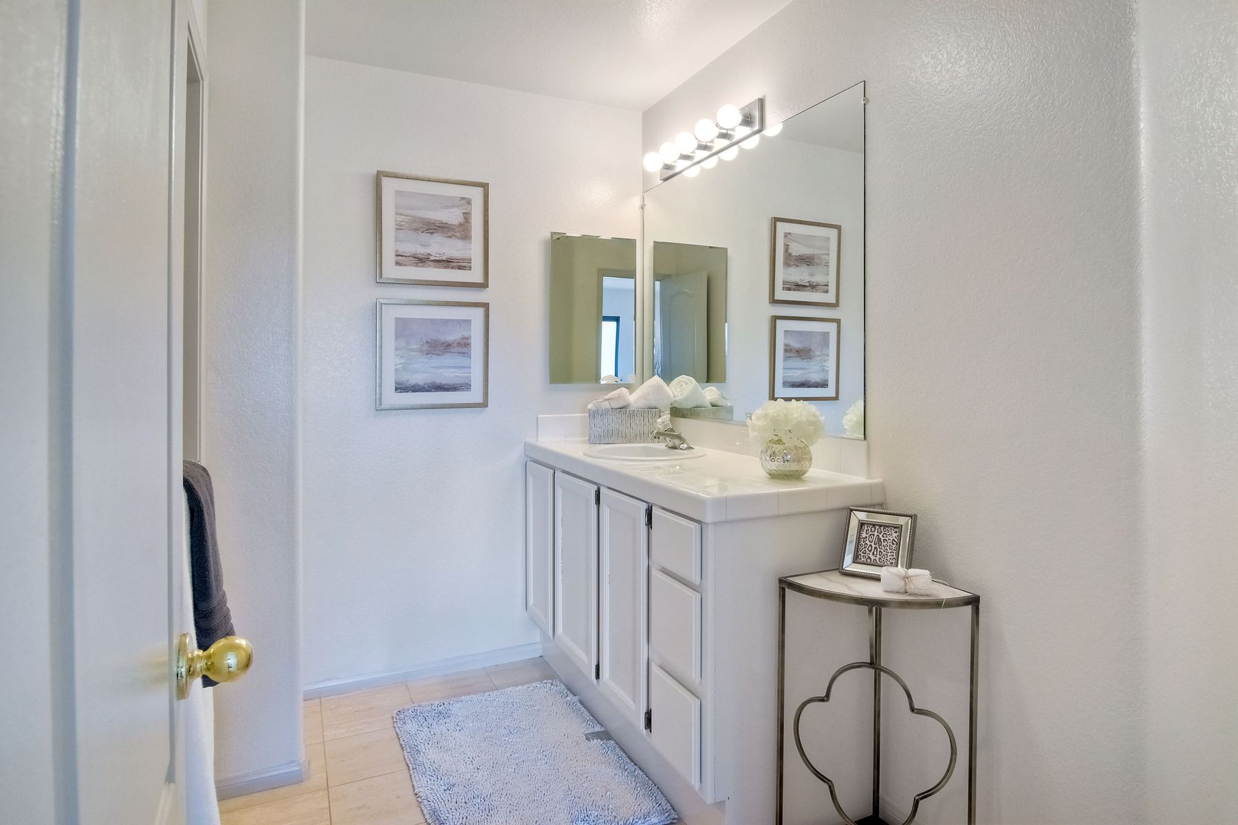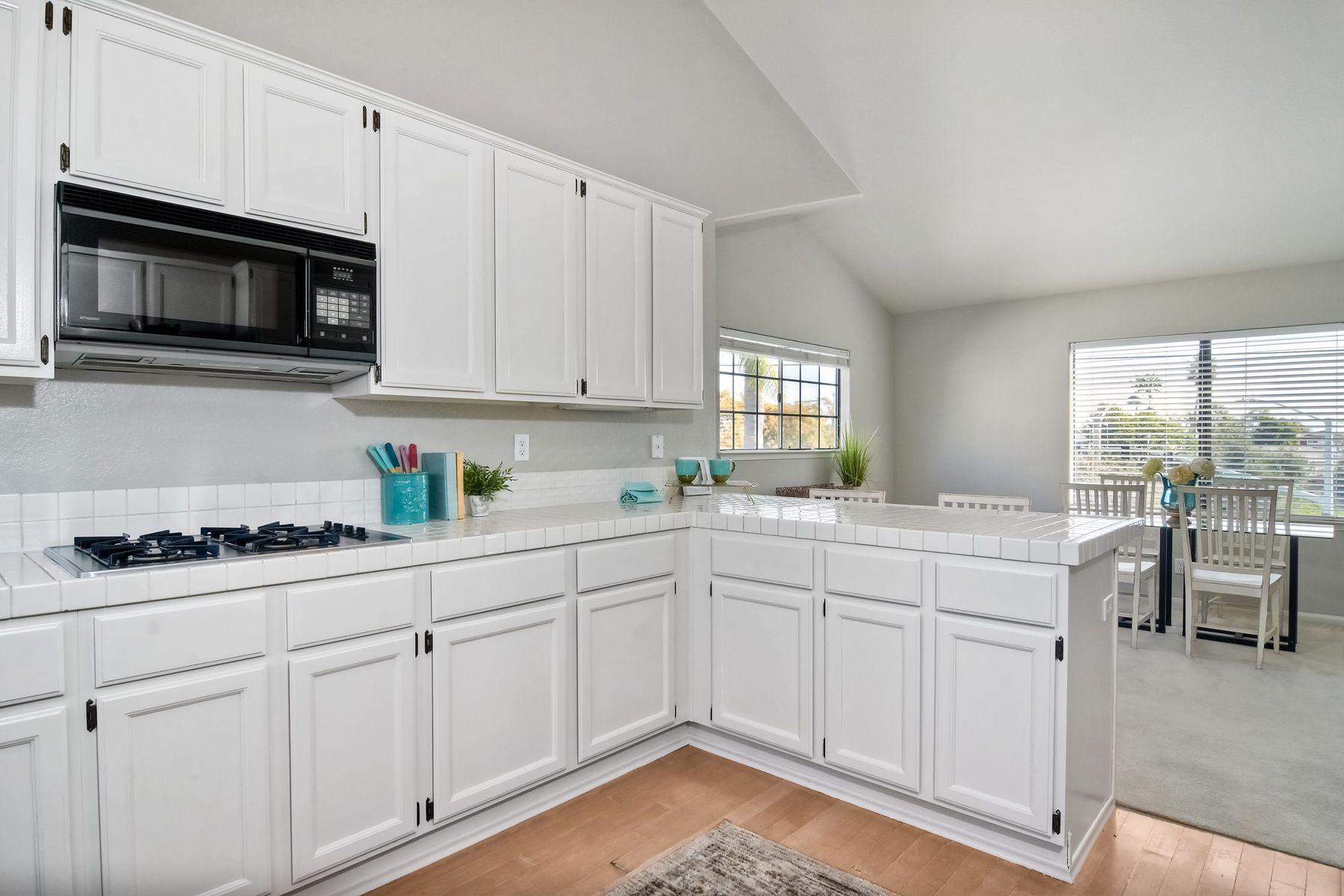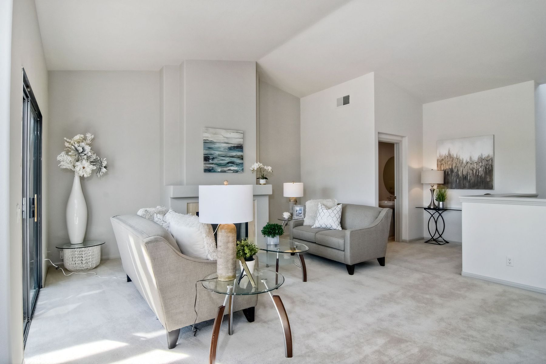 Beautiful 2+1 Bedrooms, 2-1/2 Baths, 1,867 Sq. Ft., in the community of Bel Azure’s an enclave of 30 homes located in NW Carlsbad. This home features a Master Suite with en-suite Bath, walk-in closet and an additional Optional Room (Sitting, Office or possible 3rd small bedroom). Second Bedroom is a Jr. Suite with attached bathroom and step in closet. All bedrooms open to back garden patio w/storage closet. This freshly painted home has been recently updated with A/C unit, heat, water heater, toilets also home has soft water service. The home feels like a detached home with its open airy floor plan, vaulted ceilings and a large fireplace. The light & bright large kitchen with vaulted ceilings offers ample countertops and cabinets. Separate Laundry room includes newer Washer and Dryer. Enjoy views of hills and mountains in the distance, from the common living area and balcony. An attached oversized 2 car garage features a large loft storage overhead as well as built in storage area. The HOA covers building exterior, roof, termite work, front and community landscaping, roads, and the community pool.