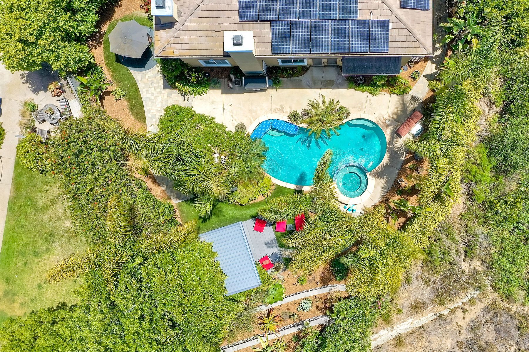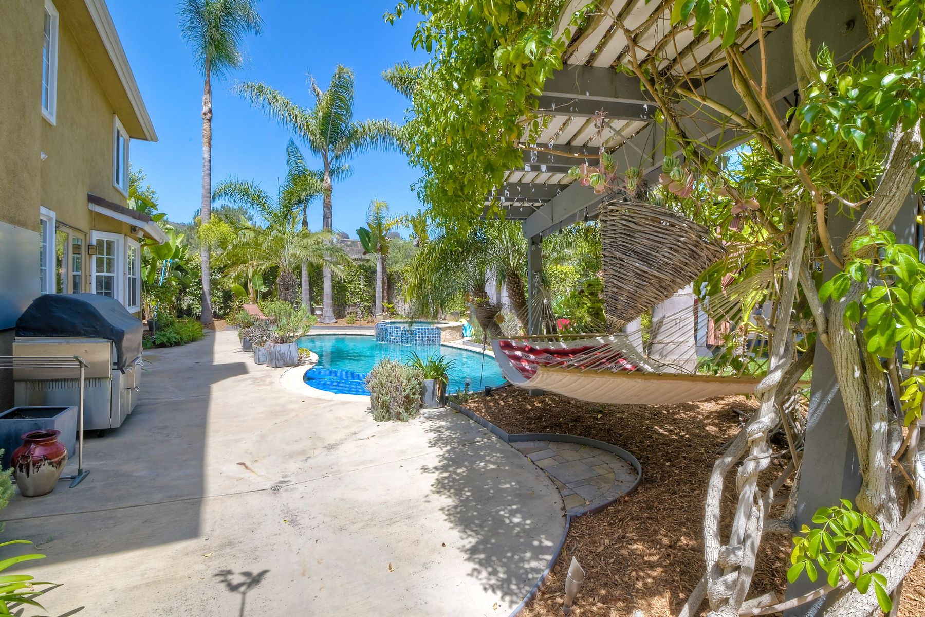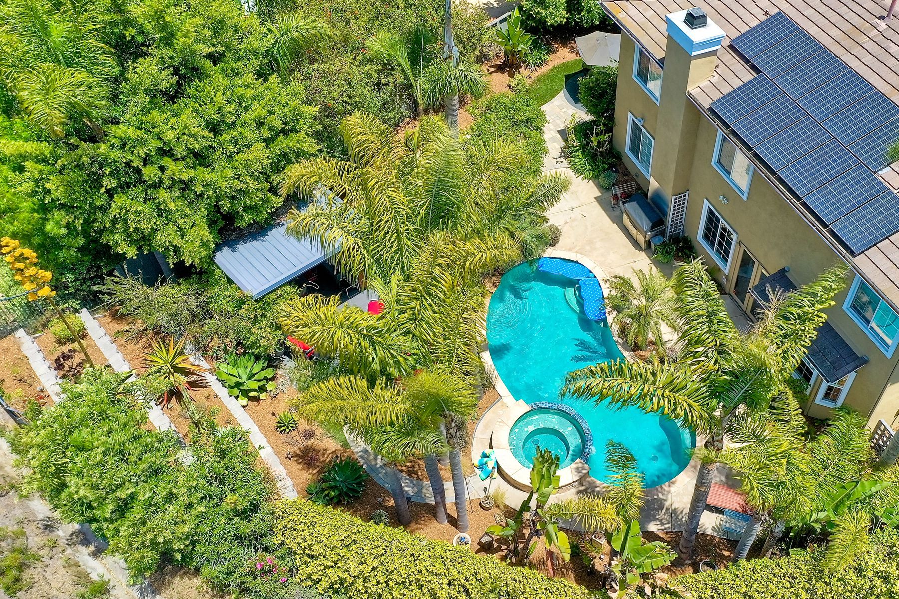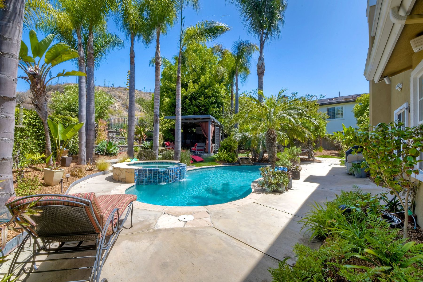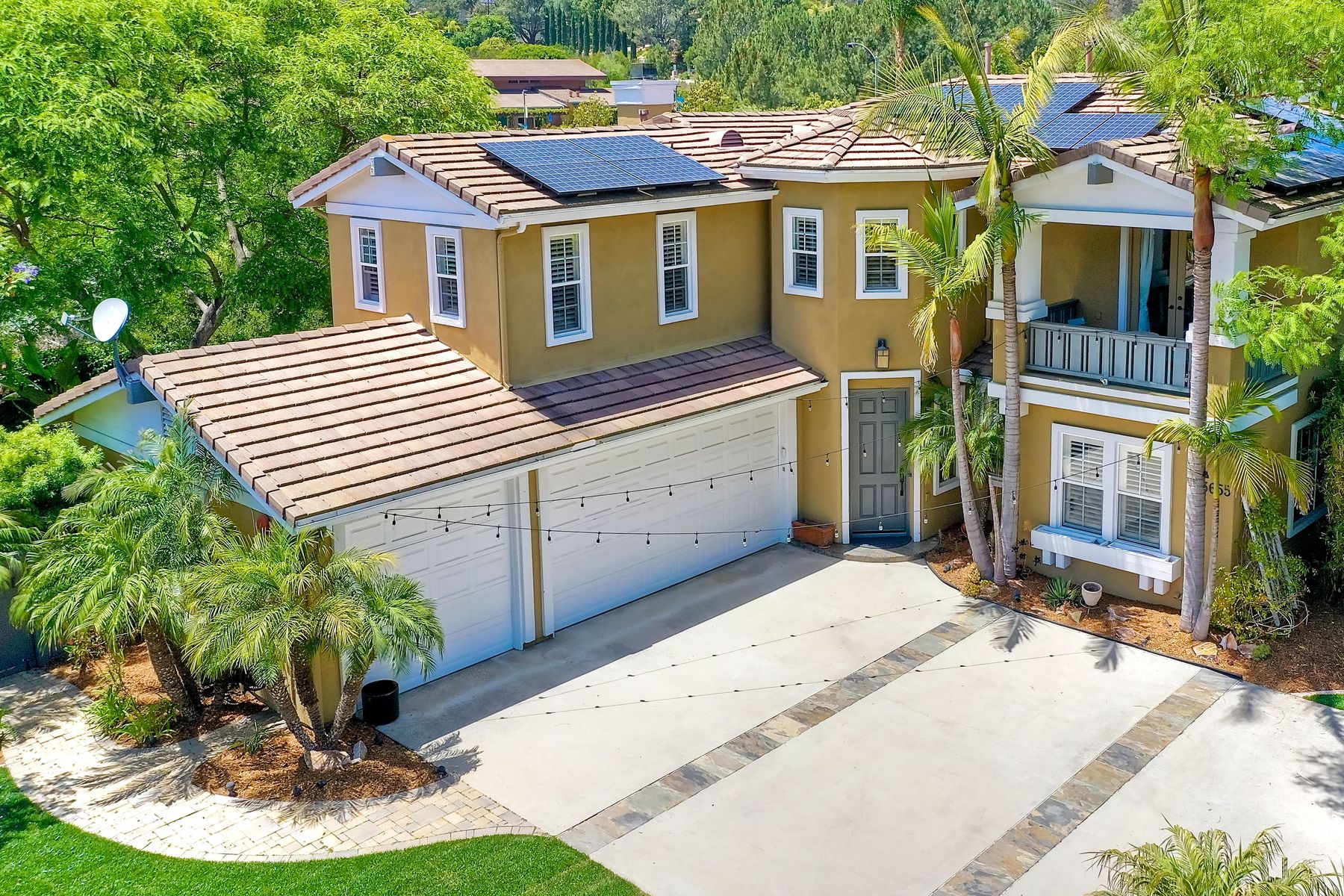 LOOK NO FURTHER- This is the ONE! GORGEOUS home located in the private gated enclave of Sage Canyon. This highly desirable 3286 sq ft home has the perfect floor plan! 5bed/4 full bath on a LARGE beautiful lot and down a private drive, with a 3 car garage. Huge kitchen with island (Viking range, built-in SubZero fridge) and walk in pantry, adjoining to family room with fireplace, perfect for entertaining! 2 beds/1bath located on first floor for plenty of living options (guest room, office, play room- you choose!) One of the bedrooms down is oversized and great for guests or extended family. Hardwood floors throughout, plantation shutters, A/C, OWNED SOLAR, new carpet on stairs and so much more! Amazing TROPICAL OASIS backyard with POOL and SPA, outdoor relaxation area with hammock, separate entertaining gazebo and another separate eating area. Super private and tranquil backyard space. Extra side yard for custom planters or garden. Oversized Primary bedroom has huge bathroom, soaking tub and separate shower, fireplace and 2 walk in closets. 2 other secondary rooms are located upstairs, and 1 has en suite bathroom, and the other has a darling balcony. Laundry room also located upstairs. Community is surrounded by lots of open space that is protected land and natural habitat. Located in award winning Encinitas Union/San Dieguito school district. Close to Forum shopping and more, plenty of restaurants, and 3 miles to the beach! Close to everything! This is a fantastic neighborhood, and this home is on a wonderful street...this one will go fast!
