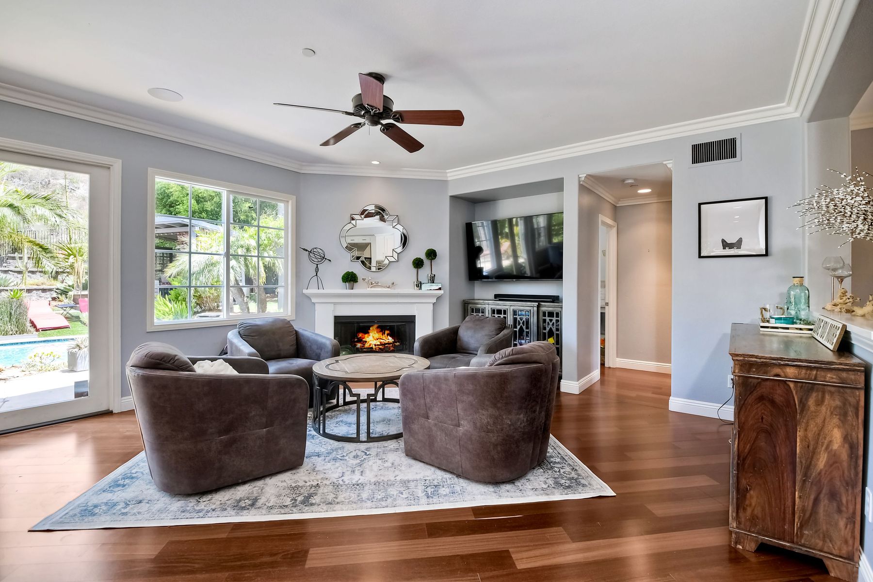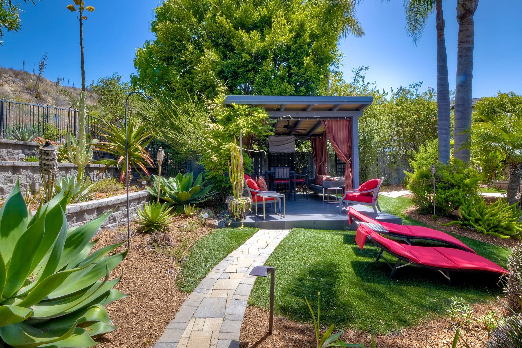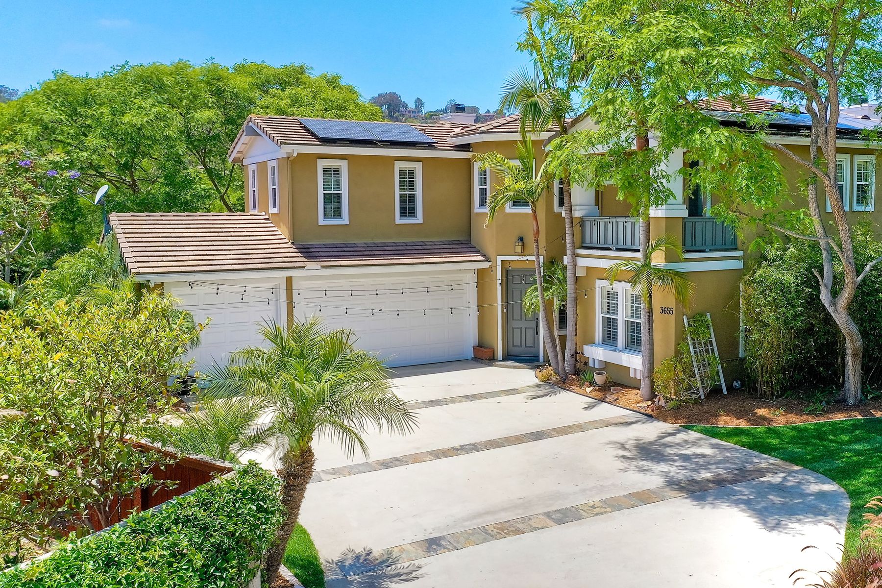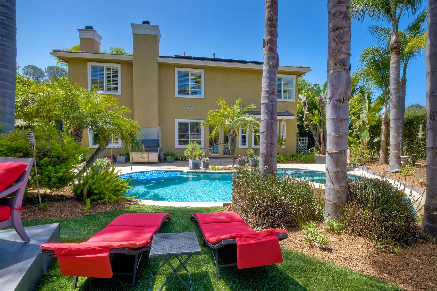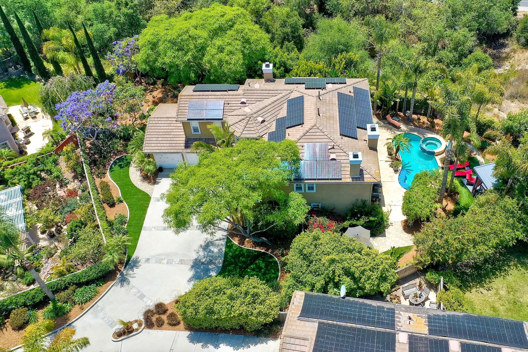 LOOK NO FURTHER- This is the ONE! GORGEOUS home located in the private gated enclave of Sage Canyon. This highly desirable 3286 sq ft home has the perfect floor plan! 5bed/4 full bath on a LARGE beautiful lot and down a private drive, with a 3 car garage. Huge kitchen with island (Viking range, built-in SubZero fridge) and walk in pantry, adjoining to family room with fireplace, perfect for entertaining! 2 beds/1bath located on first floor for plenty of living options (guest room, office, play room- you choose!) One of the bedrooms down is oversized and great for guests or extended family. Hardwood floors throughout, plantation shutters, A/C, OWNED SOLAR, new carpet on stairs and so much more! Amazing TROPICAL OASIS backyard with POOL and SPA, outdoor relaxation area with hammock, separate entertaining gazebo and another separate eating area. Super private and tranquil backyard space. Extra side yard for custom planters or garden. Oversized Primary bedroom has huge bathroom, soaking tub and separate shower, fireplace and 2 walk in closets. 2 other secondary rooms are located upstairs, and 1 has en suite bathroom, and the other has a darling balcony. Laundry room also located upstairs. Community is surrounded by lots of open space that is protected land and natural habitat. Located in award winning Encinitas Union/San Dieguito school district. Close to Forum shopping and more, plenty of restaurants, and 3 miles to the beach! Close to everything! This is a fantastic neighborhood, and this home is on a wonderful street...this one will go fast!