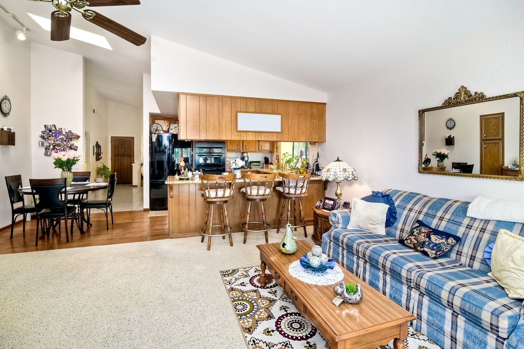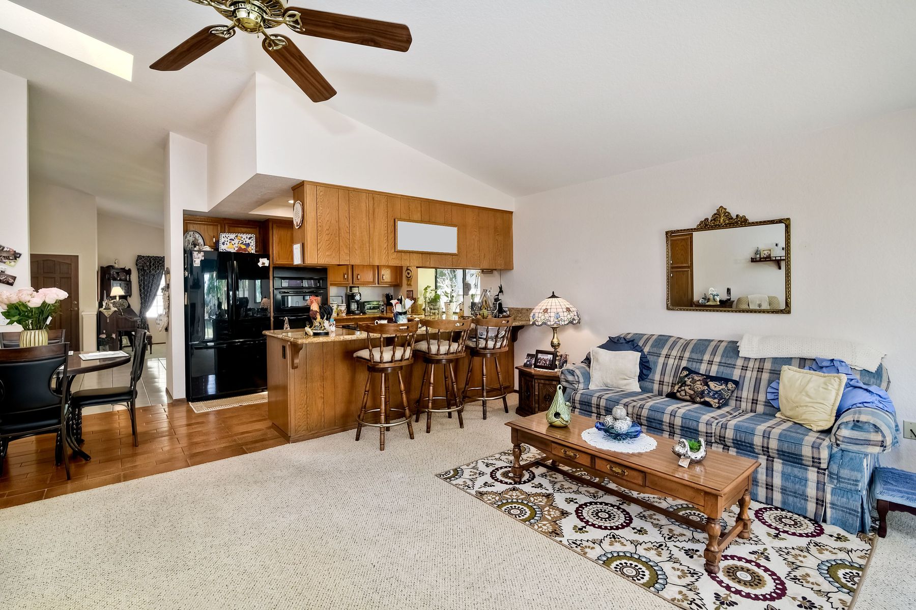Original owner of a sought after well maintained one story home in the popular Cantebria subdivision of Encinitas. Master bedroom and back yard has views stretching from Encinitas to Rancho Santa Fe. Several upgrades from central air and home water softer, to custom tile and stone work in kitchen and bathrooms. Solar lights, lush landscaping and fruit trees in flat usable back yard This model does not become available very often. Last MLS sale on a similar 1 story model was 2013
