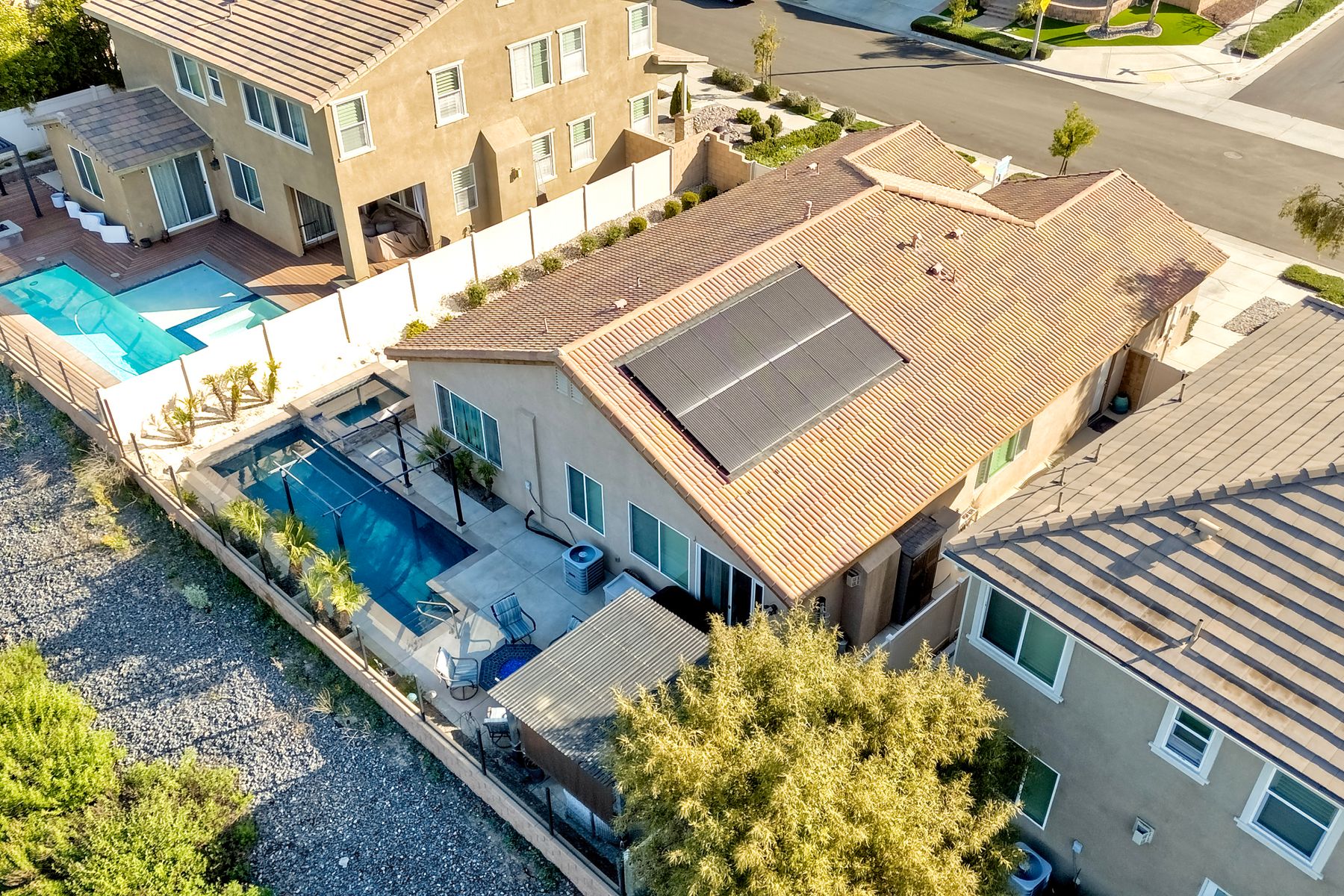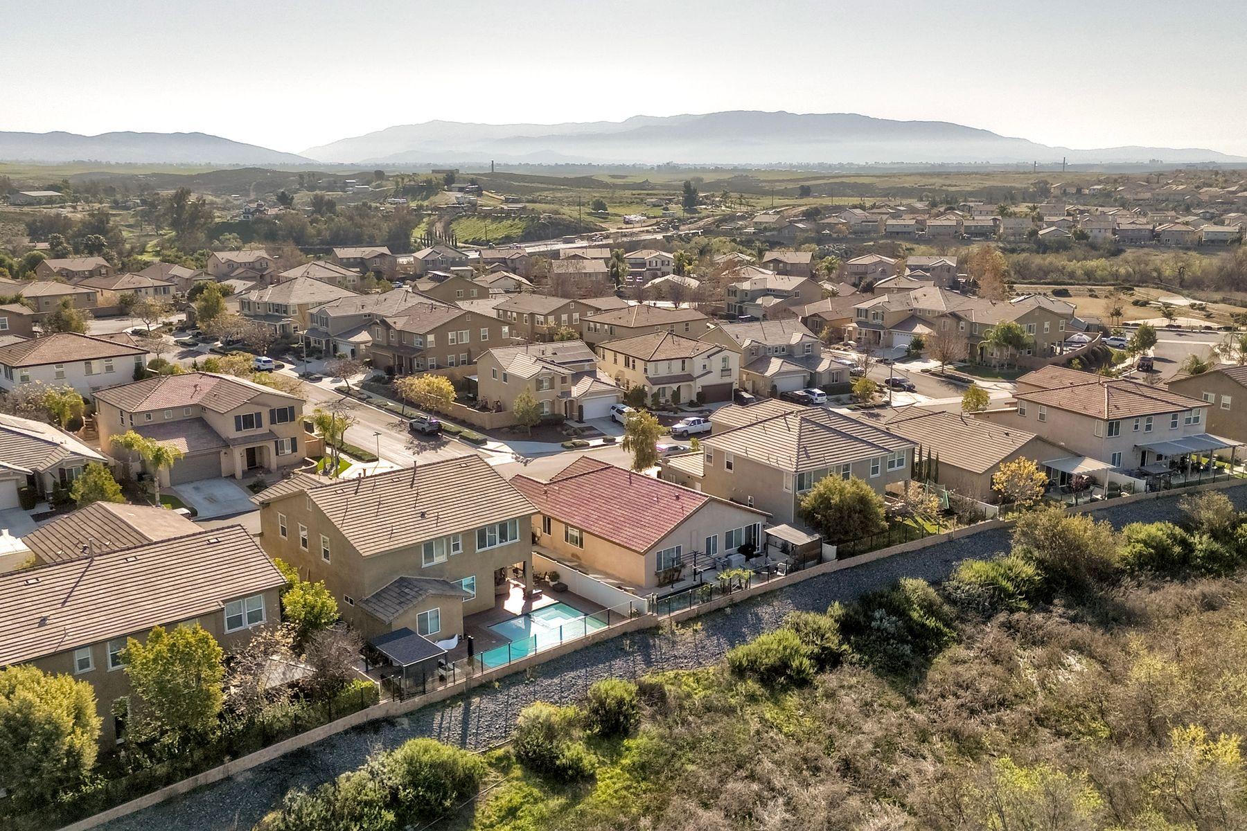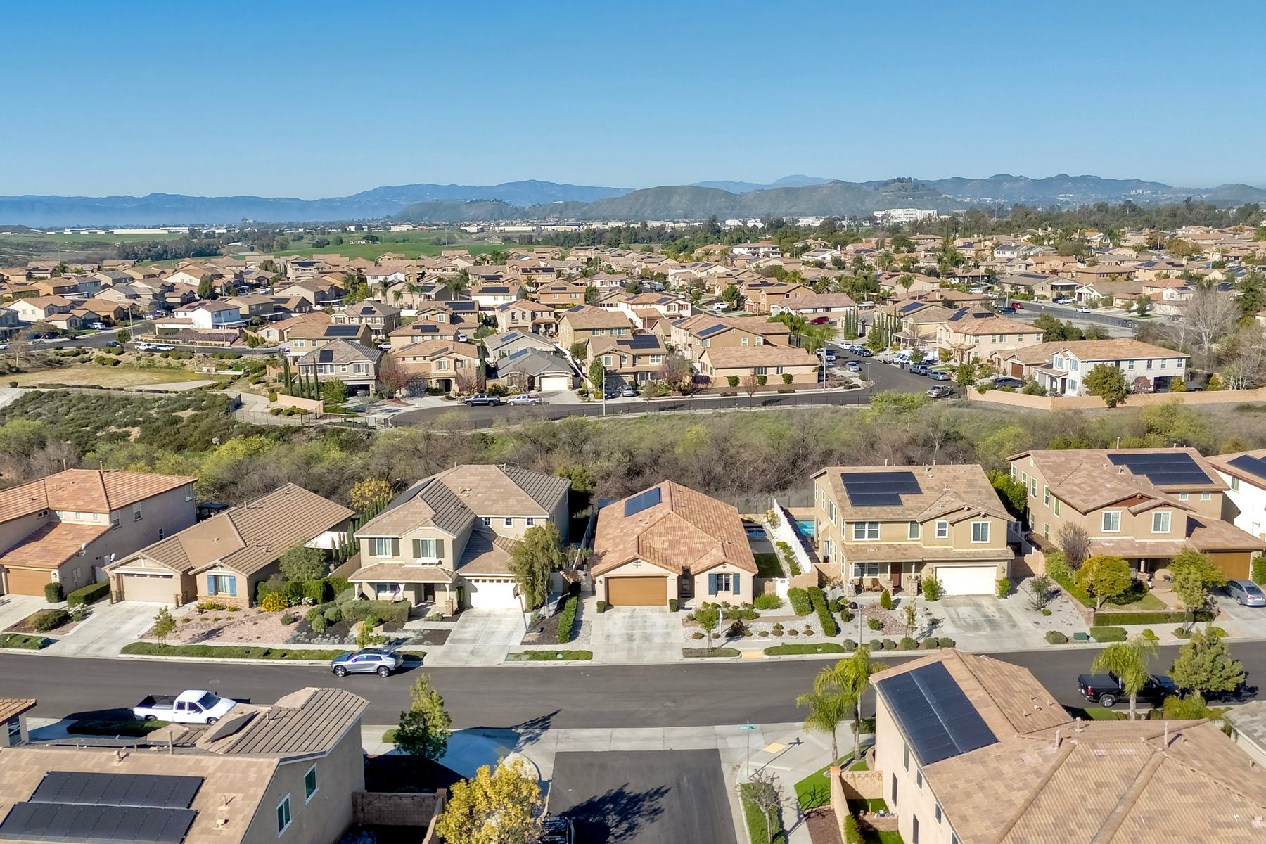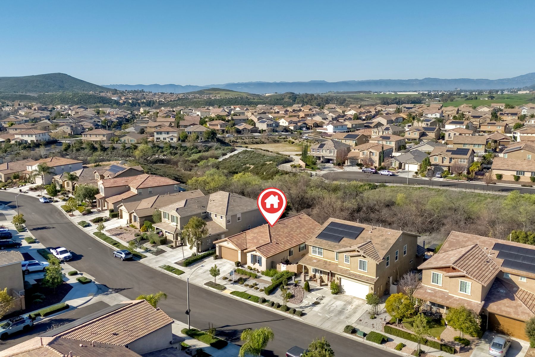 *Price Reduced, Sellers have found their replacement home and are motivated to sell!* Stunning Single-Story Heated POOL/SPA HOME Oasis Backing to a Serene Nature View with NO DIRECT NEIGHBORS behind**Don't miss this rare single-story gem perfectly positioned on a premium lot backing to a peaceful nature view, offering unmatched privacy.*The backyard is your private sanctuary with a sparkling SALTWATER POOL and SPA, which are complemented with a UV light purification system for the ultimate clean swim on app-controlled features. Enjoy evenings around your custom-built natural gas fire pit, relax under the pergola patio, or unwind beneath the canopy cover over the pool, which comes with a shade cover. The large yard offers real grass for your family/guests/pets to enjoy! There is also a convenient outdoor solar-powered rinse-off shower, and additional side gate entries in each side of the home. Located in the highly sought-after Rancho Bella Vista community—known for its ideal location in top-rated TEMECULA SCHOOLS, LOWER TAXES than many new builds, LOW HOA of only $45 a month, and just minutes to the popular Temecula Wine Country—this home delivers the blend of comfort, sophistication, and resort-style living. Step inside and experience exquisite entry to hardwood floors, an open, airy layout enhanced by thoughtful upgrades throughout. The heart of the home features a grand 11+ foot granite kitchen island, perfect for entertaining, along with hardwood flooring in the main walkway areas and open dining room area, porcelain wood-like plank tiles in the kitchen and bathrooms, a large walk-in pantry in the kitchen, and a second pantry area in the hallway, and elegant plantation shutters in the main area. This energy-efficient home comes equipped with OWNED solar panels, EV-ready 240V outlet, a Culligan water softener system, and reverse osmosis drinking water—all providing long-term savings and superior home comfort. This home is perfectly suited for modern living with touches like the front door custom glass insert, a powered blind in the primary bathroom, decorative exterior holiday accent lighting, a Ring camera perimeter system, a cozy gas fireplace, and newer carpet in the bedrooms. This home offers so much, the pictures don't do enough justice; this is a must see it to appreciate all that it offers.