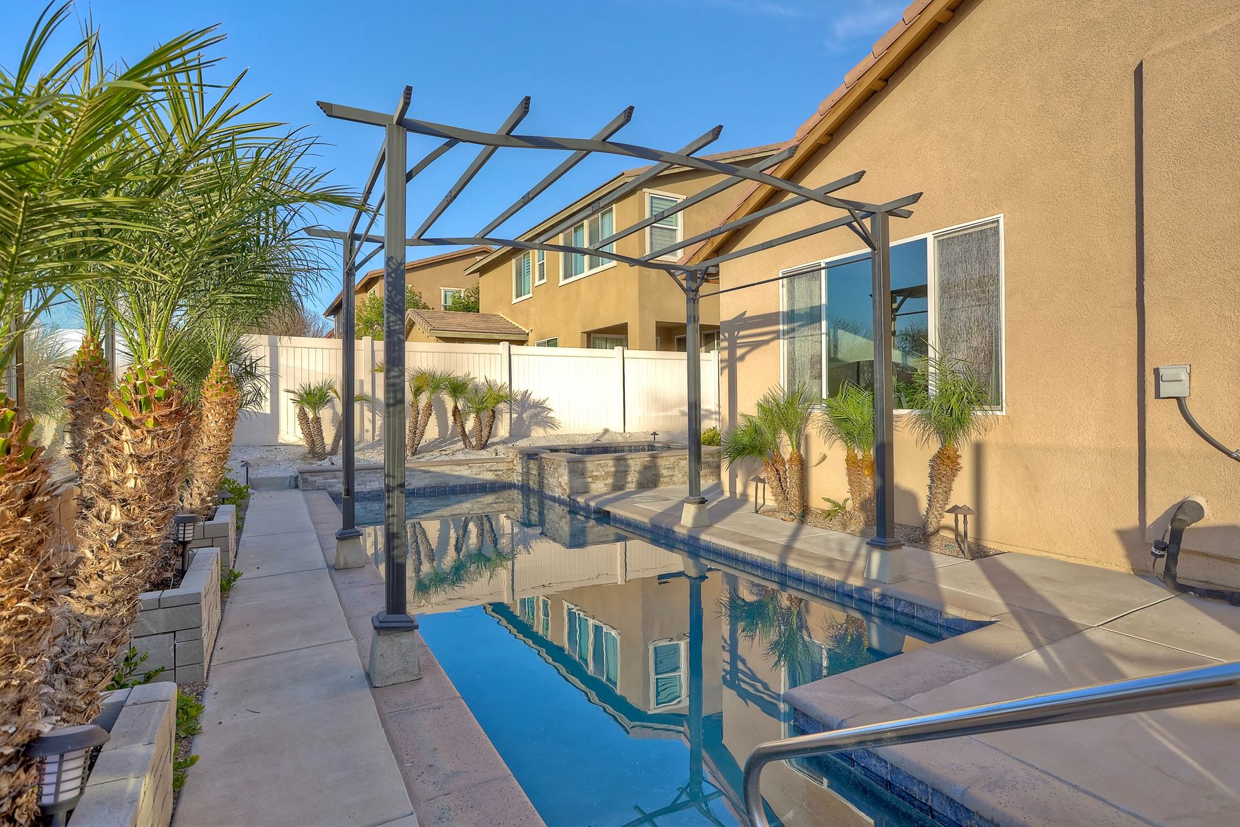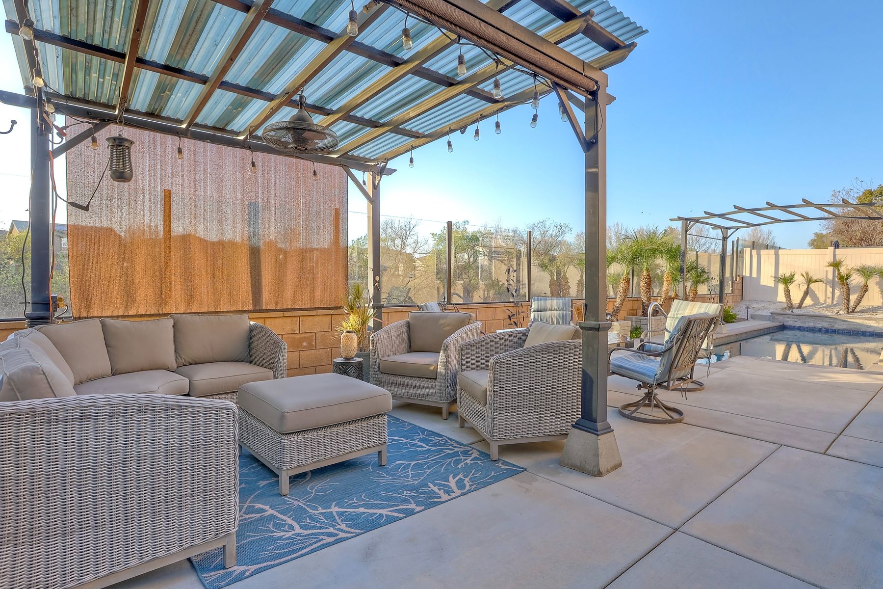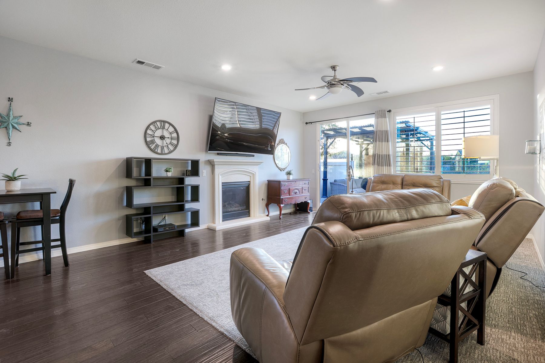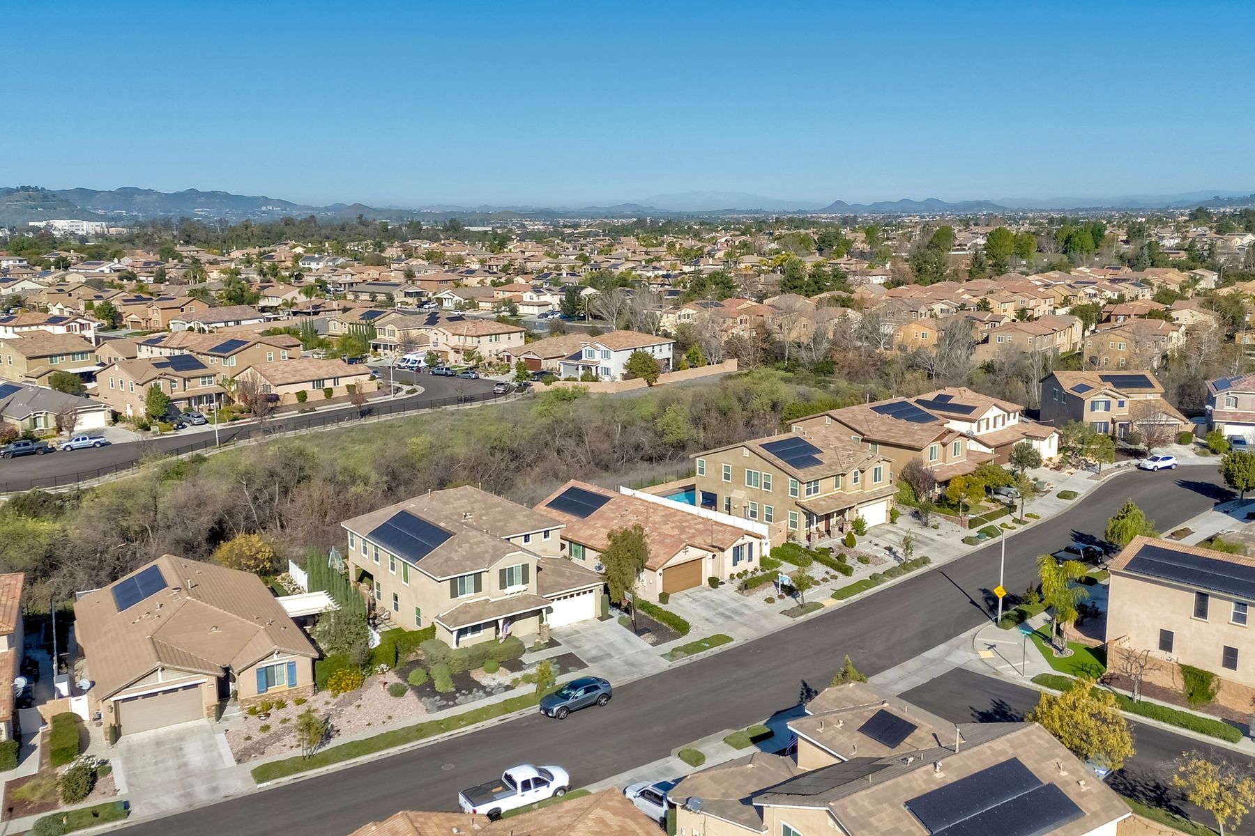 *Price Reduced, Sellers have found their replacement home and are motivated to sell!* Stunning Single-Story Heated POOL/SPA HOME Oasis Backing to a Serene Nature View with NO DIRECT NEIGHBORS behind**Don't miss this rare single-story gem perfectly positioned on a premium lot backing to a peaceful nature view, offering unmatched privacy.*The backyard is your private sanctuary with a sparkling SALTWATER POOL and SPA, which are complemented with a UV light purification system for the ultimate clean swim on app-controlled features. Enjoy evenings around your custom-built natural gas fire pit, relax under the pergola patio, or unwind beneath the canopy cover over the pool, which comes with a shade cover. The large yard offers real grass for your family/guests/pets to enjoy! There is also a convenient outdoor solar-powered rinse-off shower, and additional side gate entries in each side of the home. Located in the highly sought-after Rancho Bella Vista community—known for its ideal location in top-rated TEMECULA SCHOOLS, LOWER TAXES than many new builds, LOW HOA of only $45 a month, and just minutes to the popular Temecula Wine Country—this home delivers the blend of comfort, sophistication, and resort-style living. Step inside and experience exquisite entry to hardwood floors, an open, airy layout enhanced by thoughtful upgrades throughout. The heart of the home features a grand 11+ foot granite kitchen island, perfect for entertaining, along with hardwood flooring in the main walkway areas and open dining room area, porcelain wood-like plank tiles in the kitchen and bathrooms, a large walk-in pantry in the kitchen, and a second pantry area in the hallway, and elegant plantation shutters in the main area. This energy-efficient home comes equipped with OWNED solar panels, EV-ready 240V outlet, a Culligan water softener system, and reverse osmosis drinking water—all providing long-term savings and superior home comfort. This home is perfectly suited for modern living with touches like the front door custom glass insert, a powered blind in the primary bathroom, decorative exterior holiday accent lighting, a Ring camera perimeter system, a cozy gas fireplace, and newer carpet in the bedrooms. This home offers so much, the pictures don't do enough justice; this is a must see it to appreciate all that it offers.
