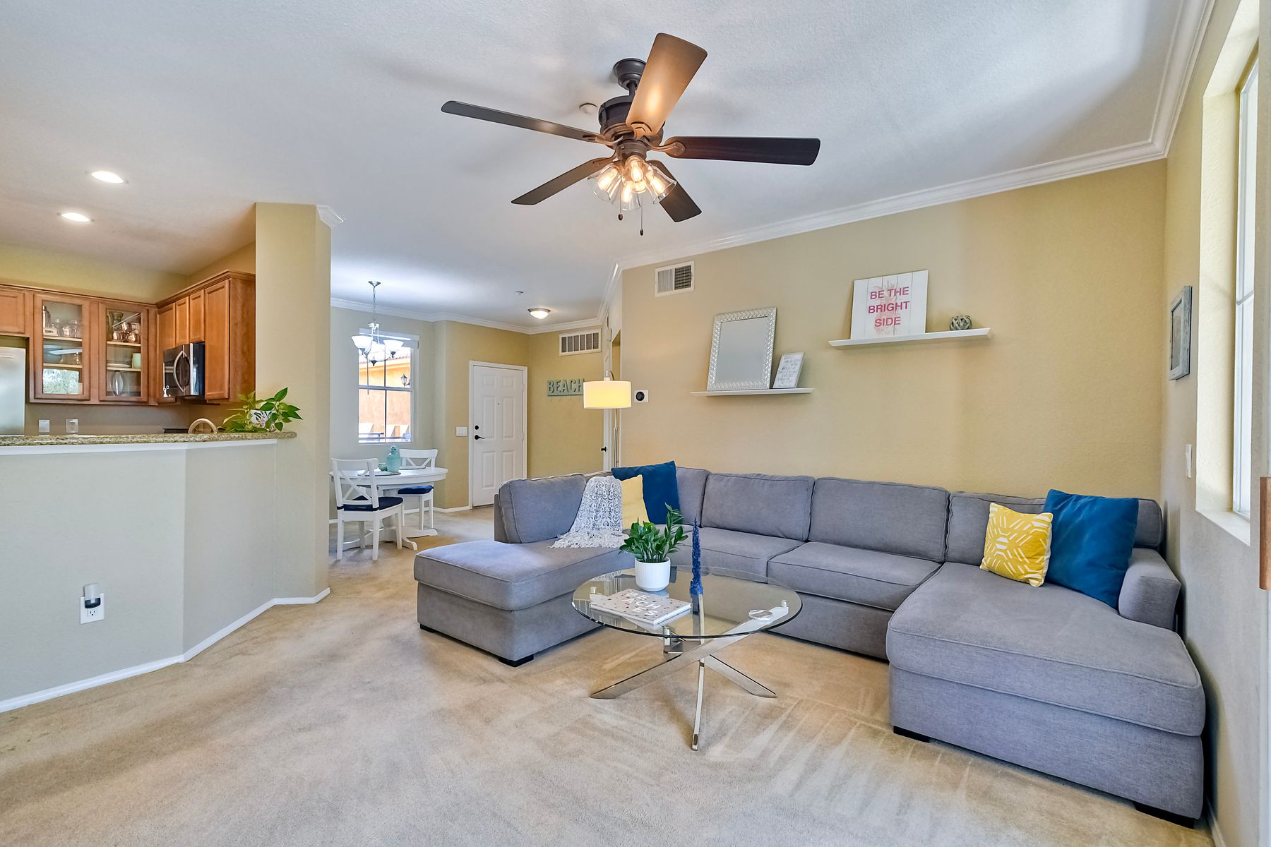 Experience the ultimate in Carmel Valley living with this charming top-floor condo! Boasting a highly sought-after location, this delightful 2BD, 2BA residence features a stylish granite countertop & stainless steel appliances. Both spacious master suites offer exceptional comfort, with one showcasing a brand new soaking tub, fresh paint in the bathroom, & dual closets, while the second master suite includes a generous walk-in closet & an additional storage closet in the bathroom. Great recreation room & exercise room, both remodeled! Enjoy abundant natural light with south-facing views & unwind on the beautiful balcony, complete with a storage closet for added convenience. This condo is equipped with a brand new heating & A/C unit, & the laundry closet comes with a washer & dryer included for your convenience & has a 1 car garage. Just a 7-minute walk away, the Del Mar Highlands Town Center awaits with live music, fantastic dining options, & the Cinepolis movie theater. You’ll also be close to One Paseo for upscale shopping & dining, the Del Mar Racetrack, & the Carmel Valley Recreation Center, which offers basketball courts, a pool, & tennis & pickleball courts. Don’t miss out on this exceptional opportunity to make this condo your new home!