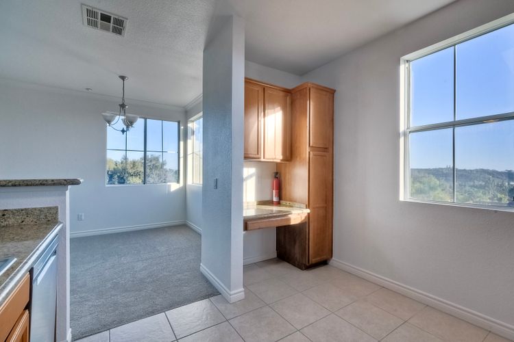 This Condo is located in the prestigious area of Carmel Point, 9 minutes to Torrey Pines State Natural Reserve. Close to Del Mar, Solana Beach and La Jolla Shores. This end unit has ample natural lighting and being on the third floor offers beautiful views. Home has been freshly painted, new flooring and new stainless steel kitchen appliances. Kitchen is open to the eating area and living room. Primary bedroom has a large private bathroom suite with a double vanity, soaking tub and separate shower, large walk-in closet with built-in organizers. The second bedroom is connected to the second bath which is also accessible from the main hall. Laundry room has added storage cabinets and is nicely arranged in the unit. Large windows in the living room gives additional natural lighting and it has a lovely fireplace for those colder nights or when you want the ambiance while entertaining. The balcony is intimate and has a storage closet for outside equipment or toys. You have your own enclosed garage, fully finished with automatic garage door opener and additional single car assigned parking. The common areas provided by the association is a clubhouse, courtyard, pool & fitness center. This Condo is located in one of the best locations for the active person who enjoys being outdoors, at the beach and nature trails. Best dinning and shopping. Easy commute just off of the 15 and 5 freeways.