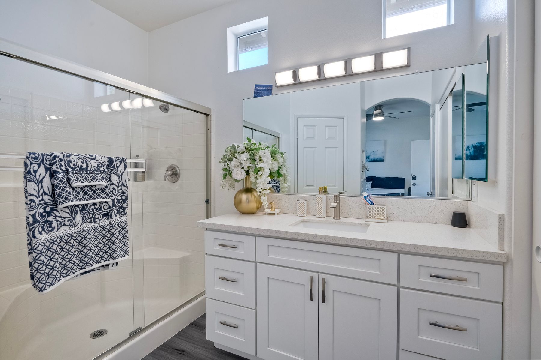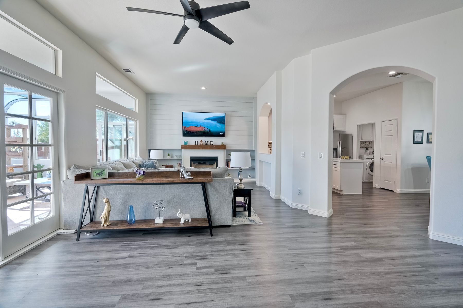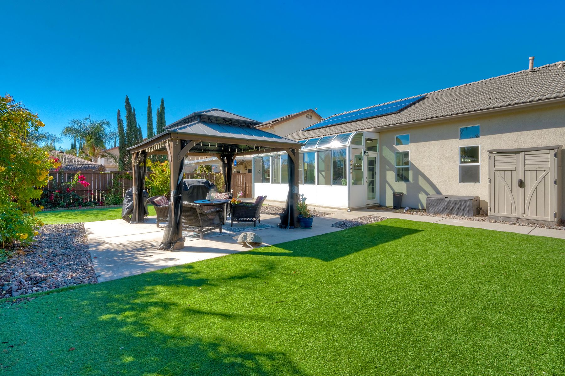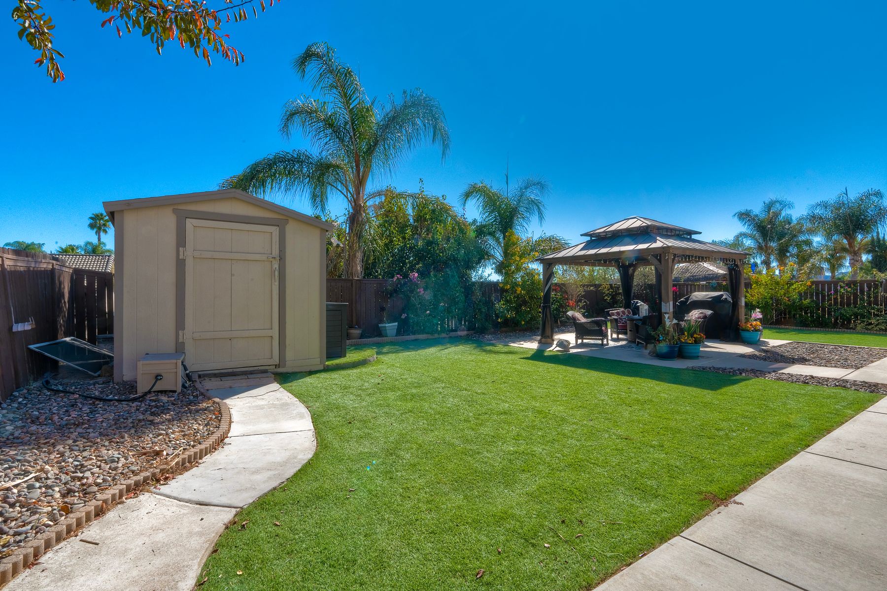 Absolutely Move-In Ready with Income Potential & Paid for Solar! This stunningly upgraded 3-bedroom, 3-bathroom single-story on a friendly cul-de-sac not only boasts luxury but also offers financial benefits. The open floor plan welcomes you the moment you step inside. The kitchen connects effortlessly to the living area and includes a handy pass-through and an island with bar seating, making it easy to stay connected with guests. The kitchen itself features new stainless-steel appliances, ample counter space, cabinet storage, and a pantry, delivering both style and convenience. The dining room could easily be converted to a 4th bedroom if needed. One of the most unique aspects of this home is the detached Casita, which can serve as a private guest suite, home office, or rental opportunity. With California's ADU-friendly policies, this Casita could easily become a money-making accessory dwelling unit (ADU). Perfect for short-term or long-term rentals, this space could provide significant income for savvy homeowners. The spacious master retreat includes an upgraded ensuite with dual closets, a double vanity, and a separate shower and tub for a spa-like experience. Each bedroom features generous closet space and ceiling fans for added comfort. Outside, the lush backyard provides plenty of space to unwind and includes a convenient storage shed. Located close to freeways, shopping, entertainment, and The Golf Club at Rancho California, this home blends luxury, comfort, and financial opportunity all under one roof.
