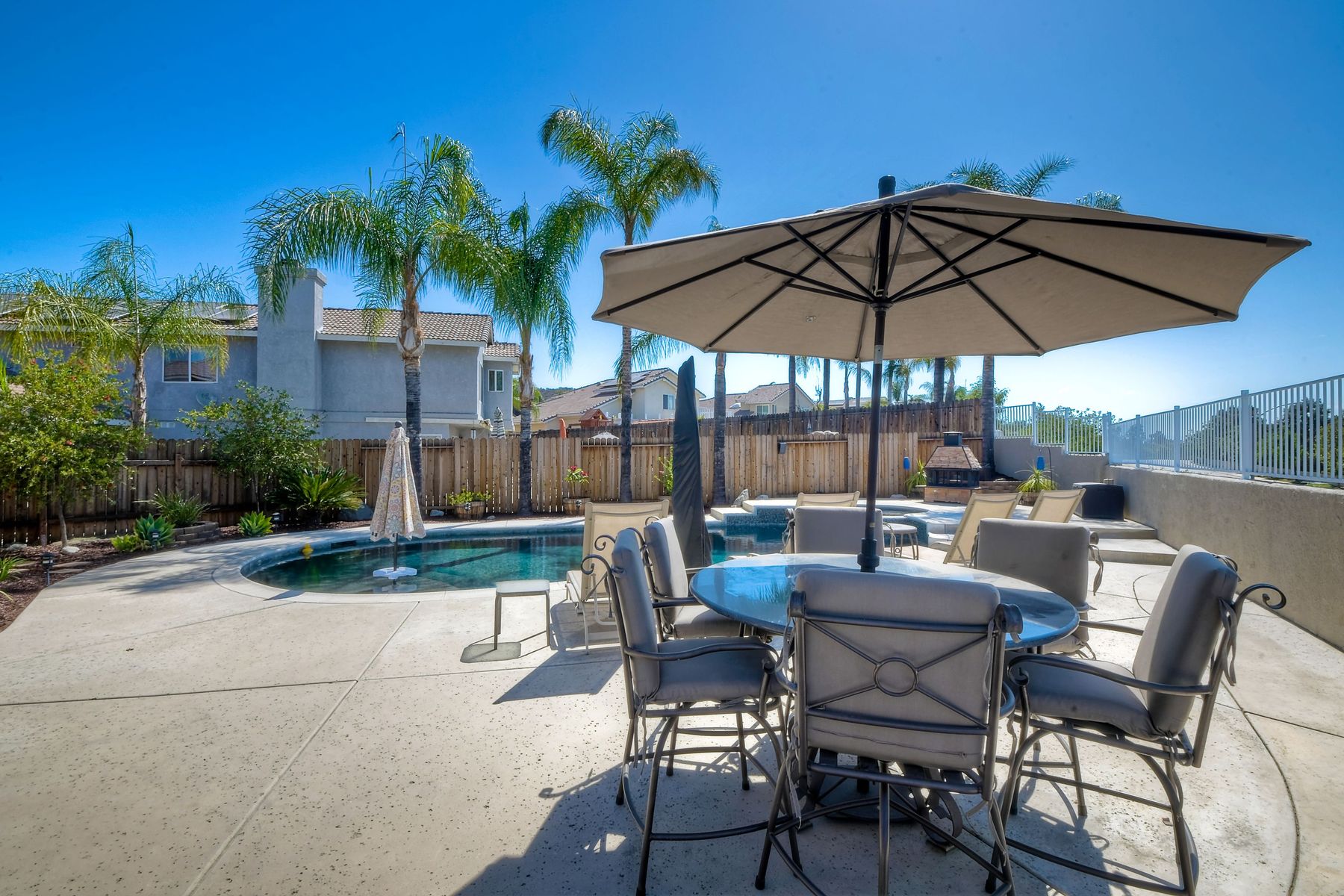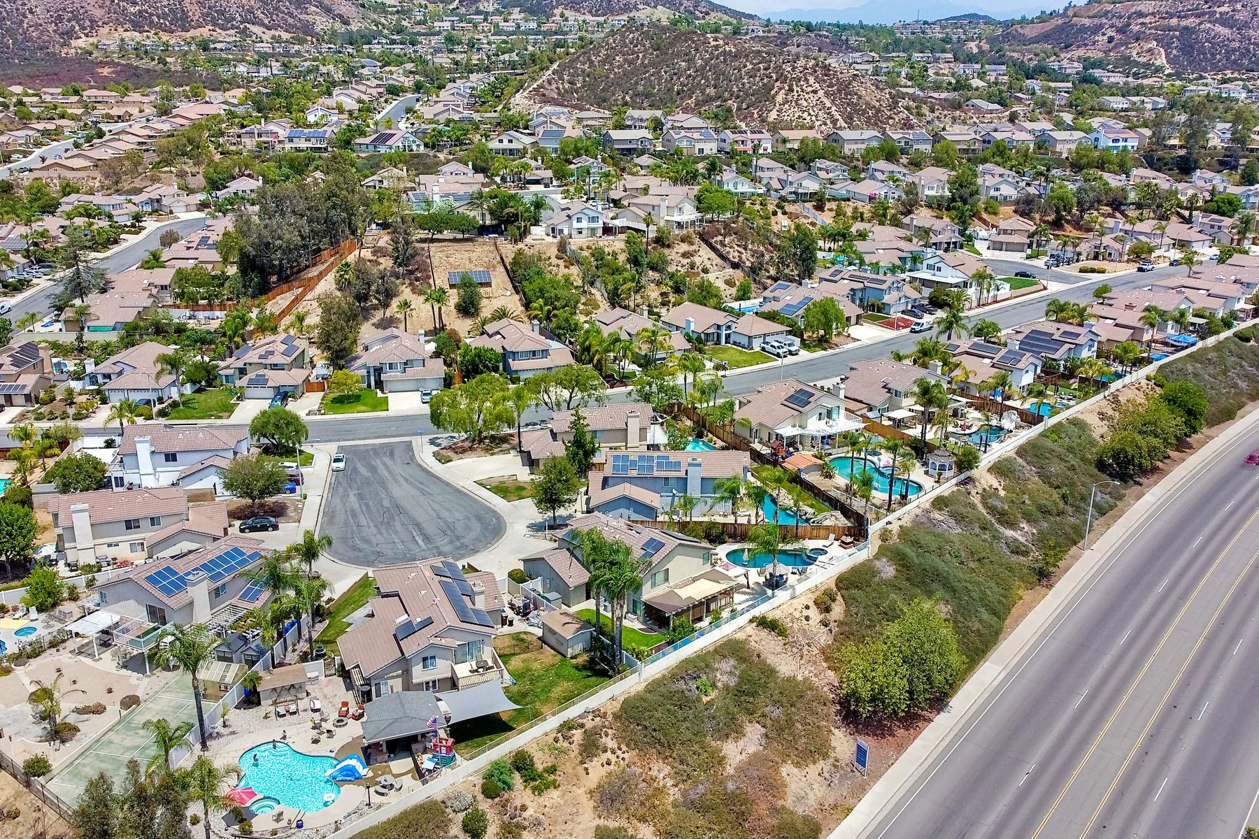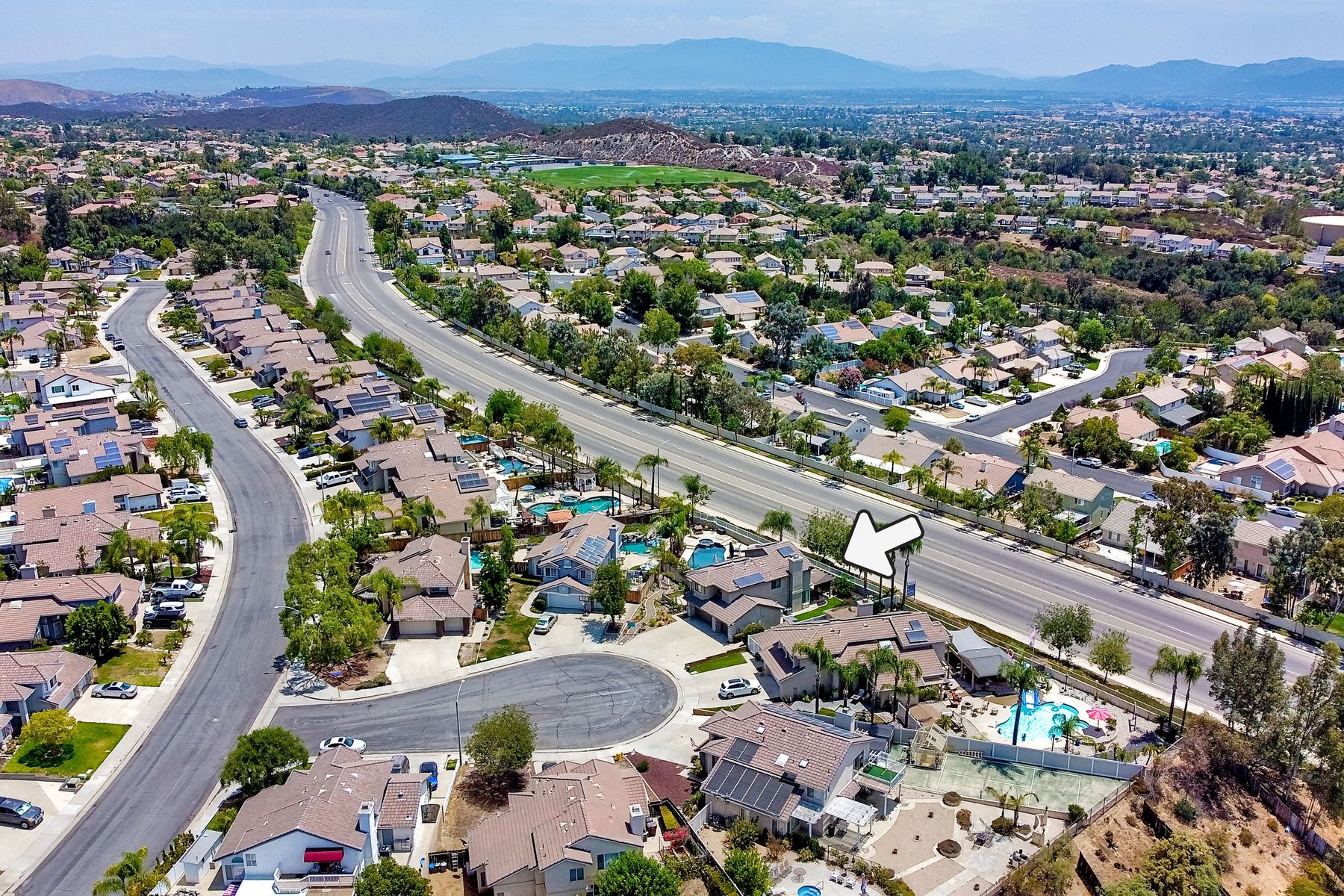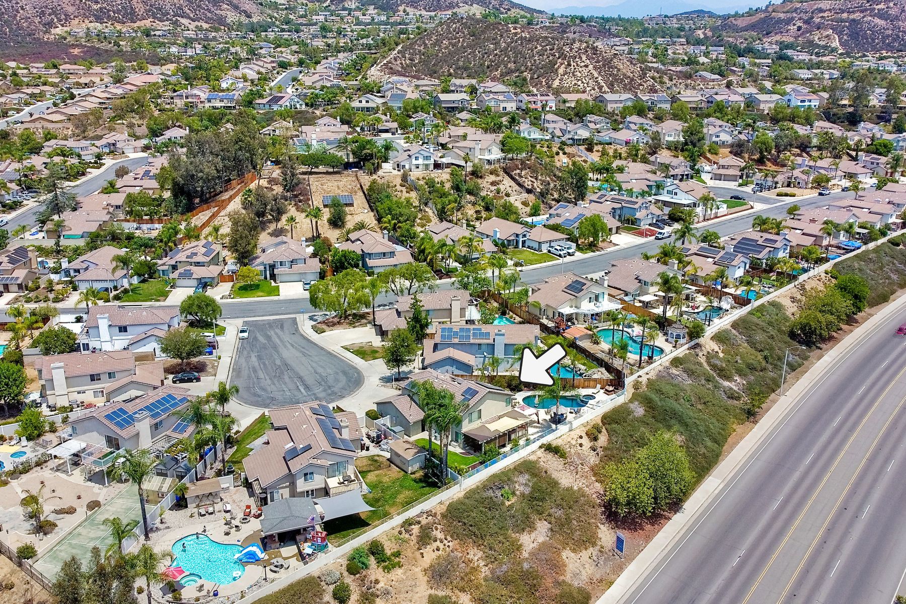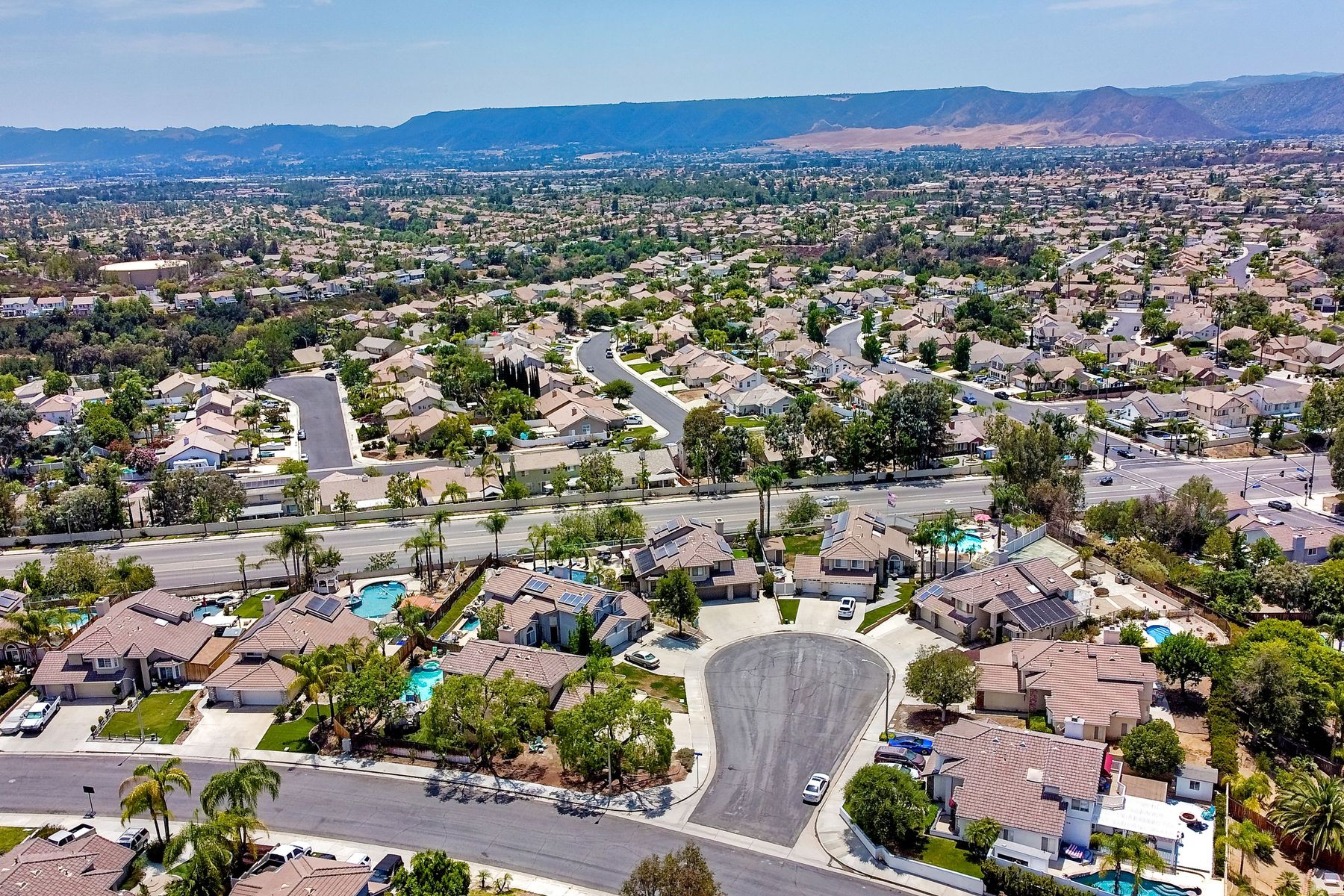 STOP THE CAR!!! You just found your Dream Pool Home! TURNKEY, ENERGY EFFICIENT, Summertime is here for your family! This delightful home boasts 2162 sq. ft, 4 bedrooms, 3 bathrooms with extensive upgrades throughout the home. This home is situated on over 16,000 sq. ft. lot. Entertain your family and friends in your own private oasis! The Pebble Tech Pool and Spa that offer a tanning ledge, pool slide and in pool umbrella insert. The yard is so spacious there is plenty of room around the pool for several chaise lounges to hang out and relax on the green grass area or under the covered patio area. The outdoor patio kitchen offers bar top seating, a family size BBQ, microwave, and mesmerizing mountain views with cool breezes and no neighbors behind the home for ultimate privacy. The interior of the home is equally impressive as you are greeted by the high ceilings, open area, lavish flooring, and natural sunlight provided by the dual pane skylight. Impressive laminate flooring with custom baseboards throughout the lower level. The kitchen has been remodeled with Whirlpool appliances, Shaker cabinets with stylish hardware, a quartz countertop with coordinating tile backsplash, and contemporary lighting. There is plenty of storage space in the large pantry. The kitchen opens into the family room with a stacking stone tile decor fireplace and sliding glass door leading out to the resort-style backyard. Upstairs you will find 4 bedrooms and a hallway bathroom with newer fixtures, mirrors, and vanity and a tub/shower combo. The stunning master bedroom opens up to a beautiful custom wood accent wall and breathtaking views of the hilltops and peaceful backyard. Master bathroom offers a deep soaking tub and a large tile walk-in shower. The remaining 3 secondary bedrooms are carpeted with ceiling fans and substantial closet space. Mature lawn and beautifully landscaped with palm trees and vegetable garden and tranquil water fountain. This home includes Solar Panels, upgraded Millgard windows and sliding doors, 22' Blown in attic insulation for superior insulation, dual A/C units, a whole house fan, and Energy Star Appliances, 3 car garage with plenty of storage cabinets and a garage door opener. Situated in the phenomenal location of Central Murrieta, it is conveniently between the 15 & 215 freeways and minutes to schools, restaurants, movie theaters, shopping centers & parks. WELCOME HOME and enjoy panoramic sunsets every day!