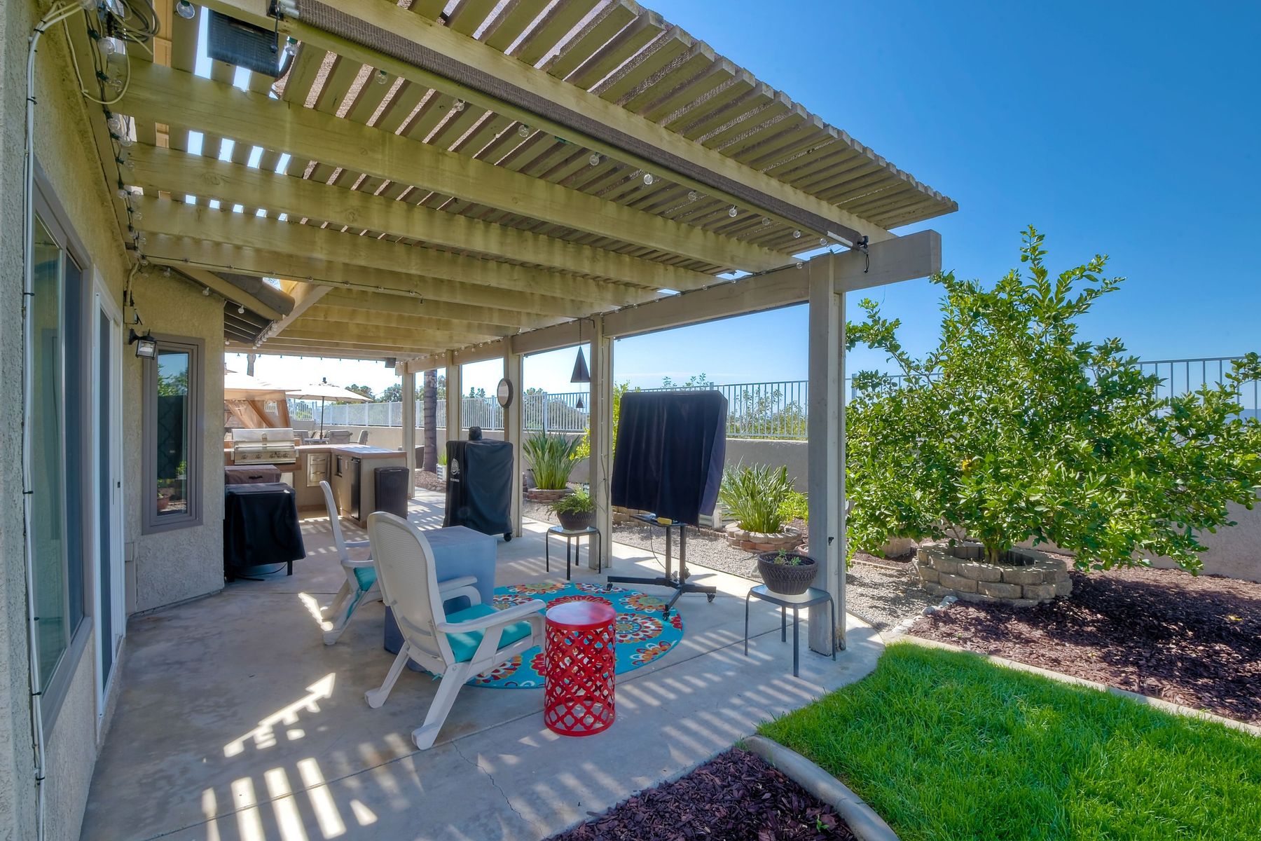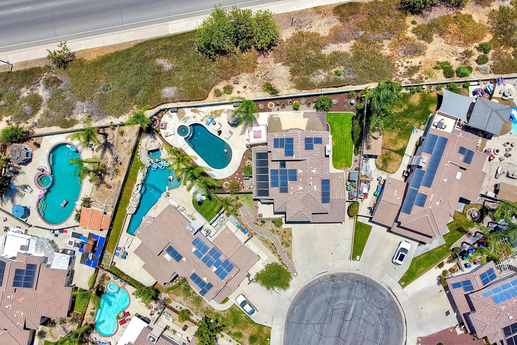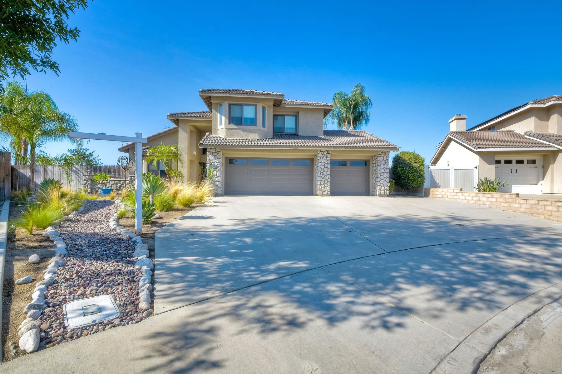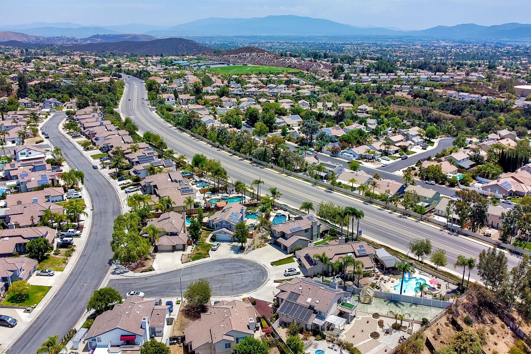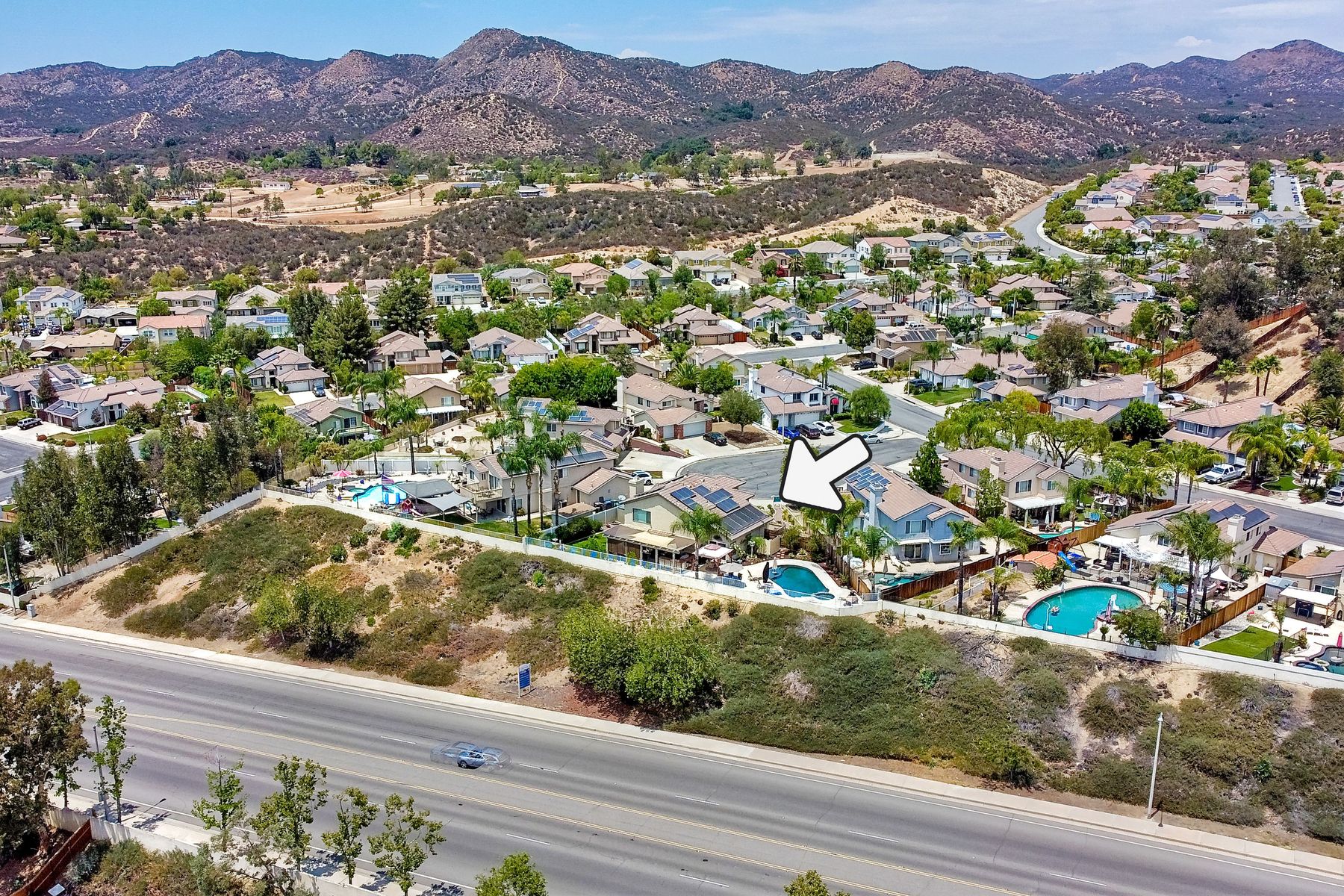 STOP THE CAR!!! You just found your Dream Pool Home! TURNKEY, ENERGY EFFICIENT, Summertime is here for your family! This delightful home boasts 2162 sq. ft, 4 bedrooms, 3 bathrooms with extensive upgrades throughout the home. This home is situated on over 16,000 sq. ft. lot. Entertain your family and friends in your own private oasis! The Pebble Tech Pool and Spa that offer a tanning ledge, pool slide and in pool umbrella insert. The yard is so spacious there is plenty of room around the pool for several chaise lounges to hang out and relax on the green grass area or under the covered patio area. The outdoor patio kitchen offers bar top seating, a family size BBQ, microwave, and mesmerizing mountain views with cool breezes and no neighbors behind the home for ultimate privacy. The interior of the home is equally impressive as you are greeted by the high ceilings, open area, lavish flooring, and natural sunlight provided by the dual pane skylight. Impressive laminate flooring with custom baseboards throughout the lower level. The kitchen has been remodeled with Whirlpool appliances, Shaker cabinets with stylish hardware, a quartz countertop with coordinating tile backsplash, and contemporary lighting. There is plenty of storage space in the large pantry. The kitchen opens into the family room with a stacking stone tile decor fireplace and sliding glass door leading out to the resort-style backyard. Upstairs you will find 4 bedrooms and a hallway bathroom with newer fixtures, mirrors, and vanity and a tub/shower combo. The stunning master bedroom opens up to a beautiful custom wood accent wall and breathtaking views of the hilltops and peaceful backyard. Master bathroom offers a deep soaking tub and a large tile walk-in shower. The remaining 3 secondary bedrooms are carpeted with ceiling fans and substantial closet space. Mature lawn and beautifully landscaped with palm trees and vegetable garden and tranquil water fountain. This home includes Solar Panels, upgraded Millgard windows and sliding doors, 22' Blown in attic insulation for superior insulation, dual A/C units, a whole house fan, and Energy Star Appliances, 3 car garage with plenty of storage cabinets and a garage door opener. Situated in the phenomenal location of Central Murrieta, it is conveniently between the 15 & 215 freeways and minutes to schools, restaurants, movie theaters, shopping centers & parks. WELCOME HOME and enjoy panoramic sunsets every day!