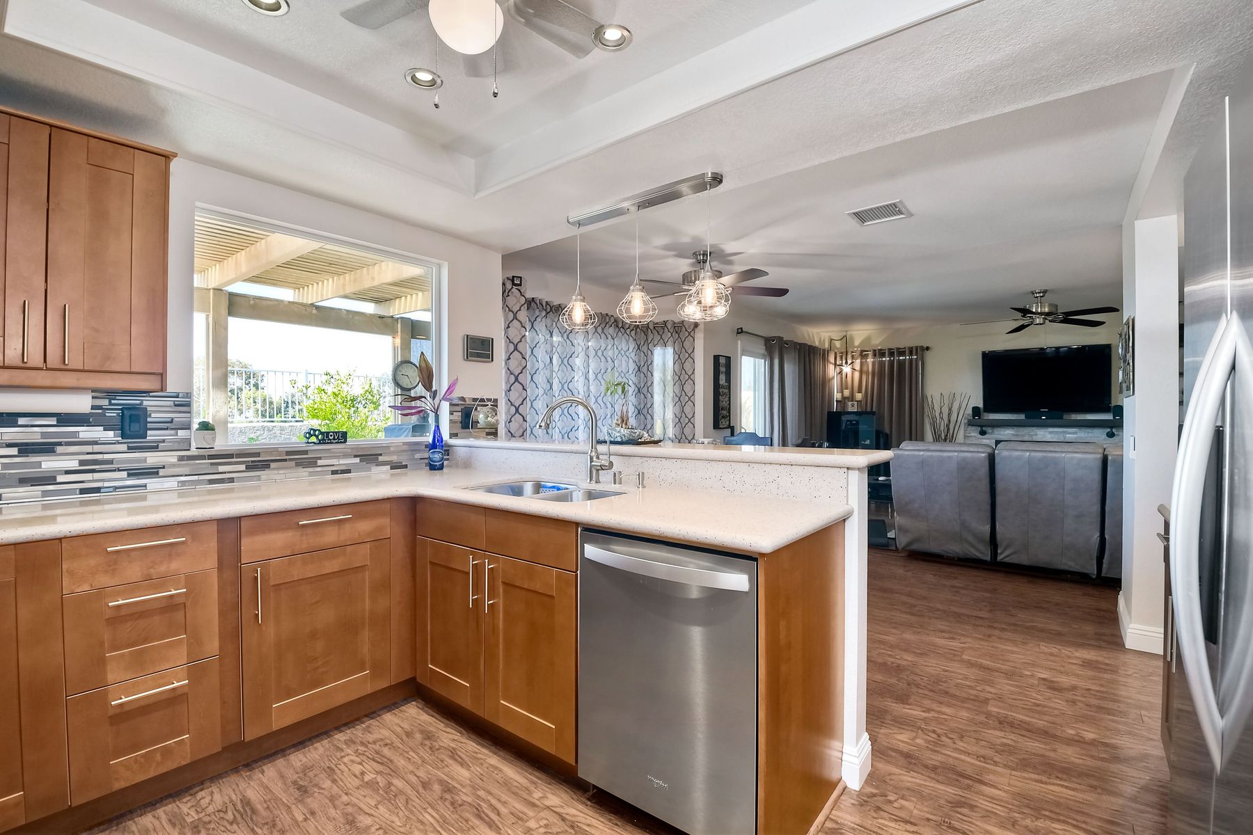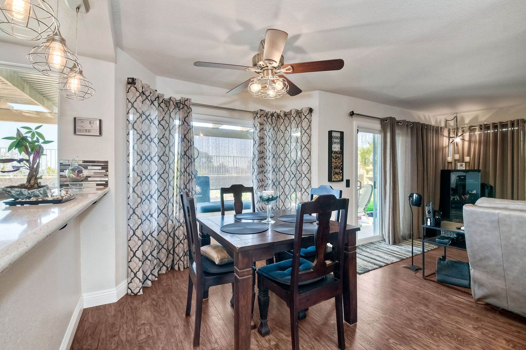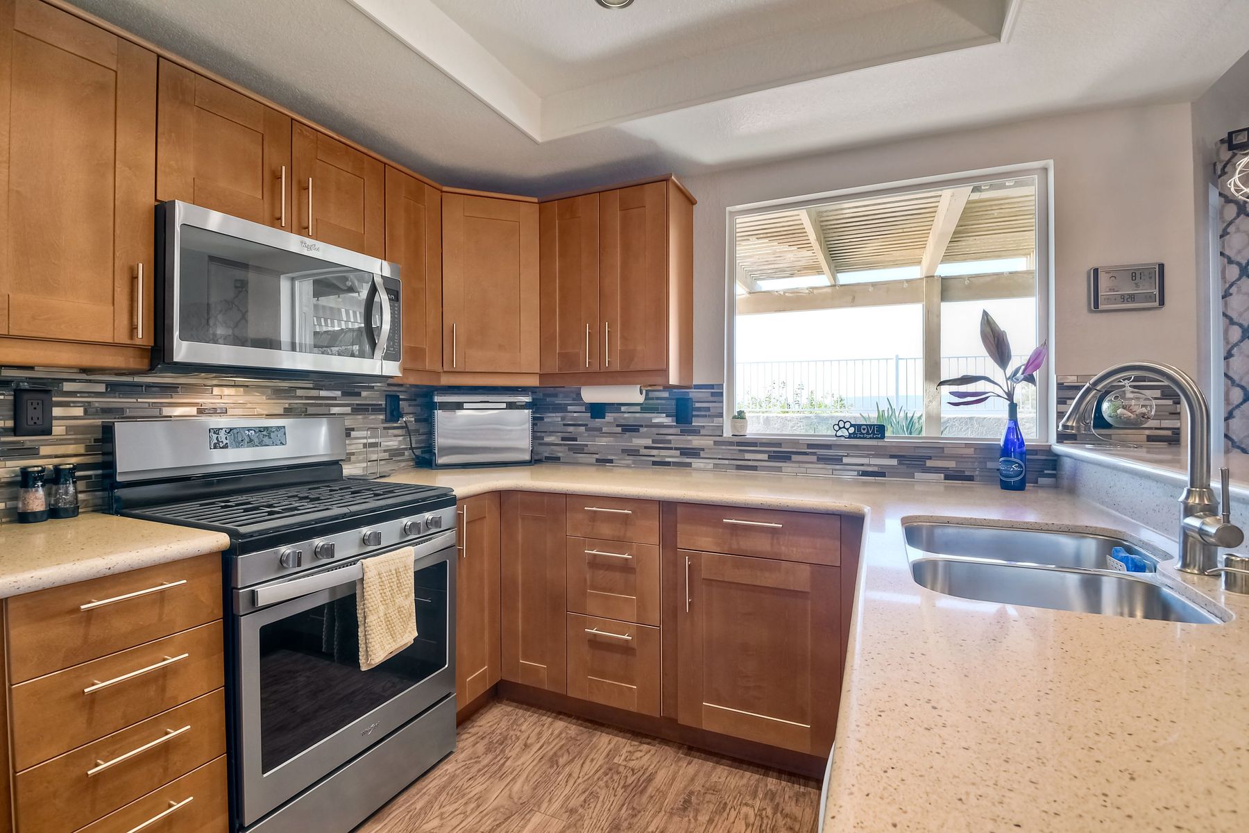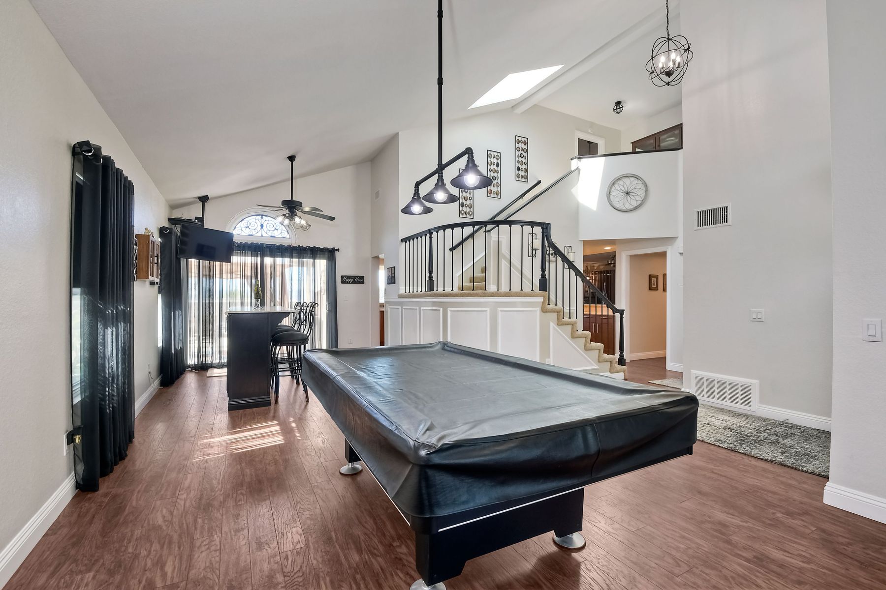 STOP THE CAR!!! You just found your Dream Pool Home! TURNKEY, ENERGY EFFICIENT, Summertime is here for your family! This delightful home boasts 2162 sq. ft, 4 bedrooms, 3 bathrooms with extensive upgrades throughout the home. This home is situated on over 16,000 sq. ft. lot. Entertain your family and friends in your own private oasis! The Pebble Tech Pool and Spa that offer a tanning ledge, pool slide and in pool umbrella insert. The yard is so spacious there is plenty of room around the pool for several chaise lounges to hang out and relax on the green grass area or under the covered patio area. The outdoor patio kitchen offers bar top seating, a family size BBQ, microwave, and mesmerizing mountain views with cool breezes and no neighbors behind the home for ultimate privacy. The interior of the home is equally impressive as you are greeted by the high ceilings, open area, lavish flooring, and natural sunlight provided by the dual pane skylight. Impressive laminate flooring with custom baseboards throughout the lower level. The kitchen has been remodeled with Whirlpool appliances, Shaker cabinets with stylish hardware, a quartz countertop with coordinating tile backsplash, and contemporary lighting. There is plenty of storage space in the large pantry. The kitchen opens into the family room with a stacking stone tile decor fireplace and sliding glass door leading out to the resort-style backyard. Upstairs you will find 4 bedrooms and a hallway bathroom with newer fixtures, mirrors, and vanity and a tub/shower combo. The stunning master bedroom opens up to a beautiful custom wood accent wall and breathtaking views of the hilltops and peaceful backyard. Master bathroom offers a deep soaking tub and a large tile walk-in shower. The remaining 3 secondary bedrooms are carpeted with ceiling fans and substantial closet space. Mature lawn and beautifully landscaped with palm trees and vegetable garden and tranquil water fountain. This home includes Solar Panels, upgraded Millgard windows and sliding doors, 22' Blown in attic insulation for superior insulation, dual A/C units, a whole house fan, and Energy Star Appliances, 3 car garage with plenty of storage cabinets and a garage door opener. Situated in the phenomenal location of Central Murrieta, it is conveniently between the 15 & 215 freeways and minutes to schools, restaurants, movie theaters, shopping centers & parks. WELCOME HOME and enjoy panoramic sunsets every day!