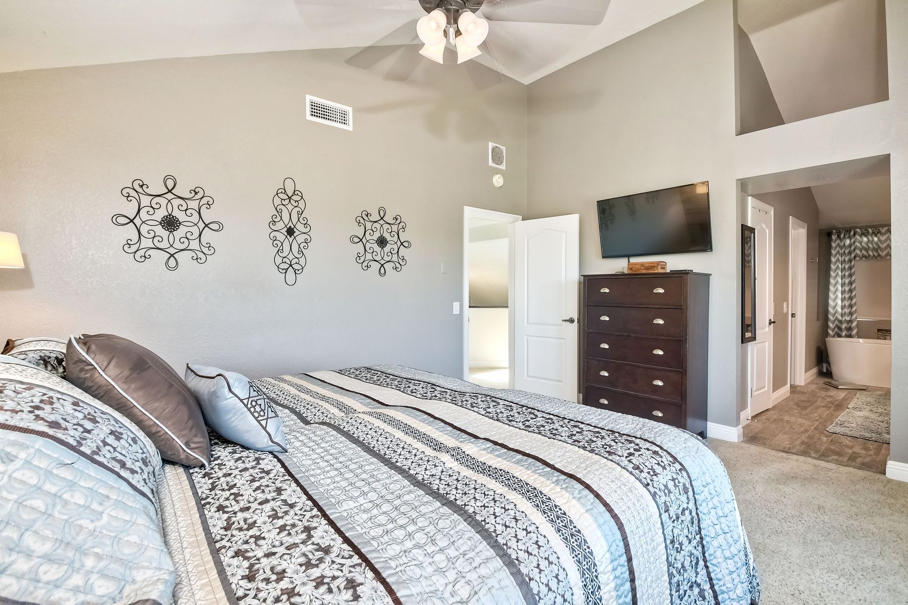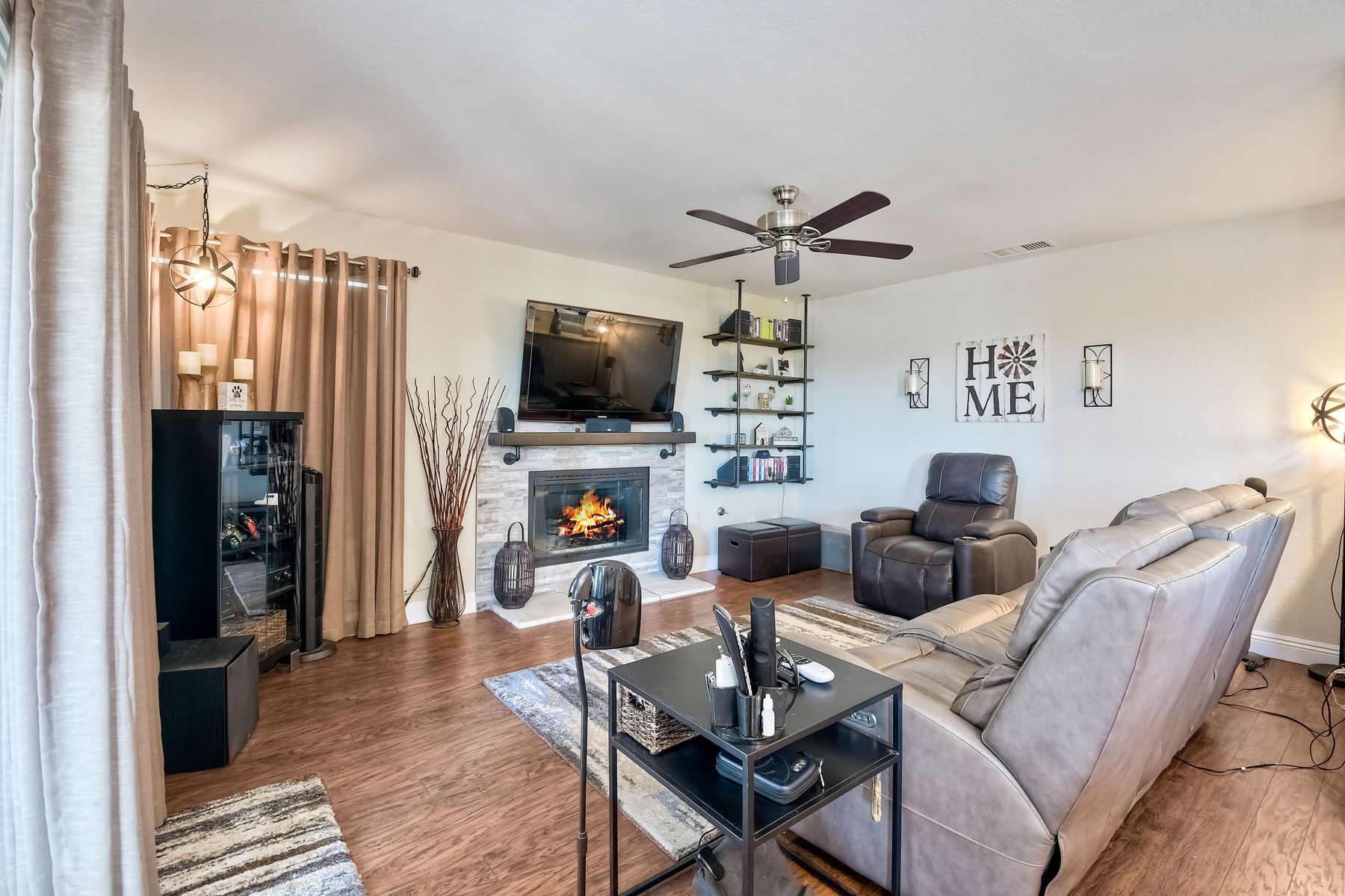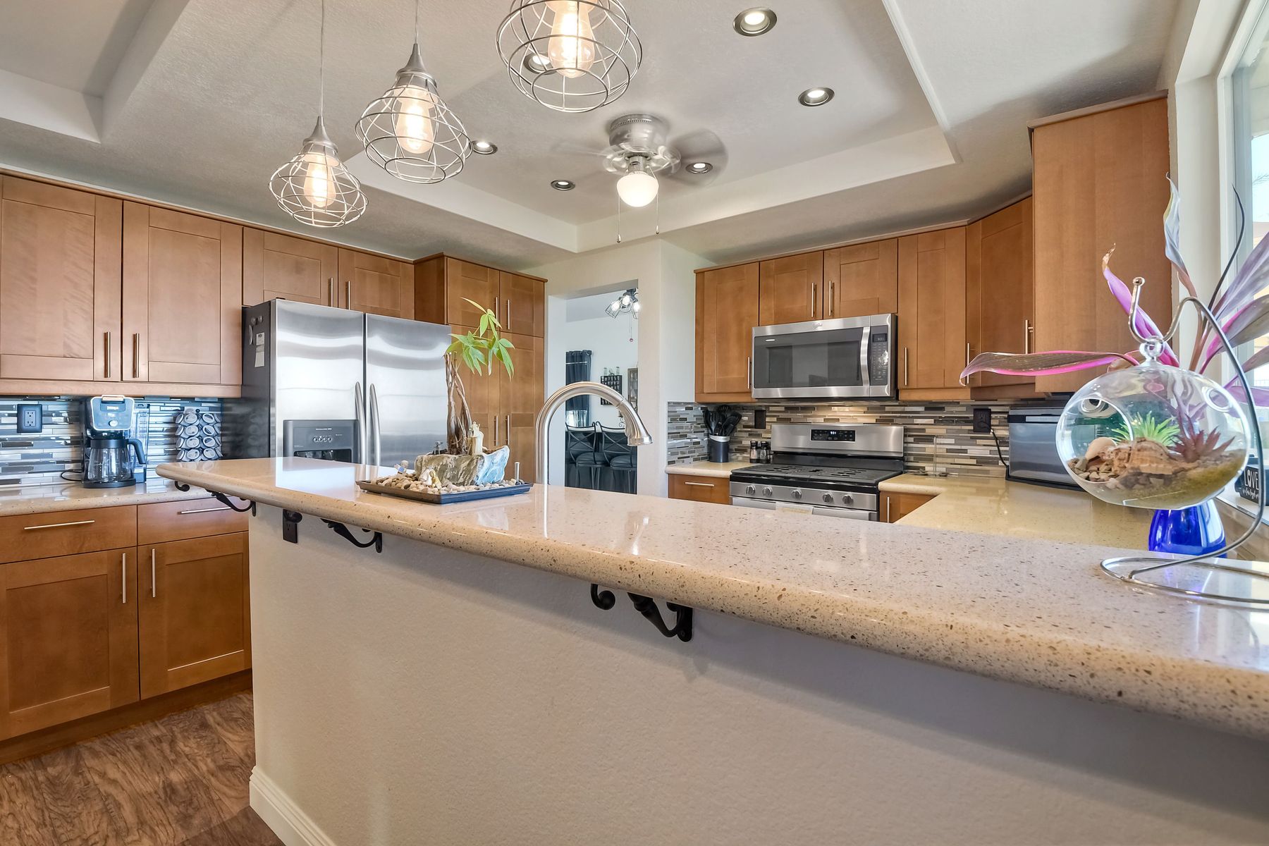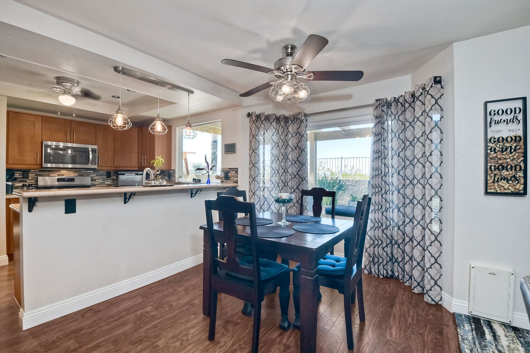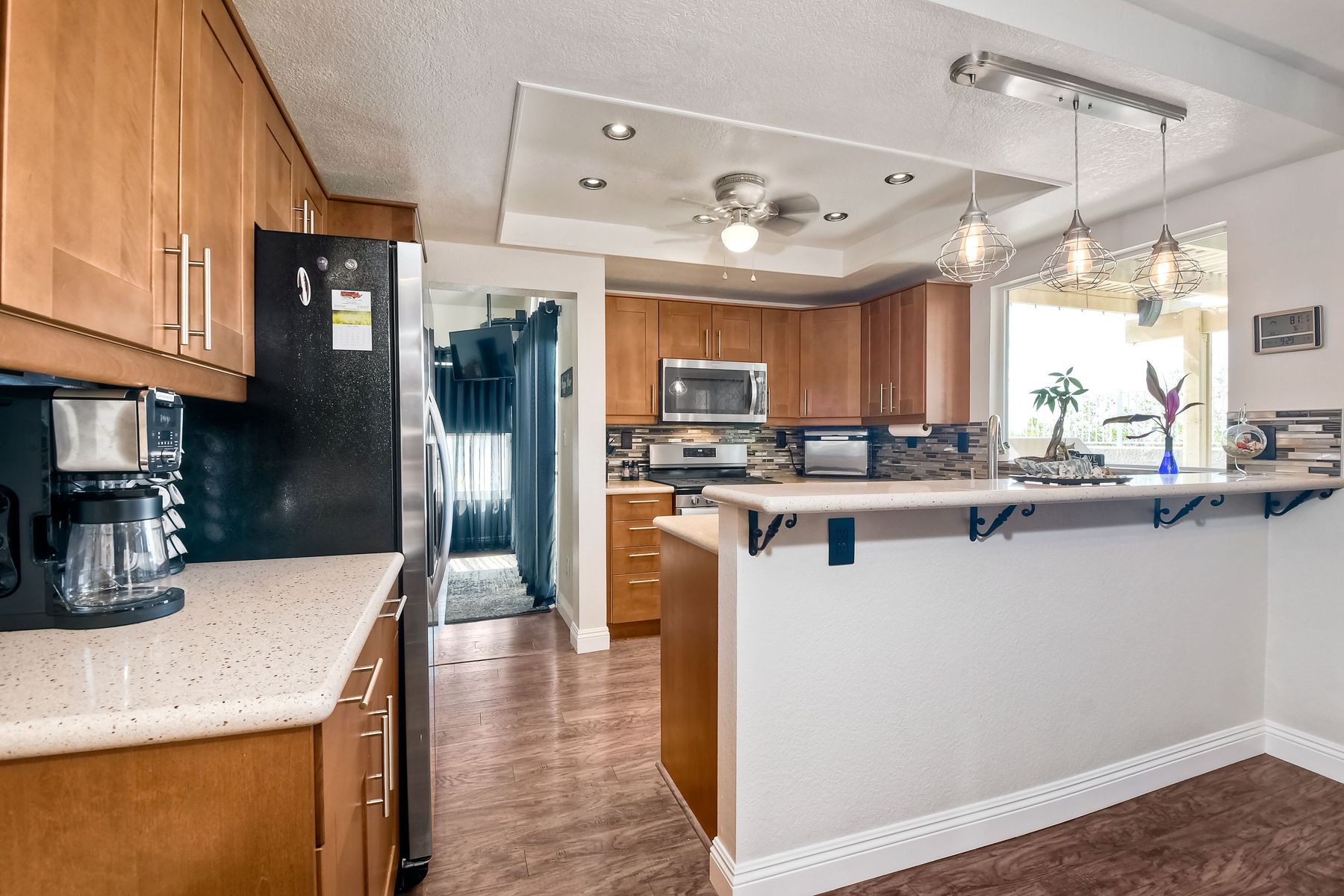 STOP THE CAR!!! You just found your Dream Pool Home! TURNKEY, ENERGY EFFICIENT, Summertime is here for your family! This delightful home boasts 2162 sq. ft, 4 bedrooms, 3 bathrooms with extensive upgrades throughout the home. This home is situated on over 16,000 sq. ft. lot. Entertain your family and friends in your own private oasis! The Pebble Tech Pool and Spa that offer a tanning ledge, pool slide and in pool umbrella insert. The yard is so spacious there is plenty of room around the pool for several chaise lounges to hang out and relax on the green grass area or under the covered patio area. The outdoor patio kitchen offers bar top seating, a family size BBQ, microwave, and mesmerizing mountain views with cool breezes and no neighbors behind the home for ultimate privacy. The interior of the home is equally impressive as you are greeted by the high ceilings, open area, lavish flooring, and natural sunlight provided by the dual pane skylight. Impressive laminate flooring with custom baseboards throughout the lower level. The kitchen has been remodeled with Whirlpool appliances, Shaker cabinets with stylish hardware, a quartz countertop with coordinating tile backsplash, and contemporary lighting. There is plenty of storage space in the large pantry. The kitchen opens into the family room with a stacking stone tile decor fireplace and sliding glass door leading out to the resort-style backyard. Upstairs you will find 4 bedrooms and a hallway bathroom with newer fixtures, mirrors, and vanity and a tub/shower combo. The stunning master bedroom opens up to a beautiful custom wood accent wall and breathtaking views of the hilltops and peaceful backyard. Master bathroom offers a deep soaking tub and a large tile walk-in shower. The remaining 3 secondary bedrooms are carpeted with ceiling fans and substantial closet space. Mature lawn and beautifully landscaped with palm trees and vegetable garden and tranquil water fountain. This home includes Solar Panels, upgraded Millgard windows and sliding doors, 22' Blown in attic insulation for superior insulation, dual A/C units, a whole house fan, and Energy Star Appliances, 3 car garage with plenty of storage cabinets and a garage door opener. Situated in the phenomenal location of Central Murrieta, it is conveniently between the 15 & 215 freeways and minutes to schools, restaurants, movie theaters, shopping centers & parks. WELCOME HOME and enjoy panoramic sunsets every day!