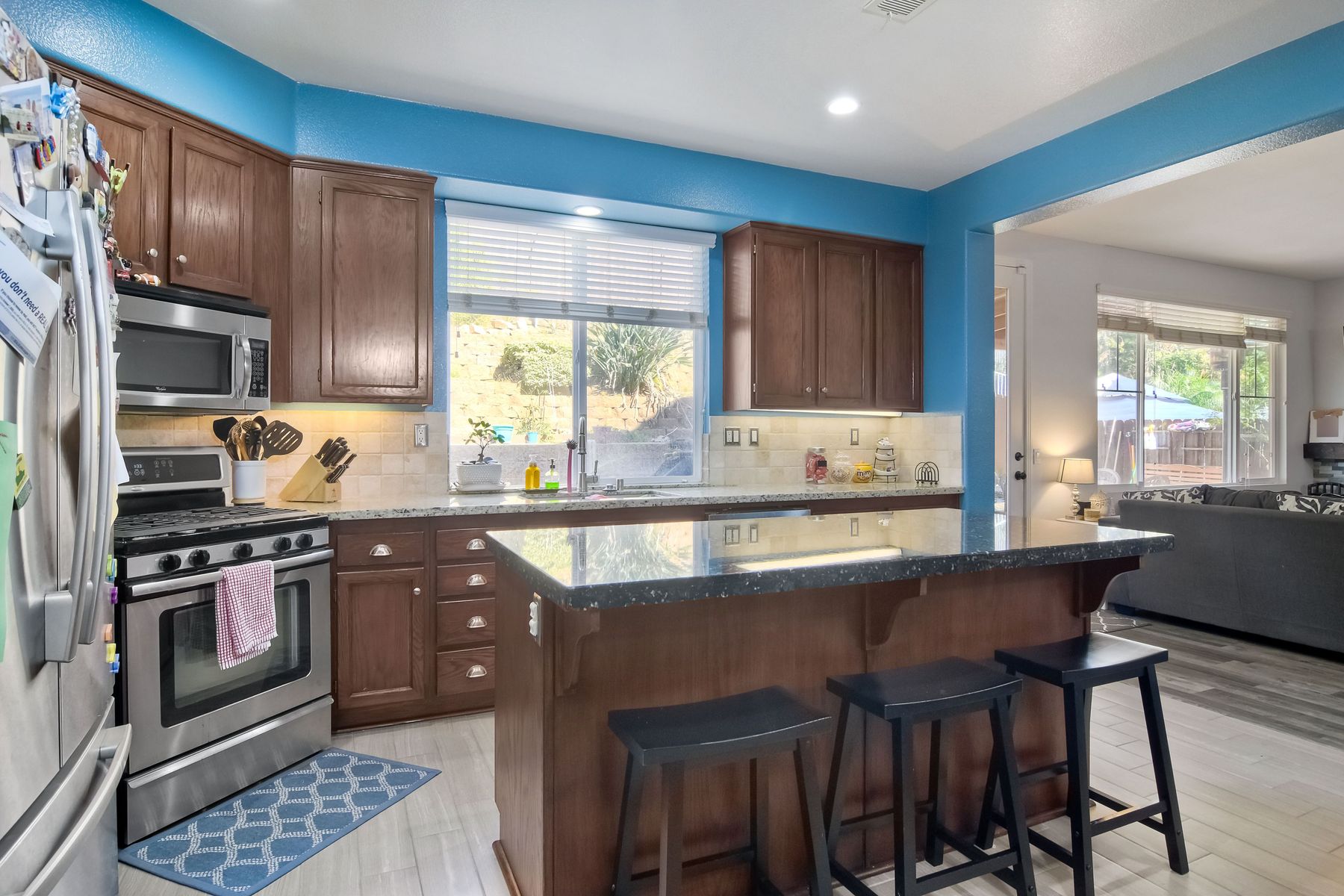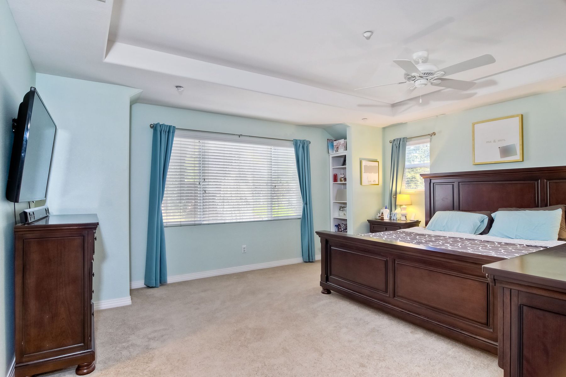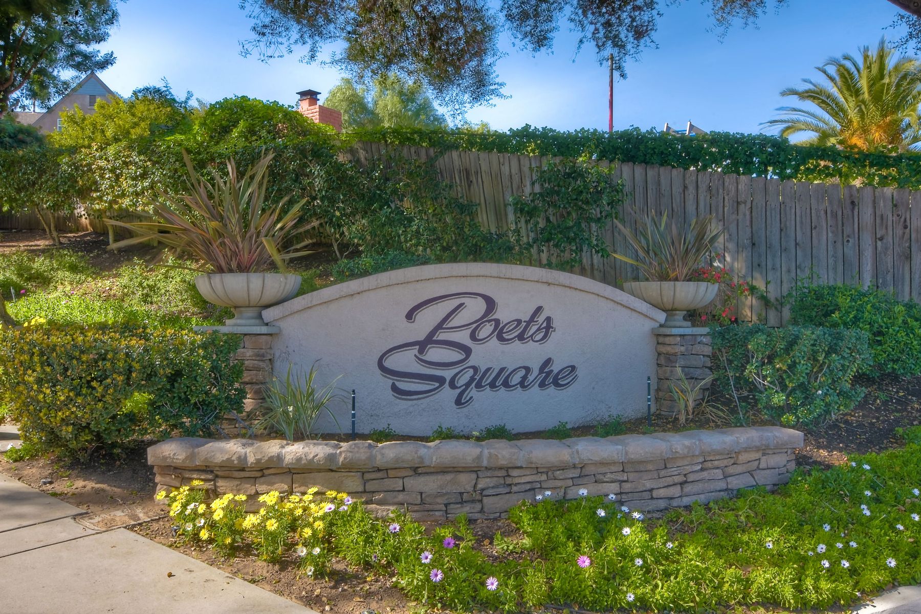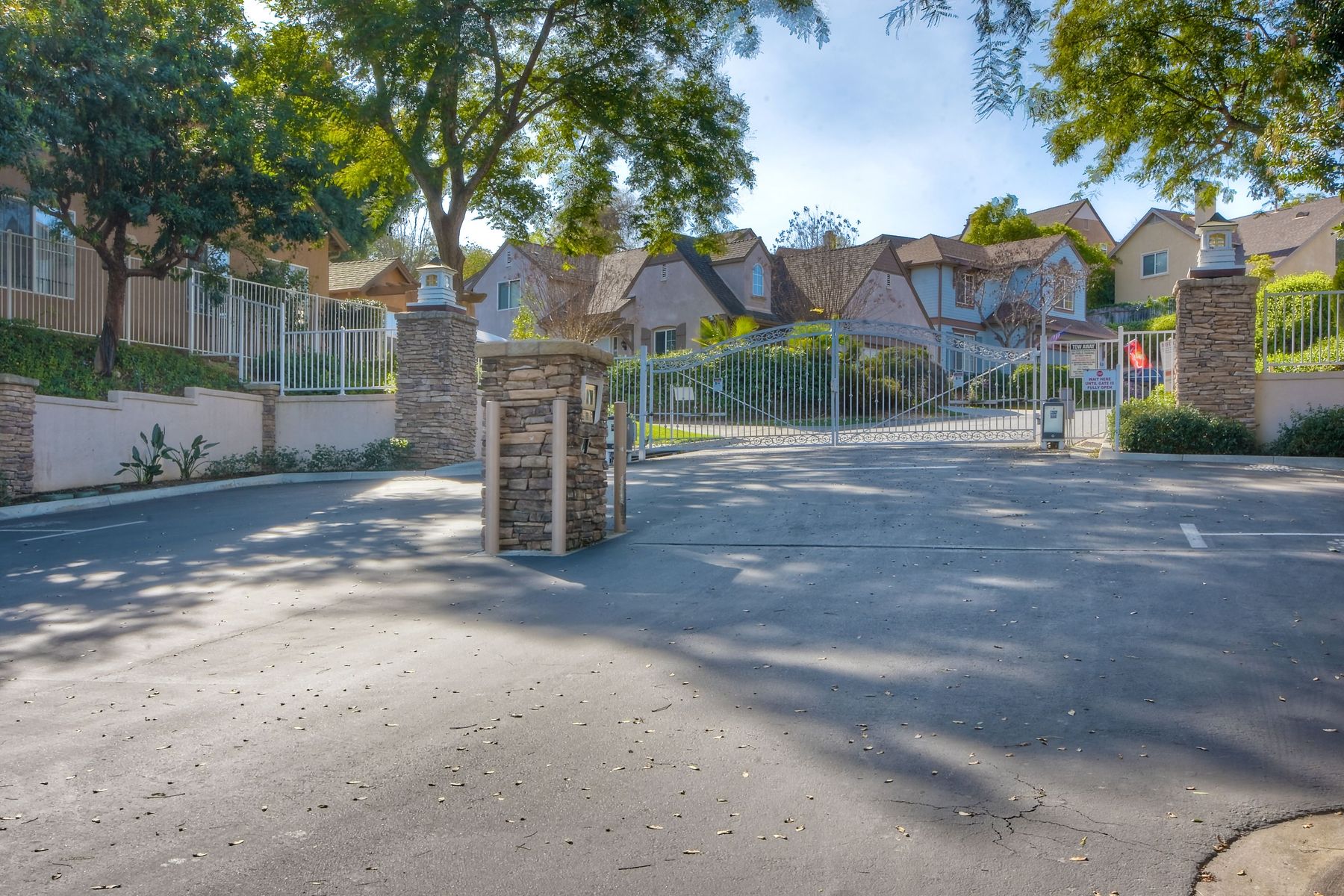 WELCOME HOME! Located in the beautiful gated community of Poets Square, a bright and airy home with cathedral ceilings and dramatic roof line sits on a scenic hill near the picturesque Village of Fallbrook. In pristine condition augmented with many upgrades including granite counters, center island, stainless appliances and a cozy breakfast nook looking out to the front entry/courtyard. There is 1 bedroom & 1 full bath on the main level as well as a spacious living/dining area with custom shades. The upper shades are solar remote controlled. There is new flooring and carpet throughout, all 3 bathrooms have been updated and painted. You will enjoy the easy care yard with terraced planters, as well as gas plumbed for BBQ cooking. The whole house features fan and tinted windows to help keep the home cool in the summer. The spacious master suite is light & bright located upstairs and offers 2 walk-in closets, large soaking tub, step in shower, and double sinks. You will also find 2 additional large bedrooms upstairs both with walk-in closets and a loft area that can serve many uses. Enjoy the backyard with newly built patio surrounded by mature landscape for shade and privacy. Did I mention home has solar! This home shows tremendous pride of ownership. Close to shopping, dining, entertainment, and easy freeway access. Make your appointment today!