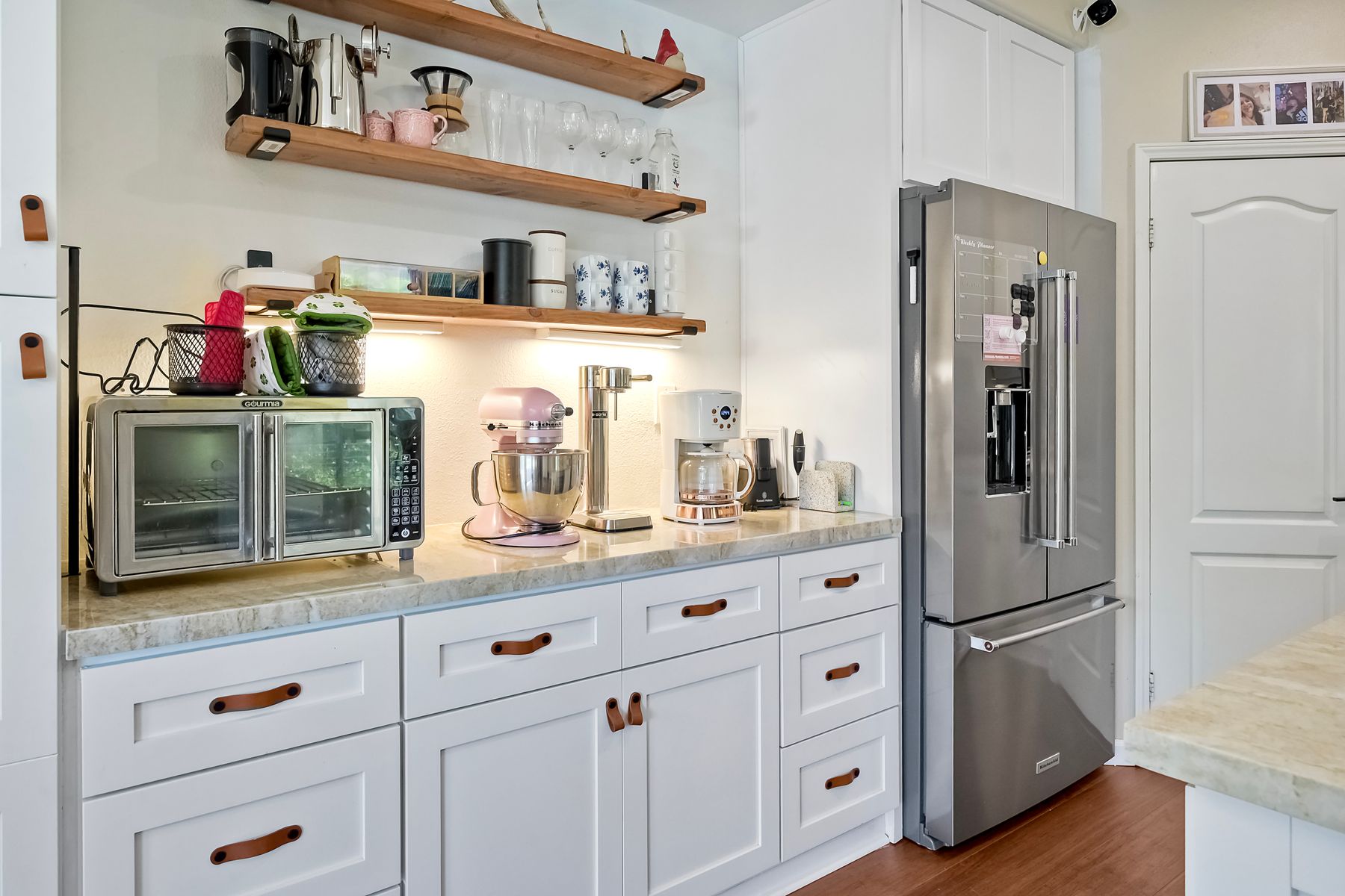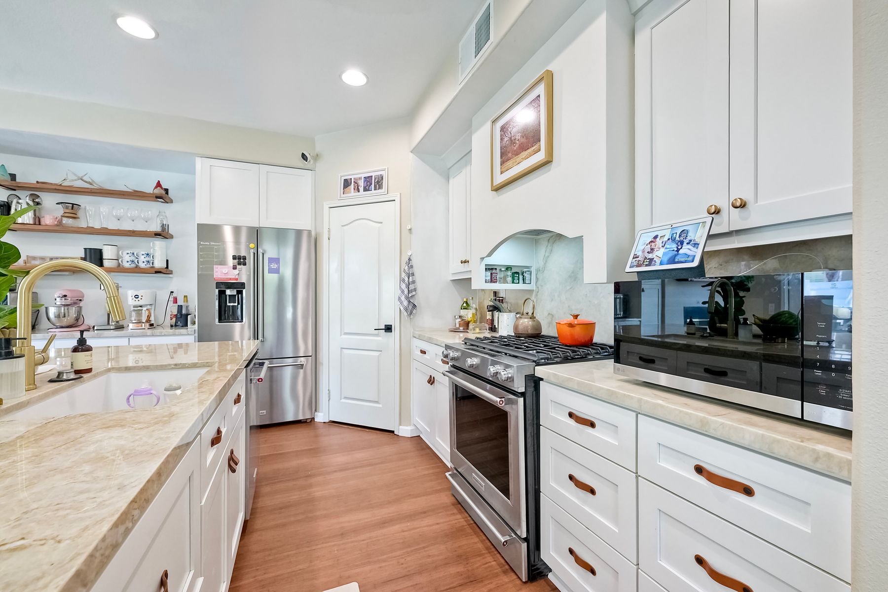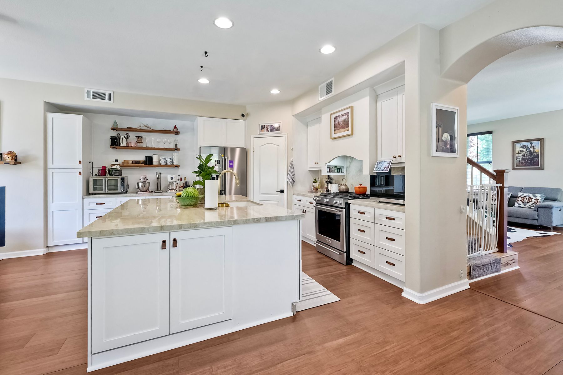 Absolutely Stunning 4-Bedroom Home in the Coveted Harveston Community Welcome to your dream home in the highly sought-after Harveston neighborhood! This beautifully upgraded 4-bedroom, 2.5-bath home offers over 2,100 sq. ft. of stylish living space and is just steps from the scenic Harveston Lake, parks, and walking trails. Step inside to a spacious formal living room, perfect for relaxing or entertaining. The heart of the home is a gorgeous remodeled kitchen featuring luxurious Taj Mahal Quartzite countertops, updated soft-close cabinetry with custom leather pulls, a massive center island, upgraded stainless steel appliances, and a large walk-in pantry. Enjoy casual meals at the breakfast bar or in the cozy in-kitchen dining area. Upstairs, the expansive primary suite includes a spa-like bathroom with dual sinks, a soaking tub, a step-in shower, and a generous walk-in closet. Three additional bedrooms offer plenty of space and storage, along with a full hallway bathroom. The upstairs laundry room adds extra convenience, complete with a sink. Step outside to a private backyard with a patio slab and lush green lawn—ideal for outdoor dining or play. The home also features an extra-long driveway for additional parking, a two-car attached garage, and a solar system with battery backup for energy efficiency. Plus, the HVAC system was replaced in 2021 for peace of mind. This home has it all—style, space, and location. Don’t miss your chance to own a piece of Harveston paradise!