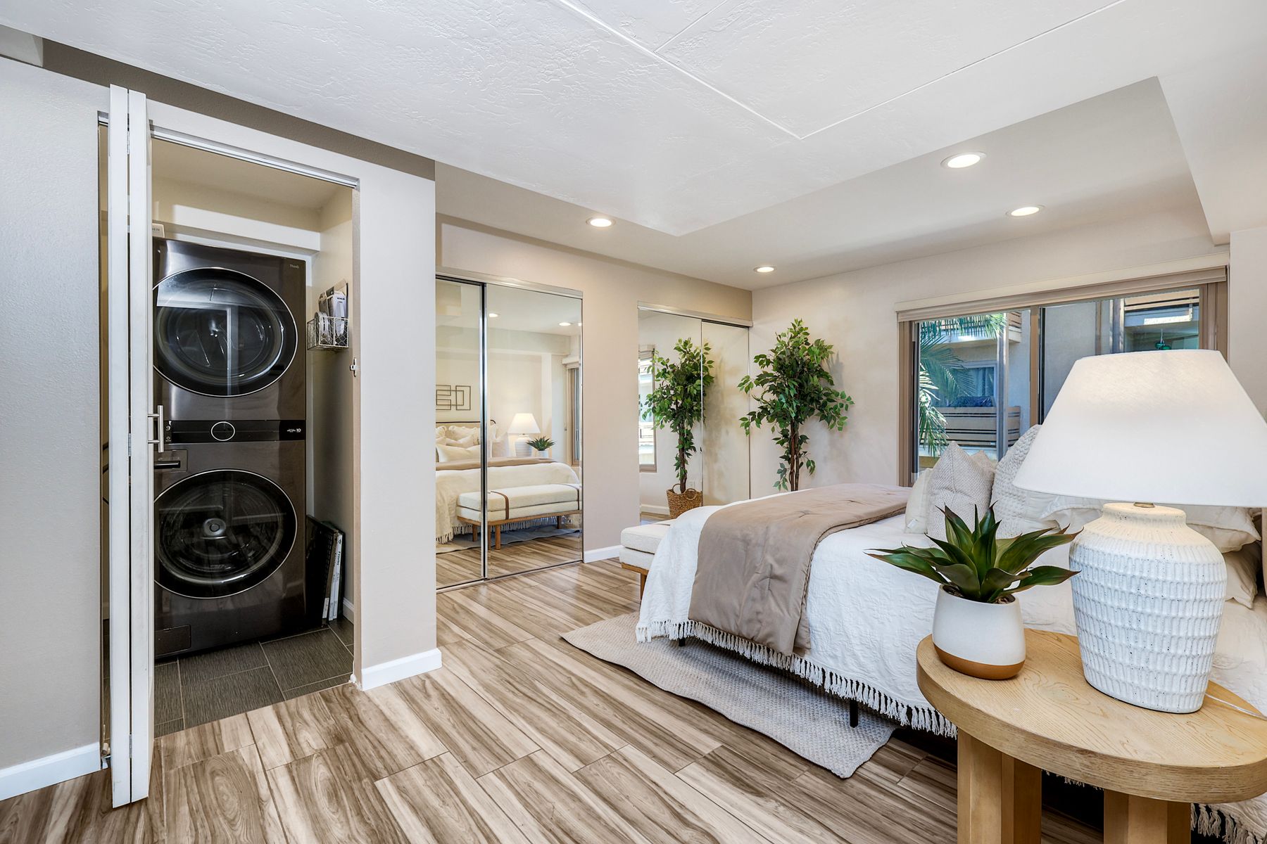 Welcome to resort-style living in the highly desirable Point Loma Tennis Club community! This beautifully upgraded 2-bedroom, 2-full bath townhome features air conditioning and a thoughtfully designed great-room layout with the living, dining, and kitchen spaces seamlessly open—perfect for everyday living & entertaining. Gorgeous wood style embossed porcelain flooring throughout, complemented by recessed LED lighting, designer window treatments, and an enclosed staircase with added storage beneath. The stunning kitchen showcases quartz countertops, stainless steel appliances, upgraded cabinetry, glass subway tiles, a spacious pantry, and a beautiful island with seating. Both bathrooms have been completely remodeled with well-appointed finishes. Additional upgrades include custom closet systems in both bedrooms and a high-end washer & dryer conveniently located in-unit. Enjoy outdoor living on your private balcony, plus the convenience of one covered carport parking space with 2 storage units. Ideally located near the community greenbelt, this expansive, park-like community offers exceptional amenities including lush grassy areas, pool, spa, clubhouse, gym, tennis & pickleball courts, sports courts, billiard room, BBQ areas & more. Conveniently close to top-rated public, private, and charter schools, manicured public parks, shopping centers, and entertainment venues. All just minutes from Point Loma’s beautiful beaches, Mission Bay, parks, restaurants, Liberty Station, Shelter Island, Harbor Island and downtown San Diego. Don’t let this incredible opportunity get away! Sunset Cliffs - 6 min Ocean Beach - 5 min Mission Bay - 8 min Pacific Beach - 12 min Little Italy - 10 min Liberty Station - 6 min Downtown (Ball Park) -12 min Naval Bases - 12 min (Point Loma), 14 min (32nd St) 16 (North Island) International Airport - 9 min Old Town - 8 min North Park - 13 min Hillcrest - 11 min Balboa Park - 10 min La Jolla - 21 min Coronado -13 min Shopping (Home Depot/Target/ Trader Joe's/Fashion Valley Mall) - 5 - 11 min This two bedroom townhouse has immense upgrades throughout that have been meticulously maintained. Gorgeous finishes include custom Quartz Countertops, glass subway tiles, wood style embossed porcelain tiles, stainless steel EnergyStar appliances and custom cabinetry, quadruple-pane windows (part of the "Quieter Home Initiative"), LED lighting and ProFlo faucets, LG Washer/Dryer. Soothing outdoor area with private deck to catch the ocean breeze. Equipped with central air conditioning and heat which makes for comfortable living year round. Additional storage units and single covered parking (plenty of street parking as well). The Clubhouse is an ideal place to work from home, as well. You truly will not want to miss this extraordinary townhome within the welcoming Point Loma community.