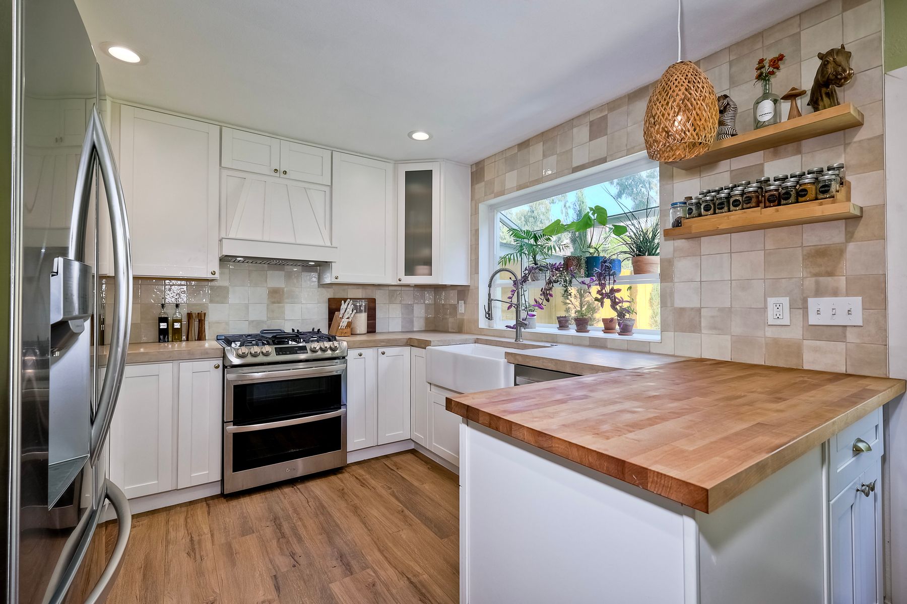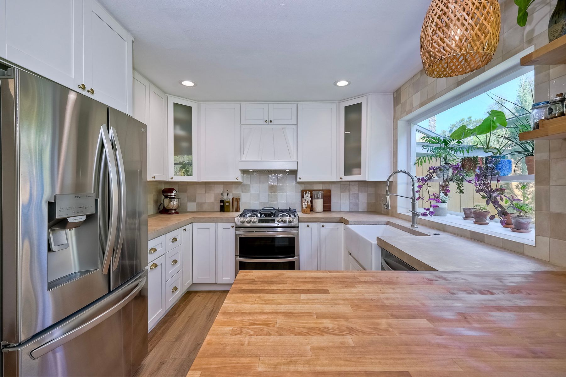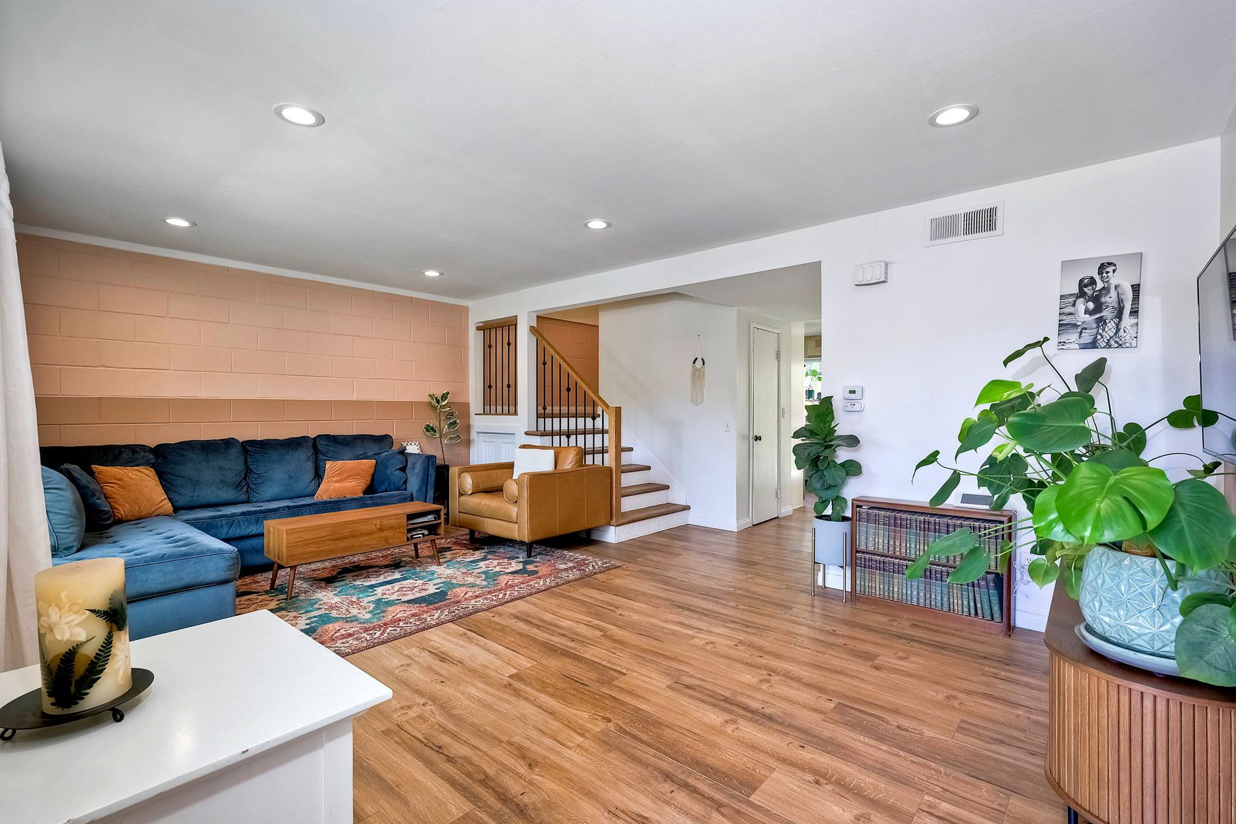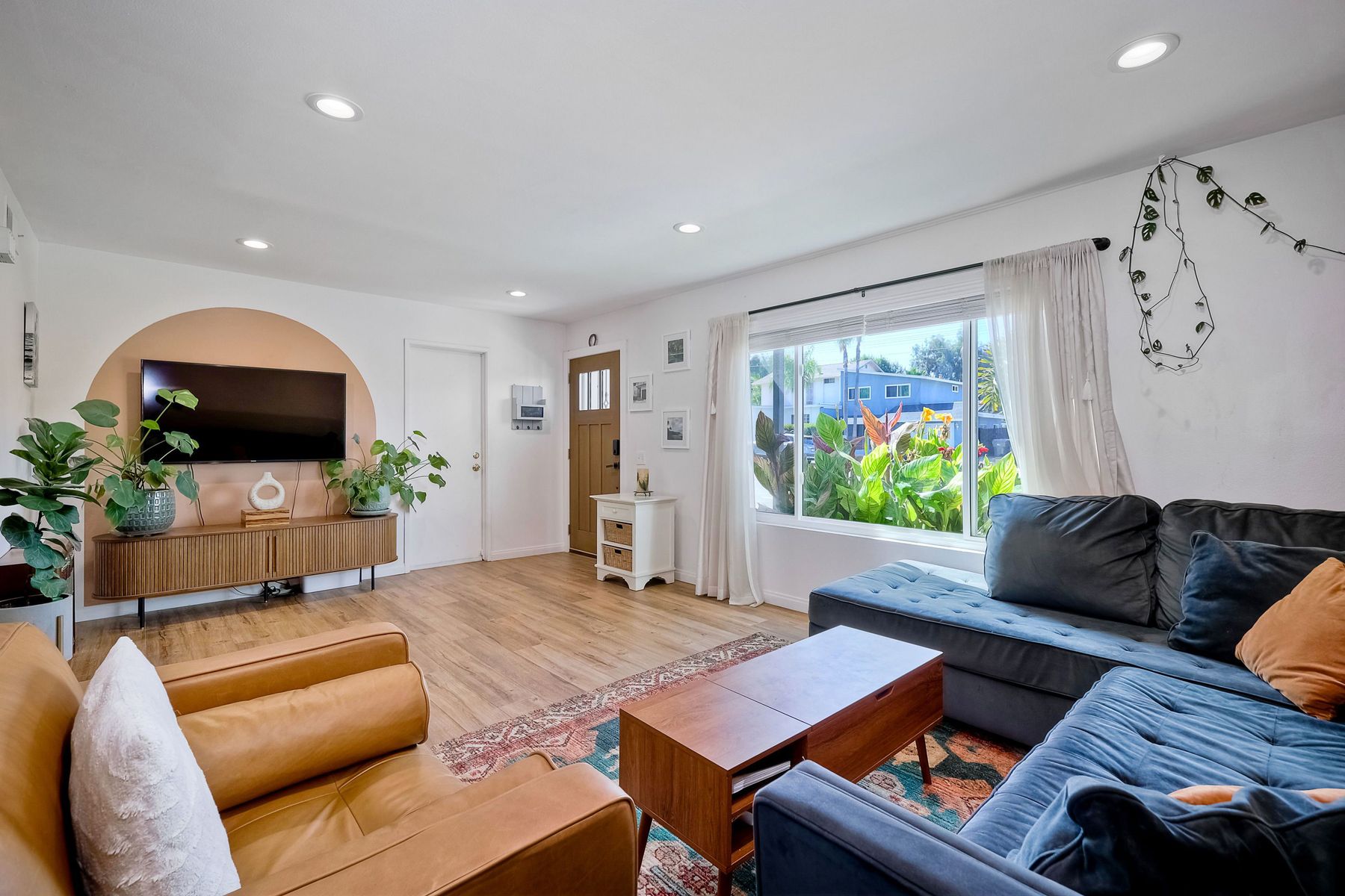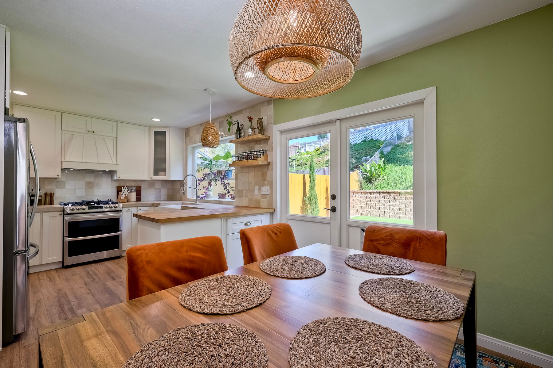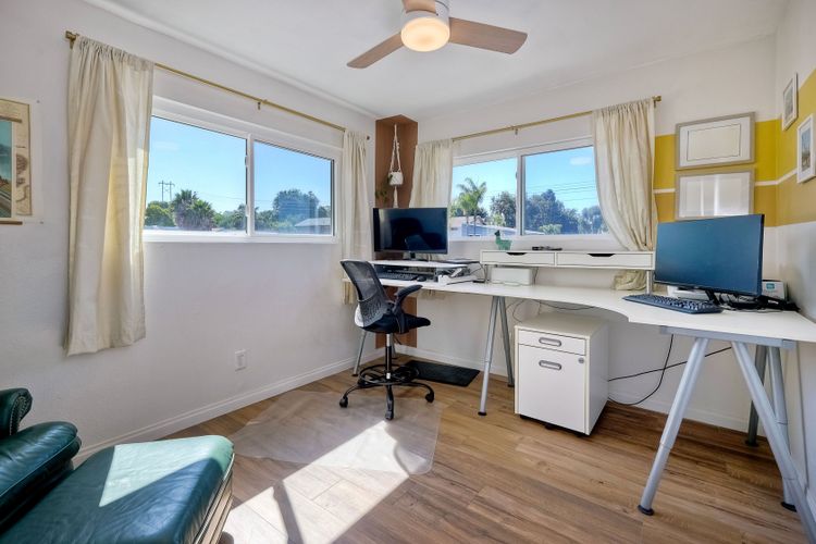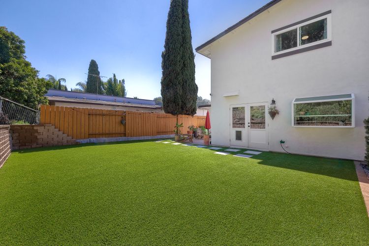 This beautifully remodeled 3-bedroom, 1.5-bathroom, 1,280 sq ft residence is nestled in the heart of Oceanside, and zoned for the highly sought-after Carlsbad School District. Just a few miles from the stunning coastline, this home combines modern comforts with coastal living. The freshly painted exterior and trim give the home a bright, inviting curb appeal. The private, low-maintenance yard features lush artificial turf, new drainage, new pavers and a brick retaining wall, and new fencing. The open-concept living space features exposed brick and LPV flooring throughout, adding warmth and style. The kitchen is a chef's dream with brand new cabinets, a farmhouse sink, stainless steel appliances, and beautiful wood and concrete countertops, complemented by a custom backsplash and recessed lighting. The newly added bay window brightens the kitchen, offering a perfect view of the backyard. The downstairs half bath boasts custom beadboard, elegant wallpaper, and chic fixtures. The upstairs bathroom features a brand-new bathtub, shower, tile, and barn door for a stylish touch. All bedrooms are equipped with ceiling fans for comfort. There are new windows throughout and upgraded insulation in the attic and walls provide energy efficiency and tranquility. A one-car garage with additional storage includes a side-by-side washer/dryer with direct access to the home. Enjoy easy access to shopping, dining, and the freeway, with the beach only short drive away. Calavera Hill Preserve is a quick 10 minute walk away where you can enjoy the year round perfect temperatures and surround yourself in nature. This location offers the perfect blend of coastal lifestyle and community amenities. This is the opportunity to own a fully remodeled home in a vibrant neighborhood with top-rated schools!